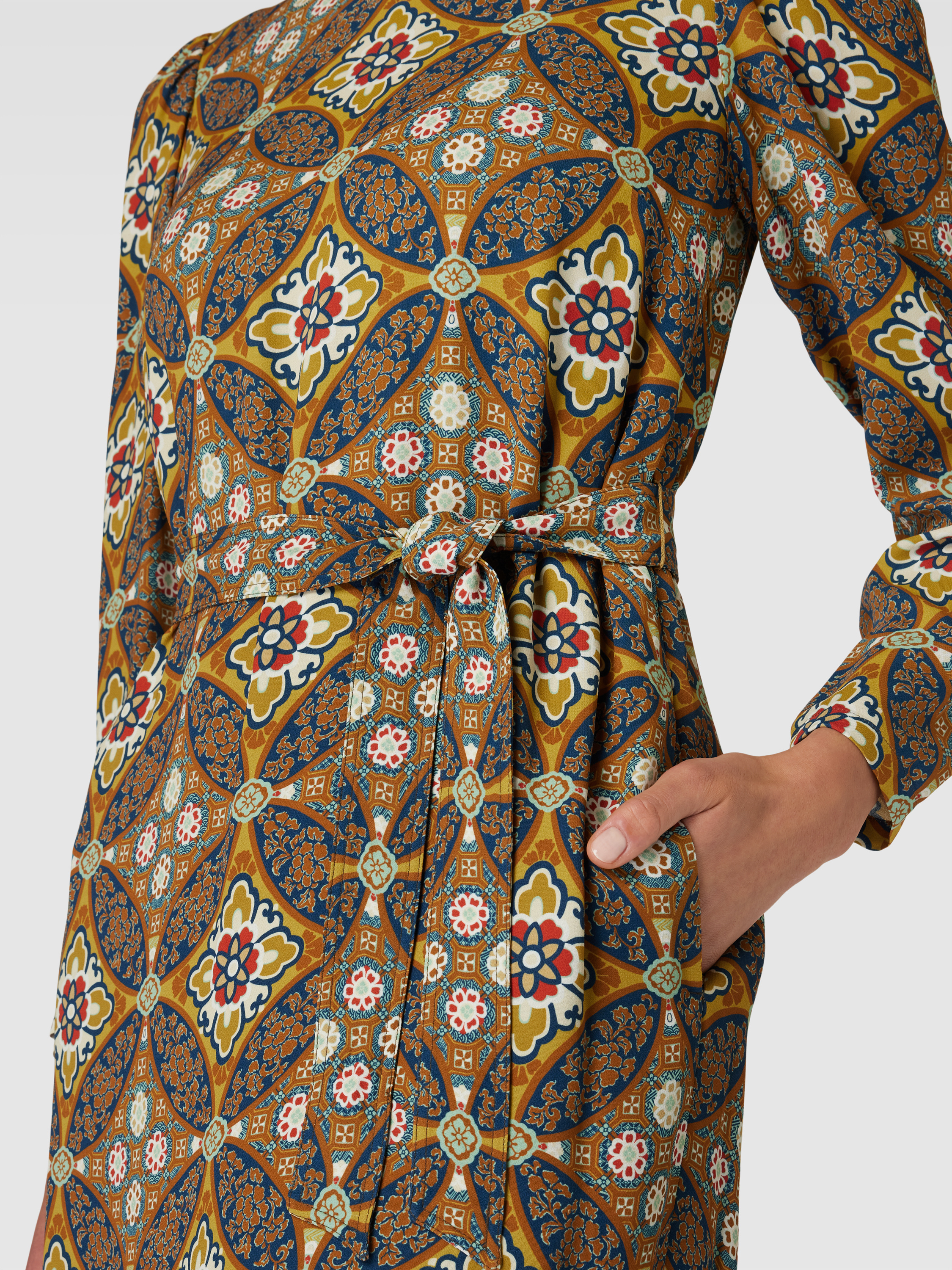 Sukienka midi z wiskozy ze wzorem na całej powierzchni model ‘ALBUM’ - musztardowy