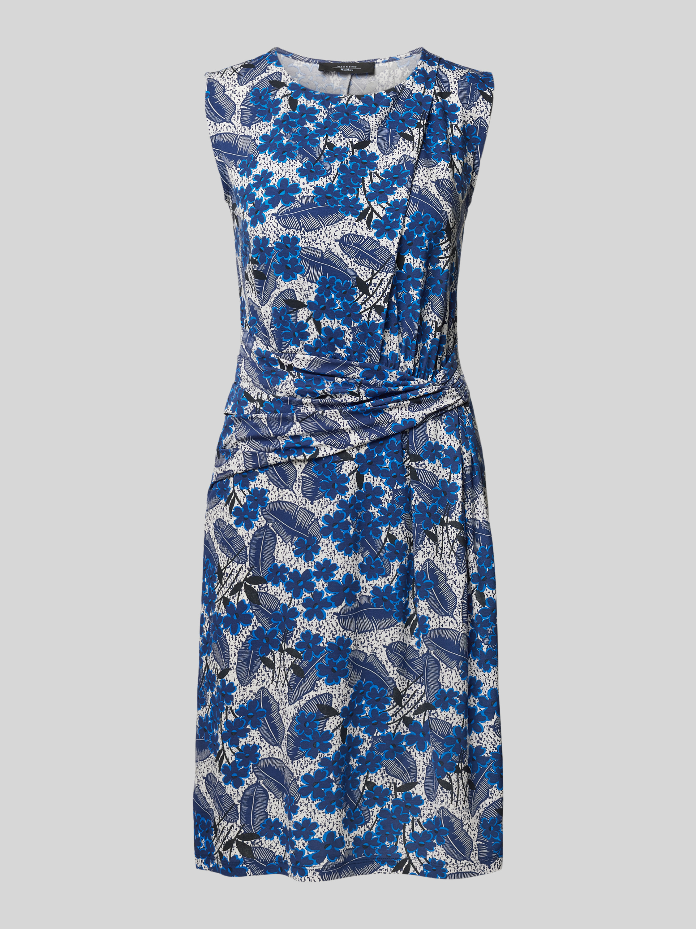 Sukienka o długości do kolan ze wzorem na całej powierzchni model ‘EMBLEMA’ - niebieski