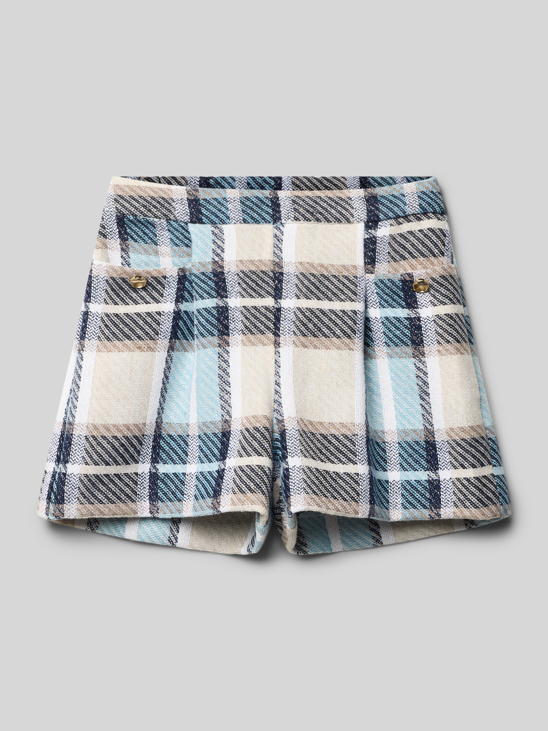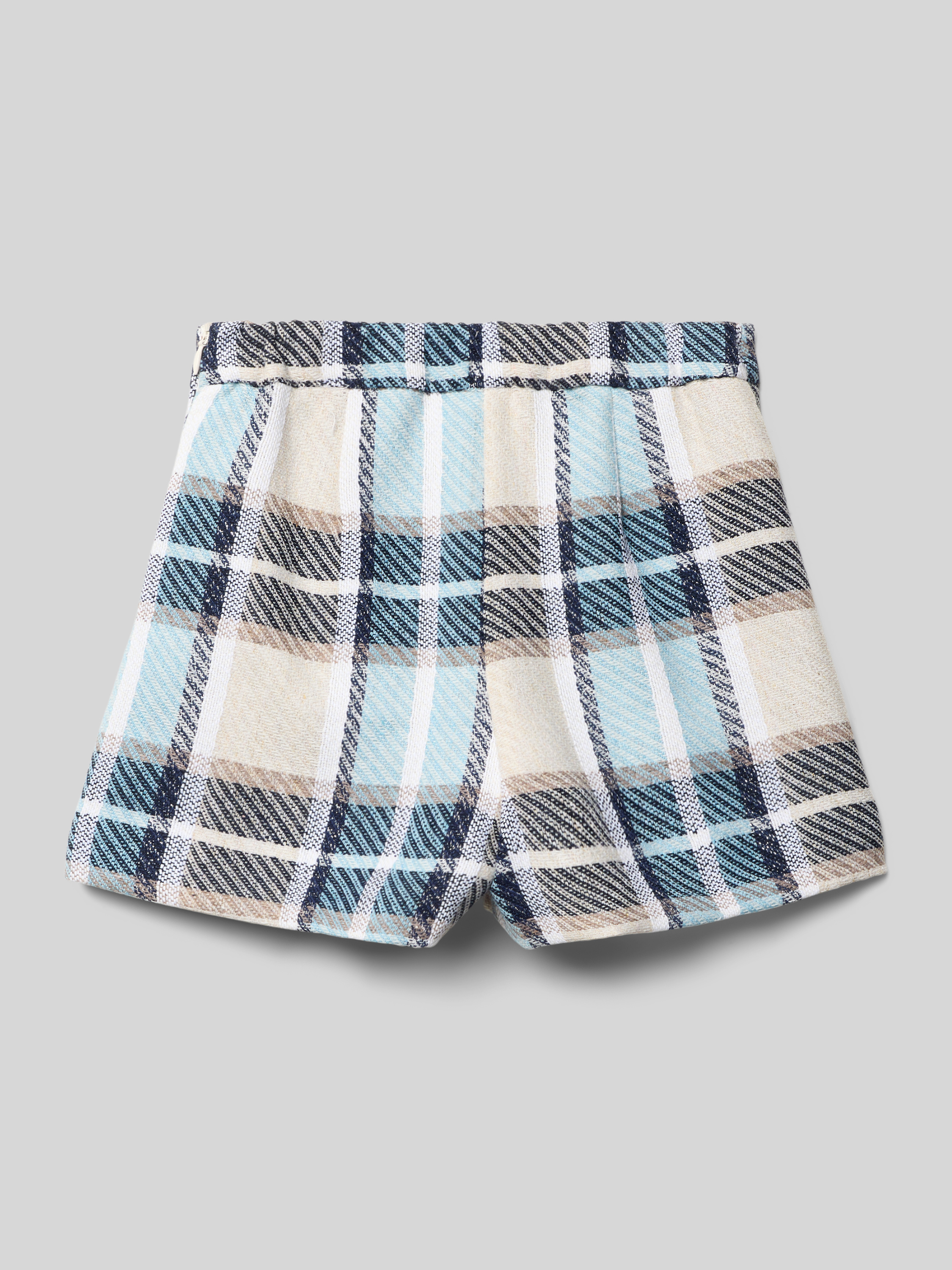 Bermudy o kroju regular fit z dodatkiem wełny lana i nadrukiem na całej powierzchni - granatowy