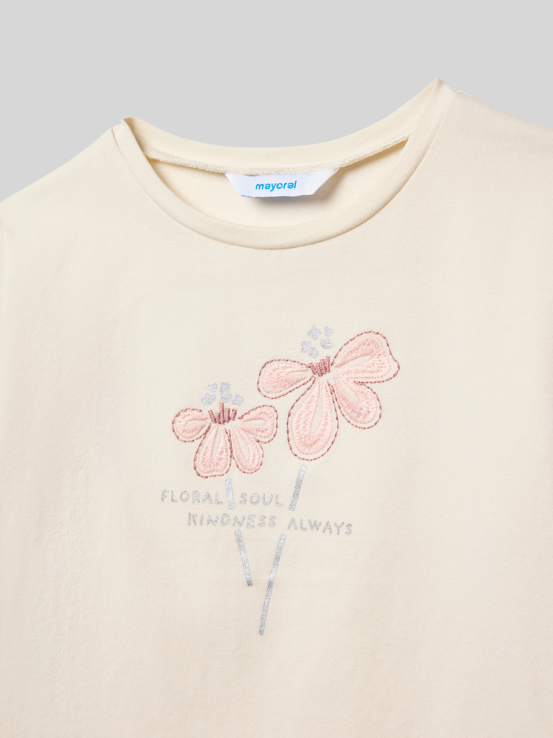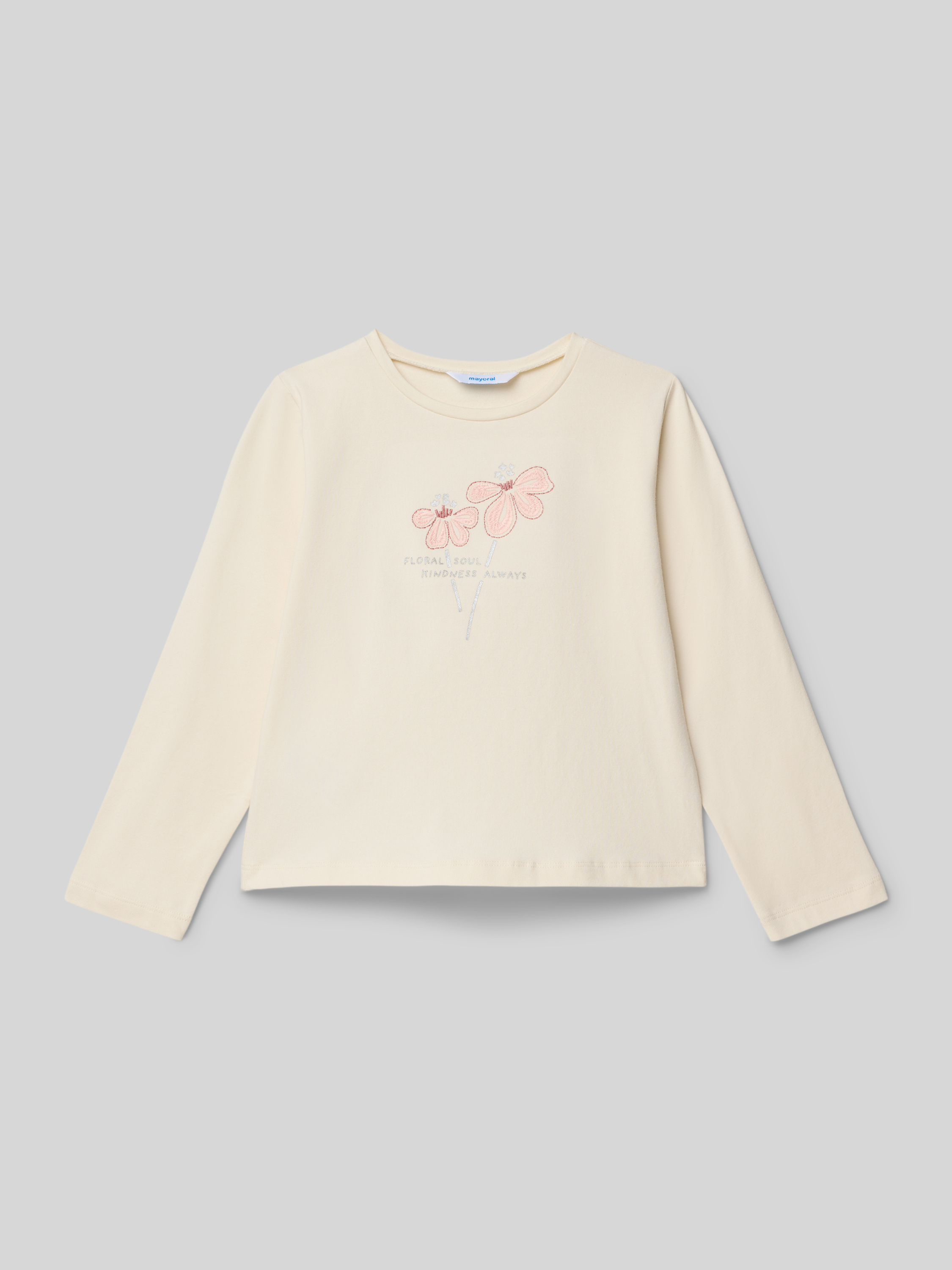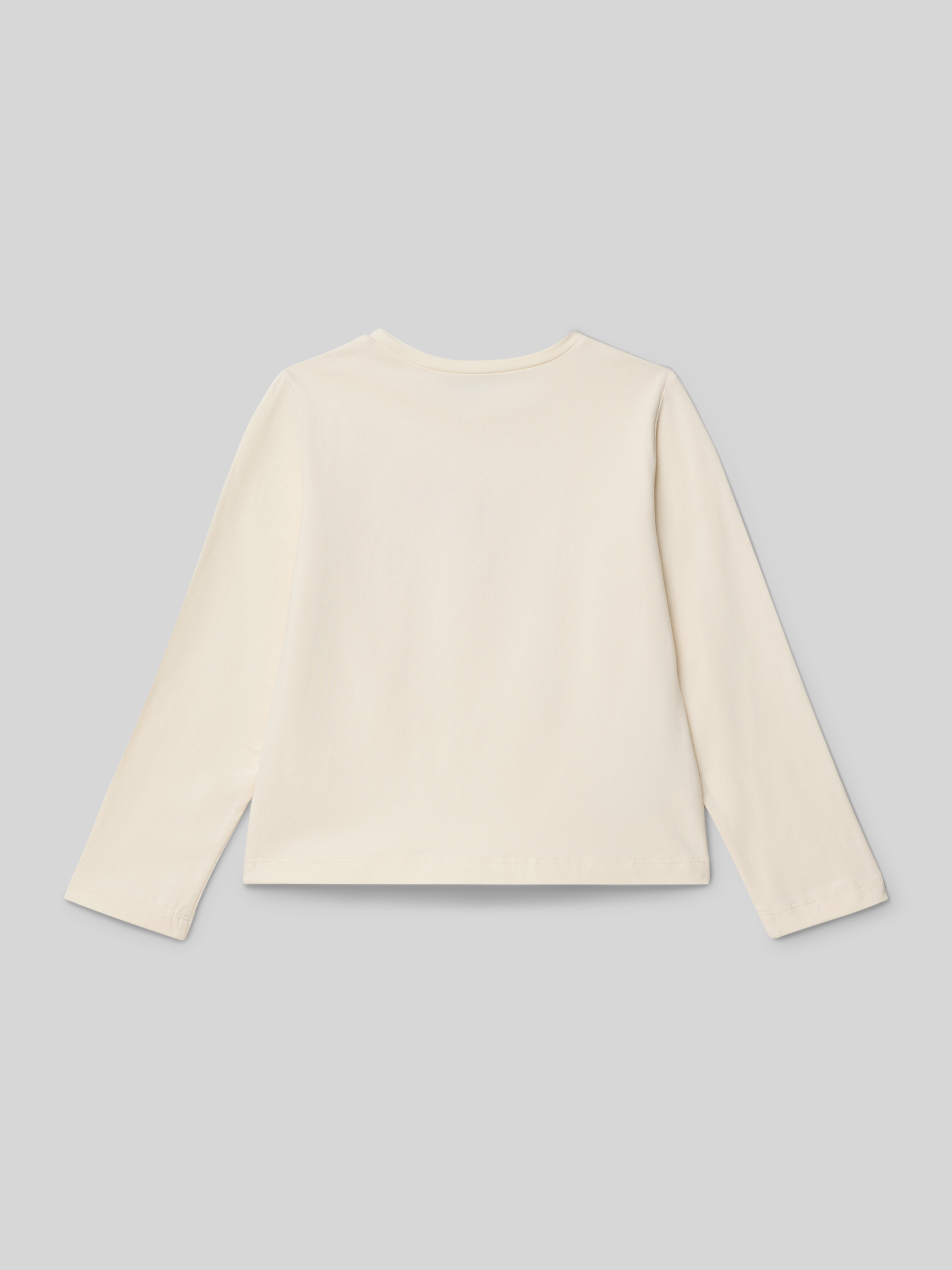 Bluzka o kroju regular fit z długim rękawem i nadrukiem z napisem - złamany biały