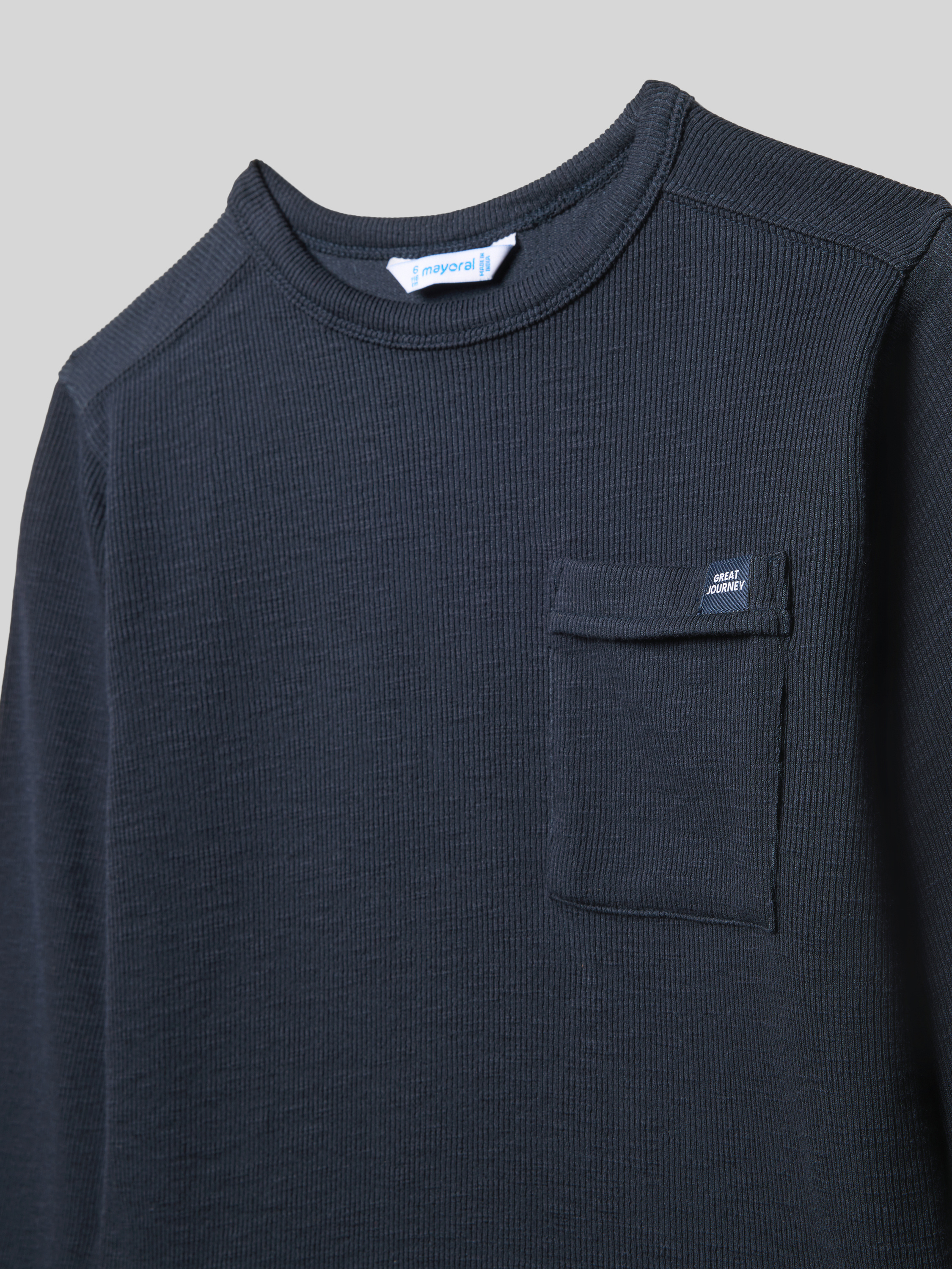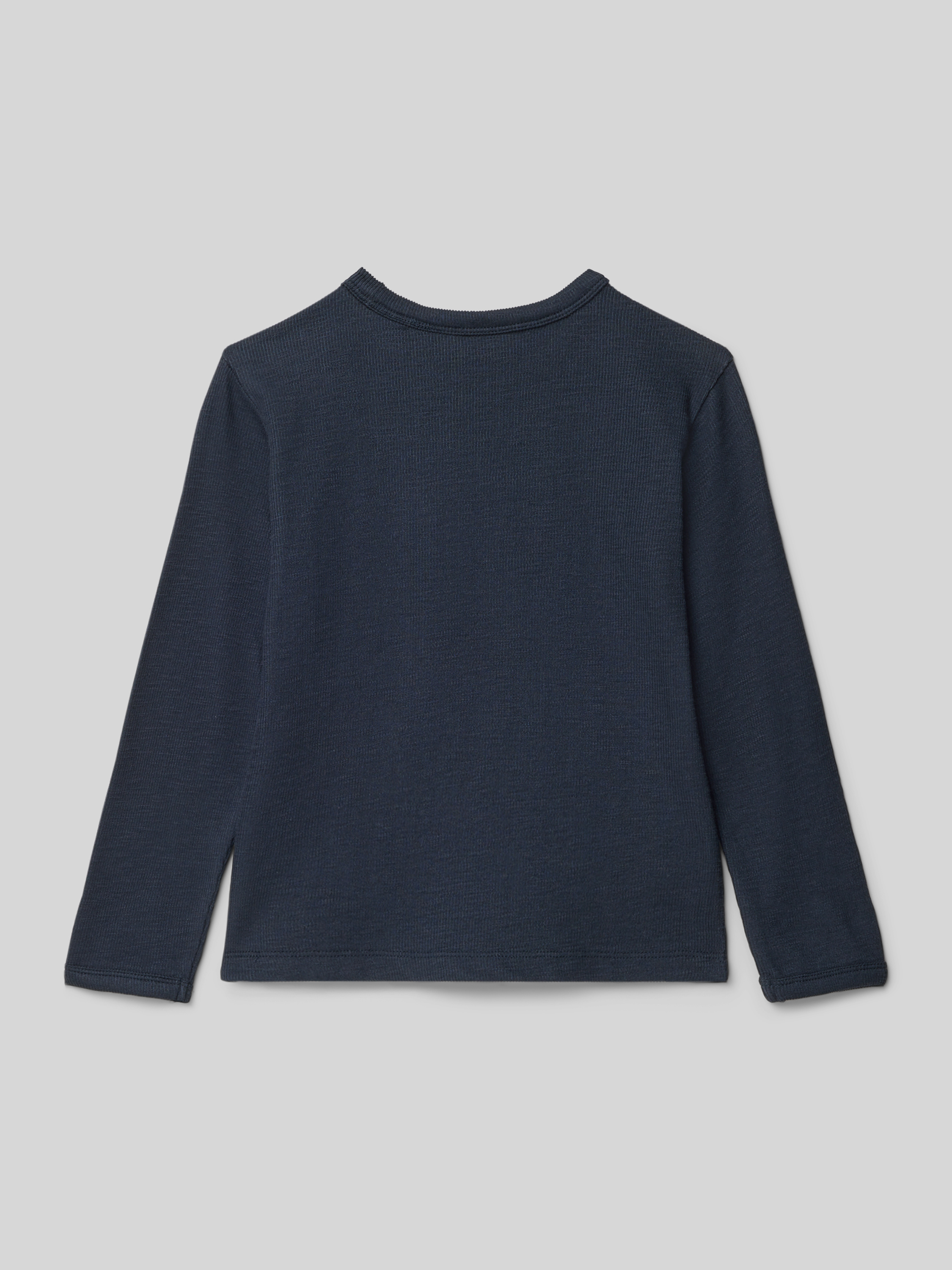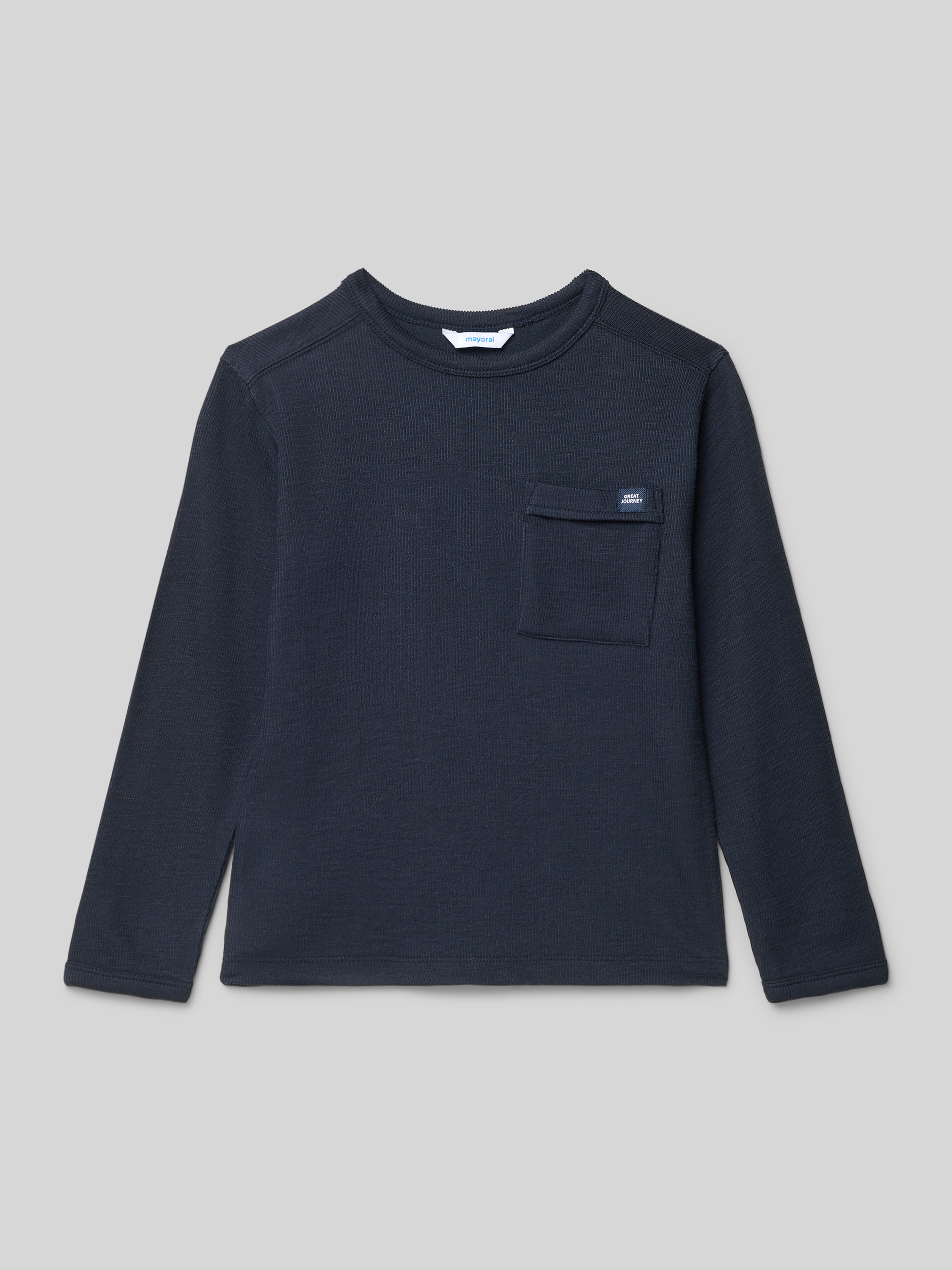 Bluzka z długim rękawem o kroju regular fit z kieszenią na piersi - granatowy