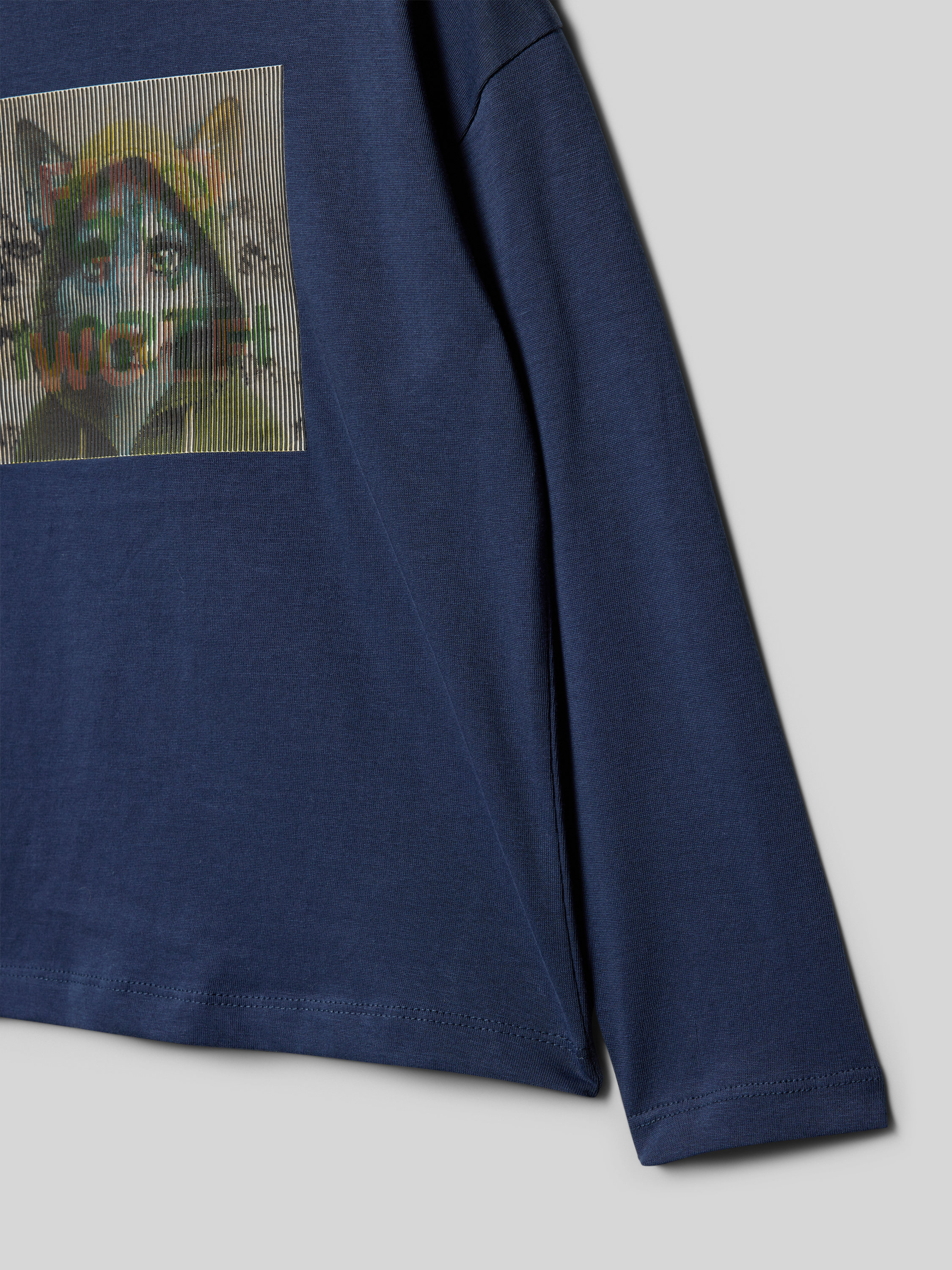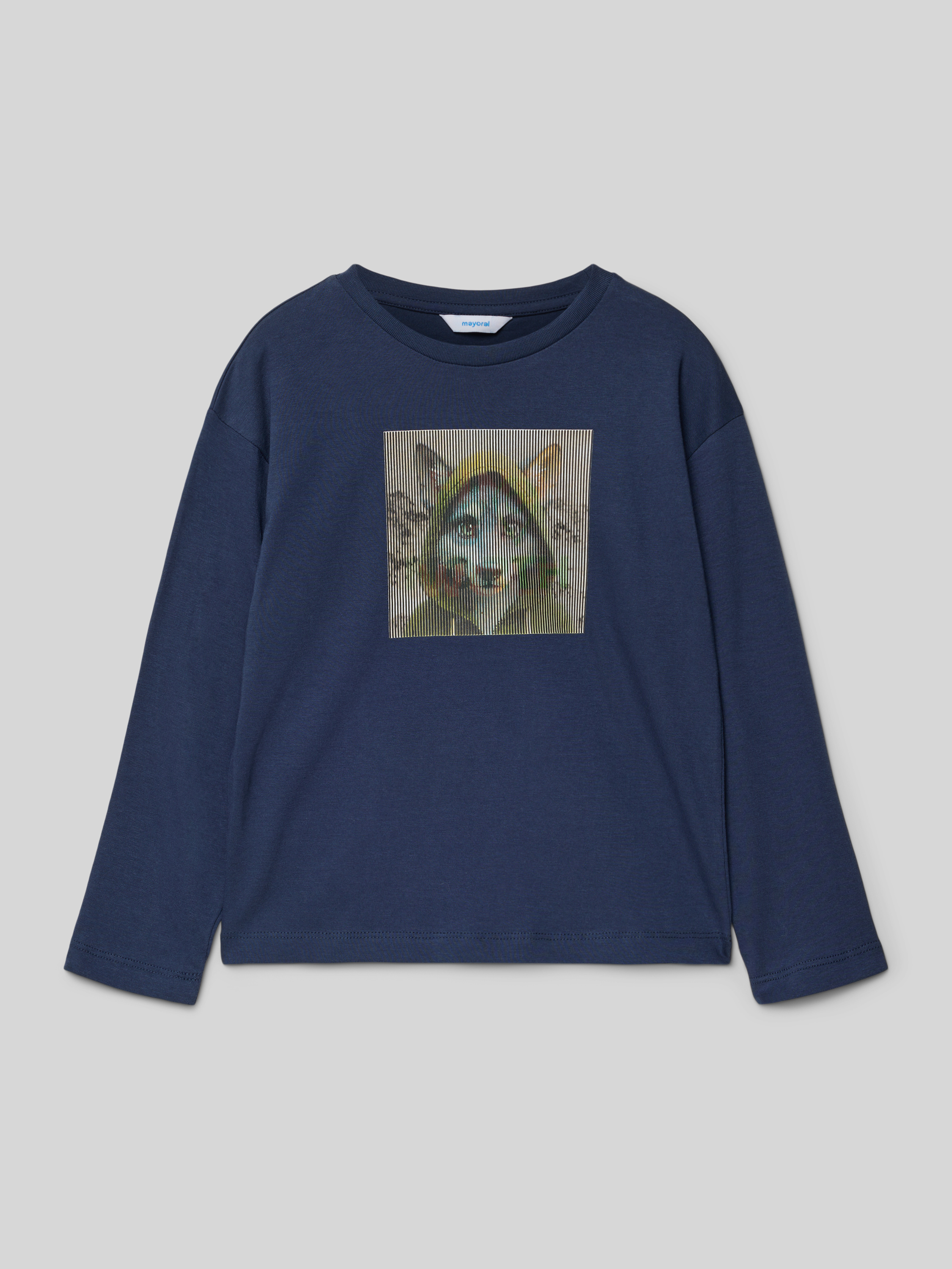 Bluzka z długim rękawem, okrągłym dekoltem i nadrukiem z motywem - granatowy