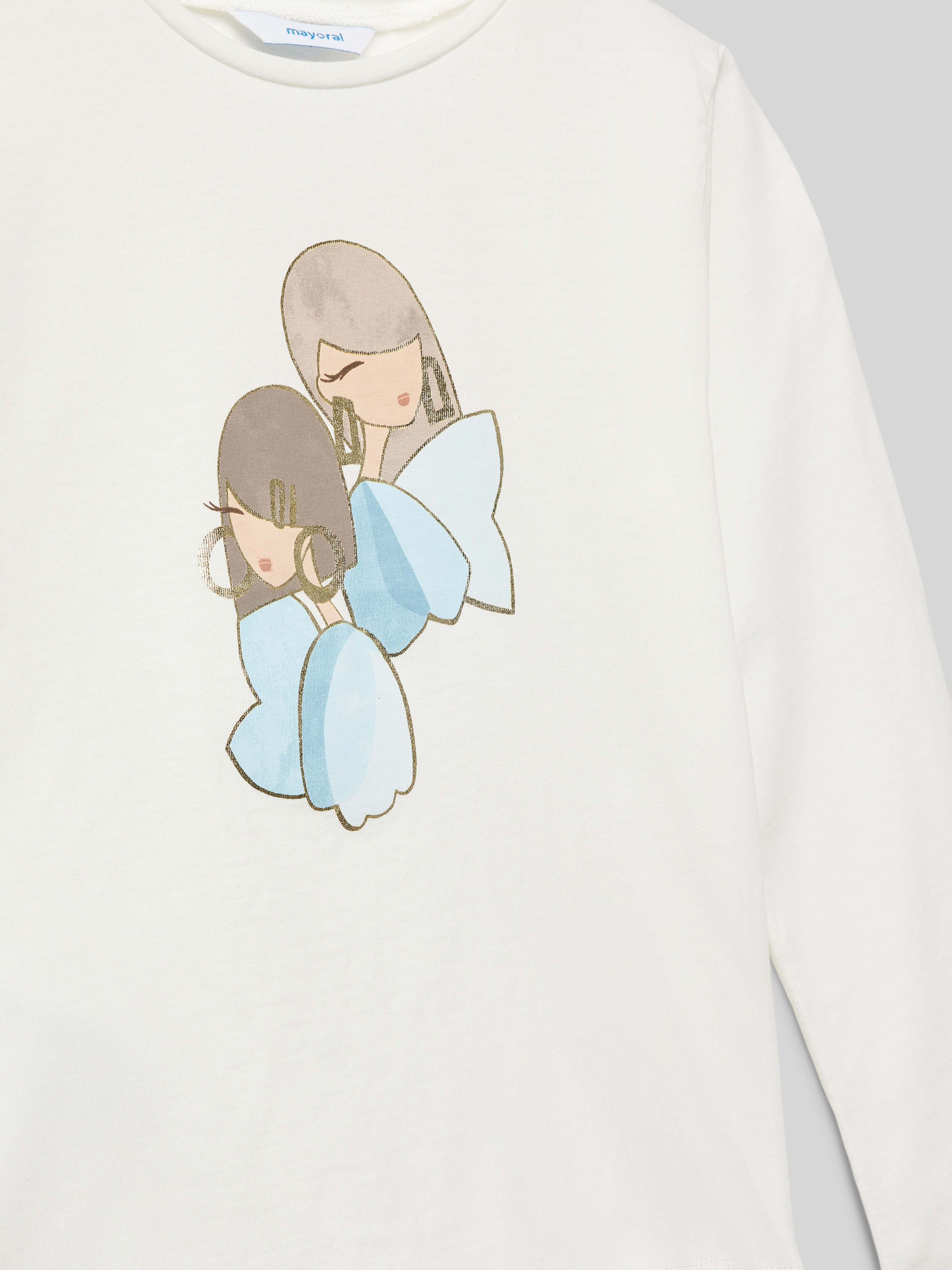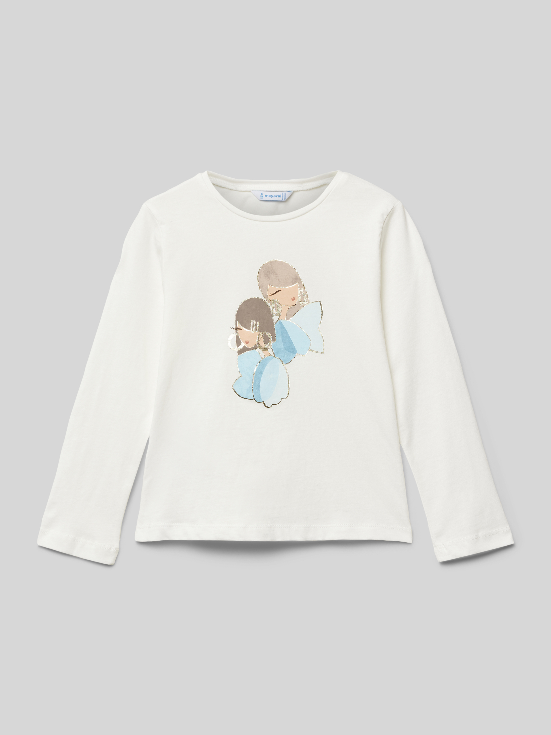 Bluzka z długim rękawem z nadrukowanym motywem - złamany biały