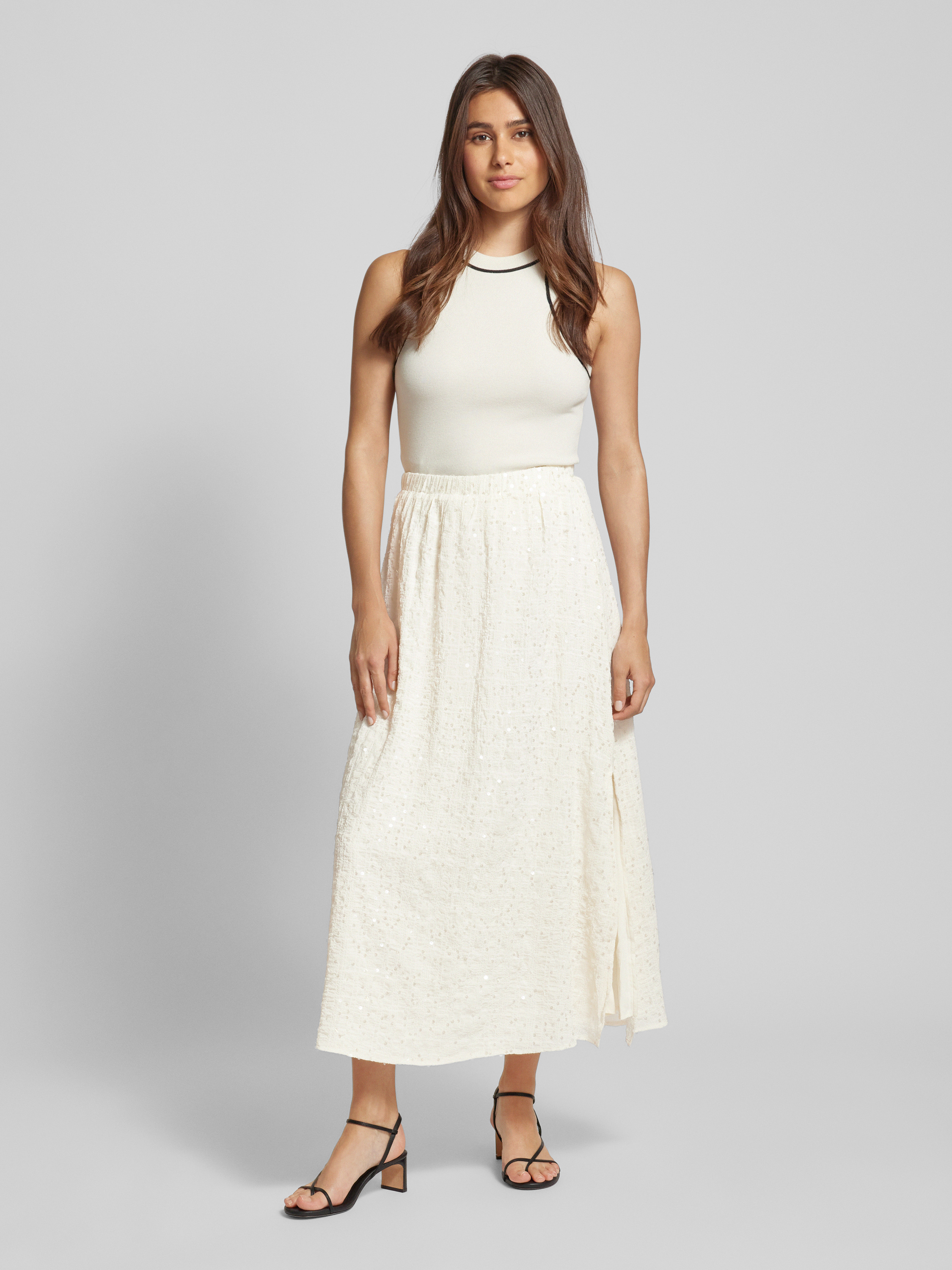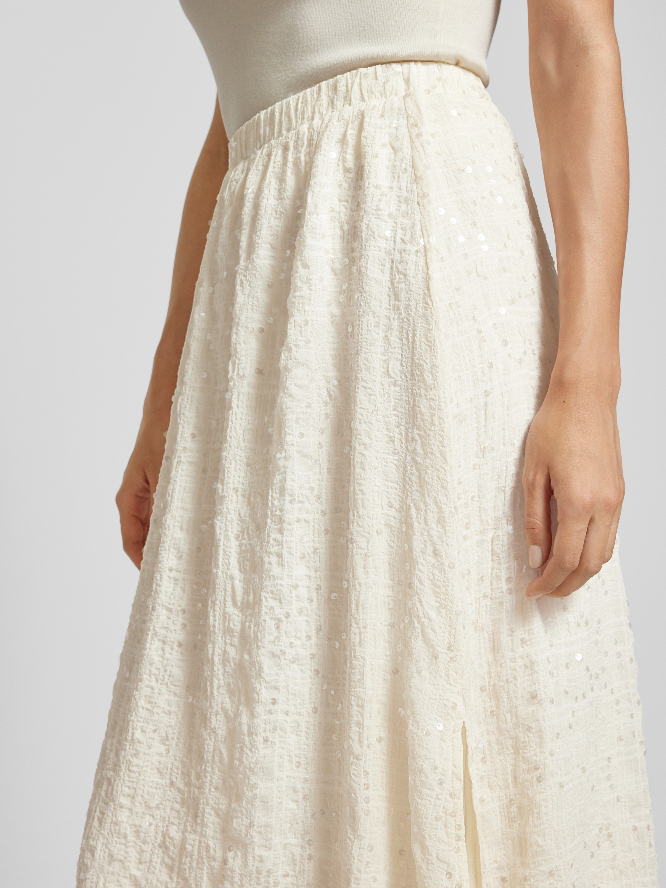 Długa spódnica z cekinowym obszyciem model ‘Nia’ - złamany biały