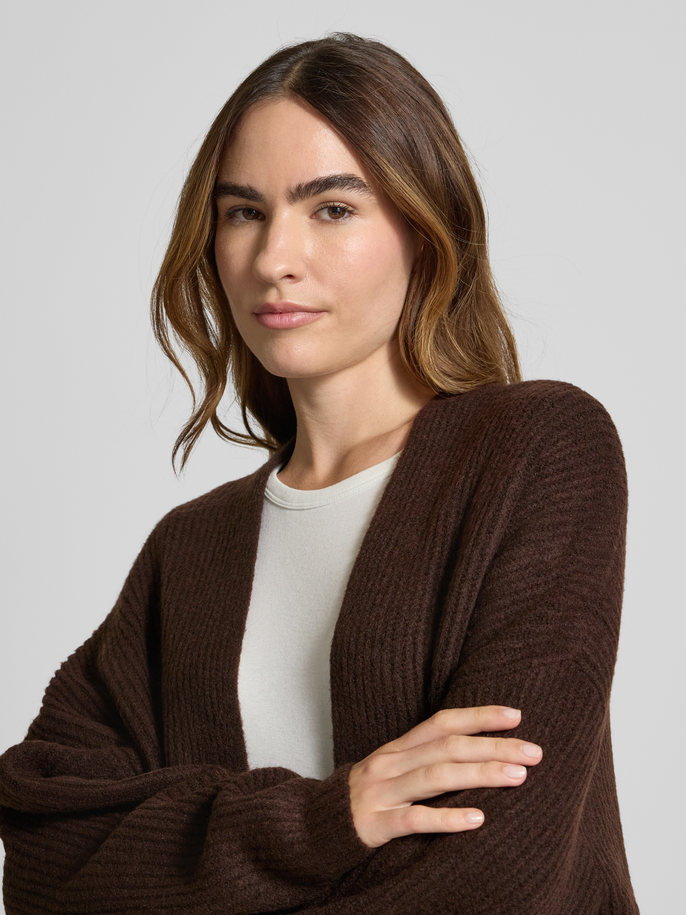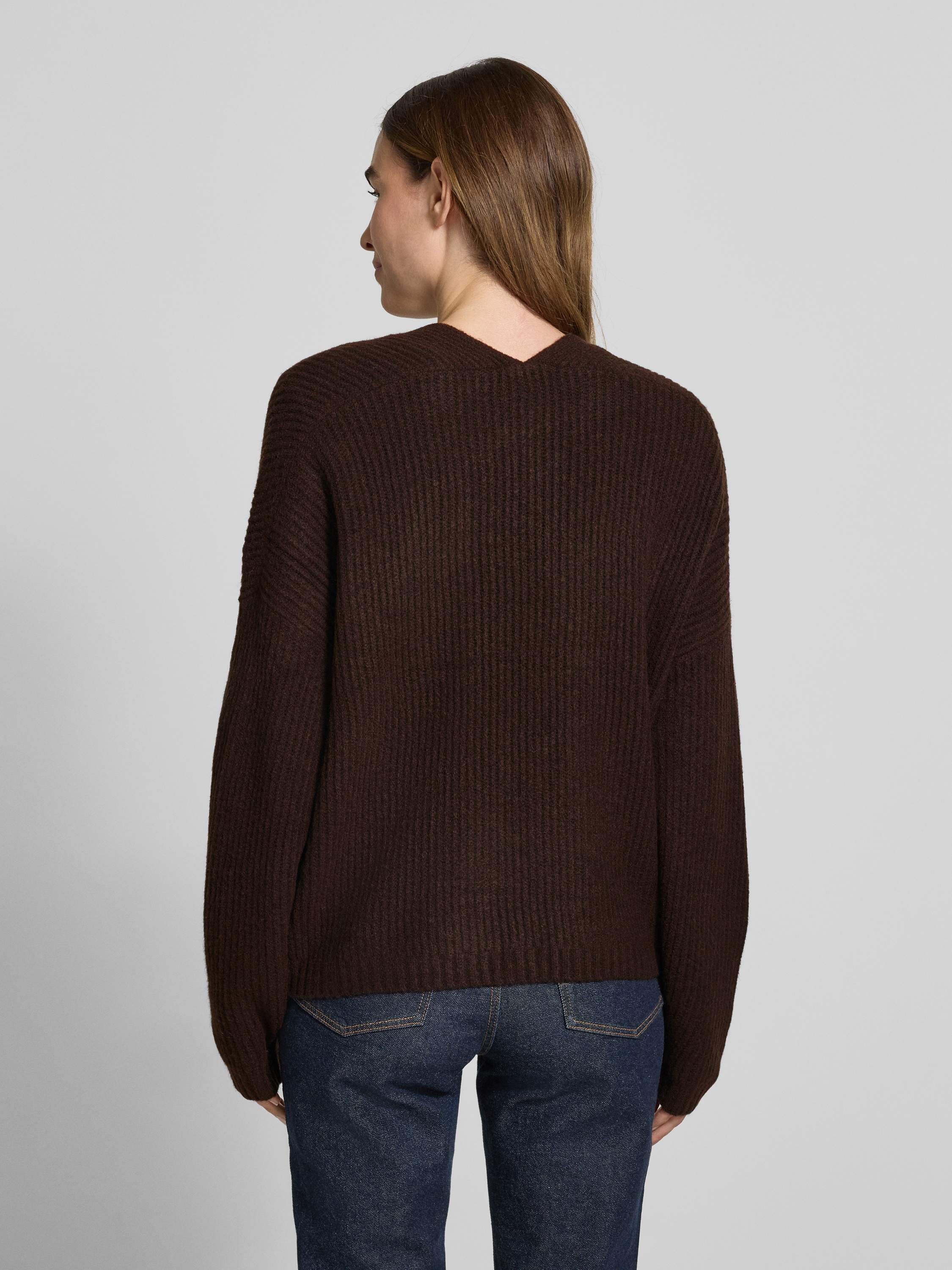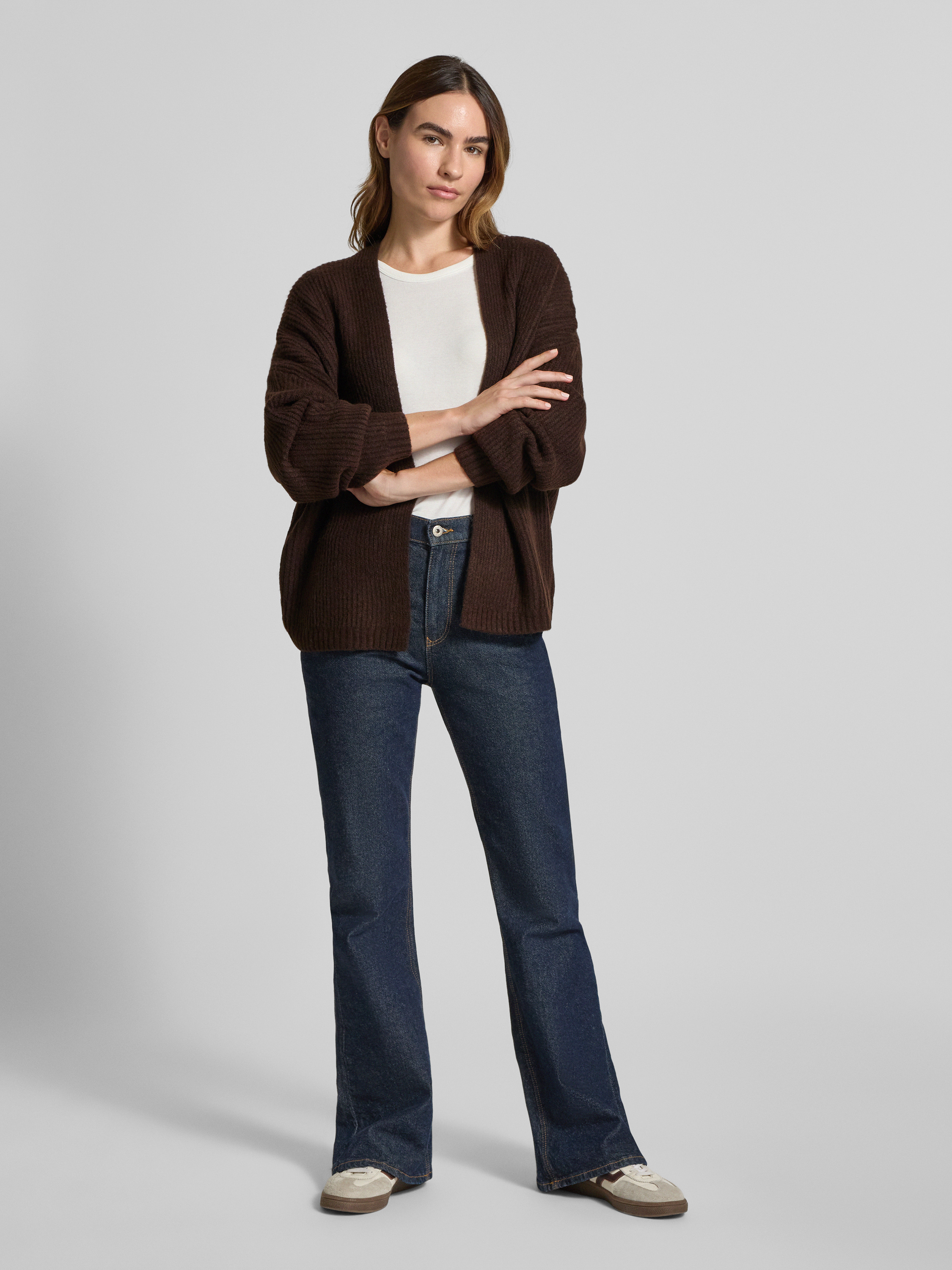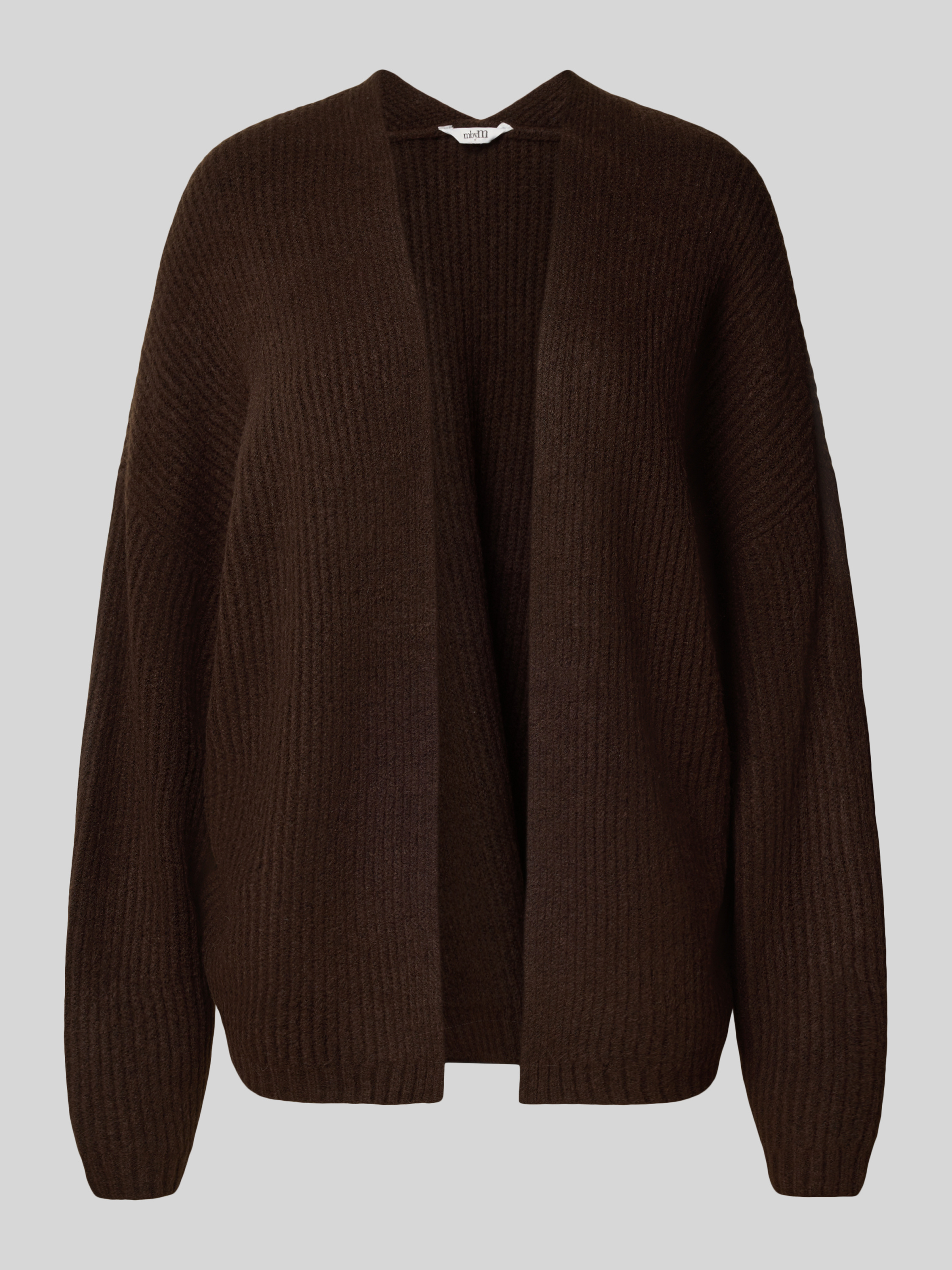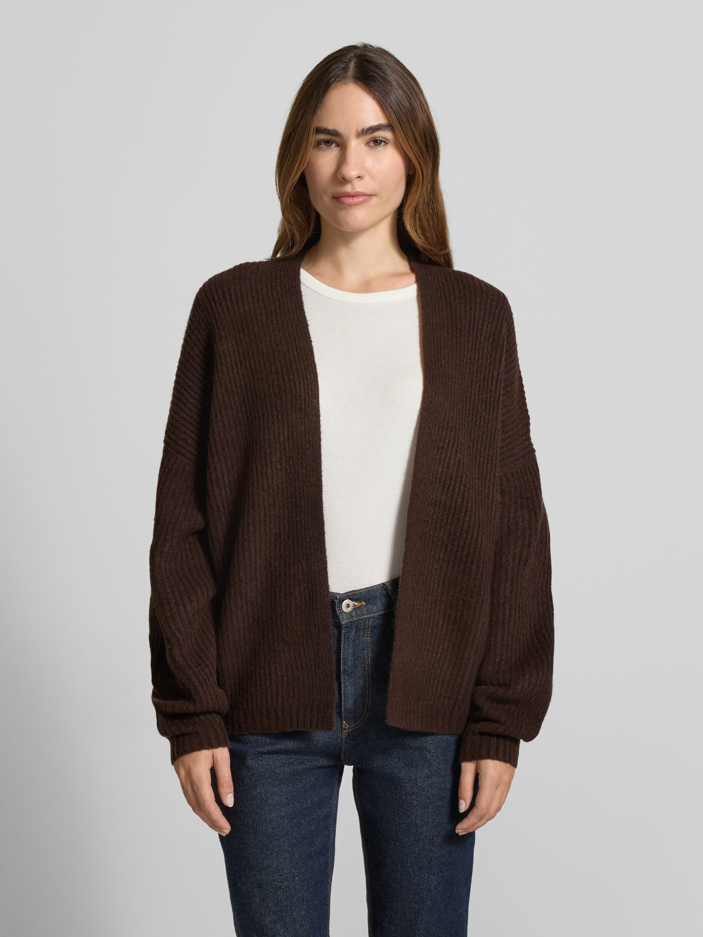 Kardigan z prążkowanymi wykończeniami - średniobrązowy