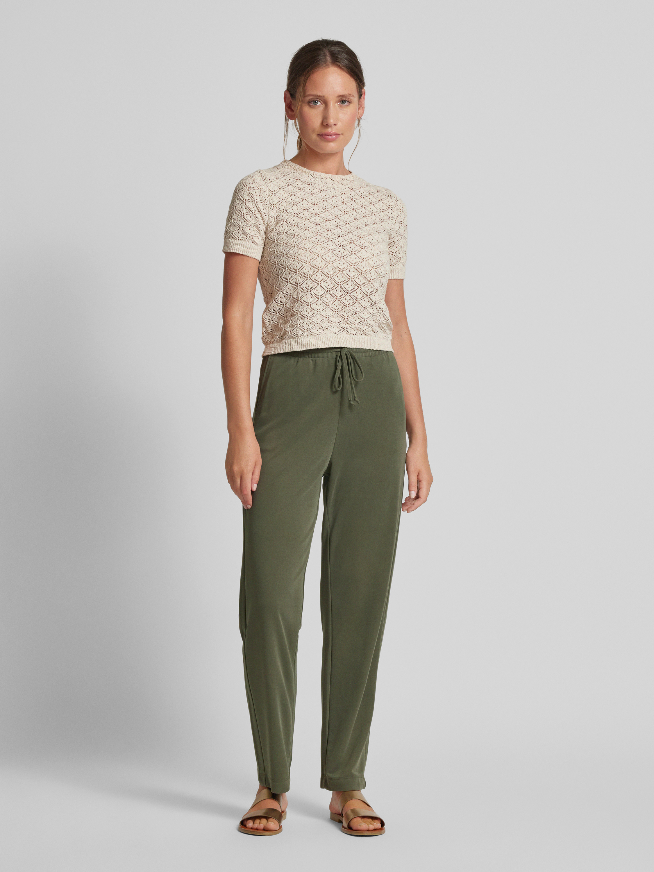 Spodnie materiałowe z prostą nogawką i wpuszczanymi kieszeniami model ‘Berin’ - khaki