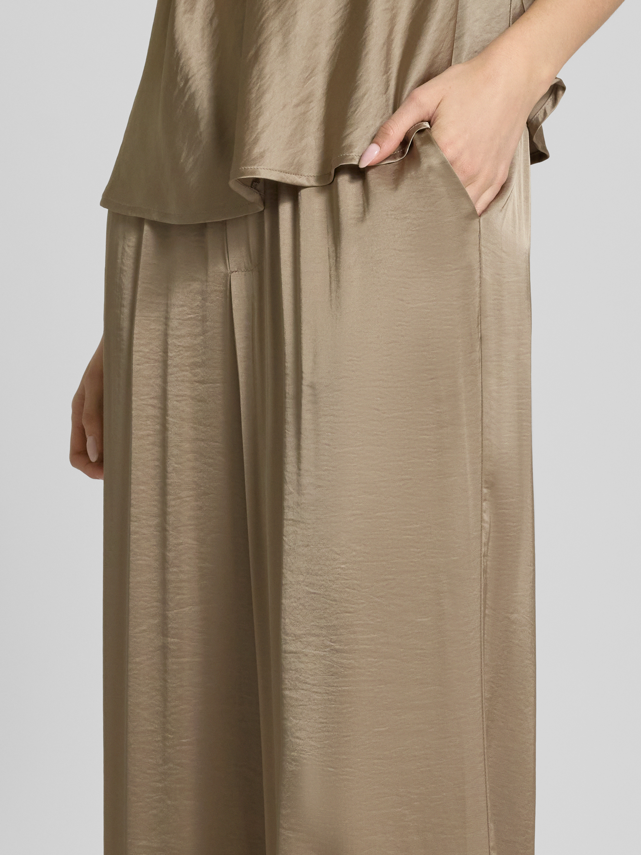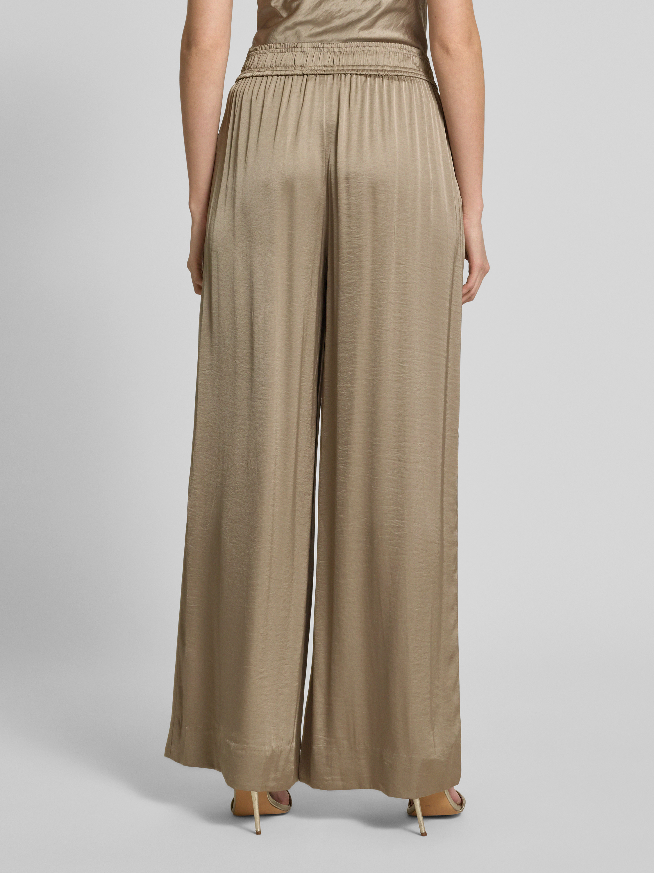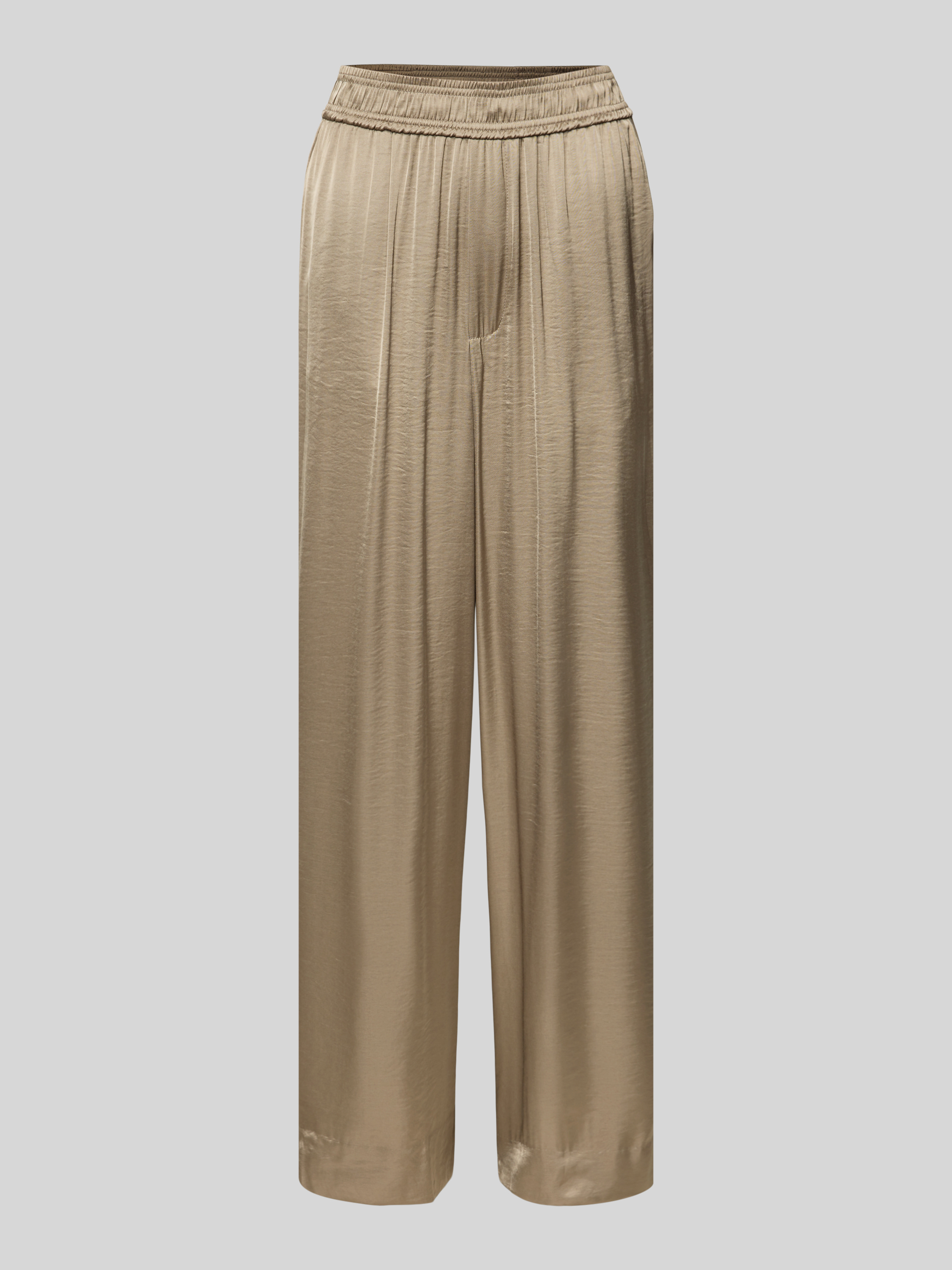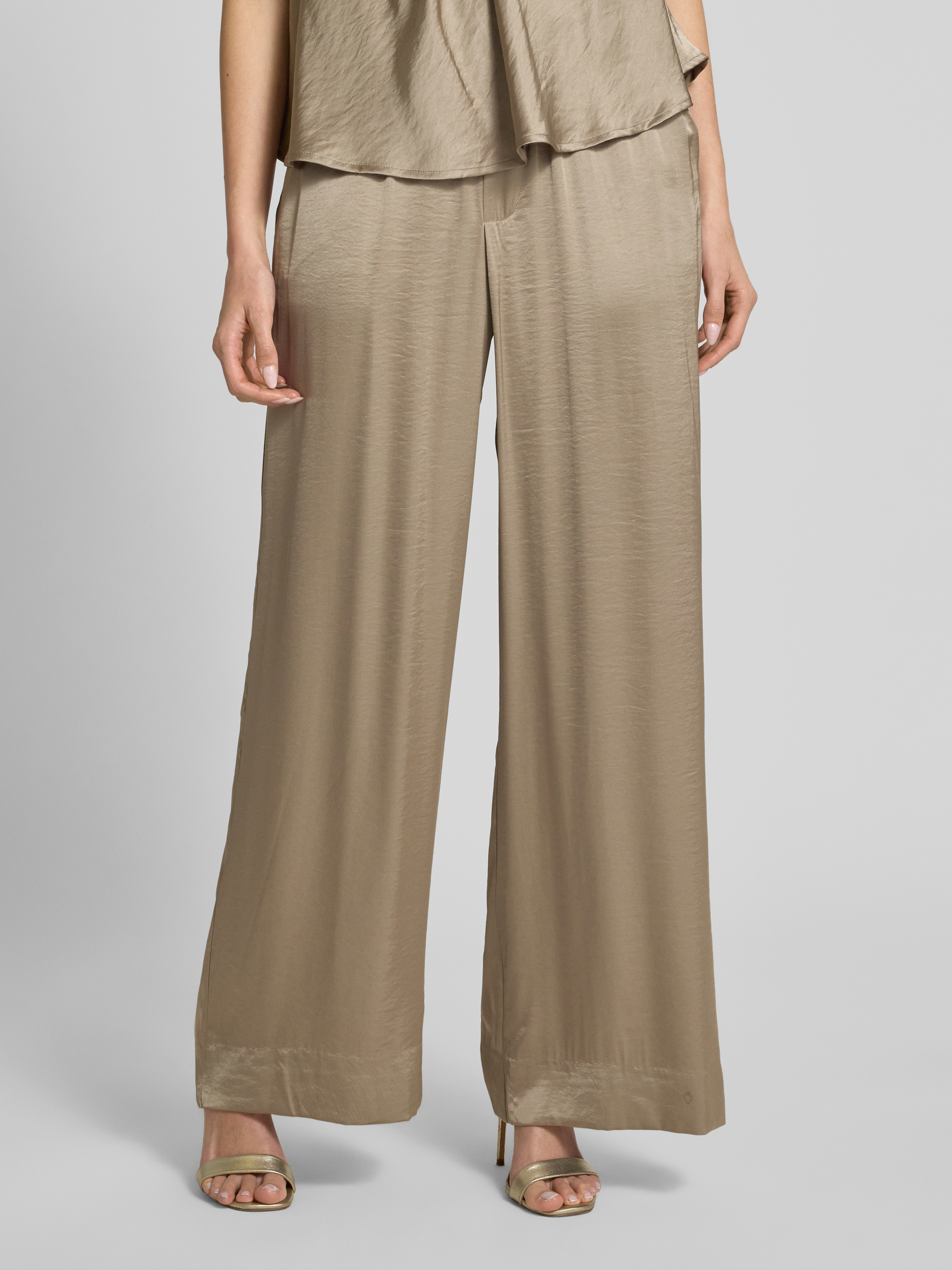 Spodnie materiałowe z szeroką nogawką i elastycznym pasem model ‘Asaka’ - beżowy