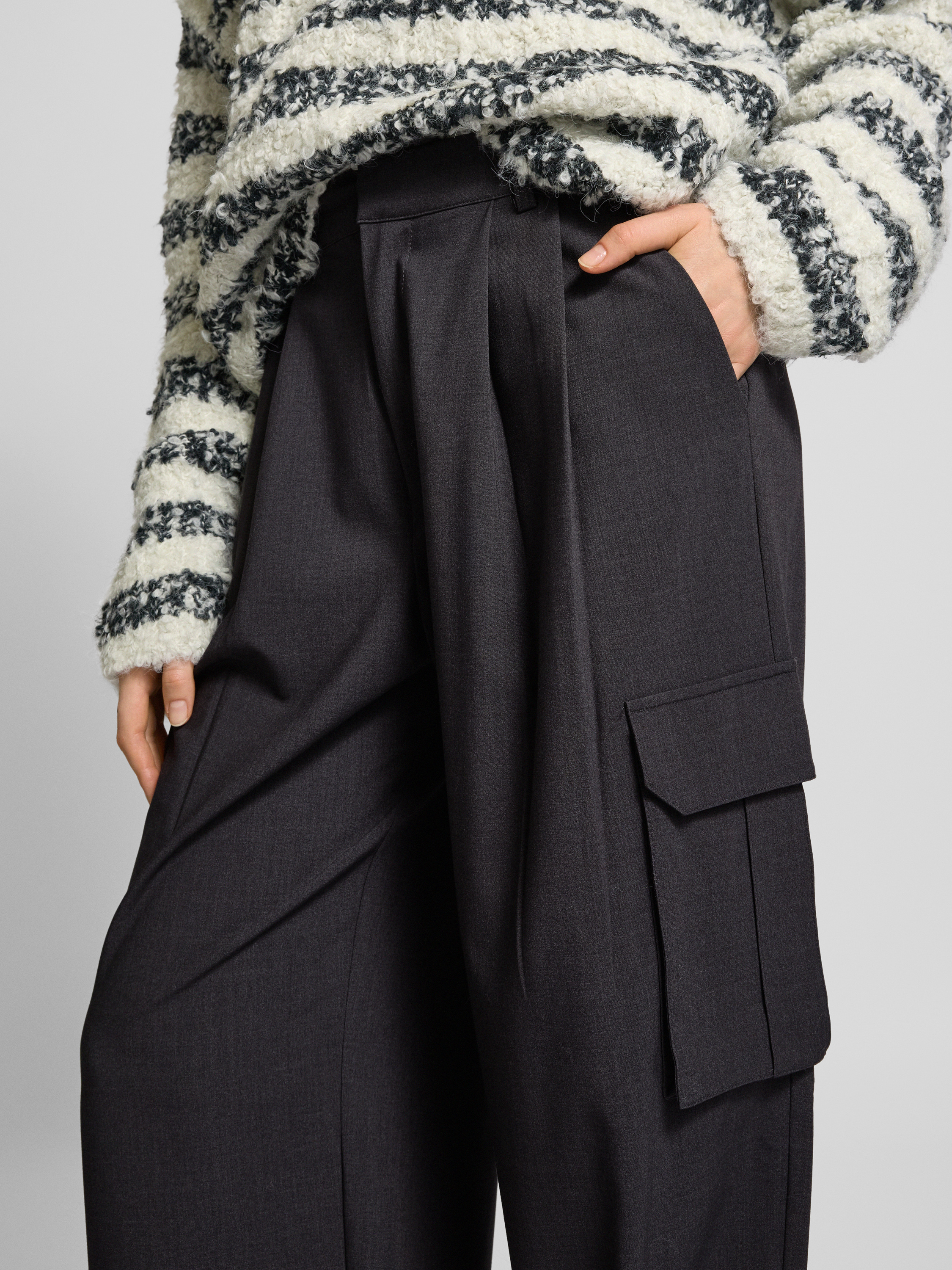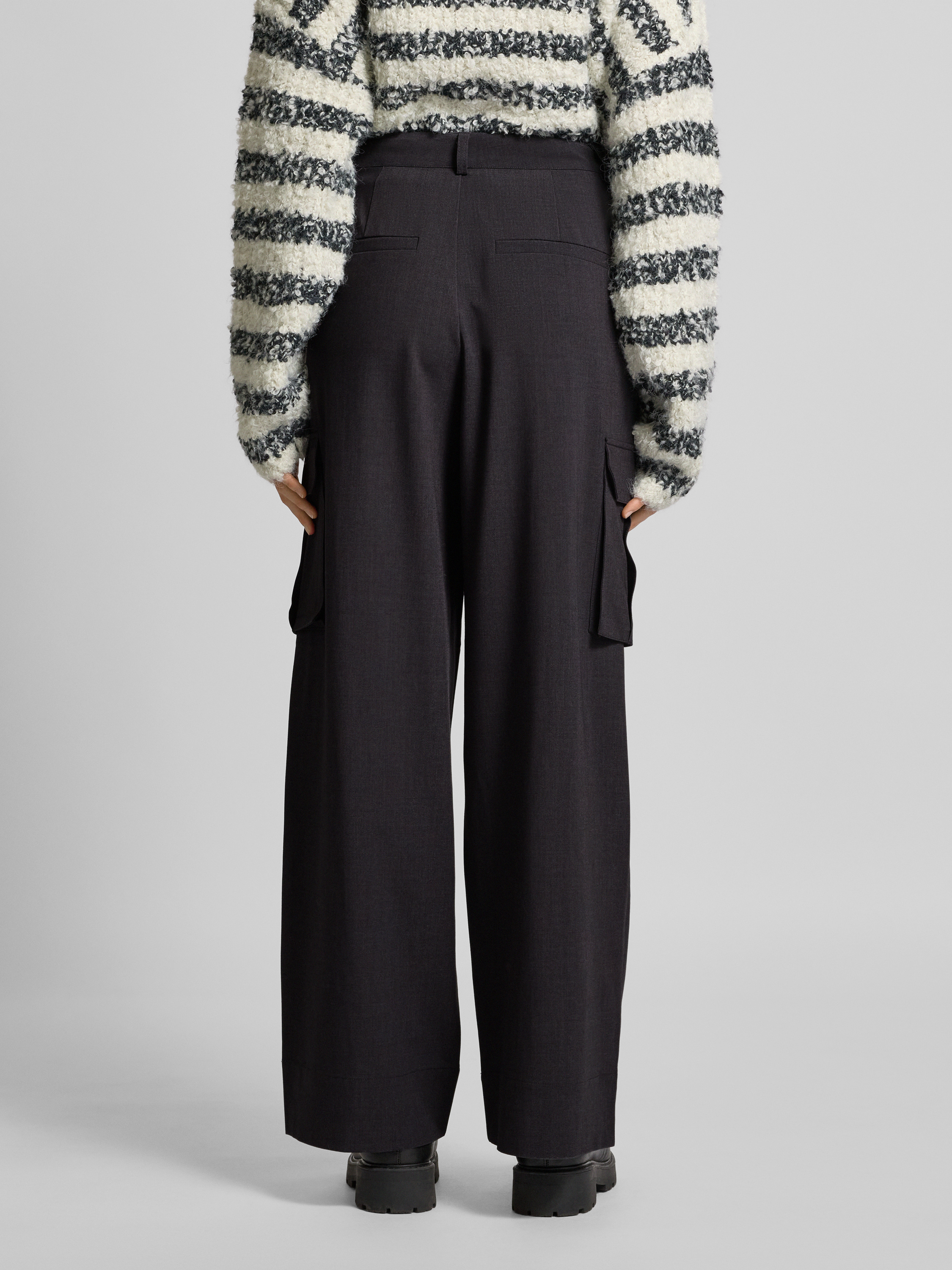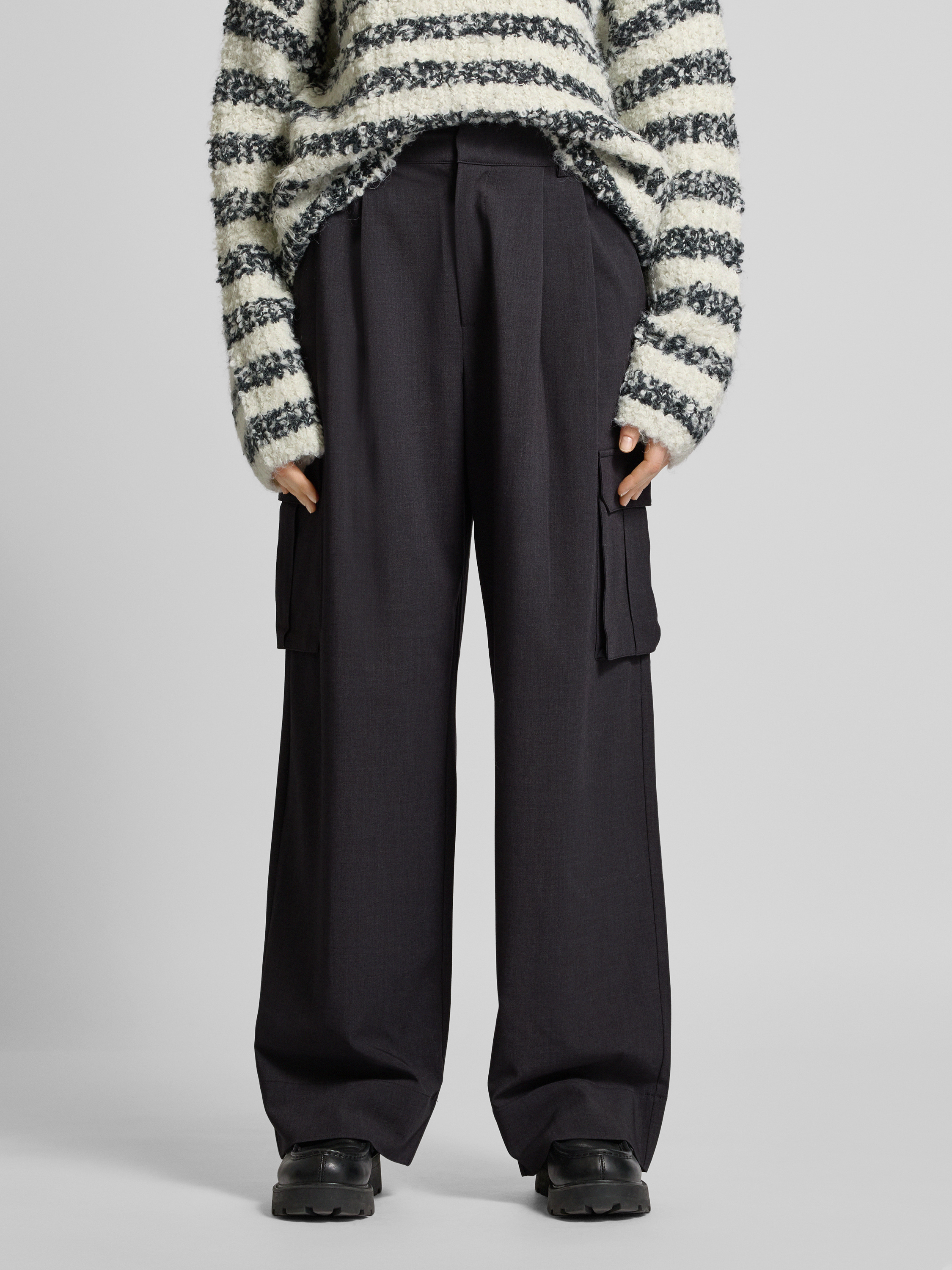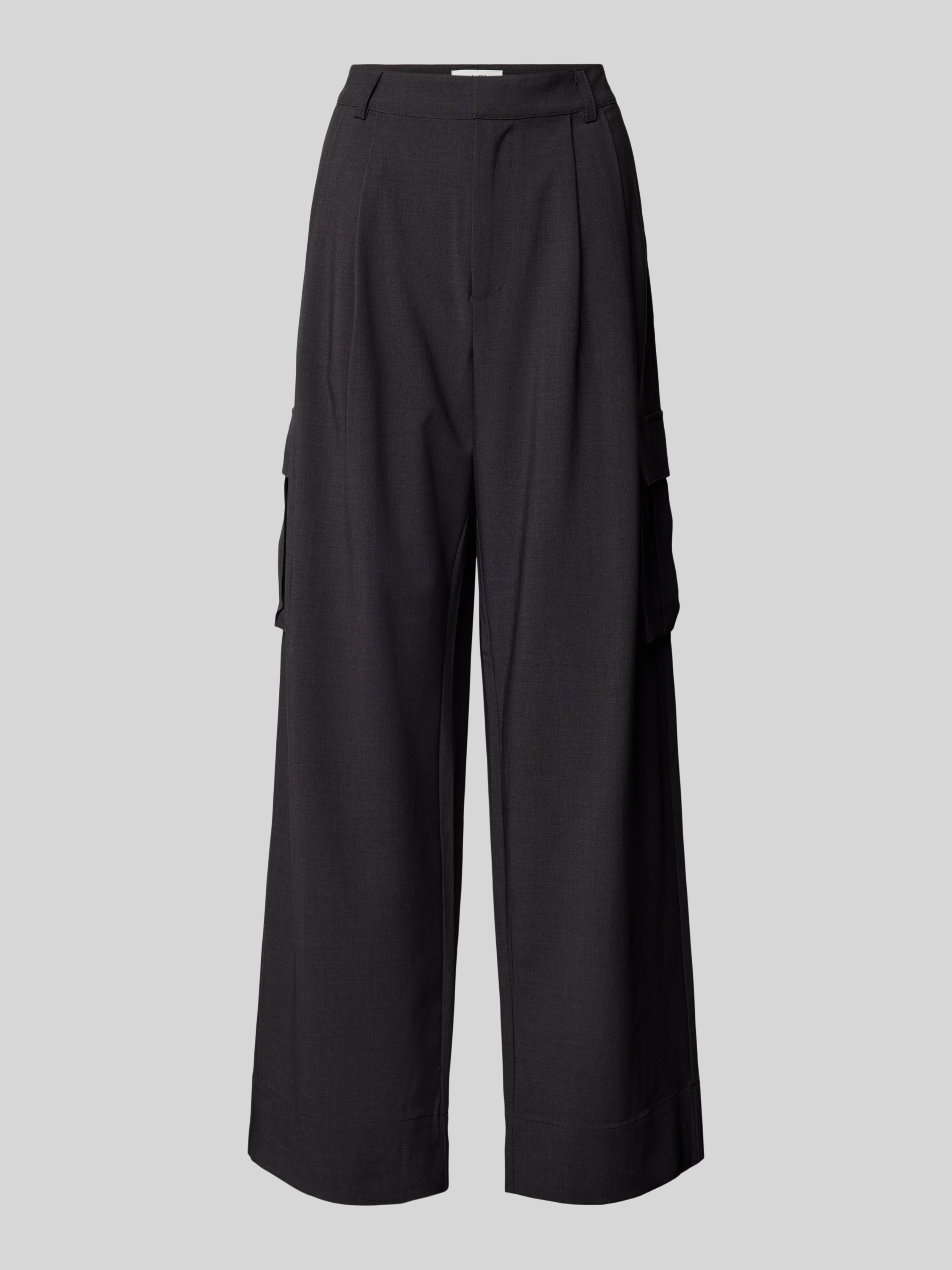 Spodnie z zakładkami w pasie, szeroką nogawką i kieszeniami cargo model ‘Valo’ - antracytowy