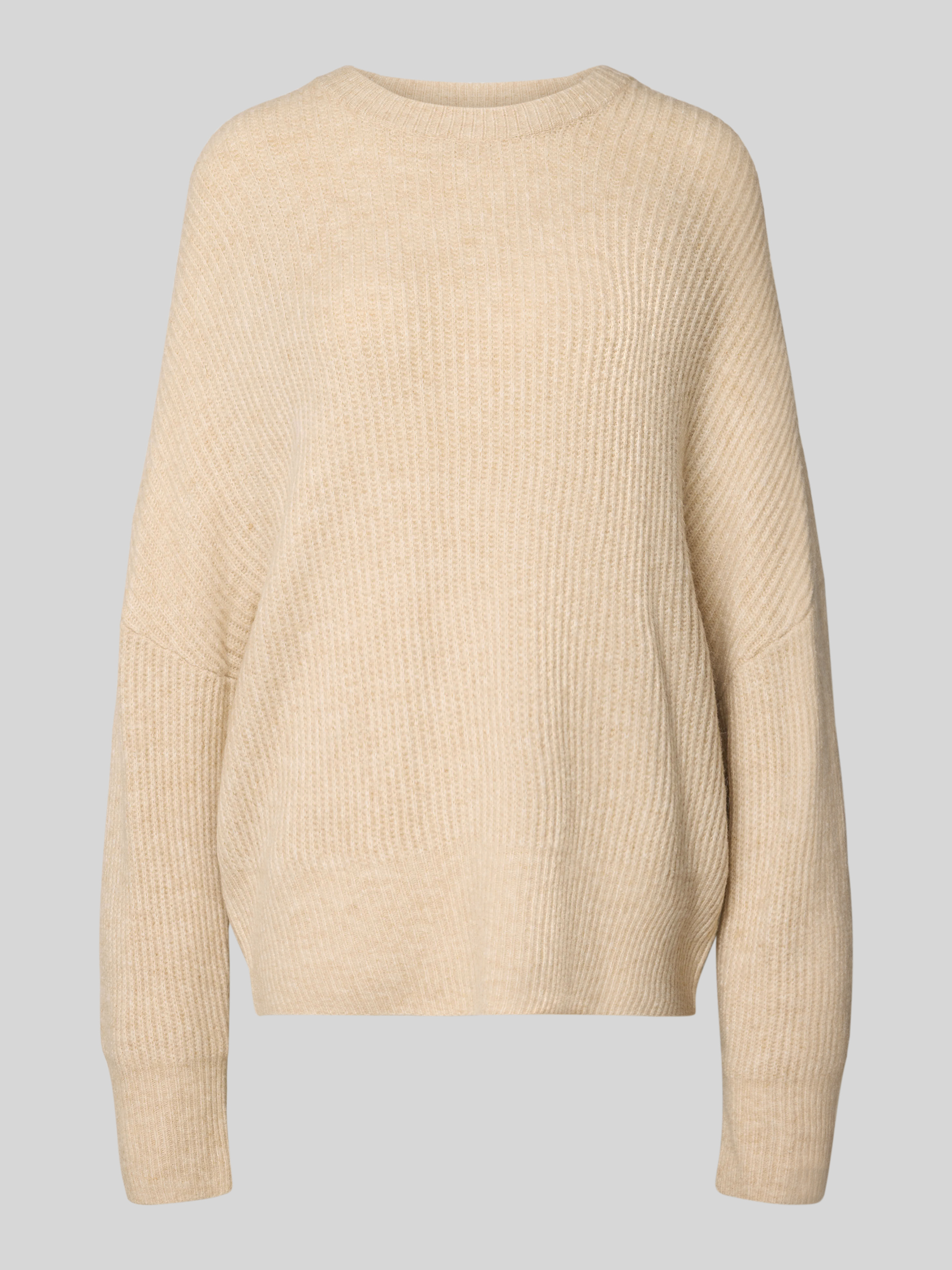 Sweter z dzianiny z okrągłym dekoltem model ‘Gillian’ - beżowy