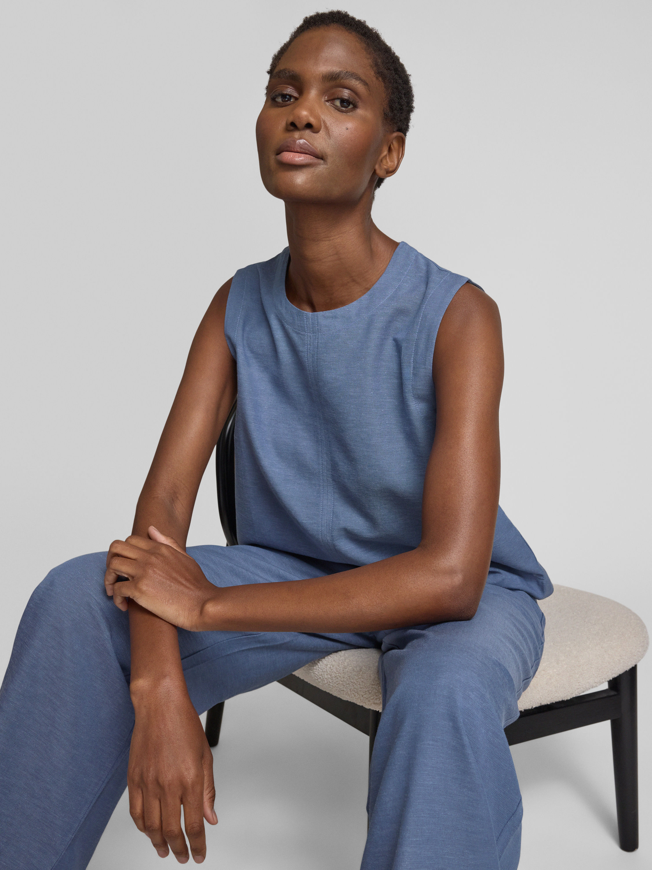 Top bluzkowy o kroju regular fit z okrągłym dekoltem model ‘Tytus’ - szaroniebieski
