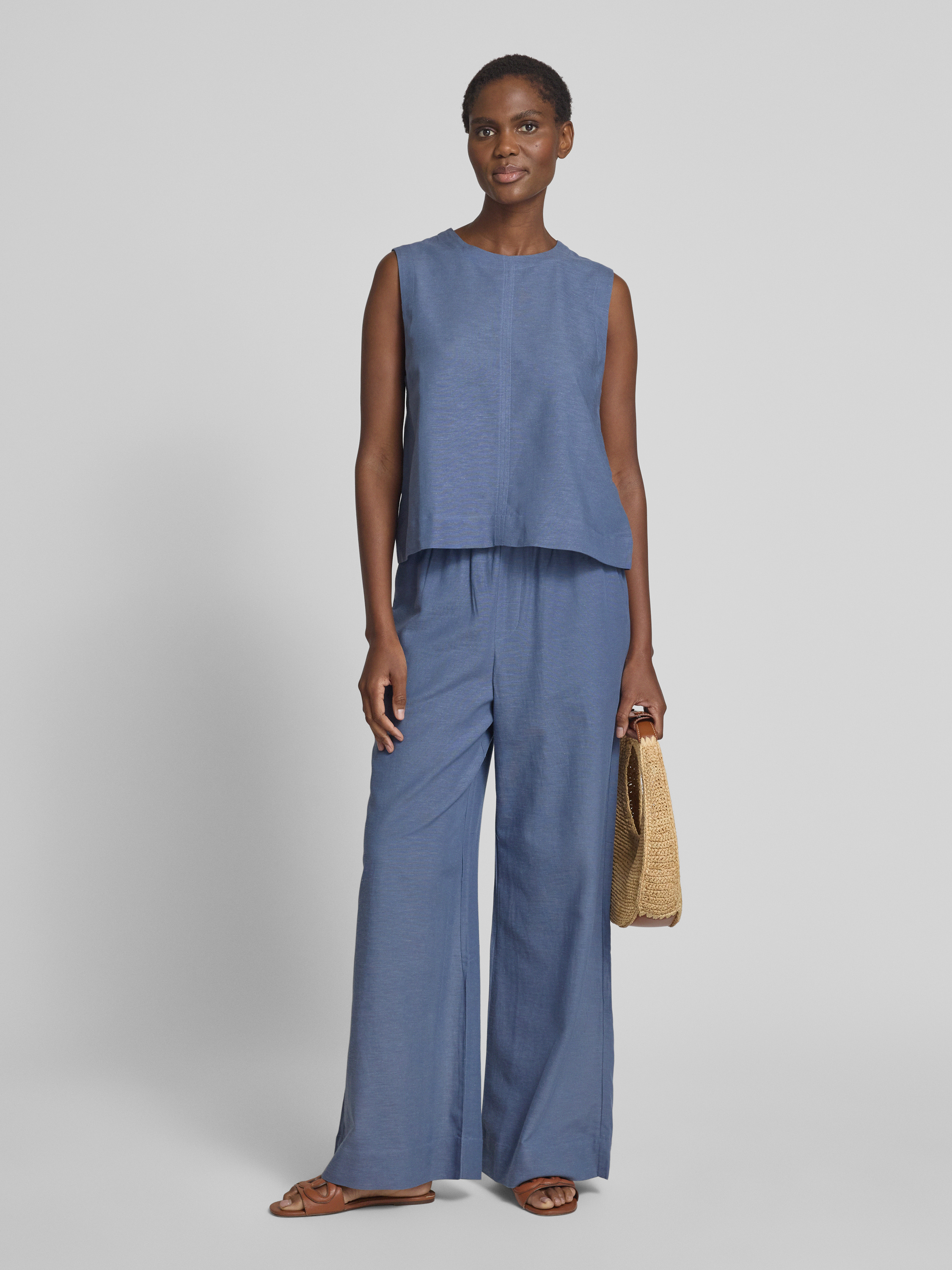 Spodnie materiałowe z szeroką nogawką i elastycznym pasem model ‘Asaka’