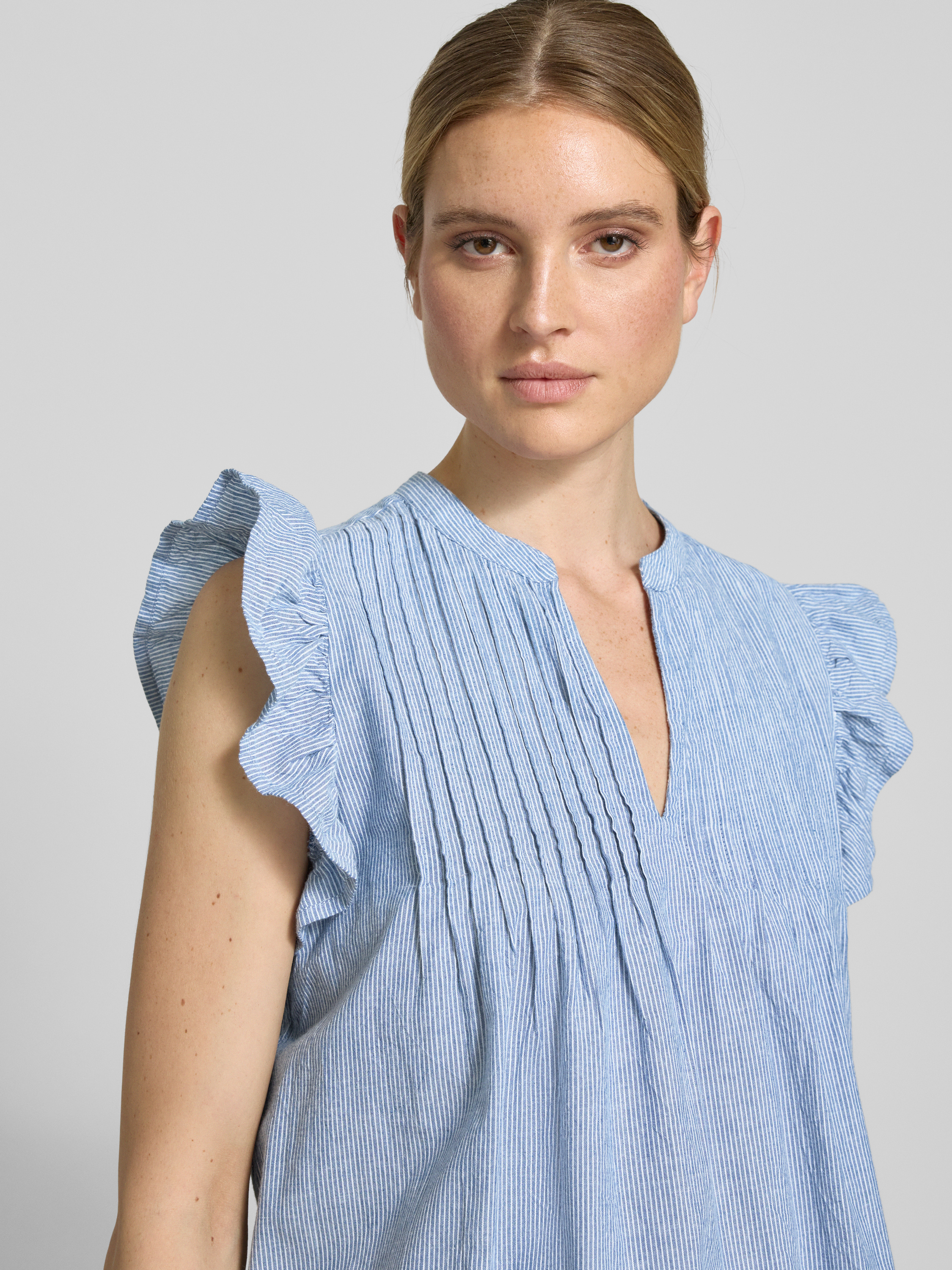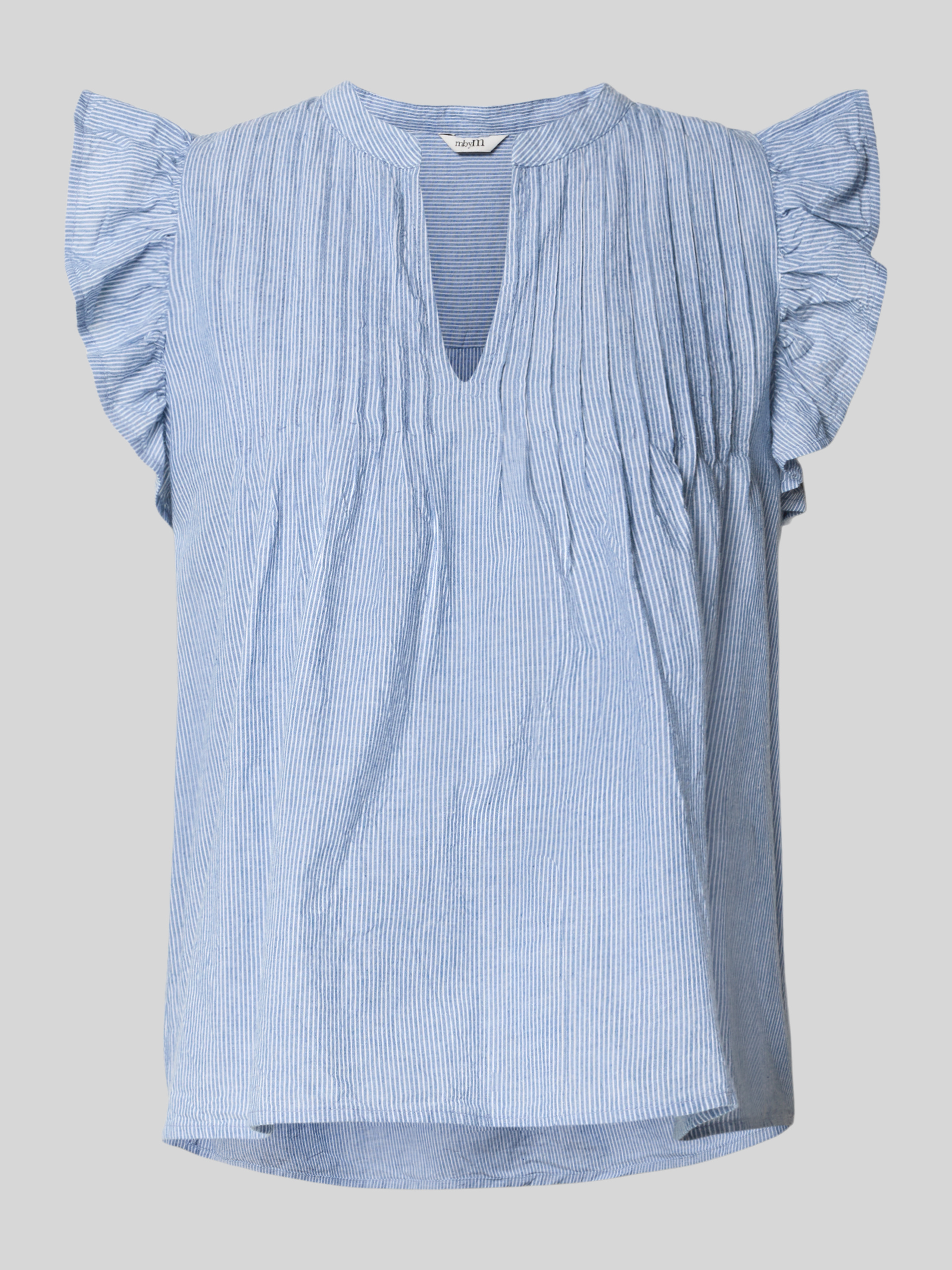 Top bluzkowy o kroju regular fit z plisami model ‘Gemala’ - jasnoniebieski