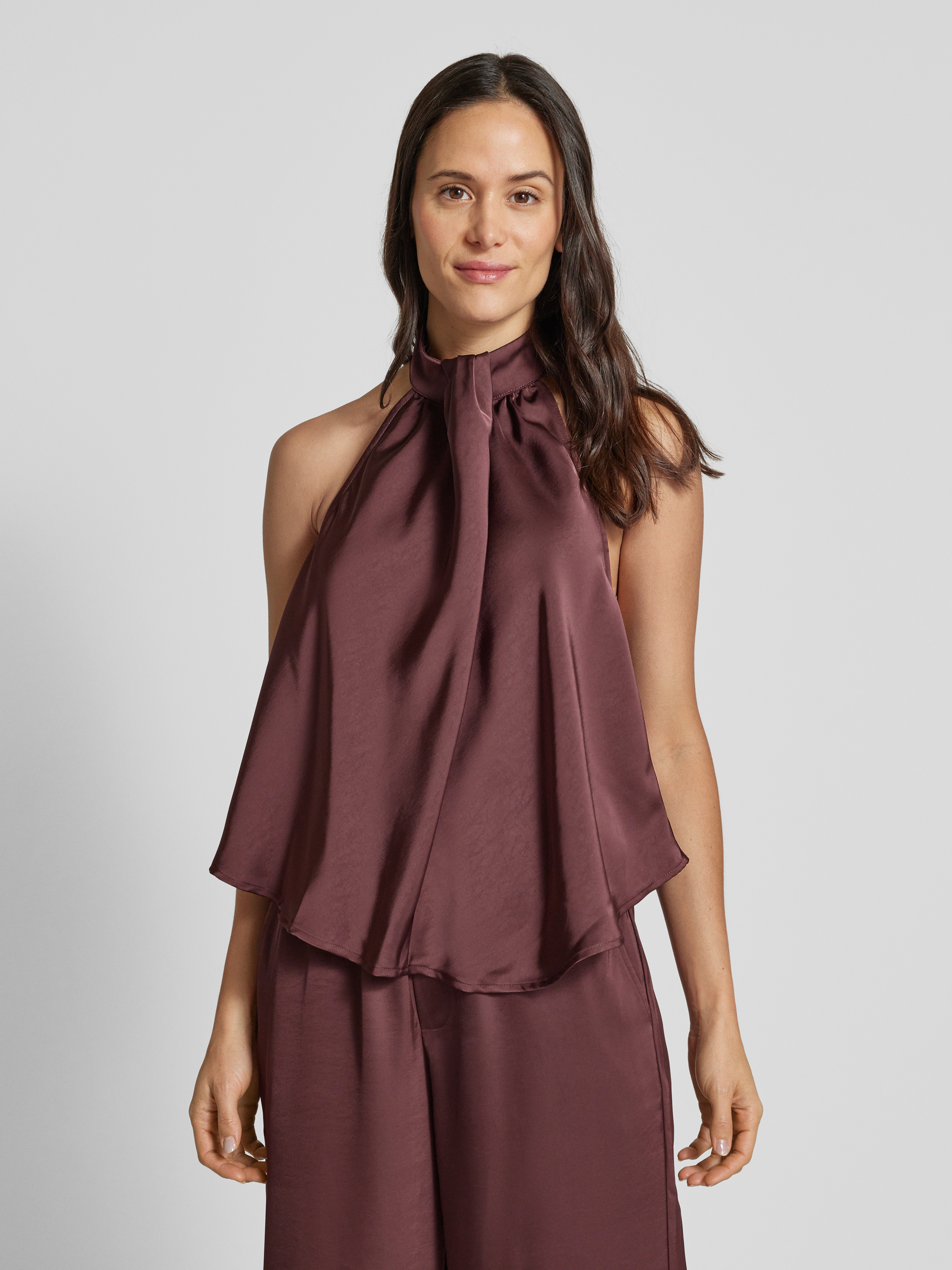 Top bluzkowy z wiązaniem na szyi model ‘Zuzela’ - bordowy