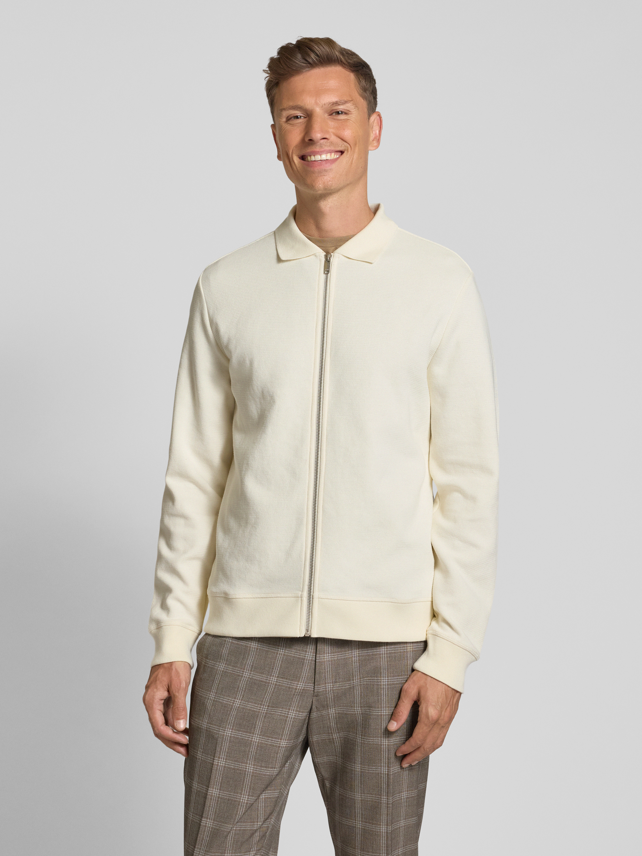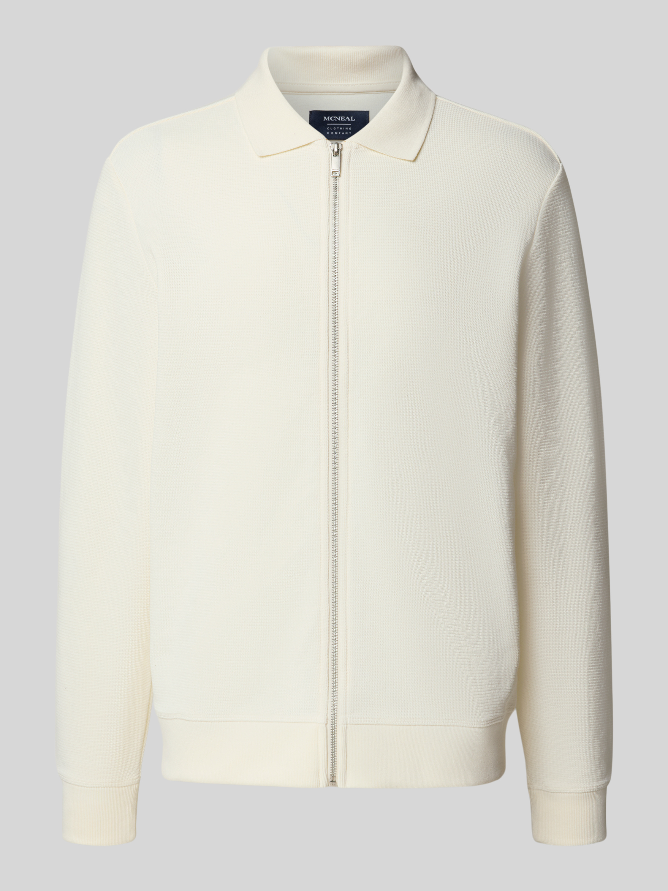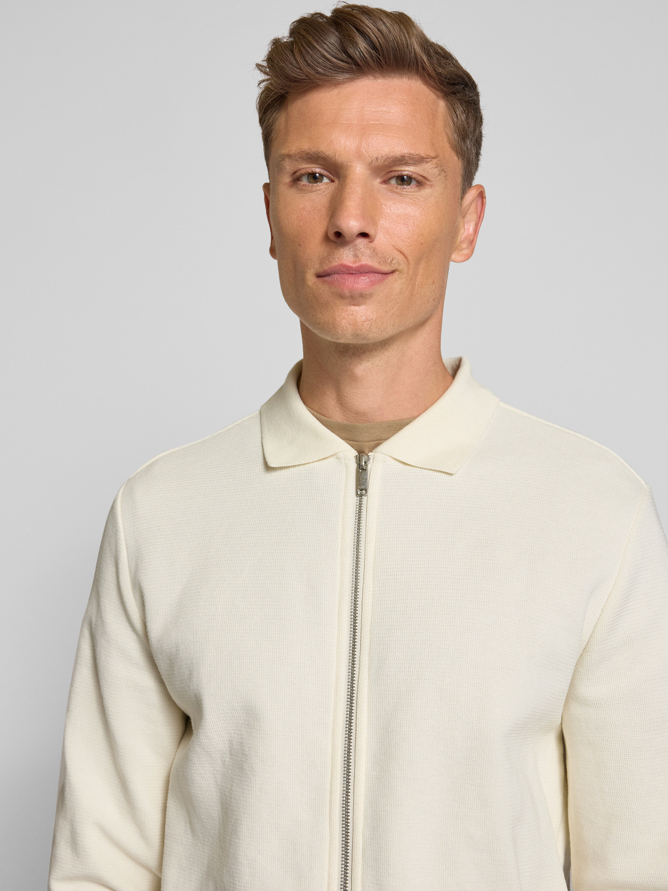 Kardigan z kołnierzykiem polo i zamkiem błyskawicznym - écru