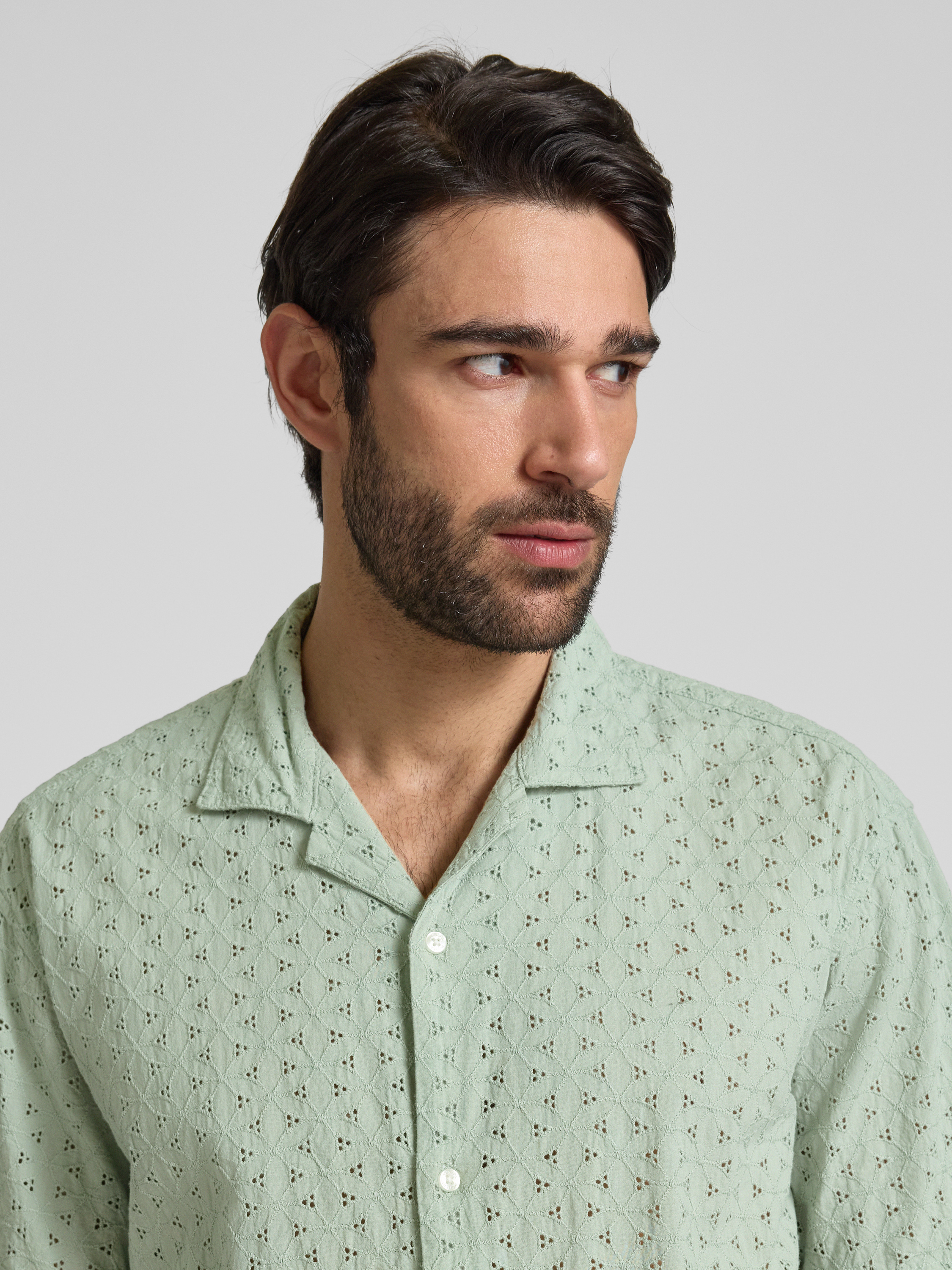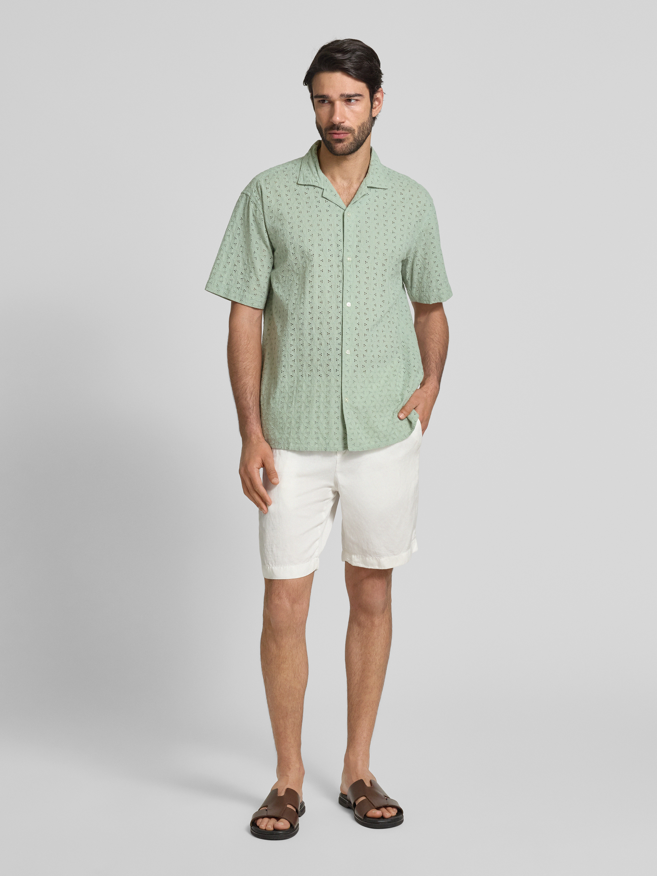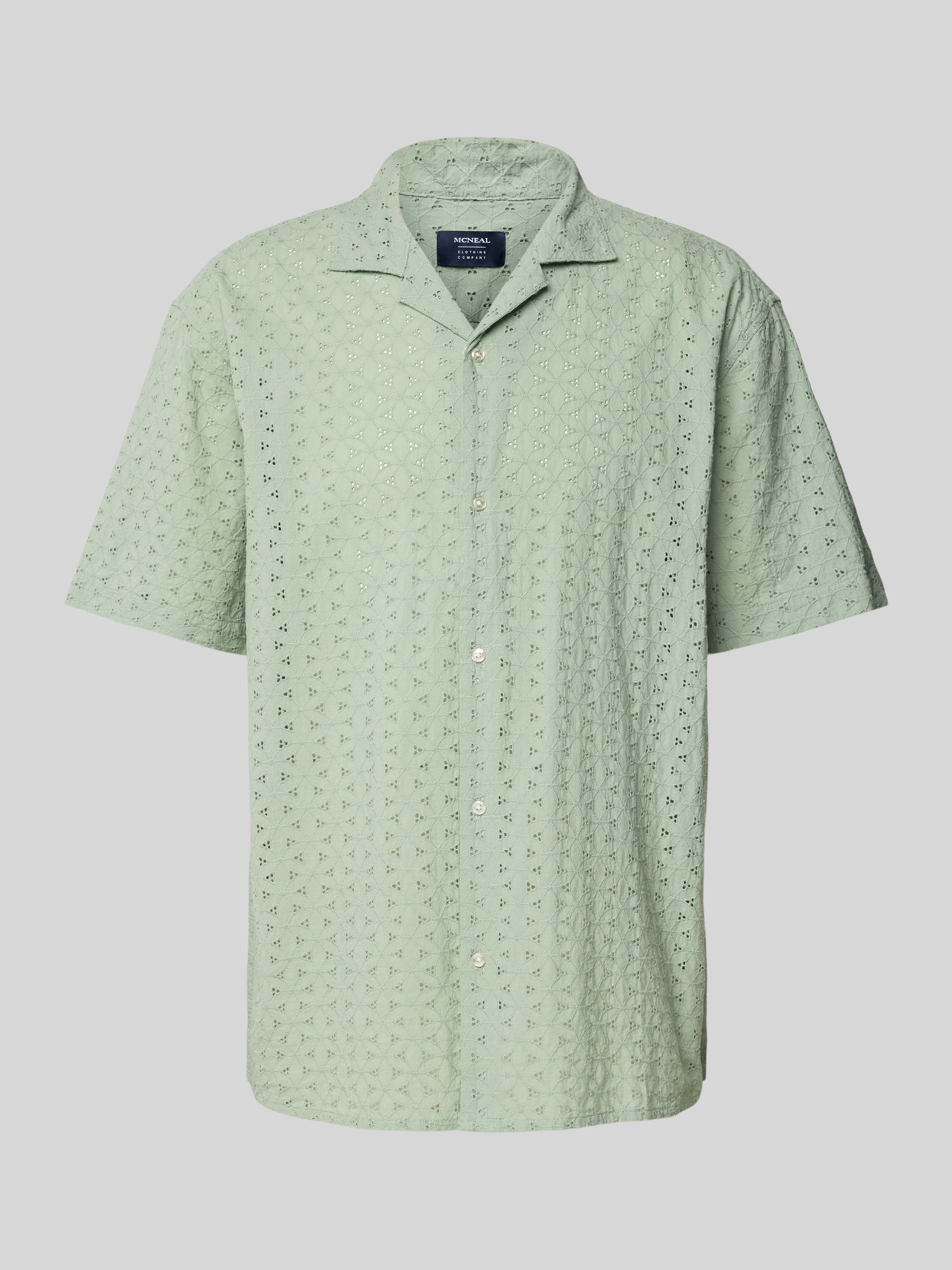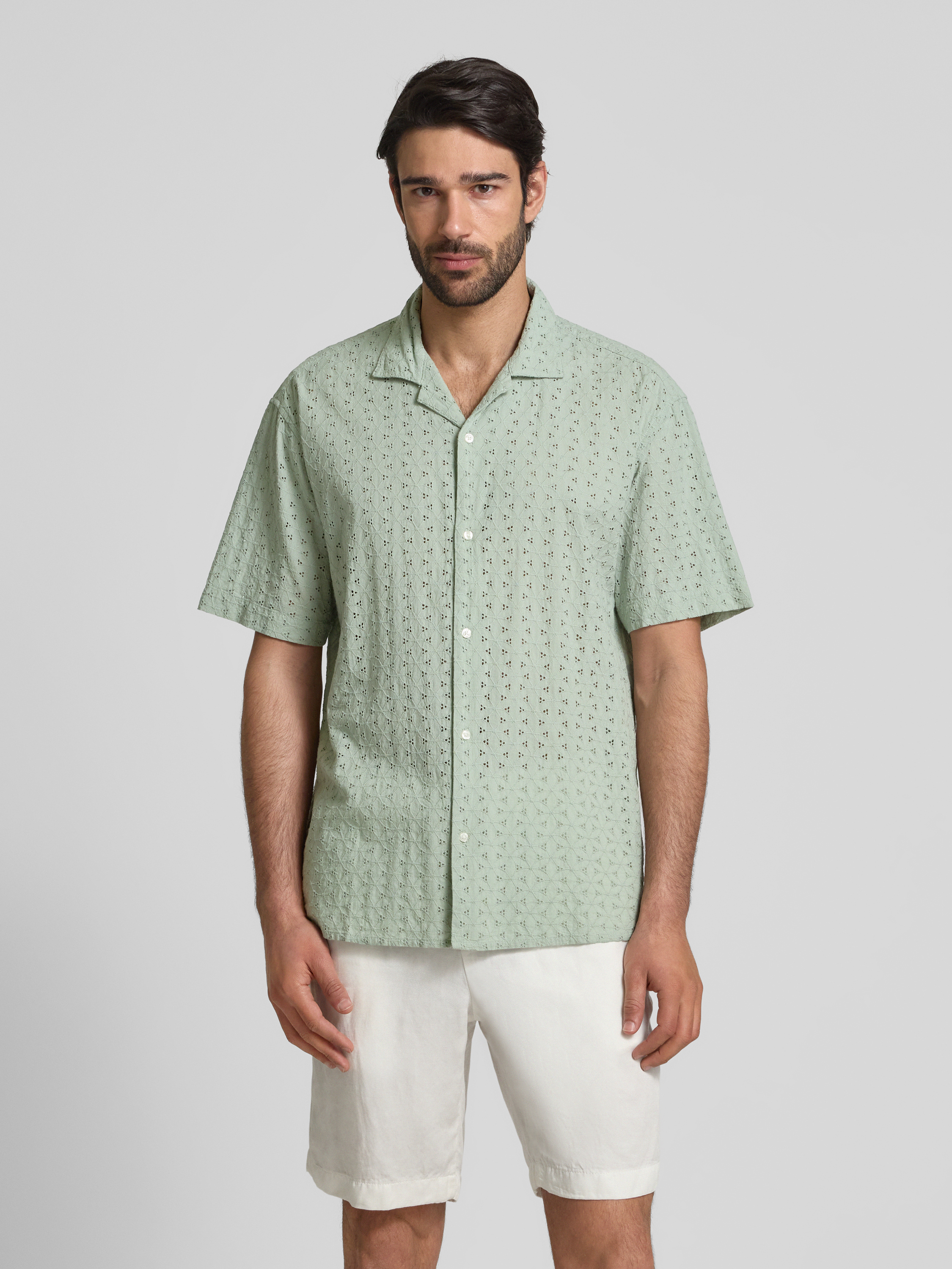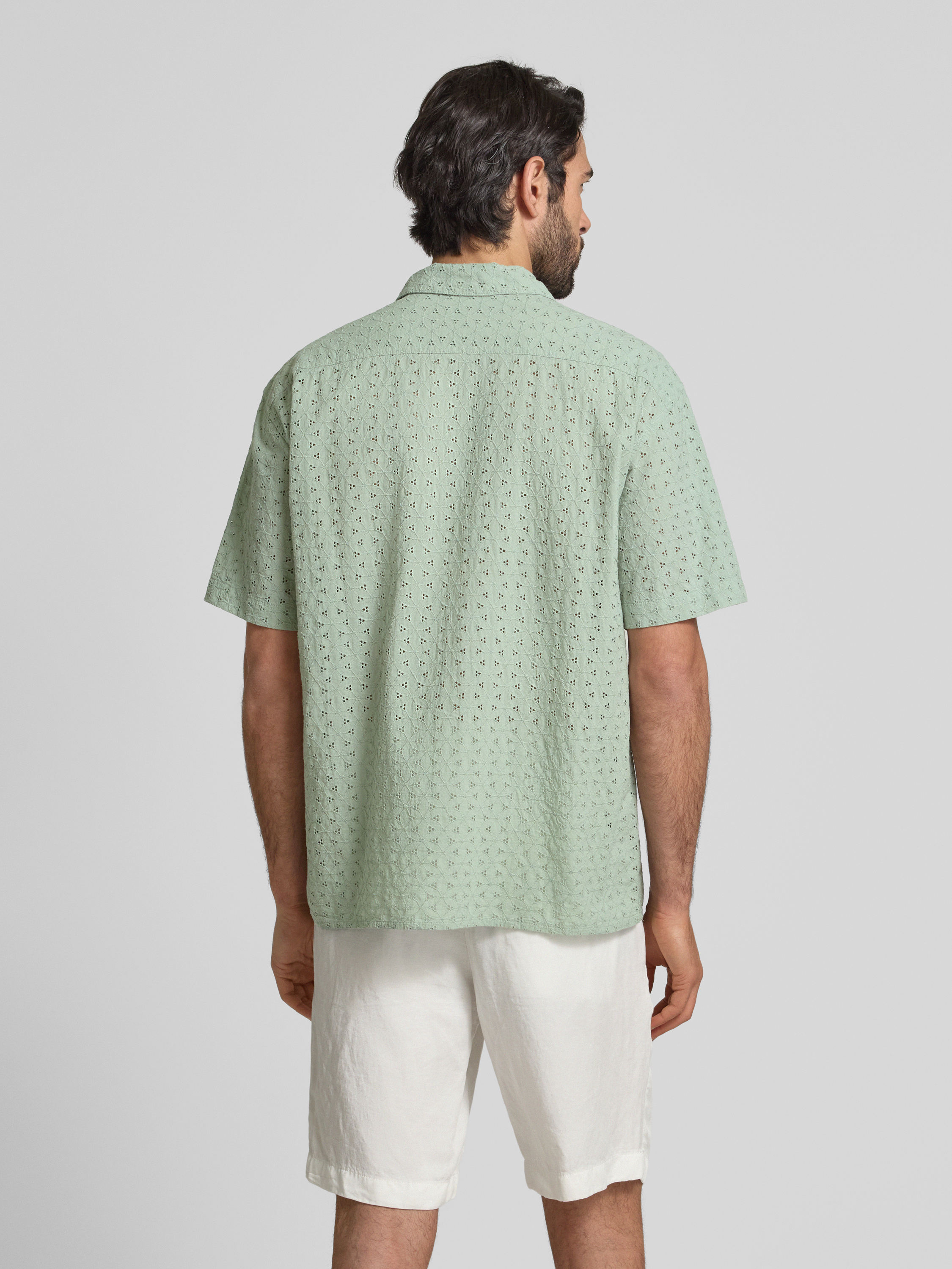 Koszula casualowa o kroju regular fit z haftem angielskim - limonkowy