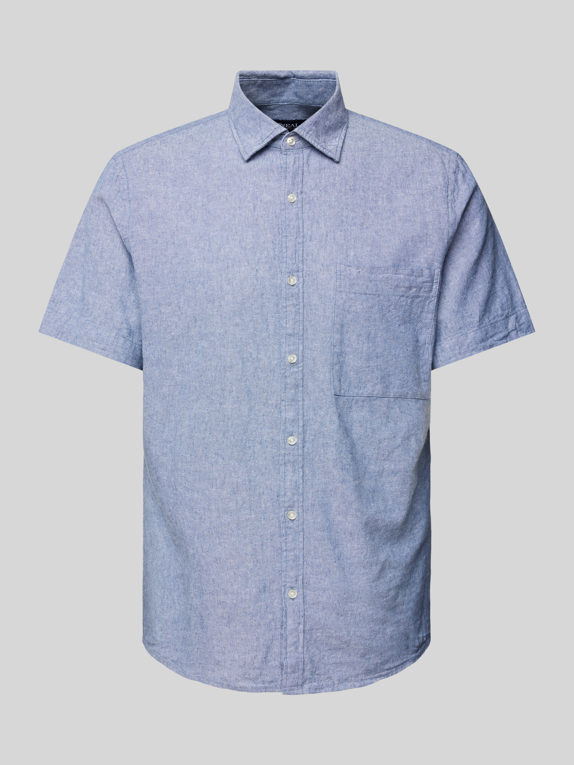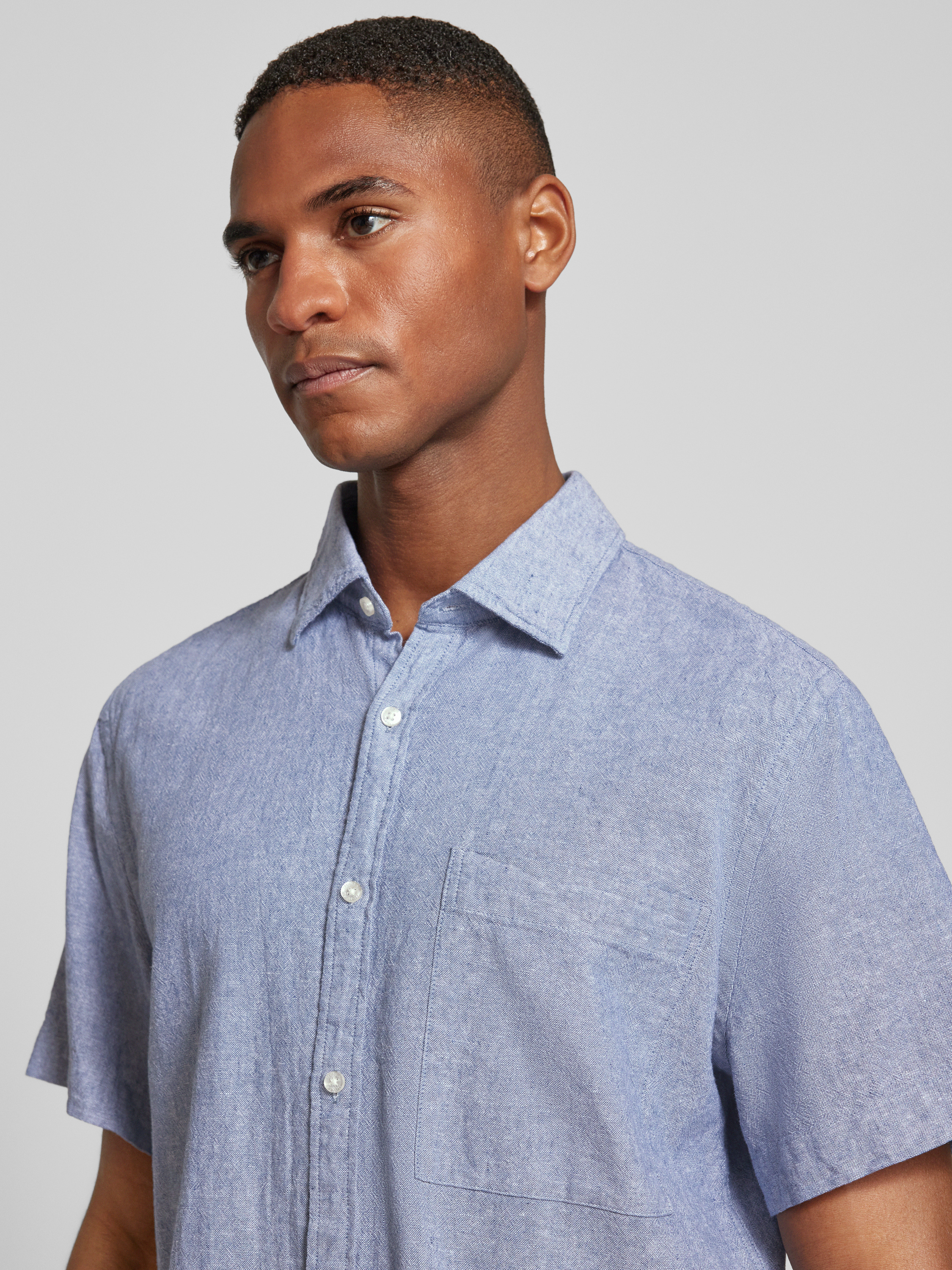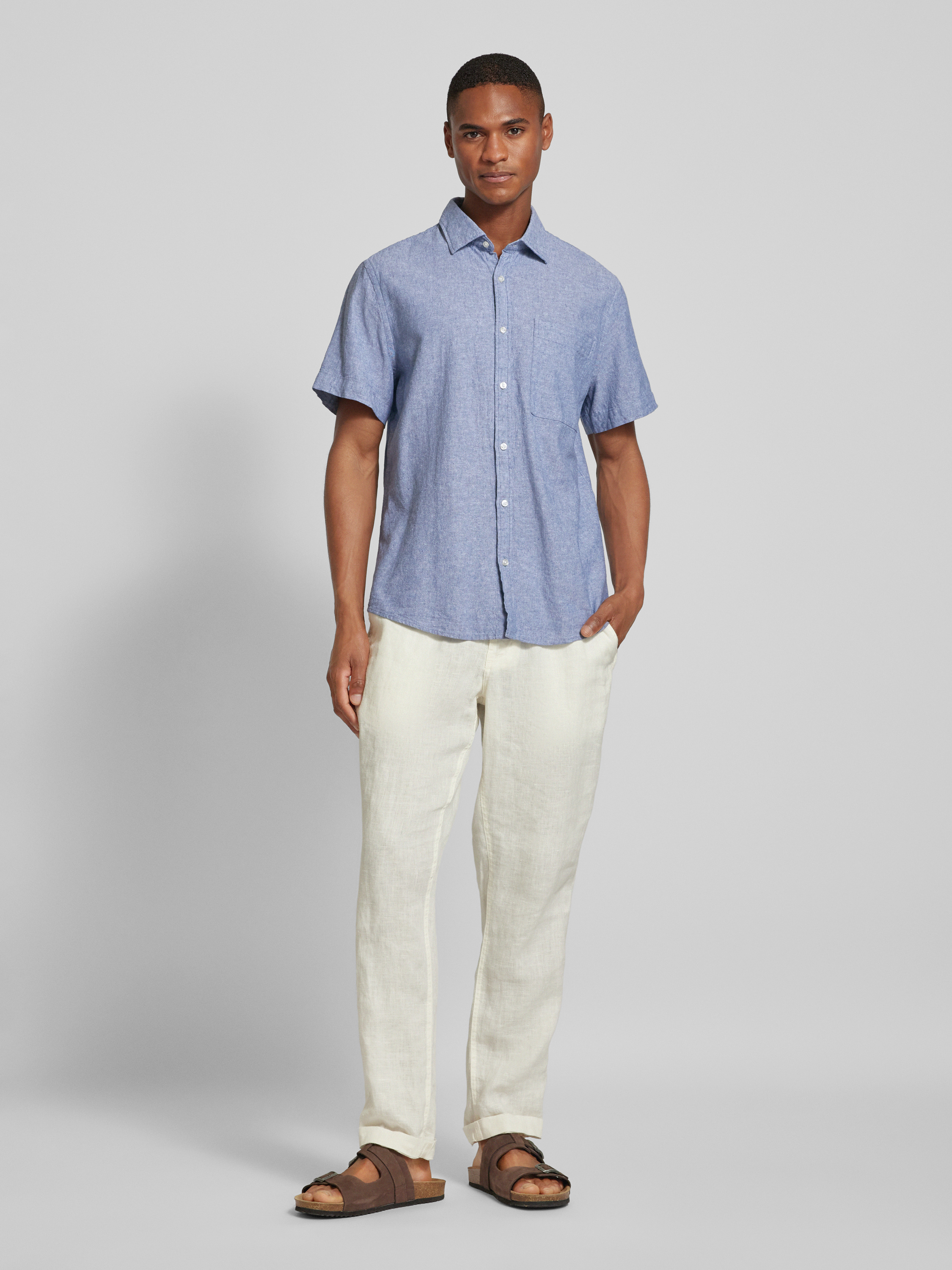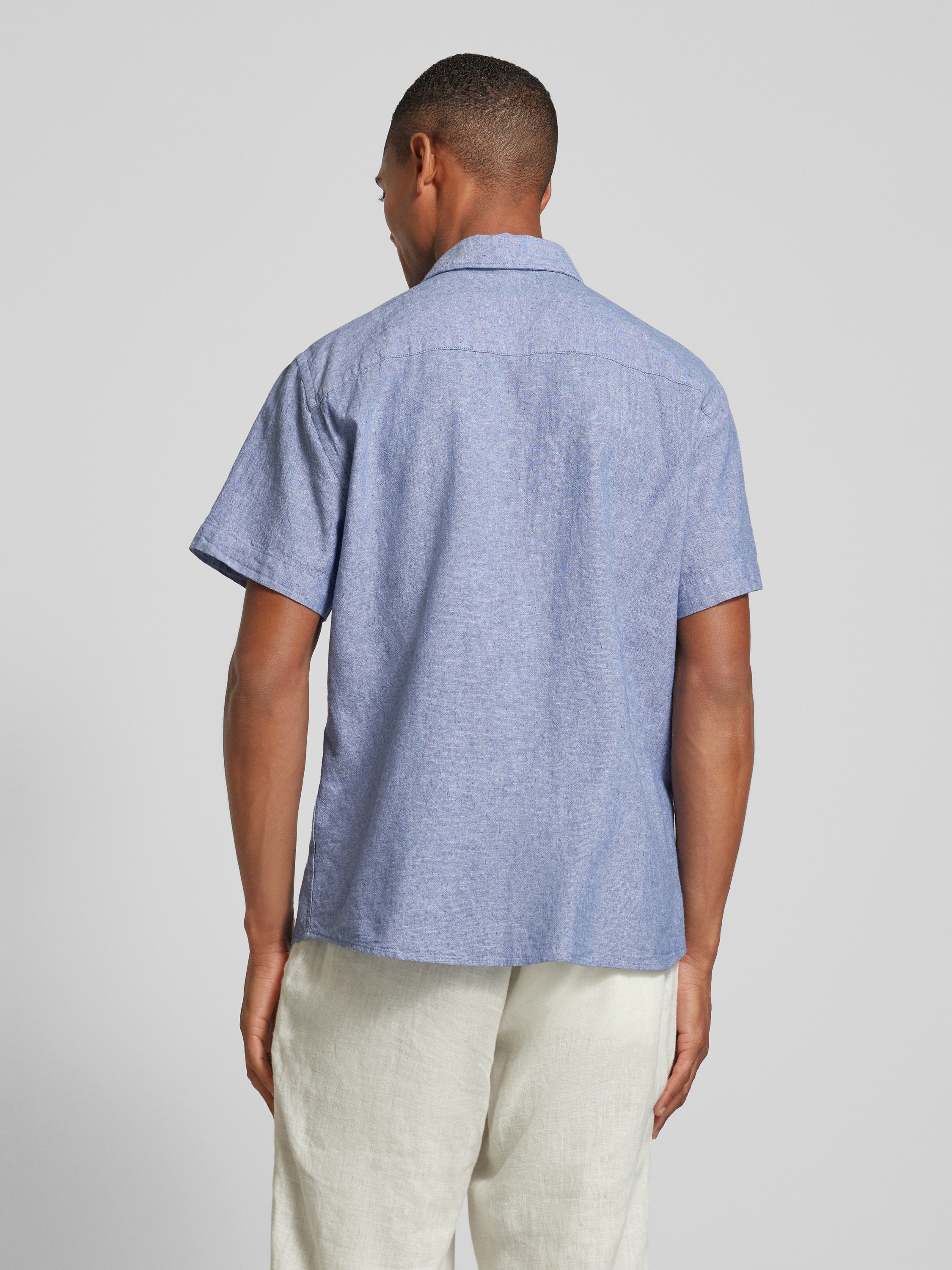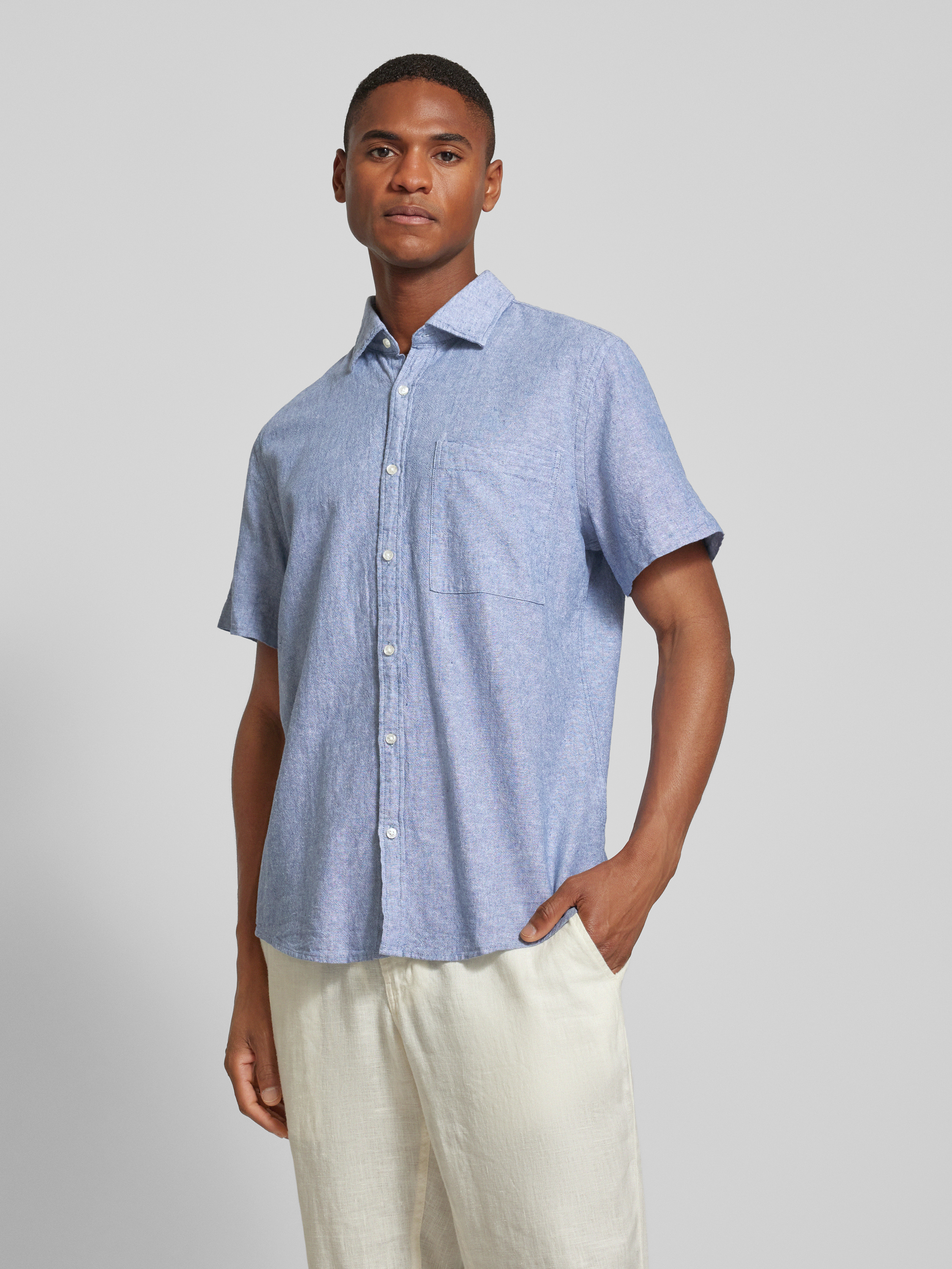Koszula casualowa o kroju regular fit z mieszanki lnu i bawełny - szaroniebieski