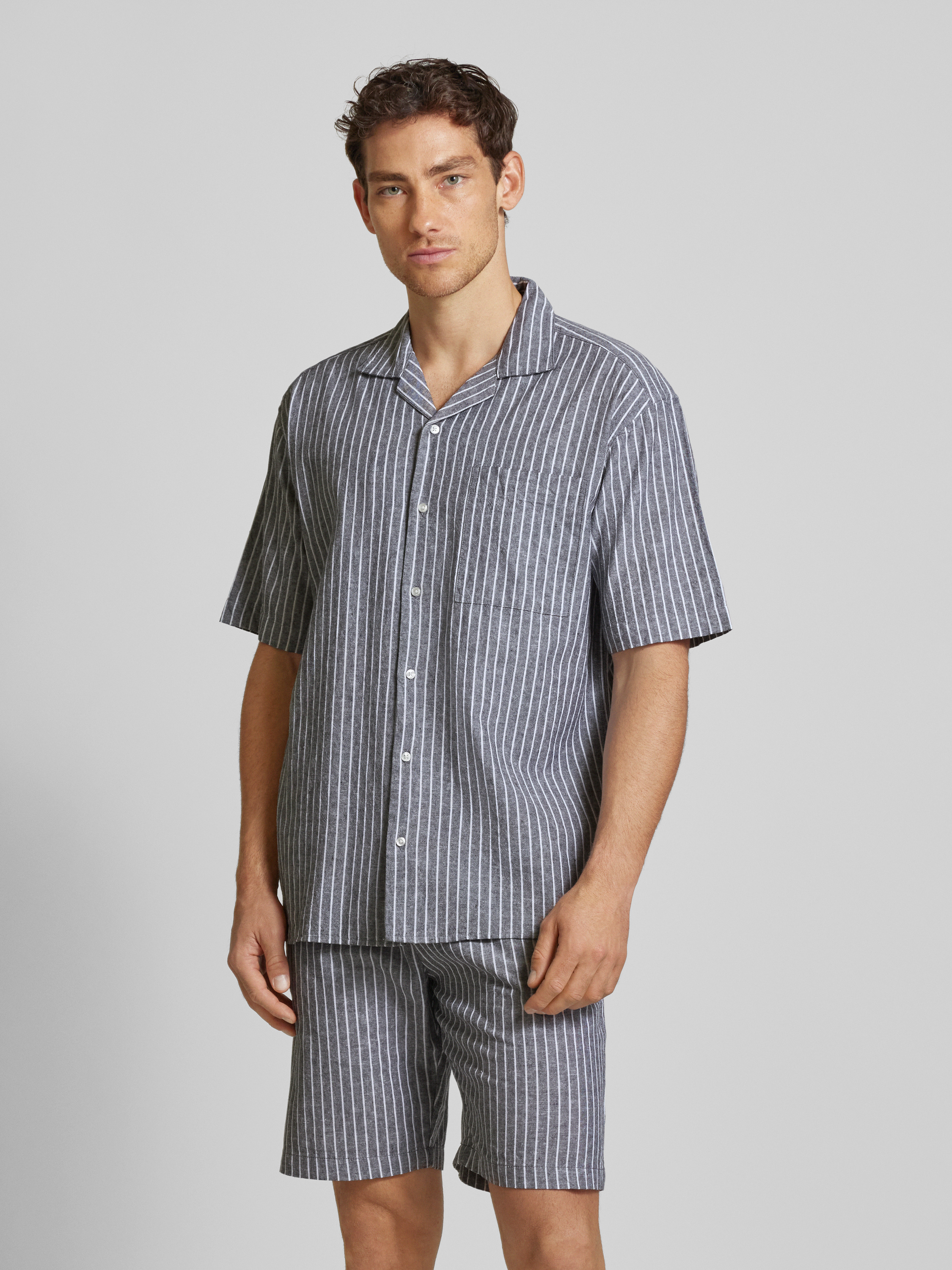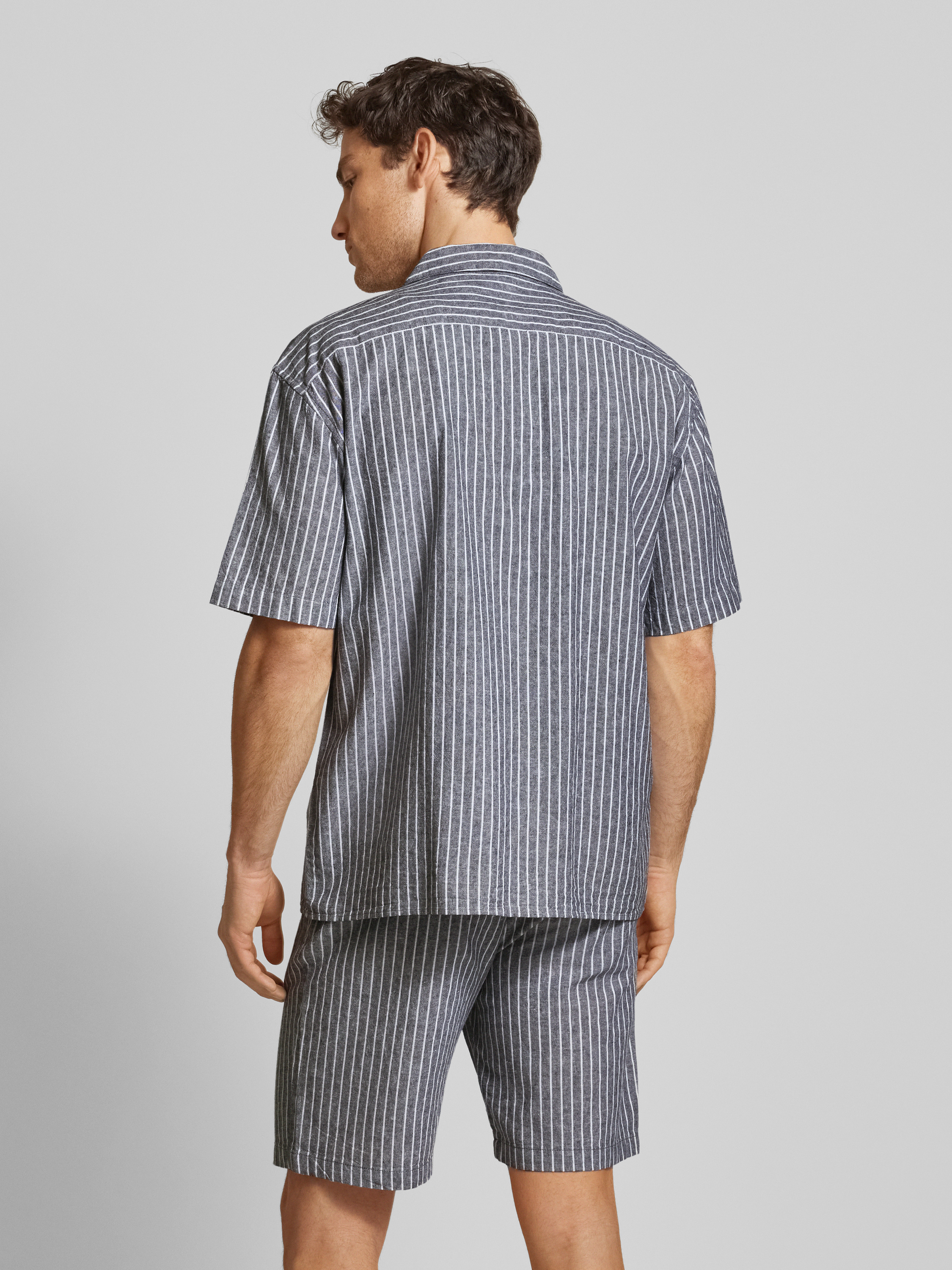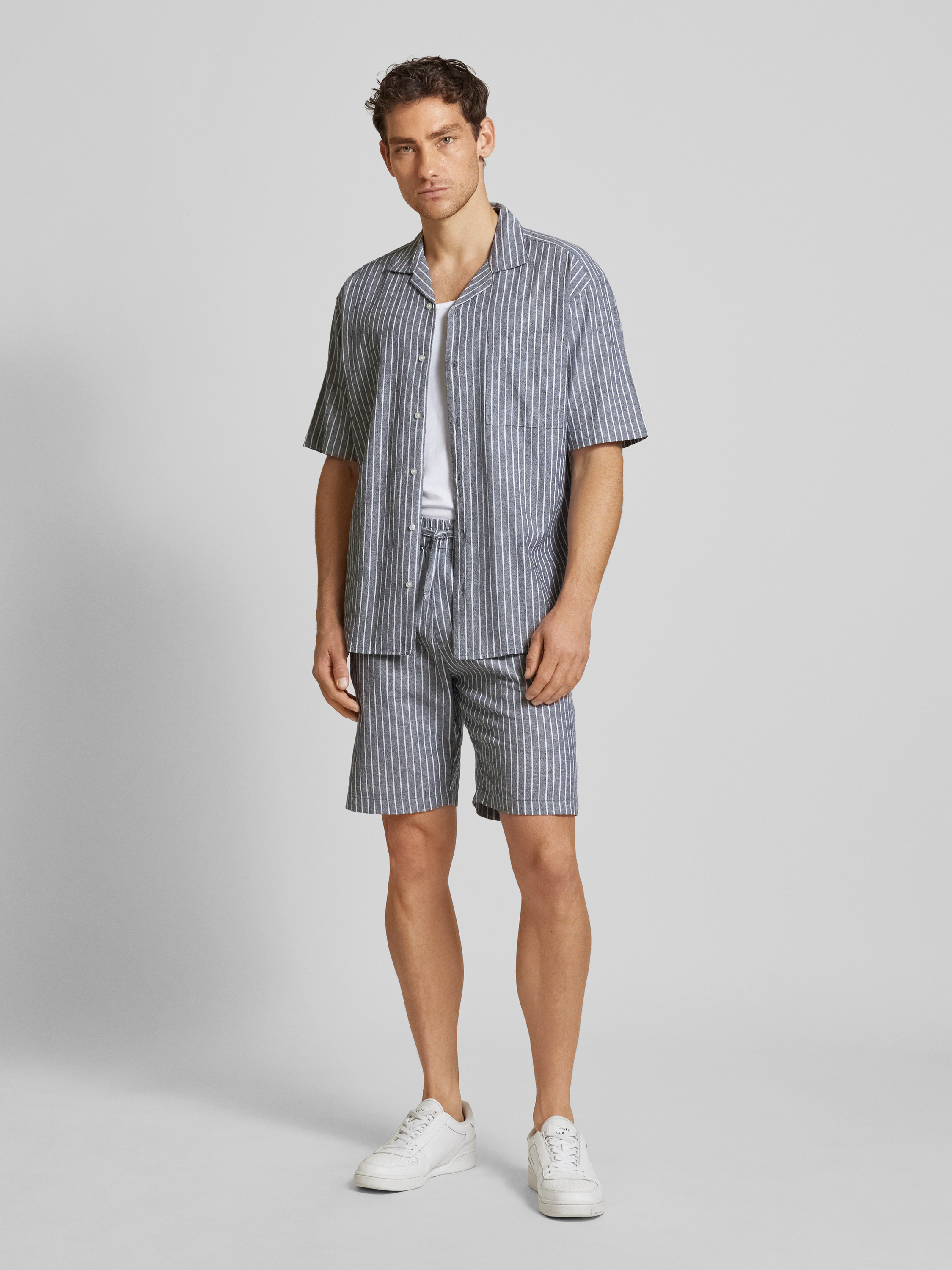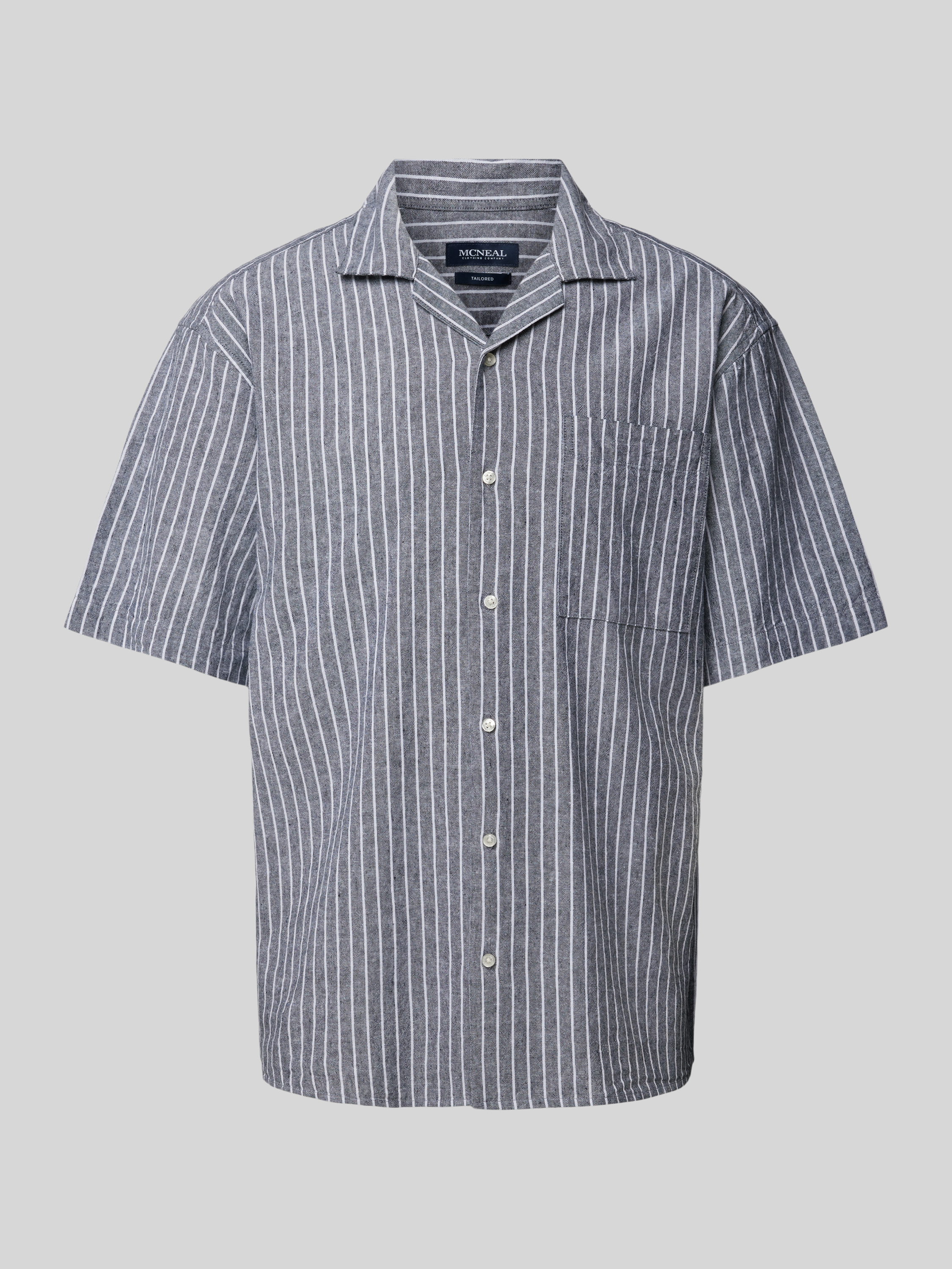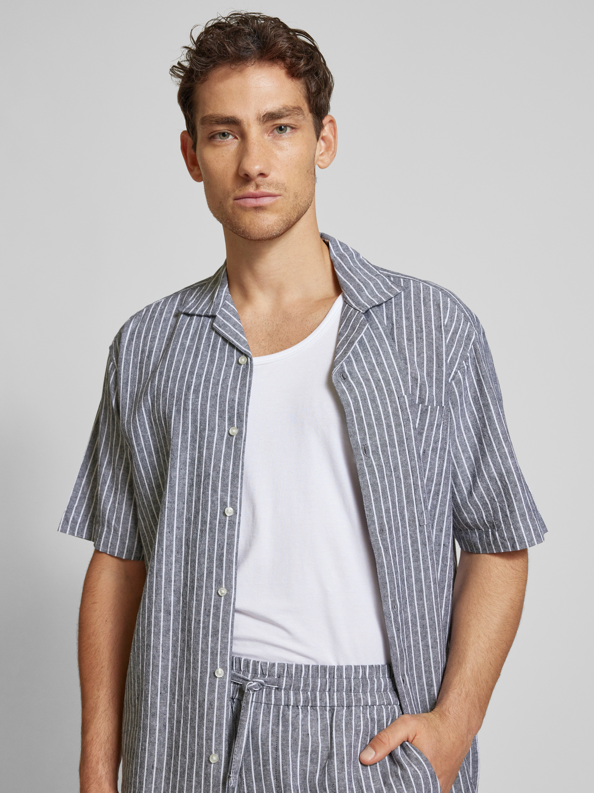 Koszula casulowa o kroju regular fit z mieszanki lnu z dodatkiem bawełny - ciemnoniebieski