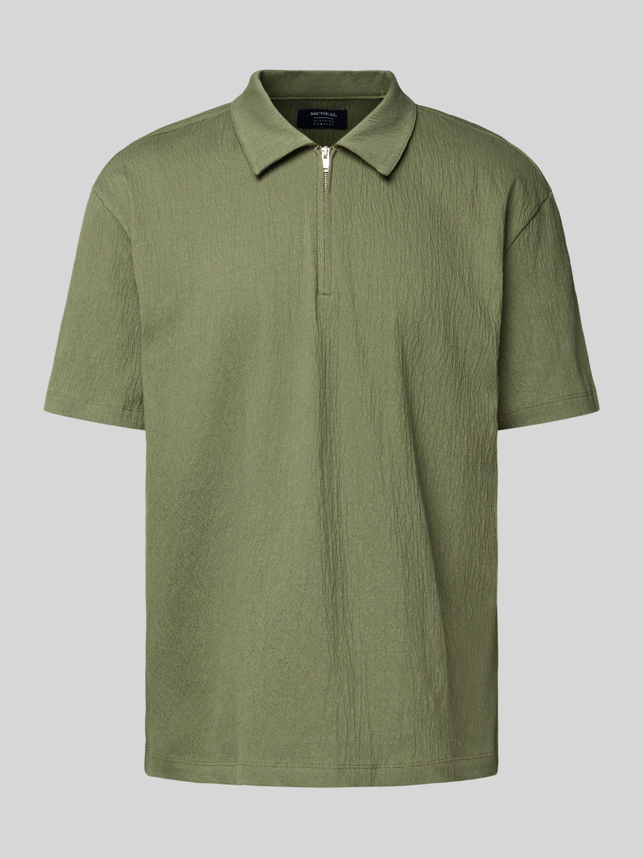 Koszulka polo o kroju regular fit z krótkim zamkiem błyskawicznym - oliwkowy