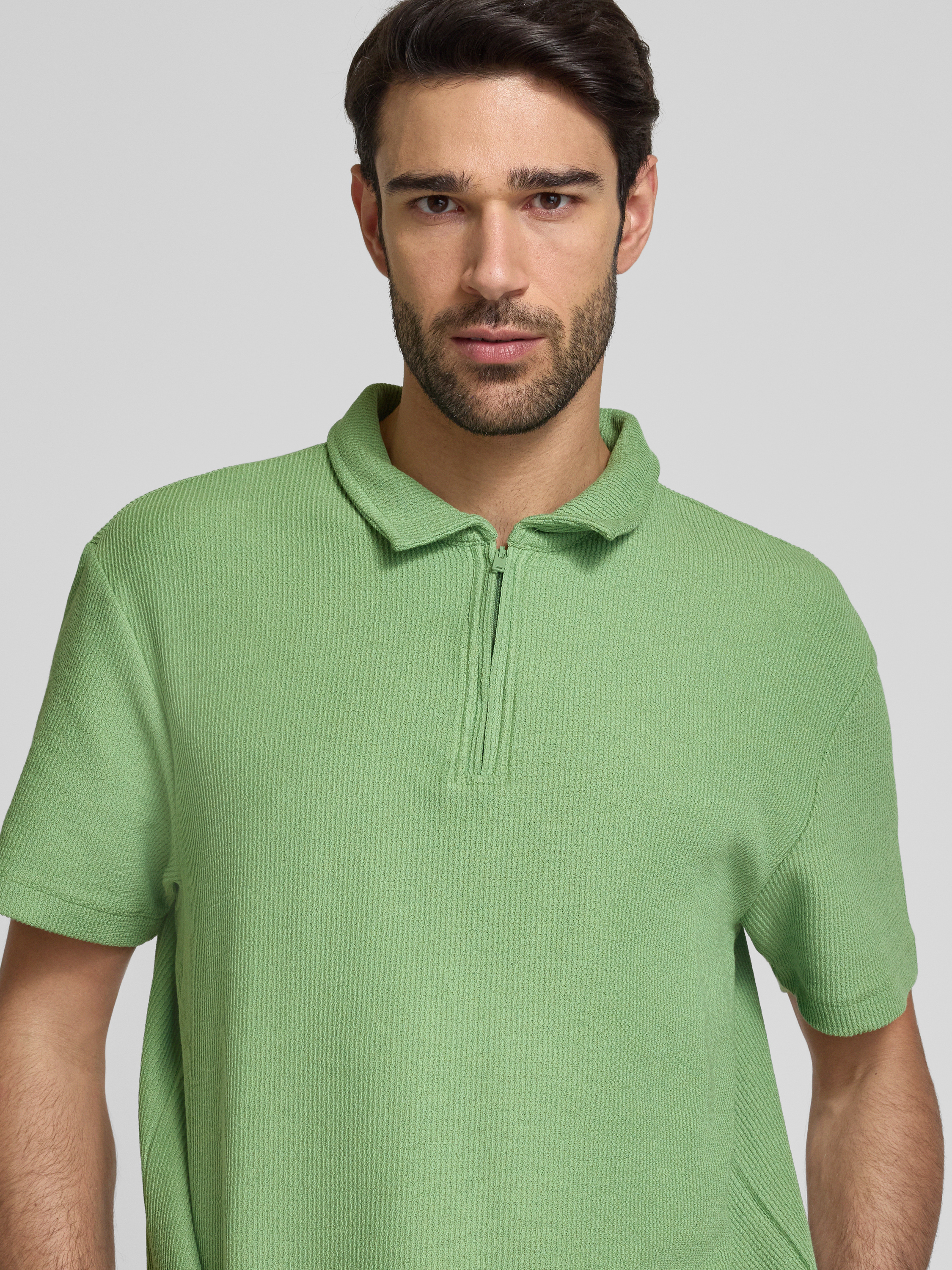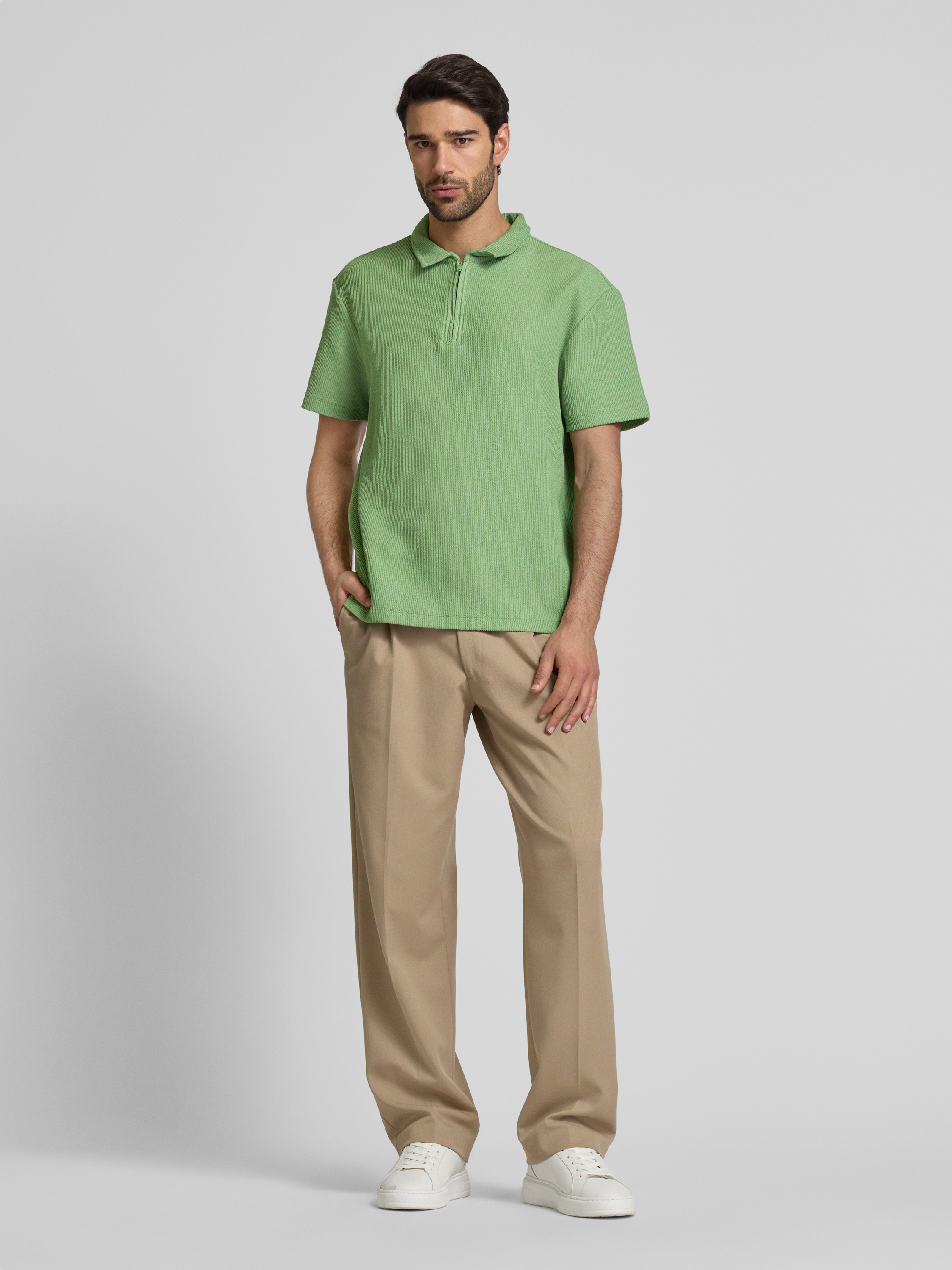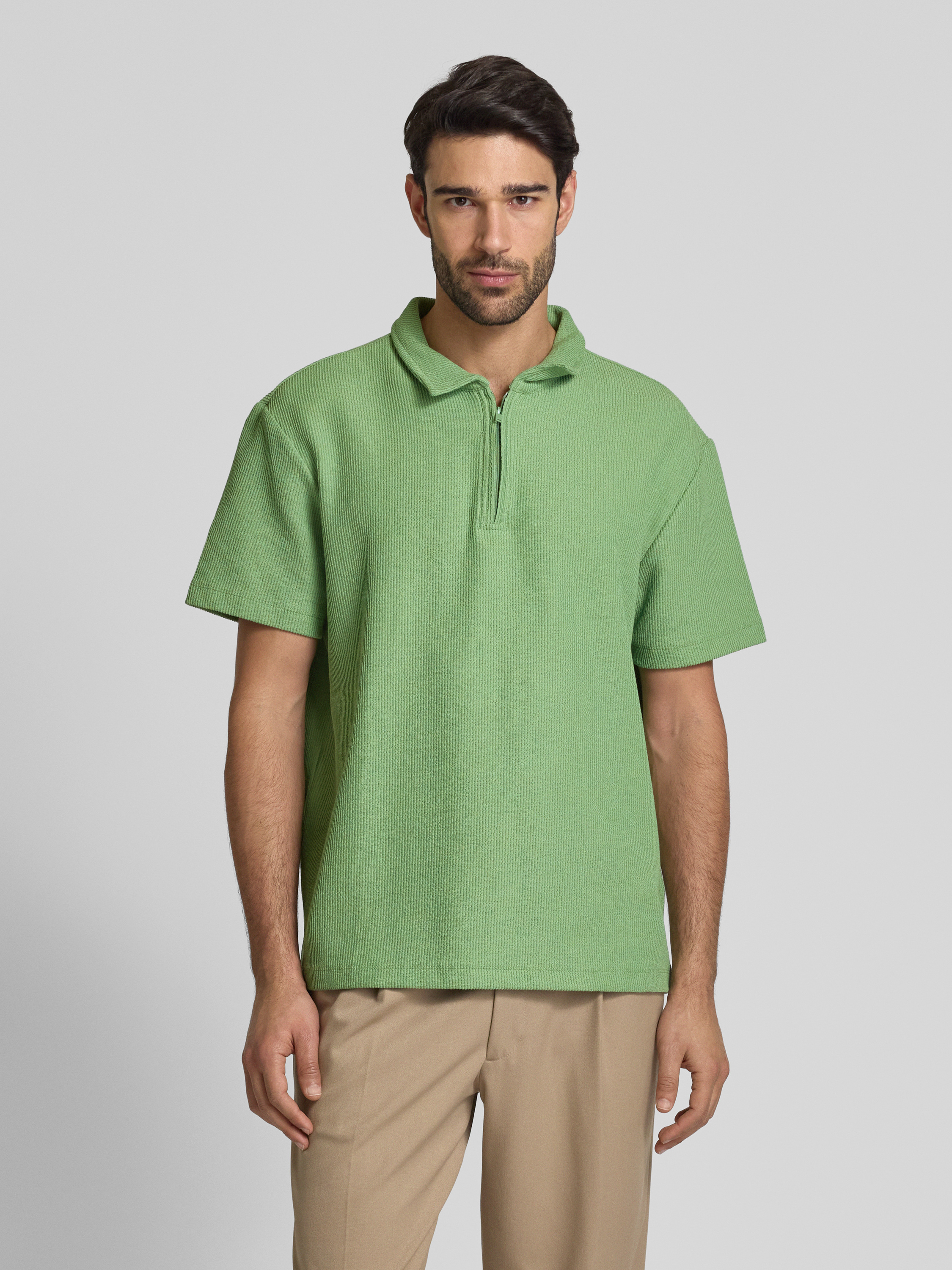 Koszulka polo o kroju regular fit z zamkiem błyskawicznym - trawiasty zielony