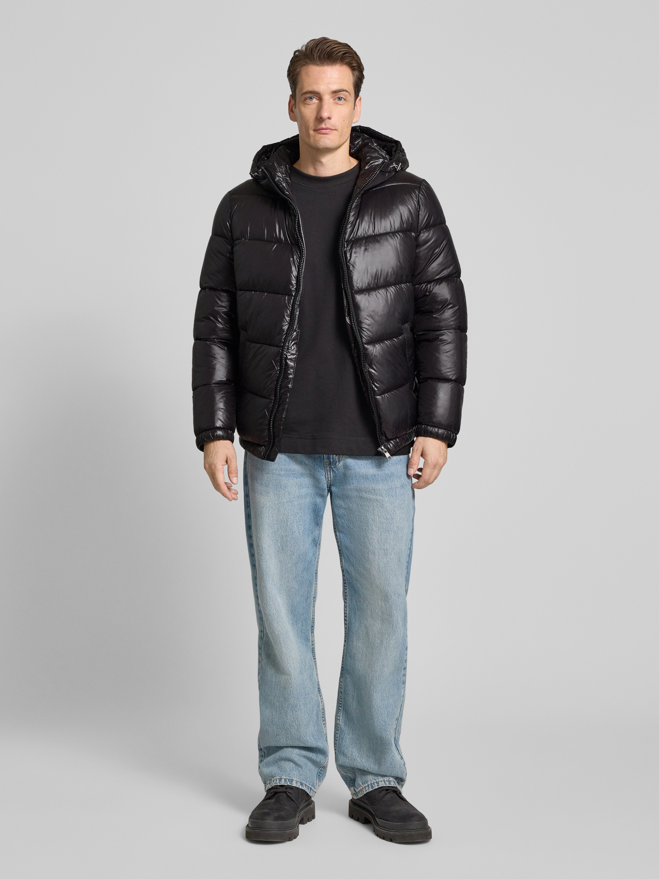 Kurtka pikowana z zamkiem błyskawicznym i wpuszczanymi kieszeniami - metaliczny czarny