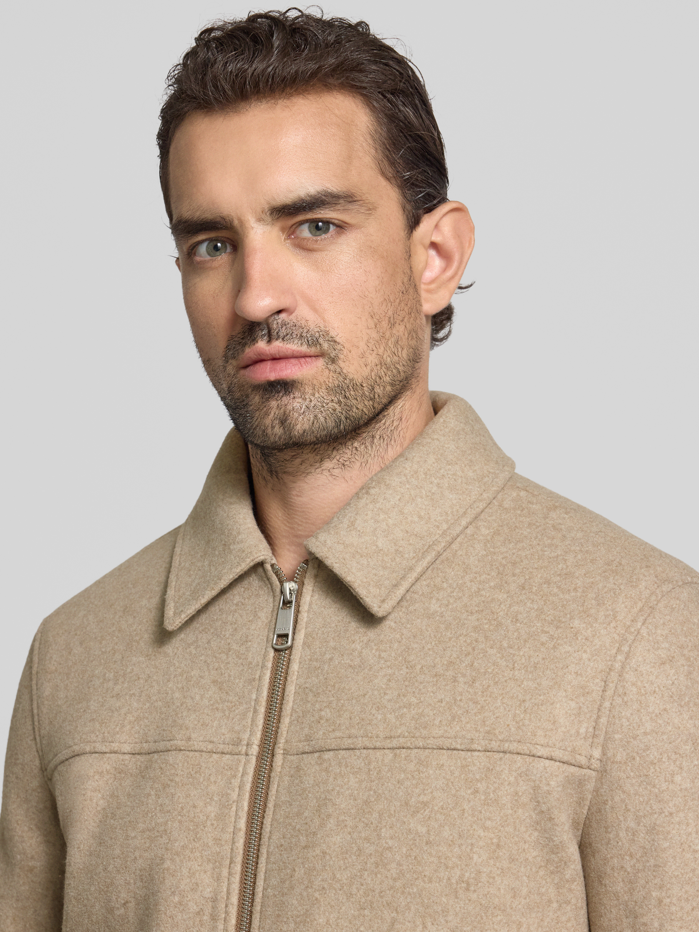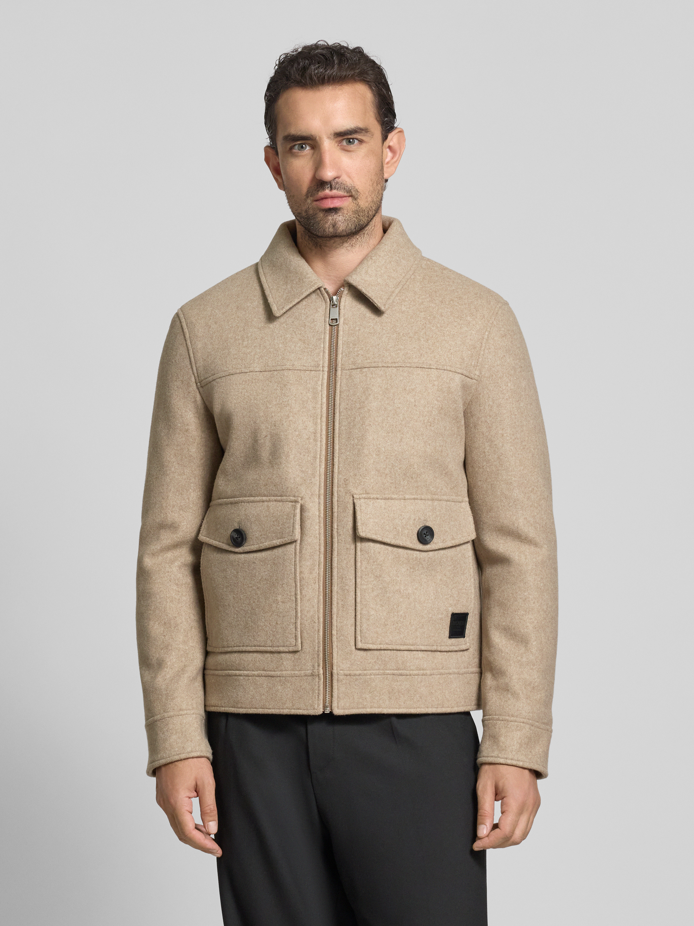 Kurtka z kołnierzykiem typu kent - beżowy melanż