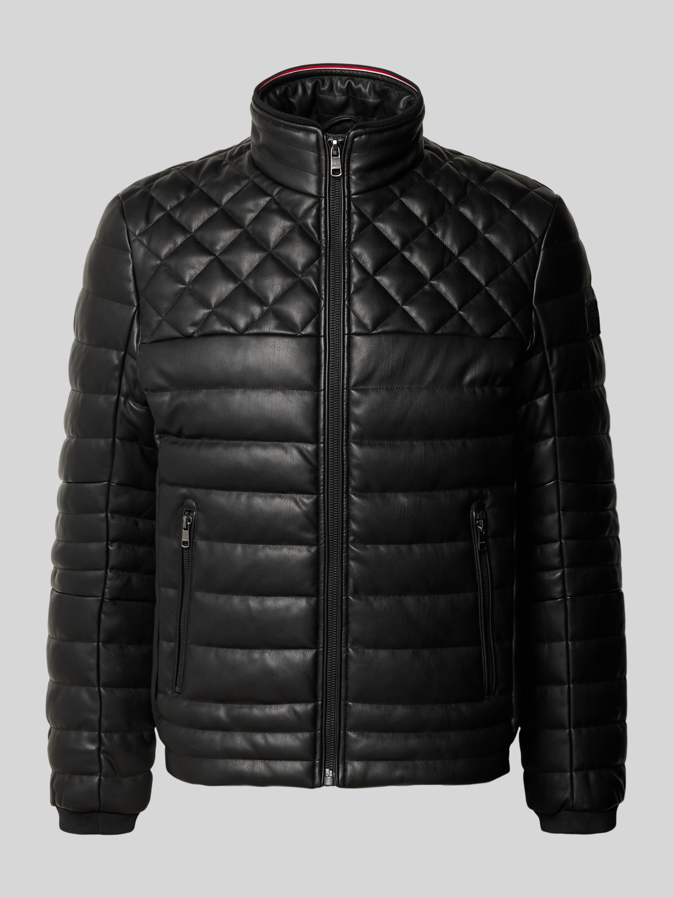 Pikowana kurtka z imitacji skóry ze stójką z podszewką - czarny