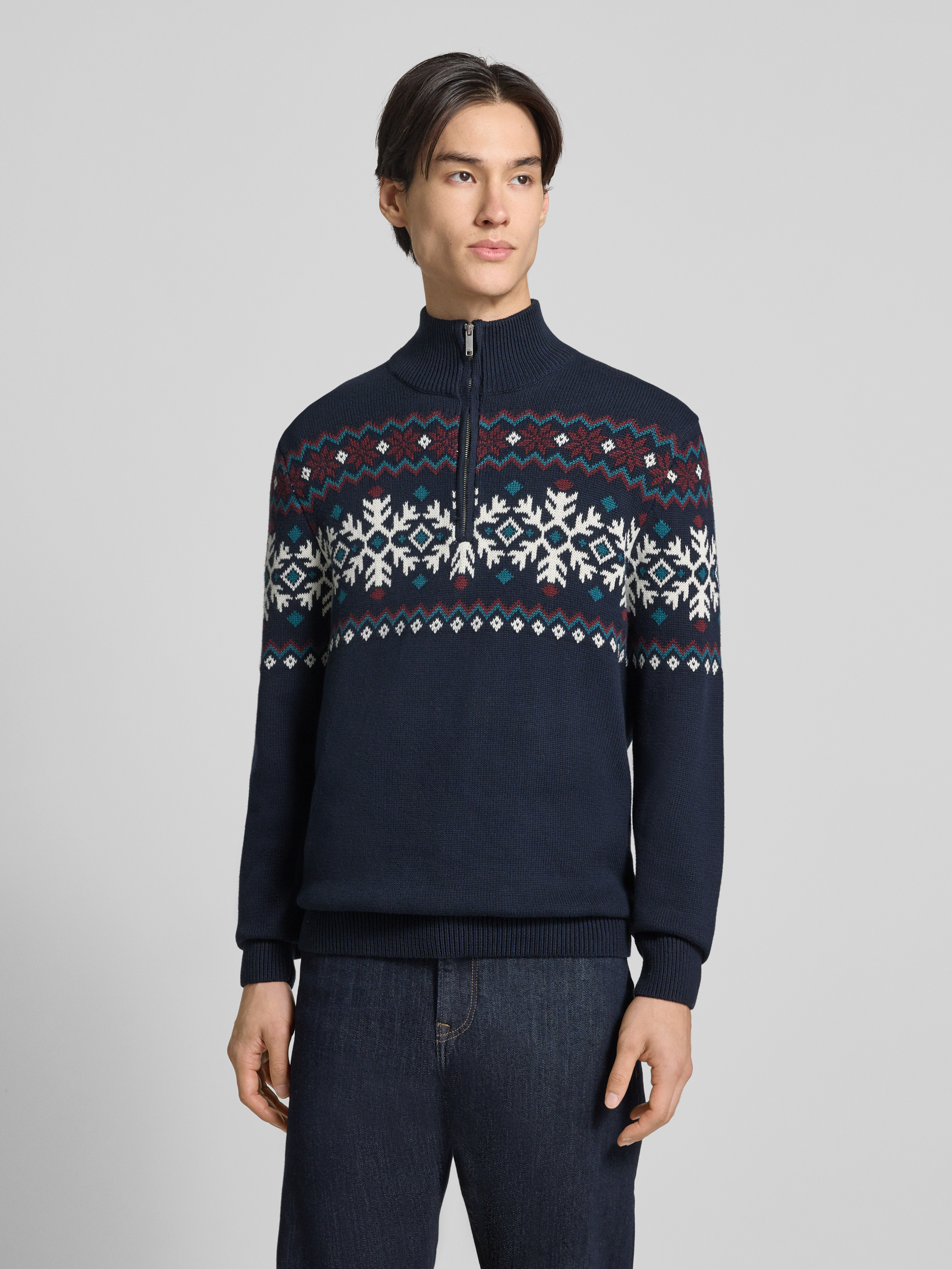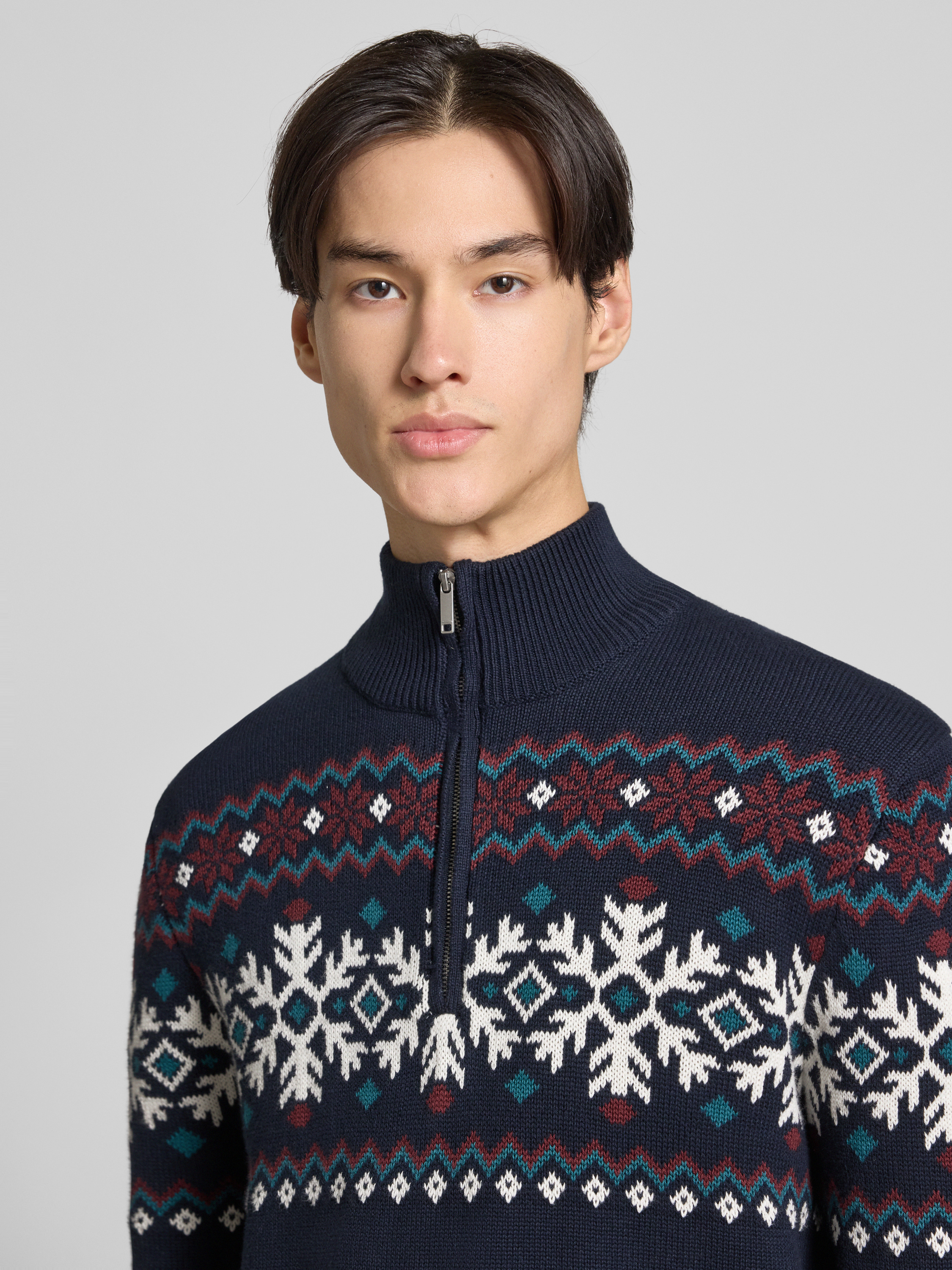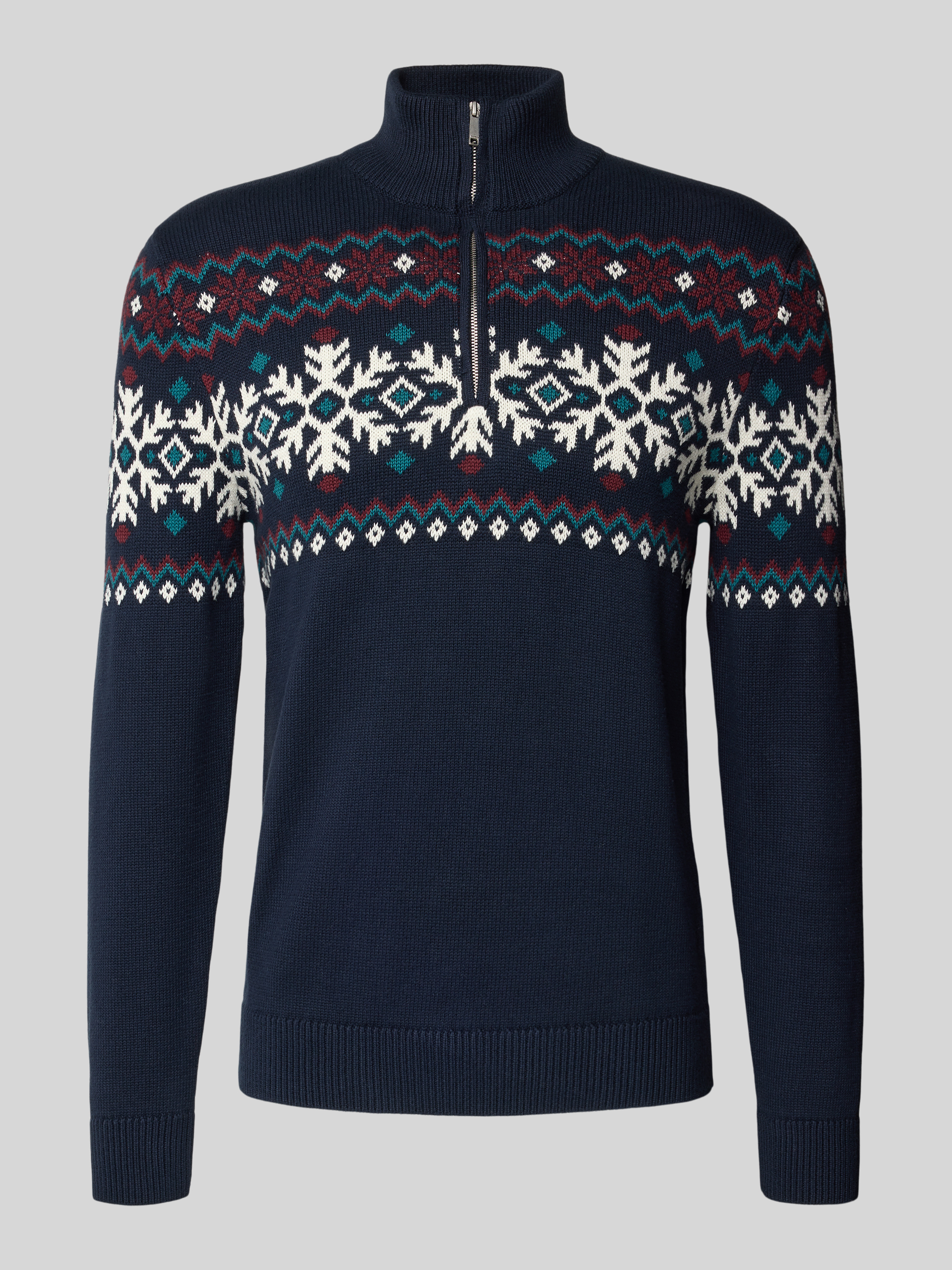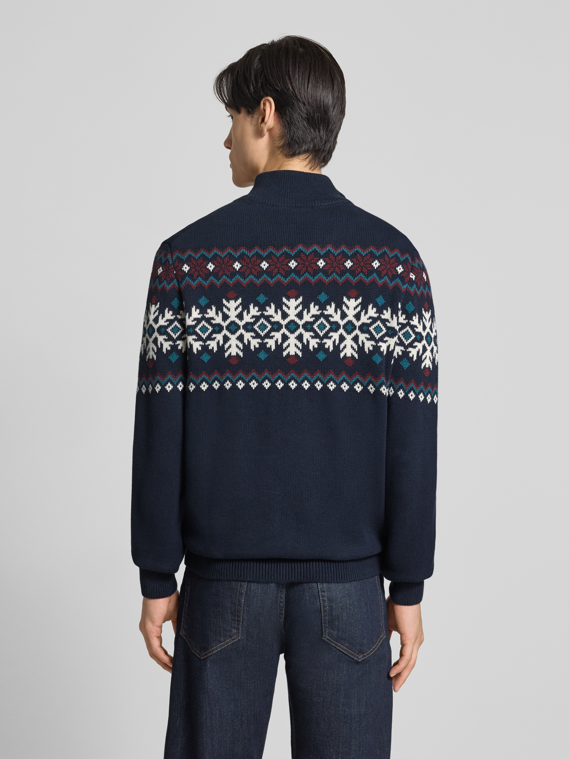 Sweter z dzianiny z kołnierzem - ciemnoniebieski