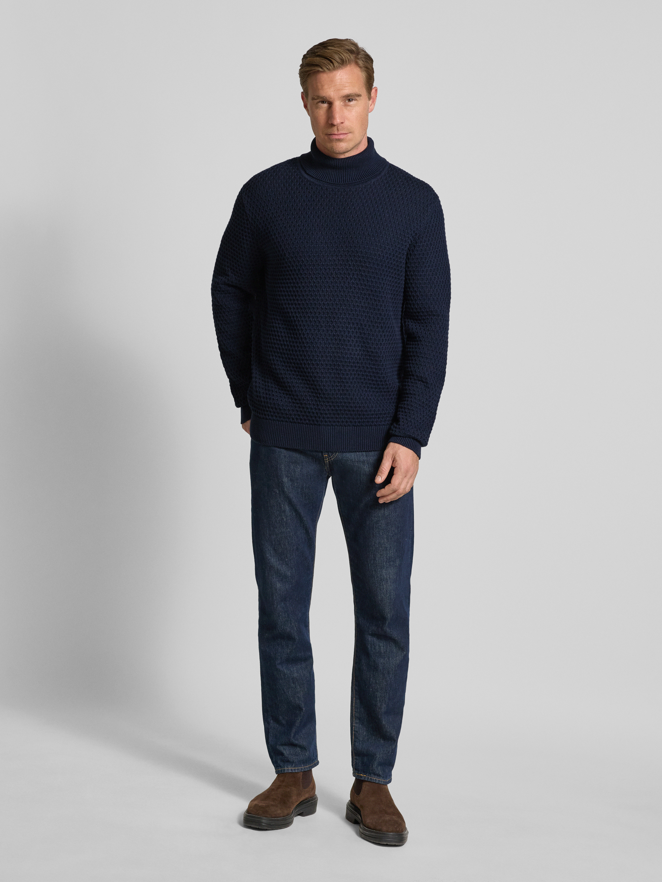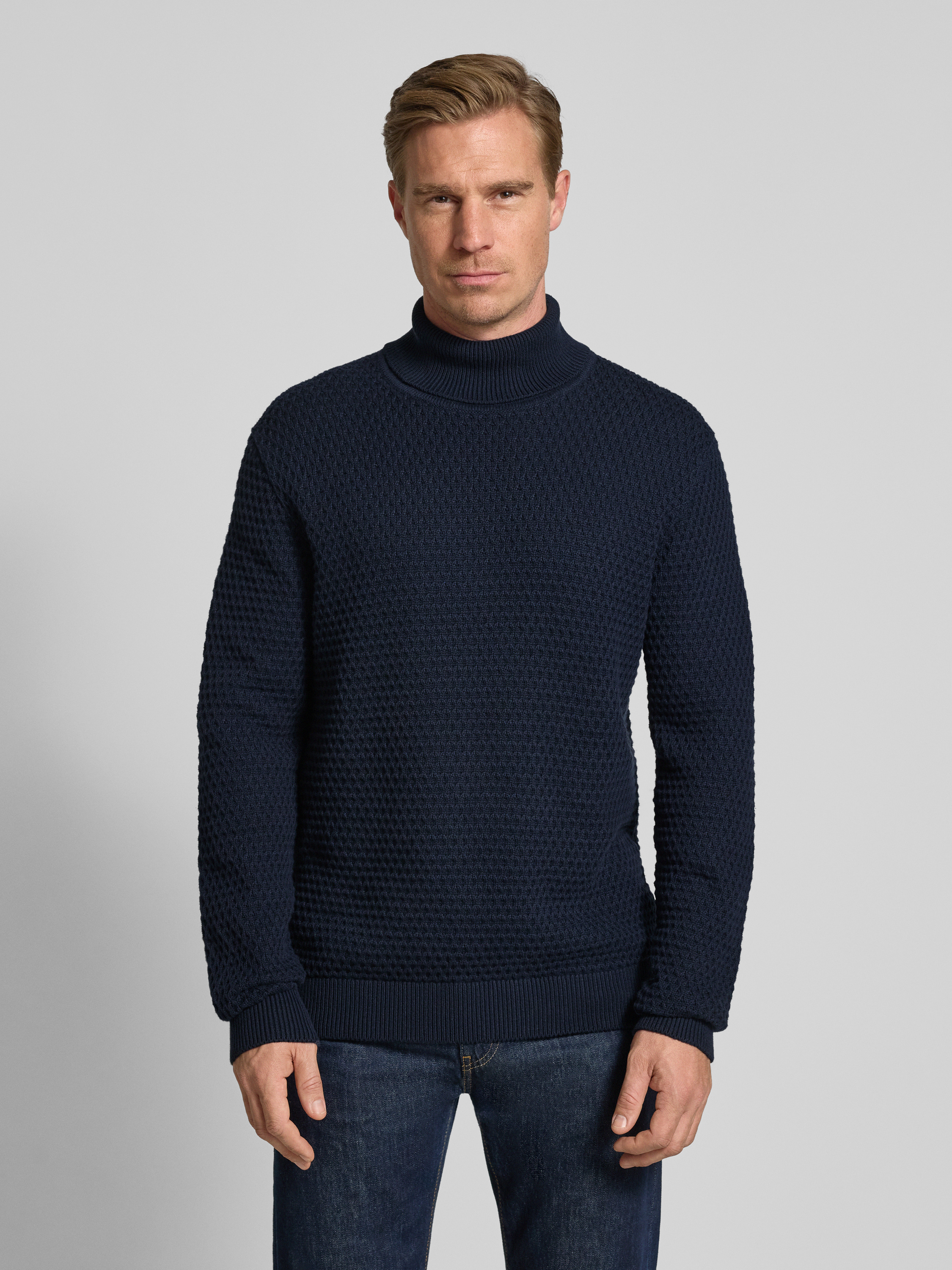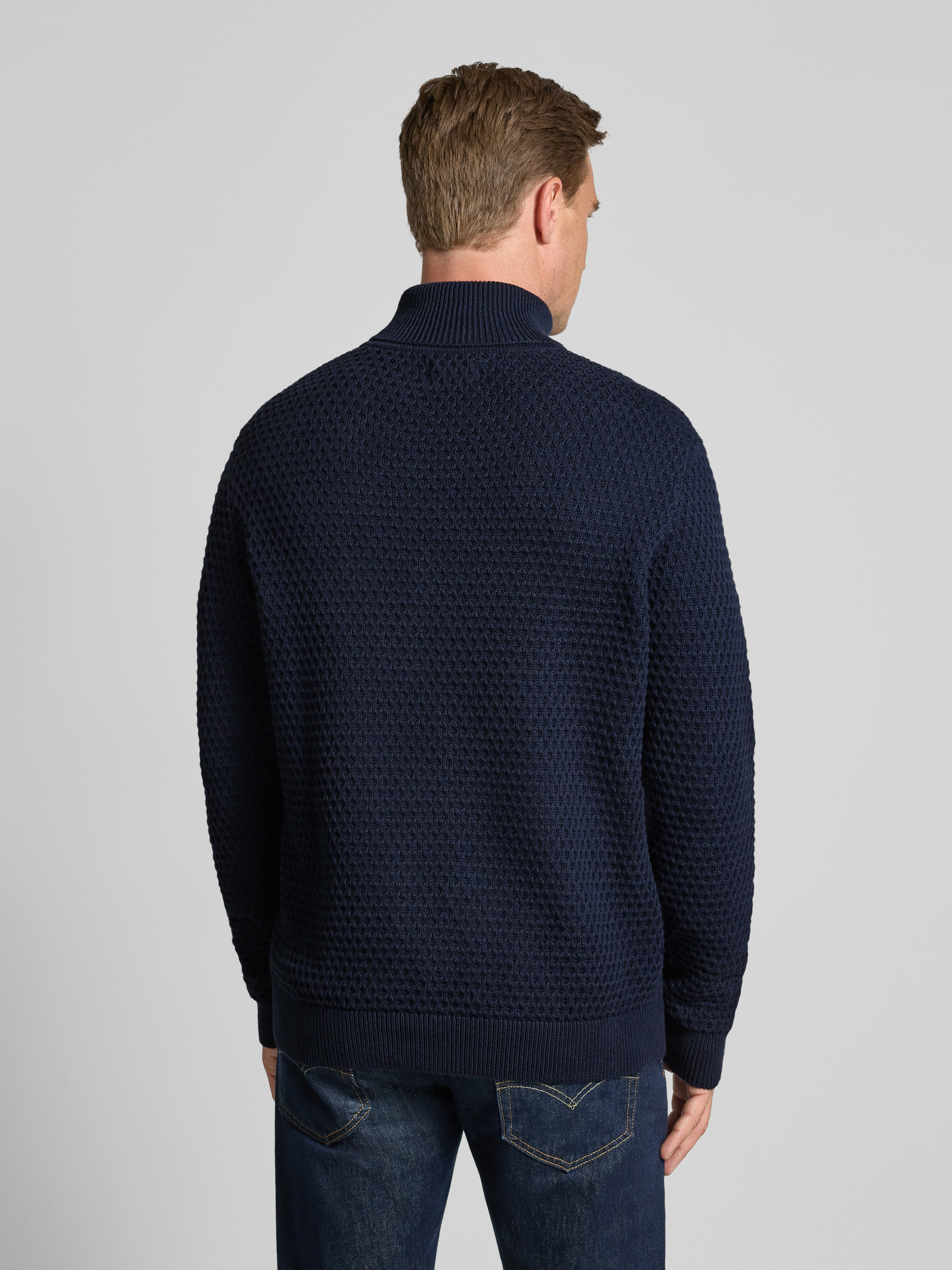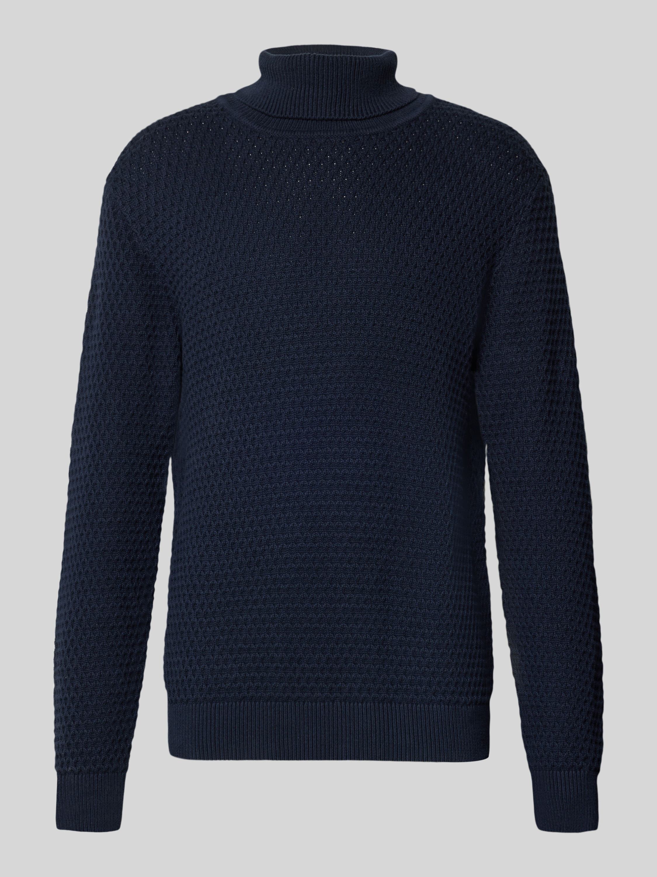 Sweter z wywijanym kołnierzem z prążkowanymi wykończeniami - ciemnoniebieski