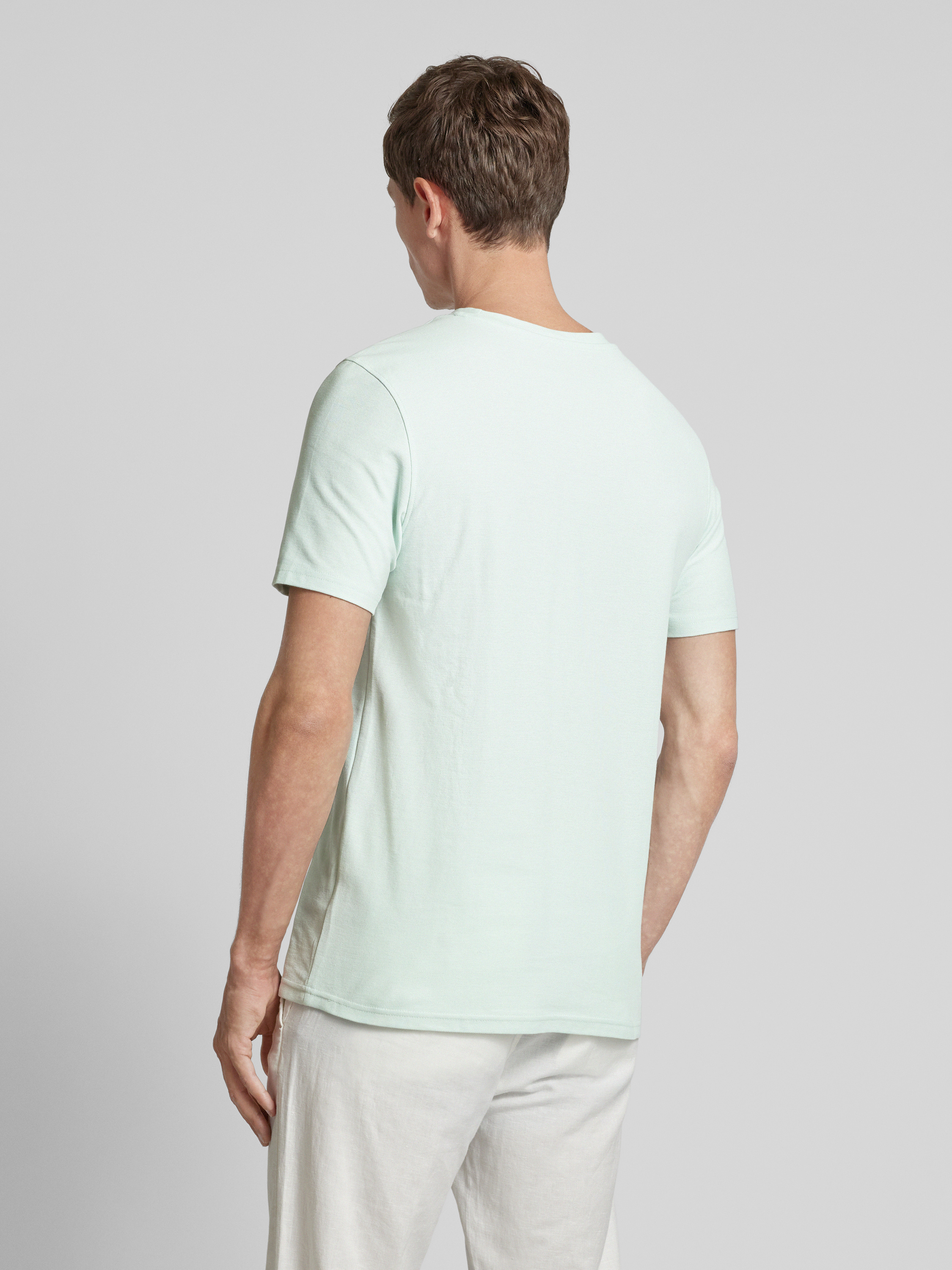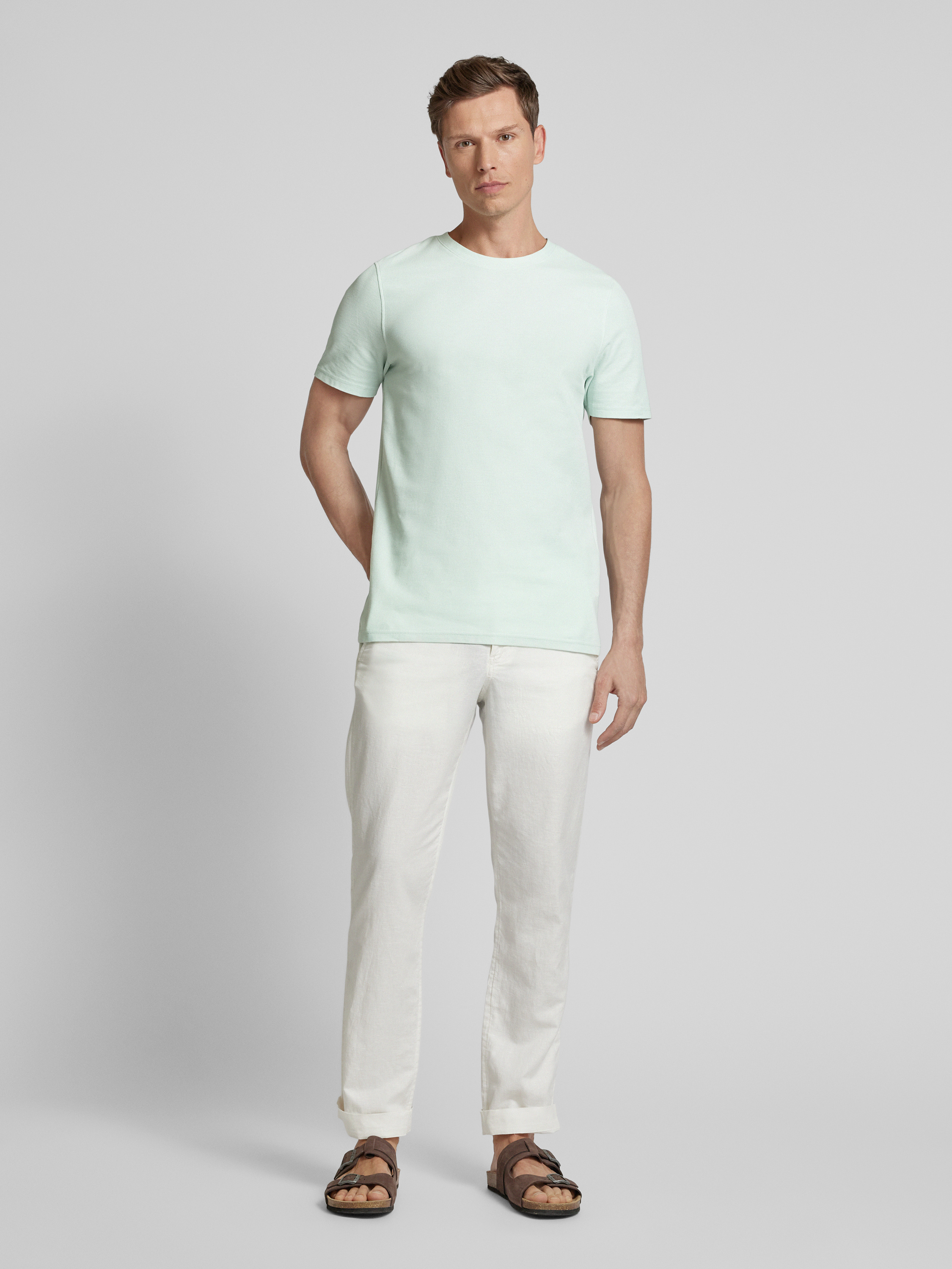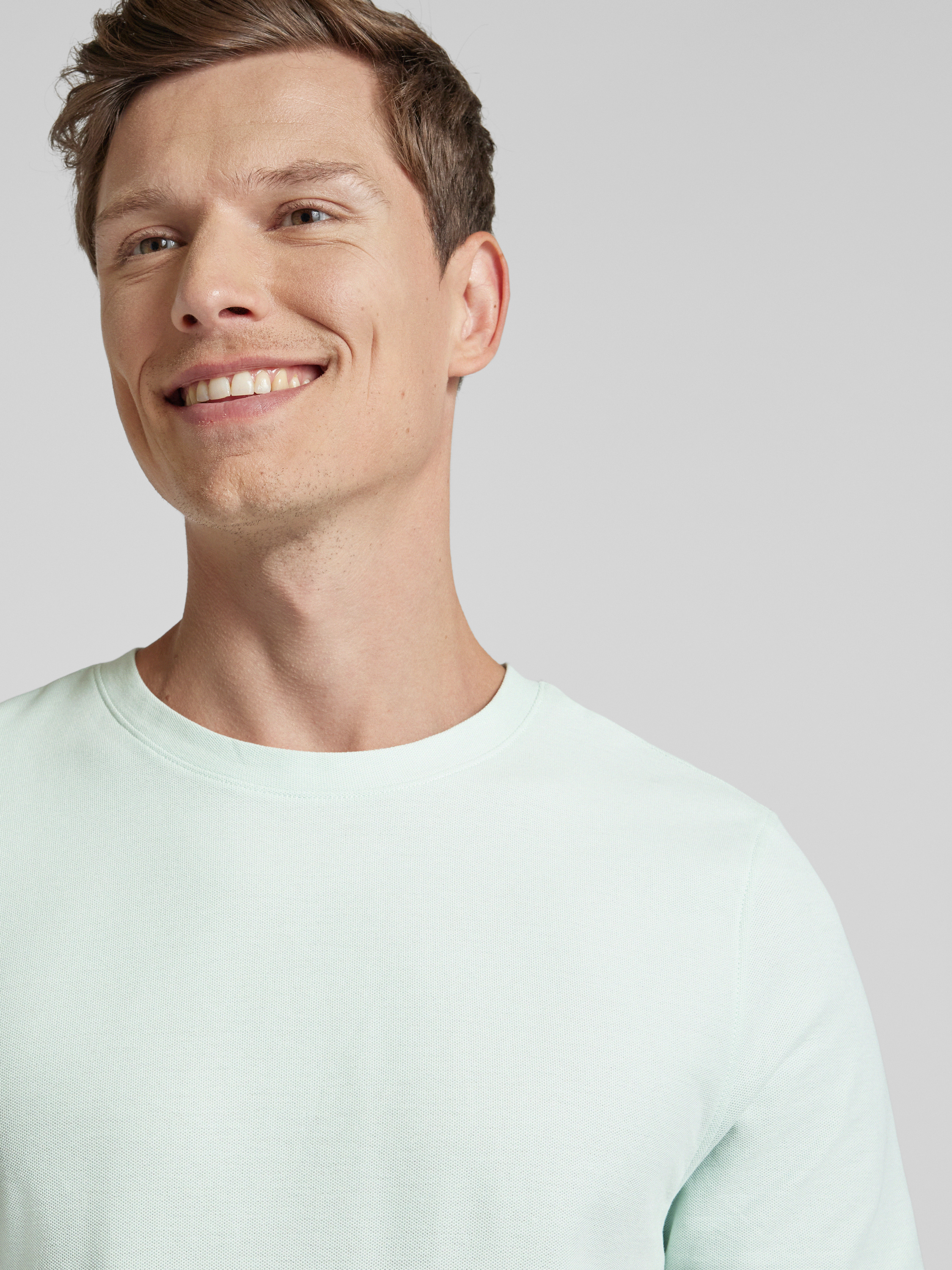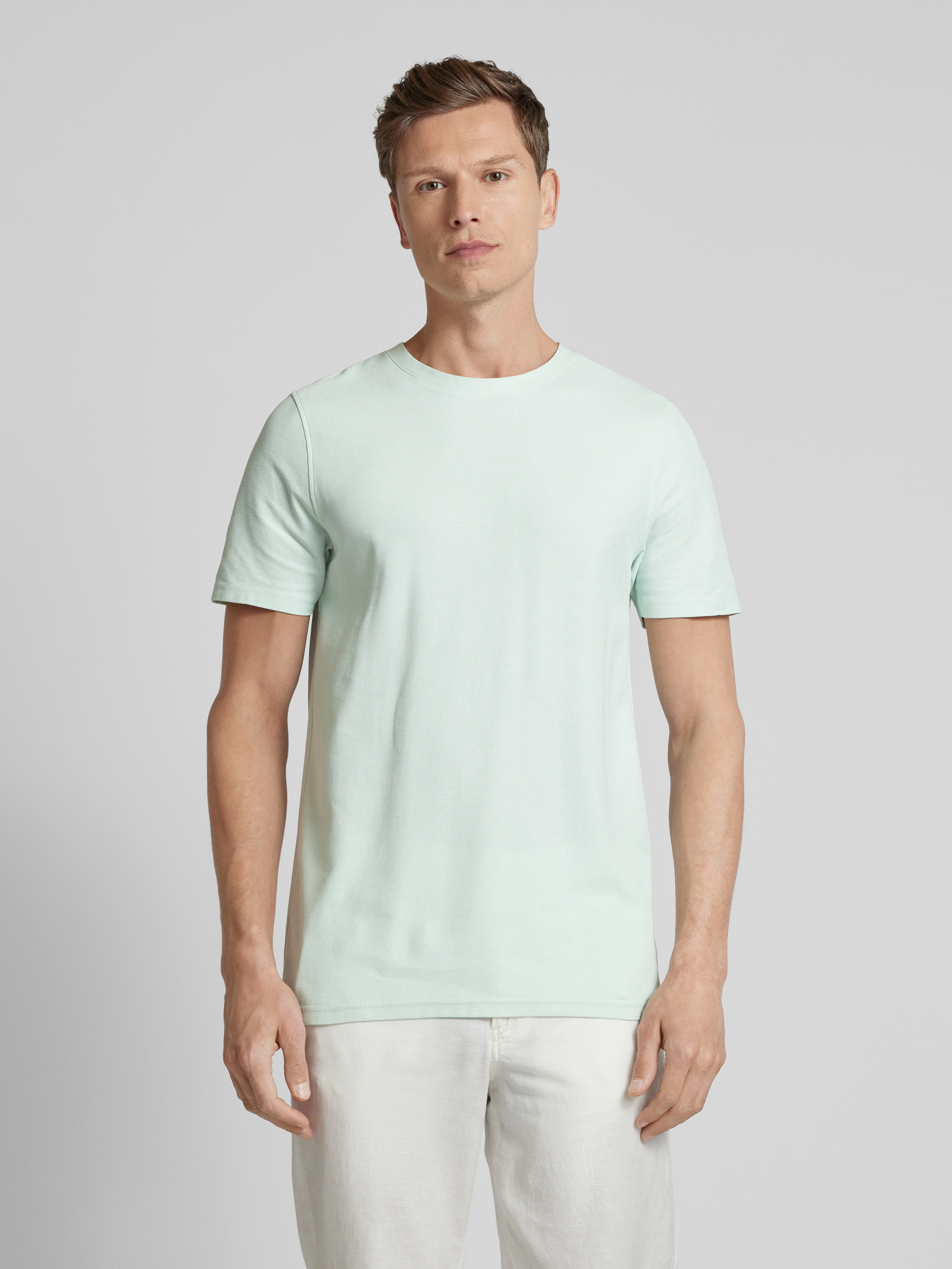 T-shirt z prążkowanym okrągłym dekoltem - jasnoturkusowy