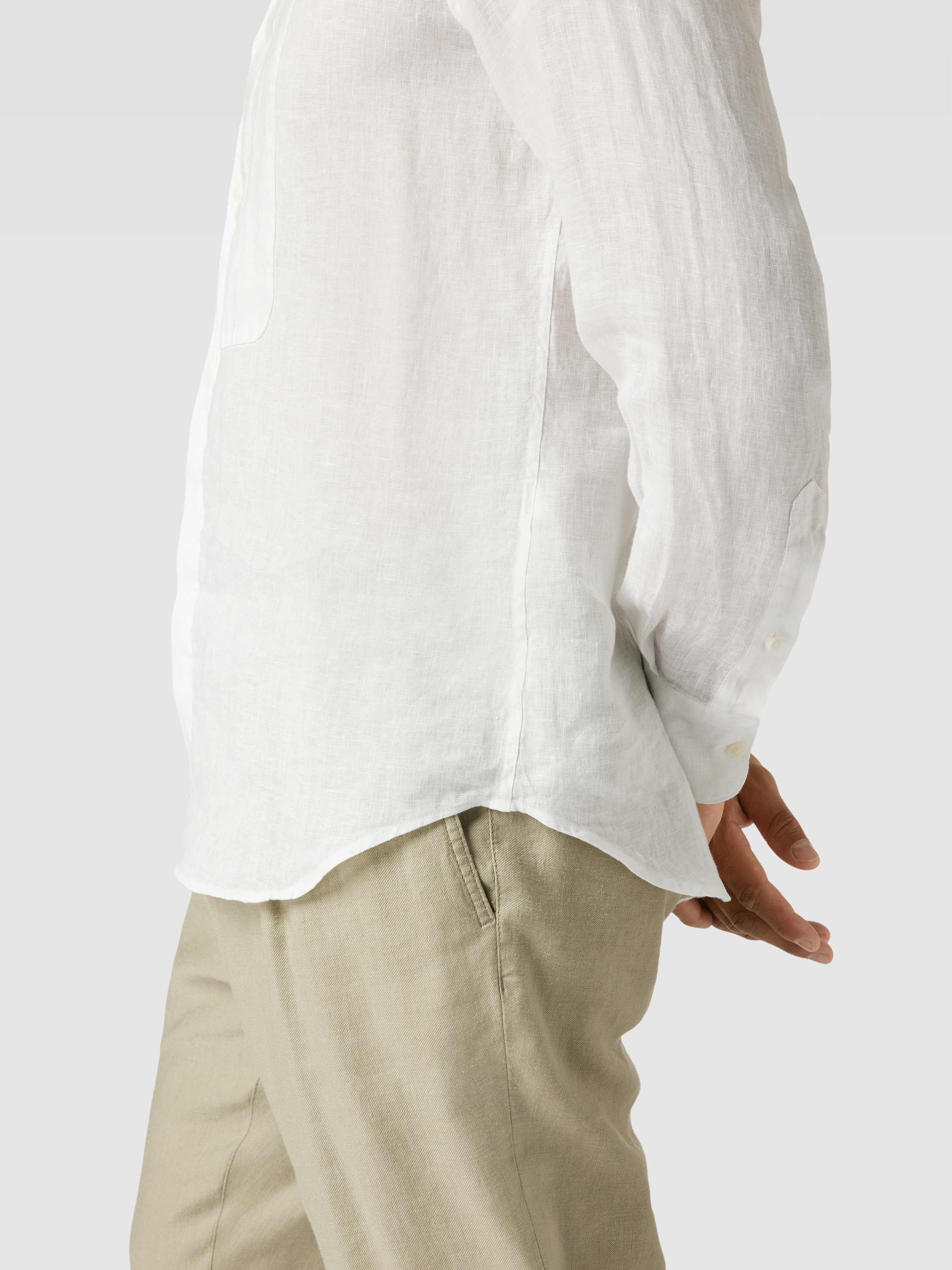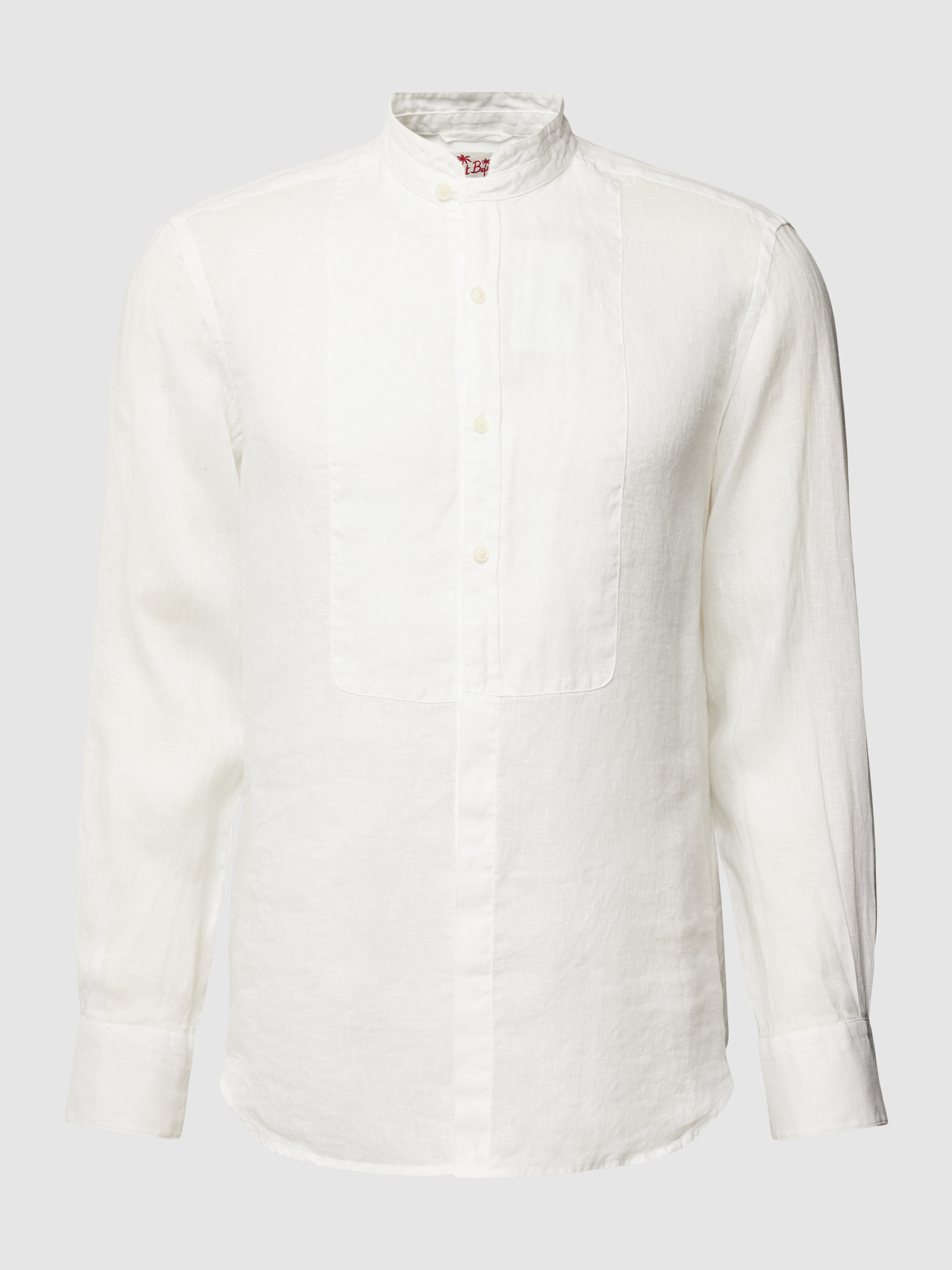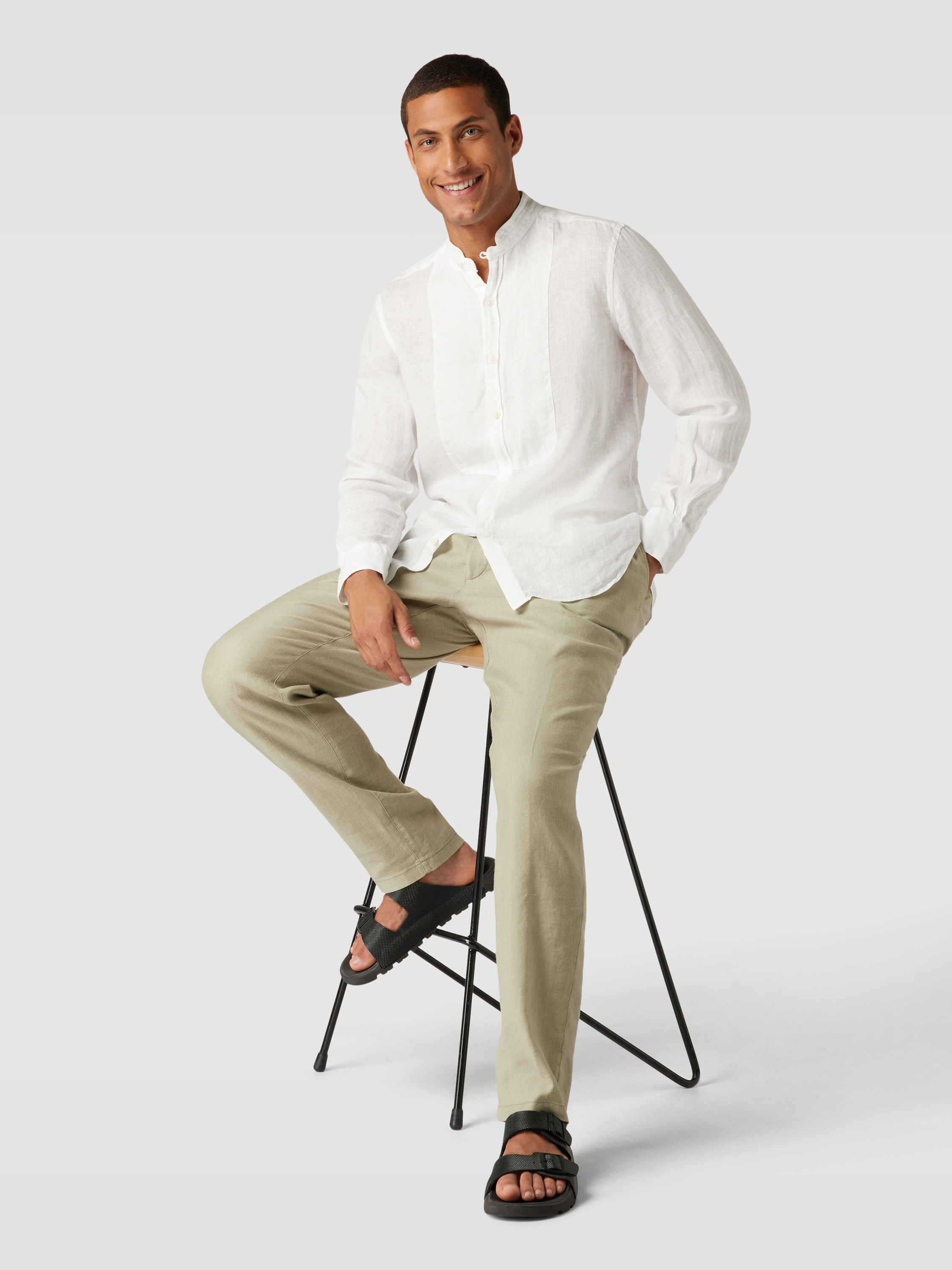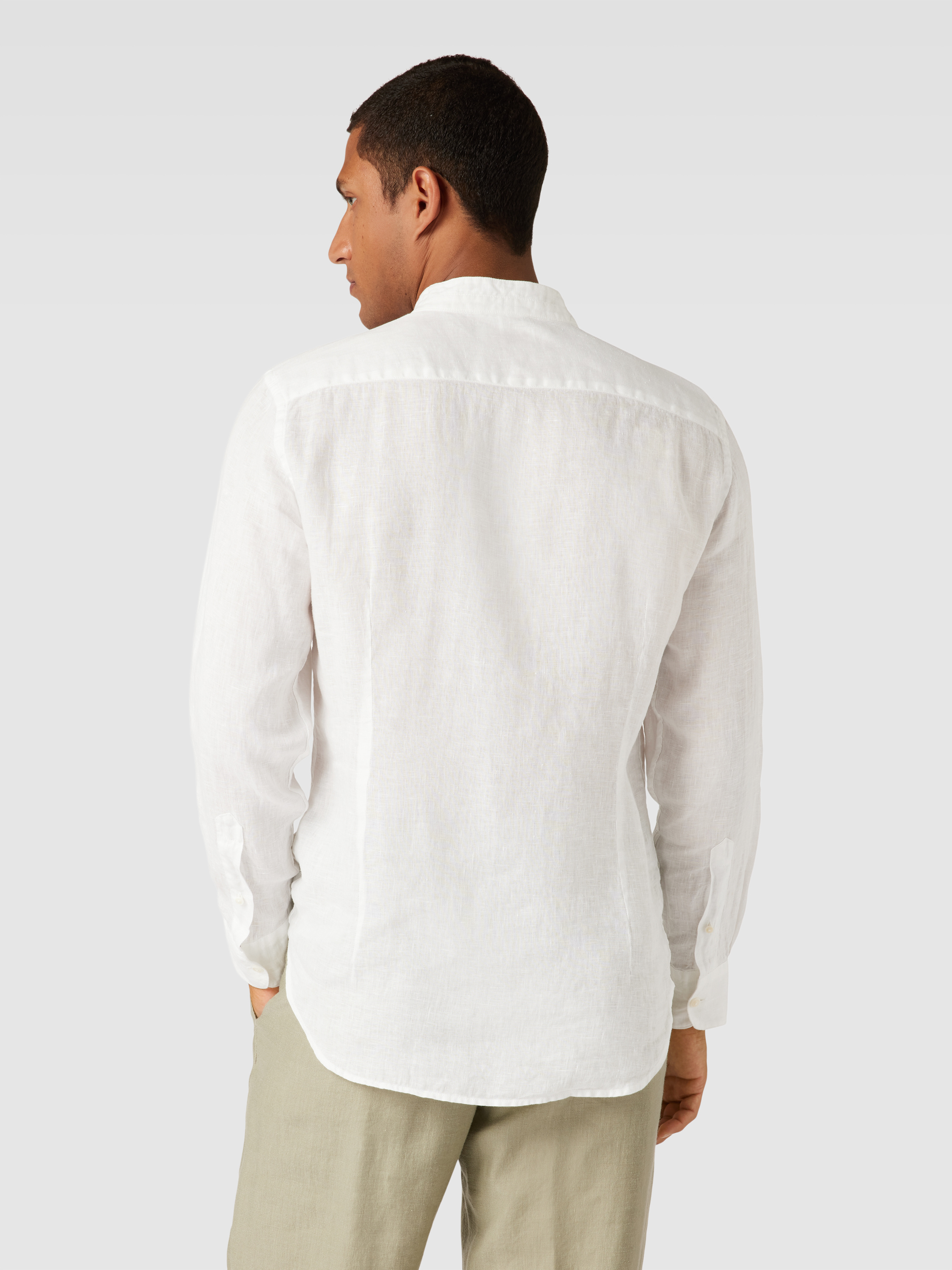 Koszula lniana o kroju slim fit ze stójką model ‘PIERRE’ - biały