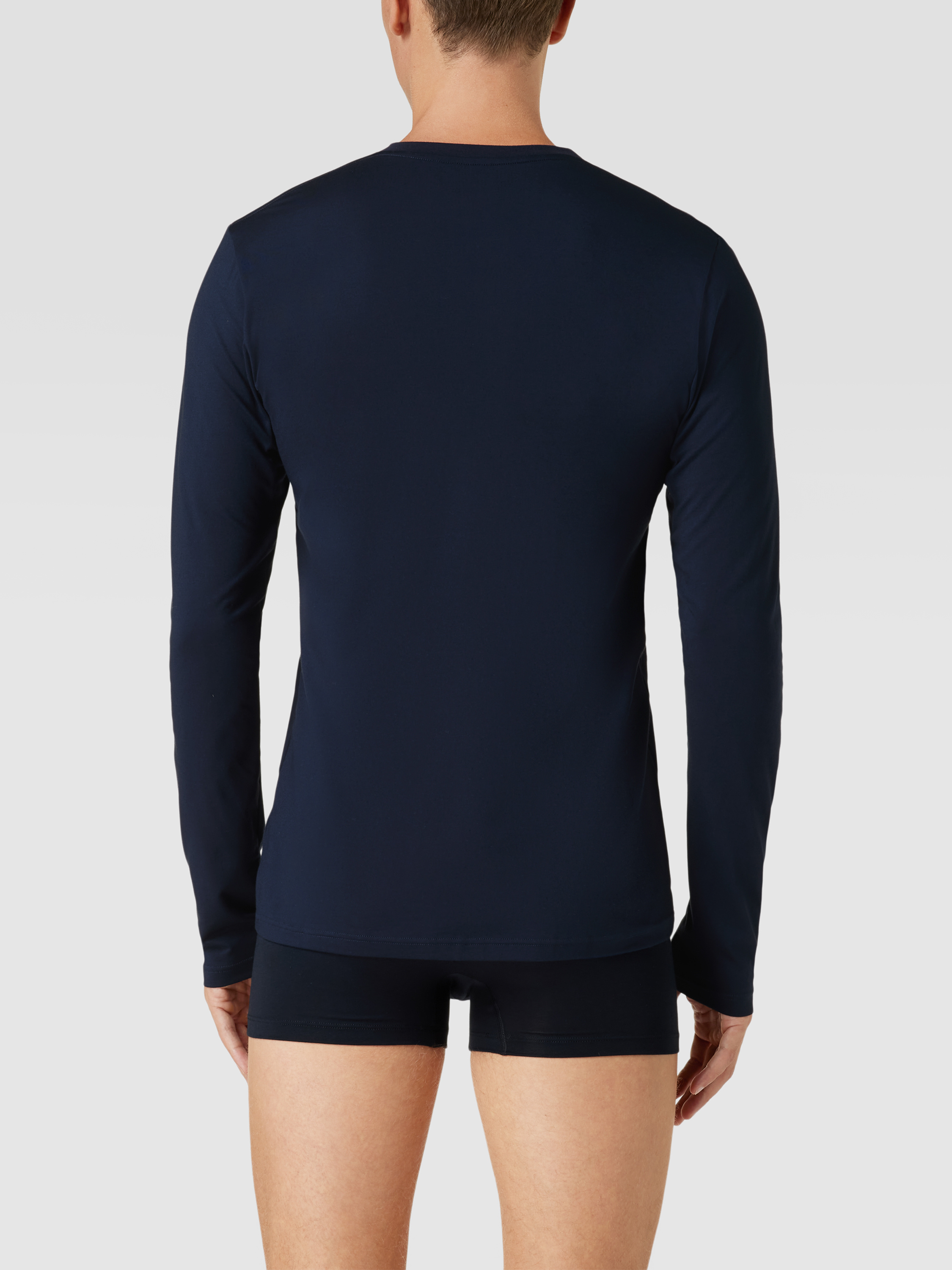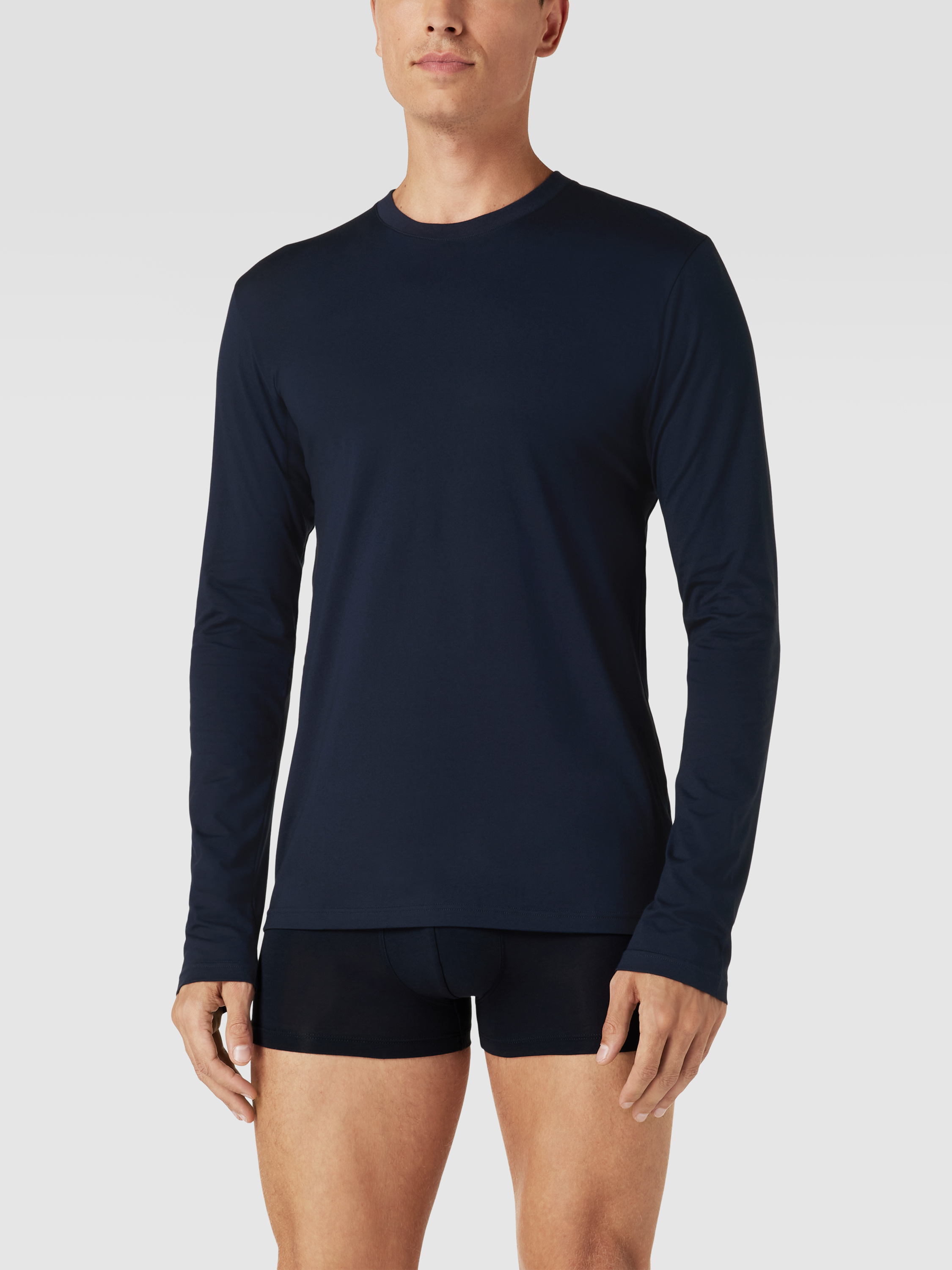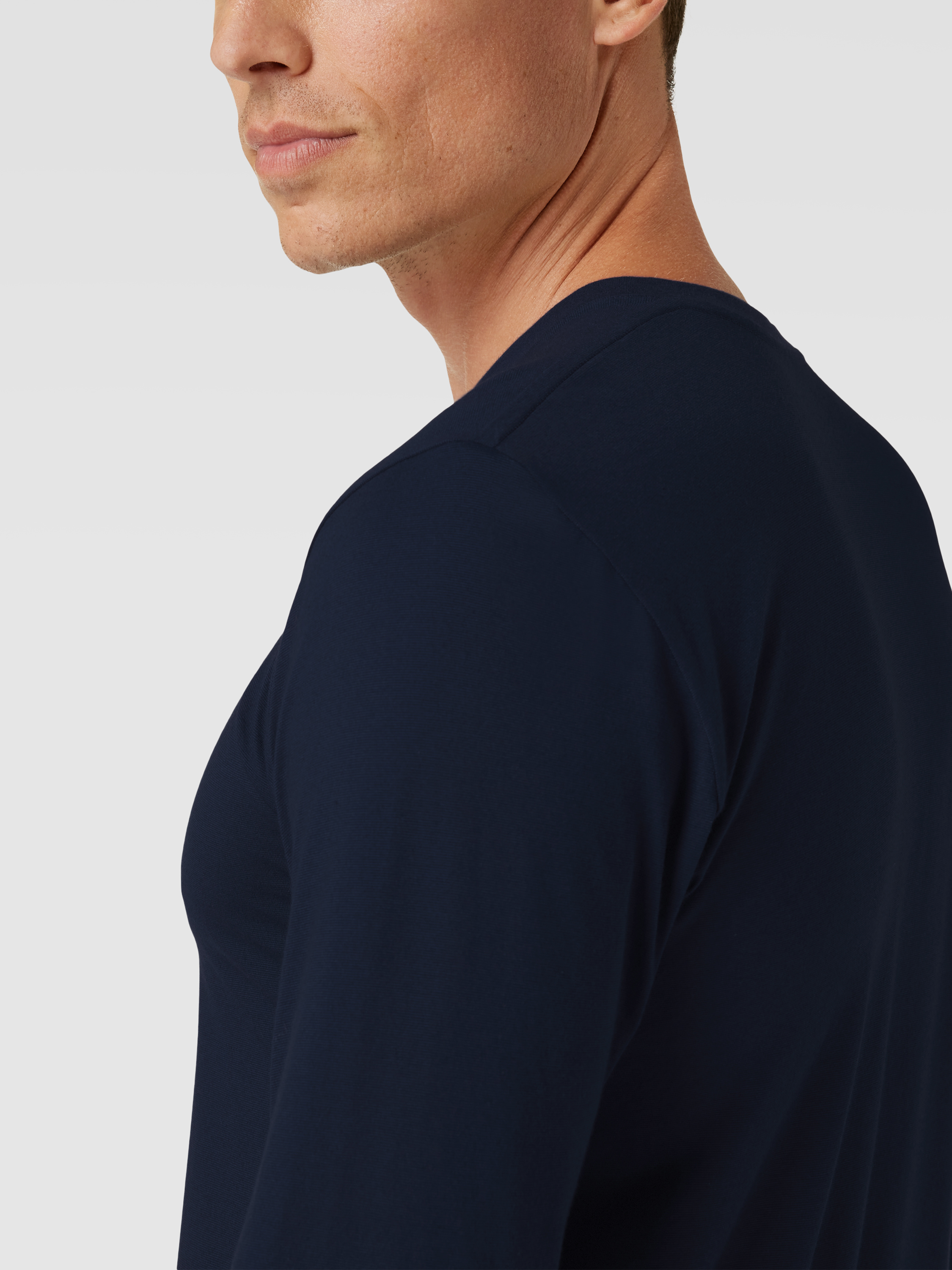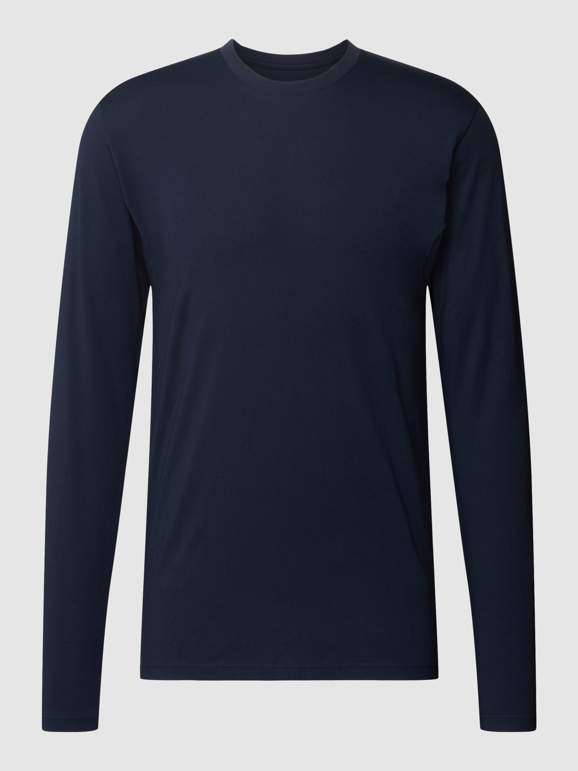 Bluzka z długim rękawem i okrągłym dekoltem model ‘HYBRID’ - ciemnoniebieski