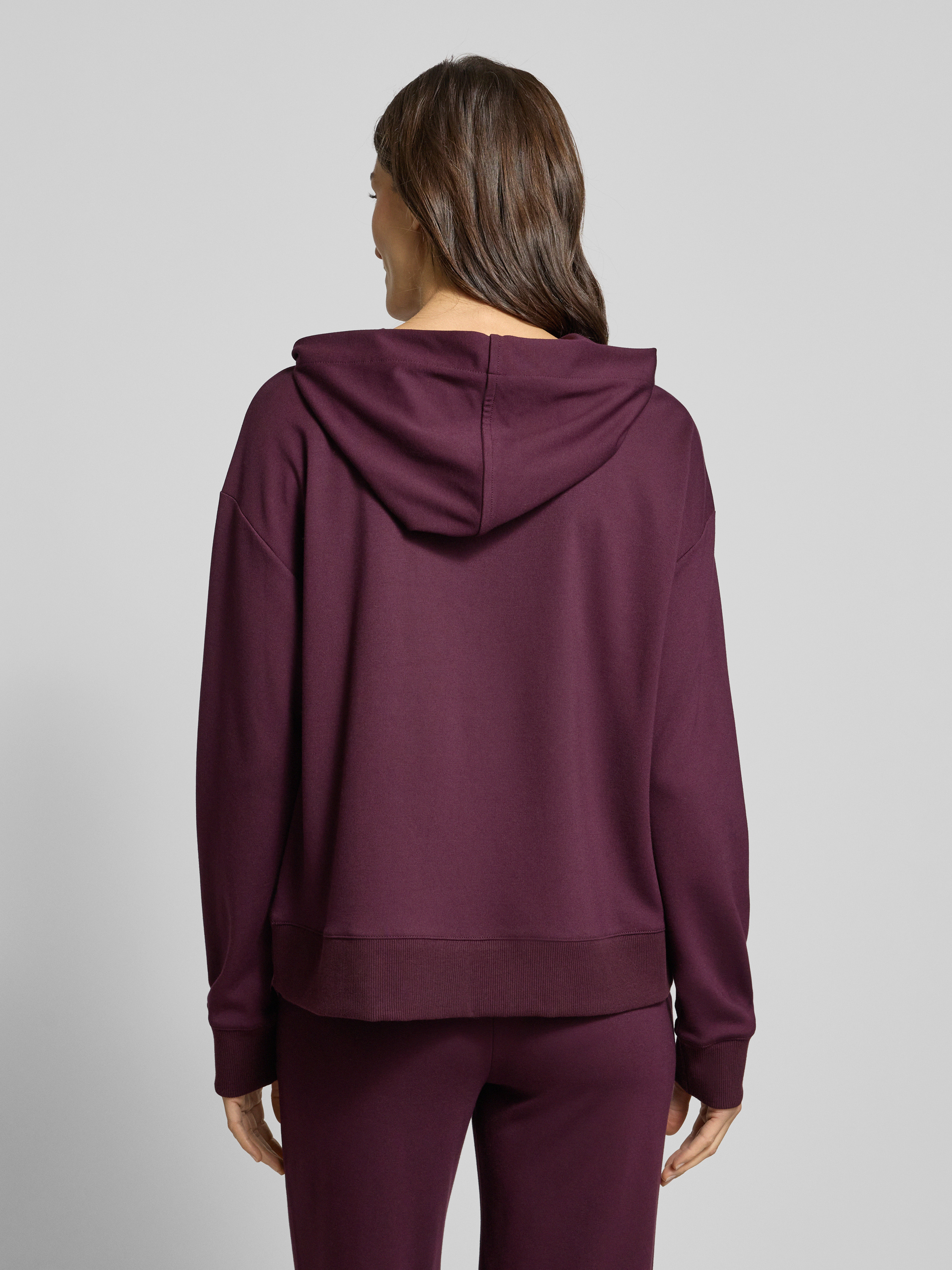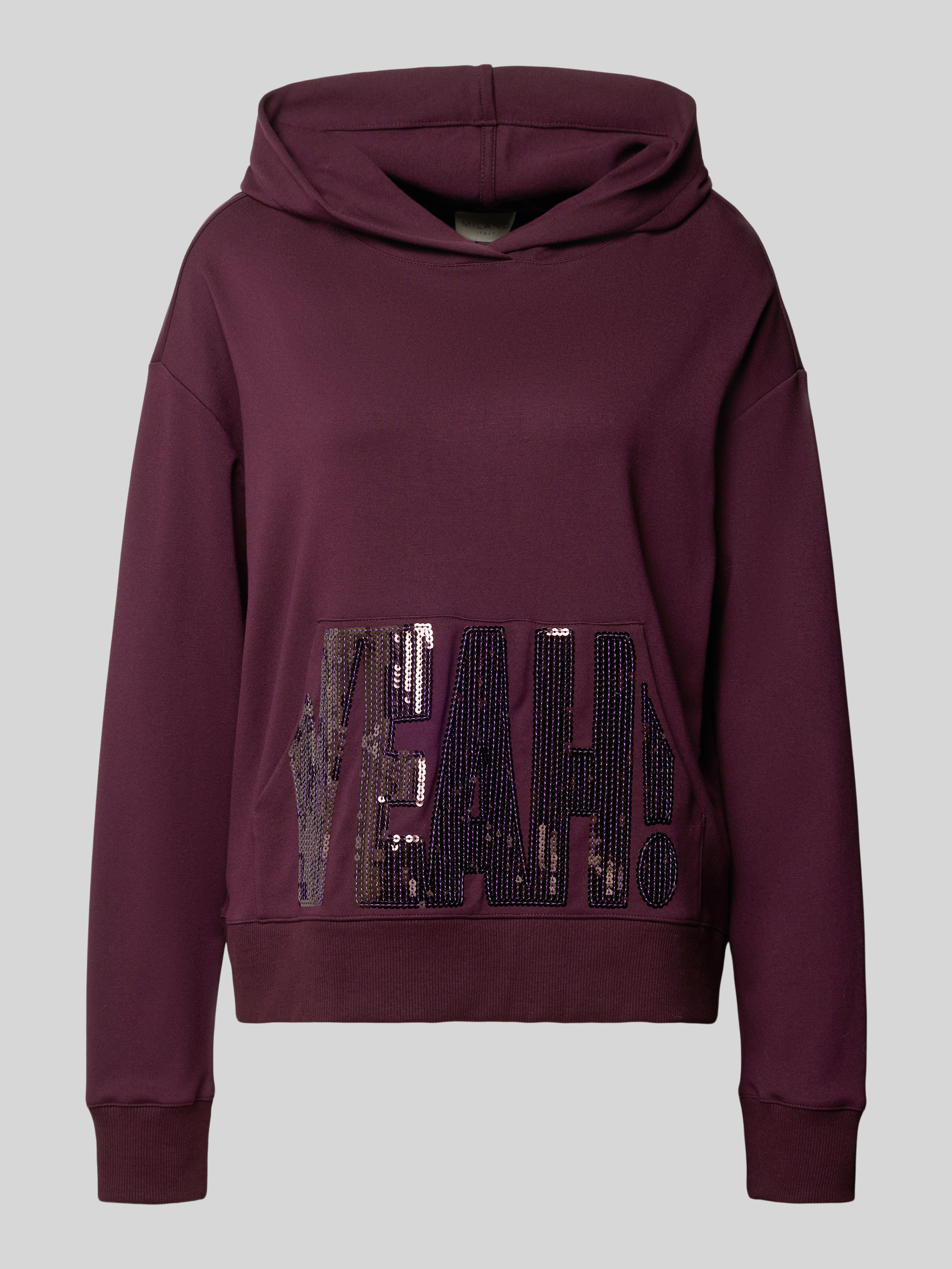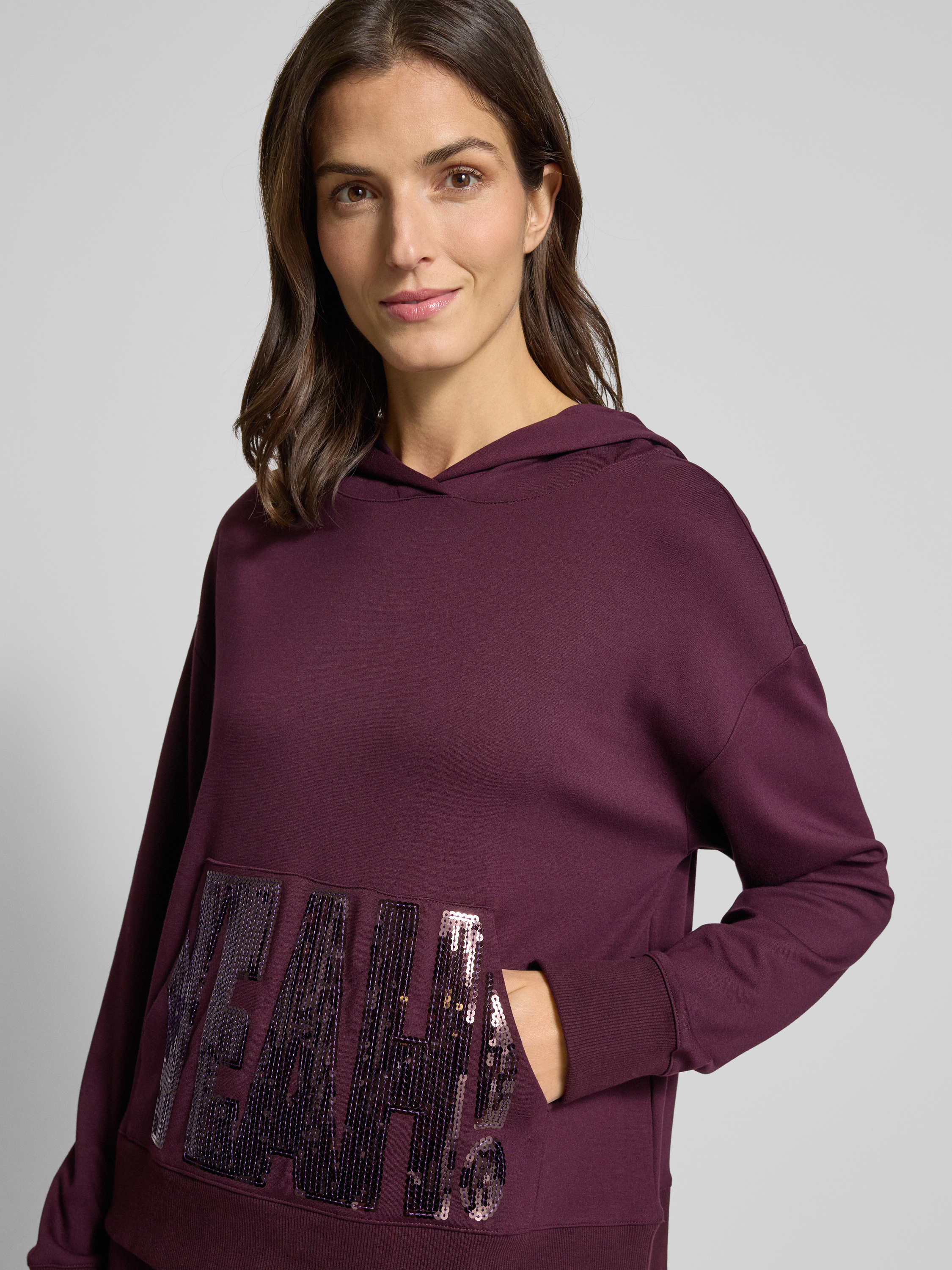 Bluza z mieszanki wiskozy z kapturem, kieszenią kangurką i cekinami - bordowy