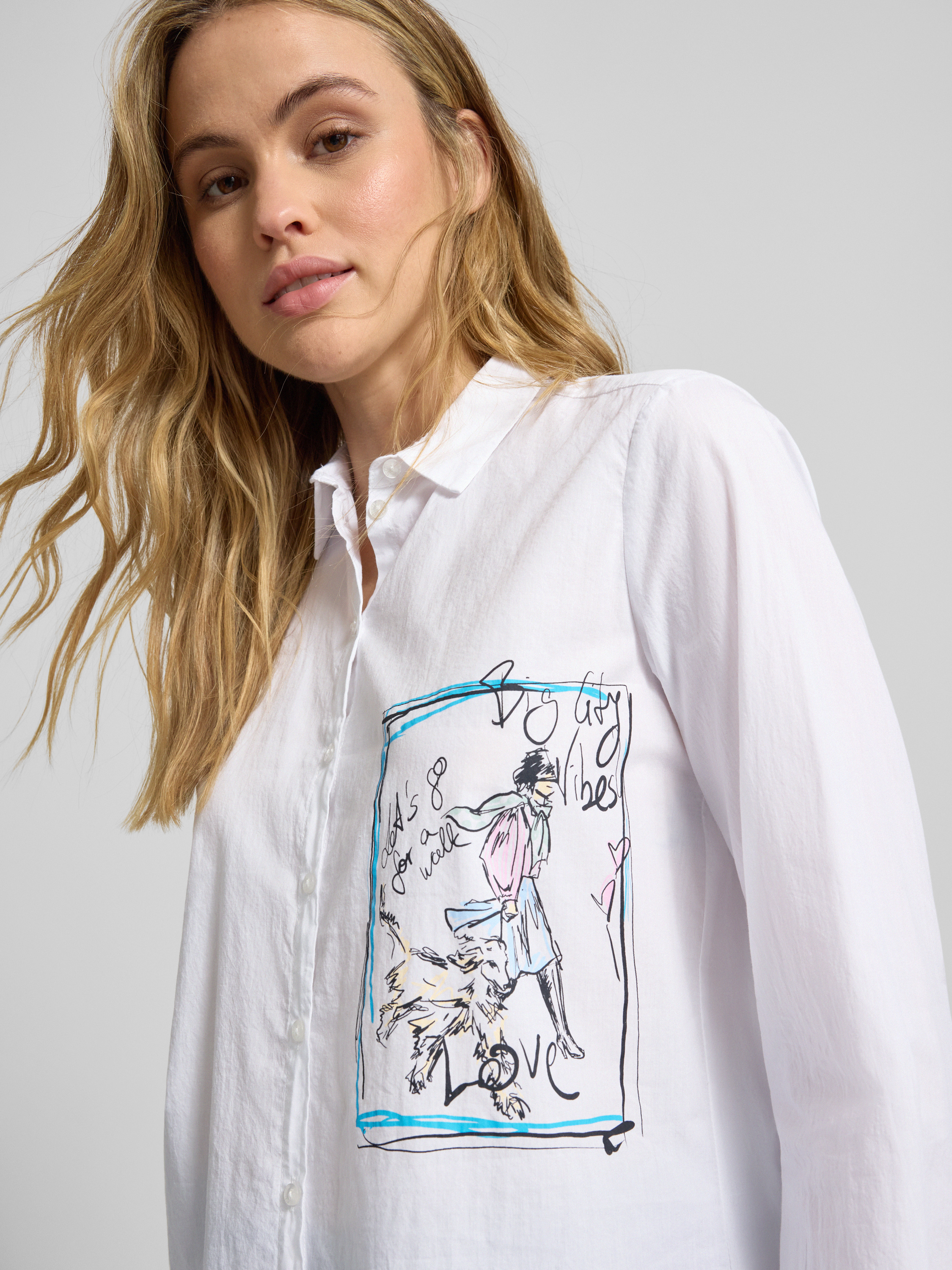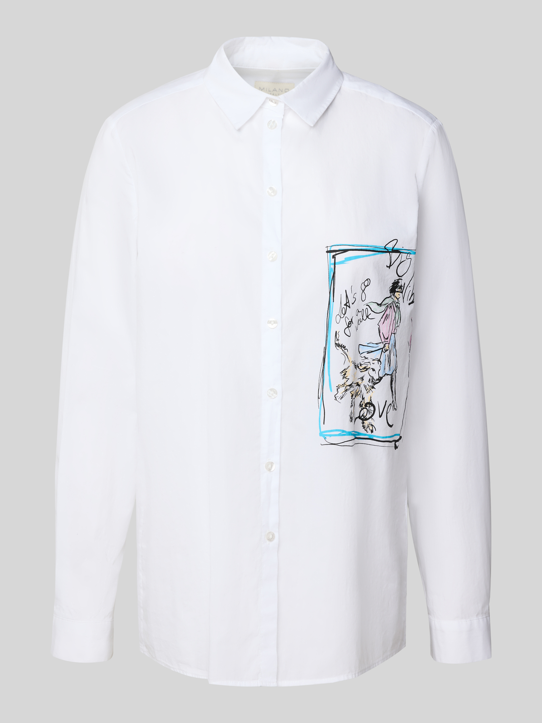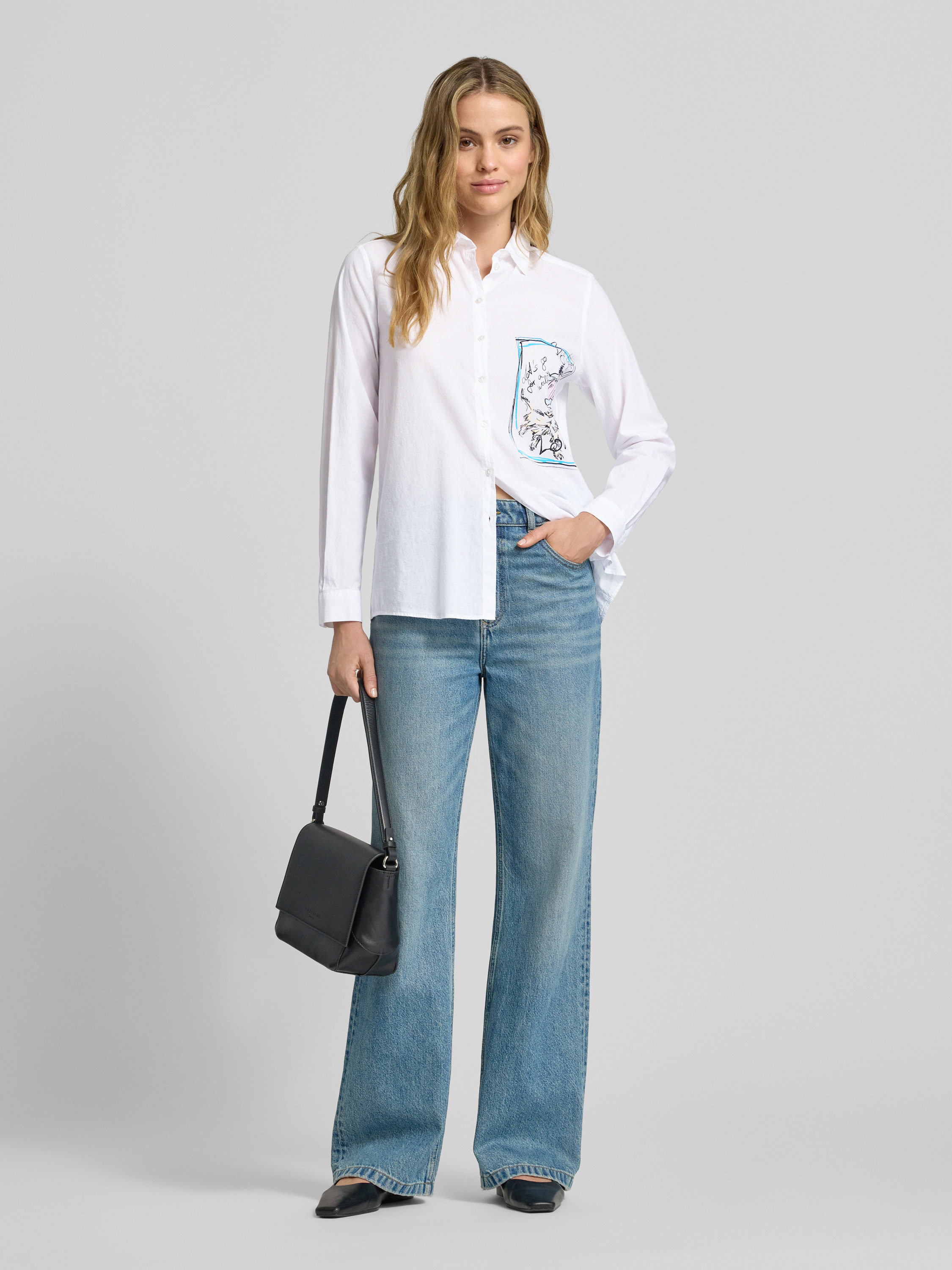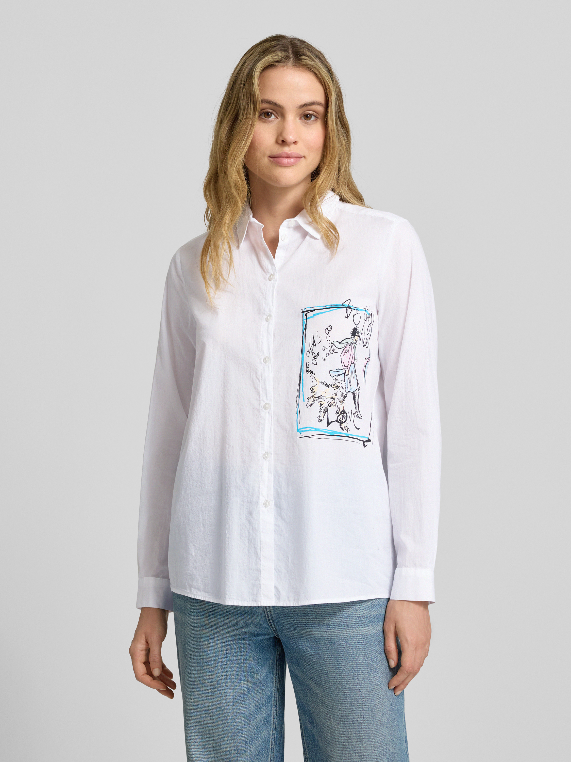 Bluzka koszulowa o kroju regular fit z listwą guzikową - biały
