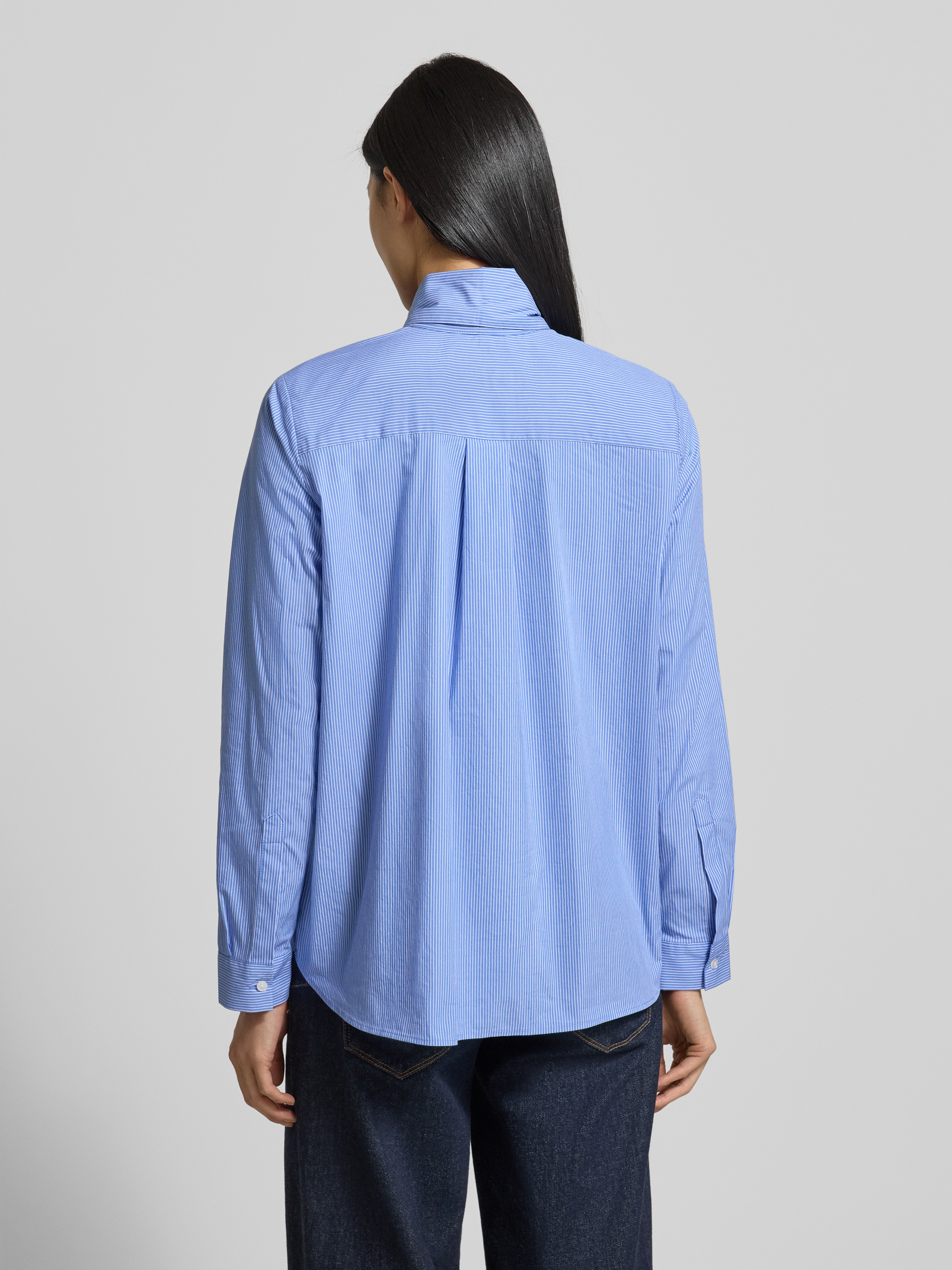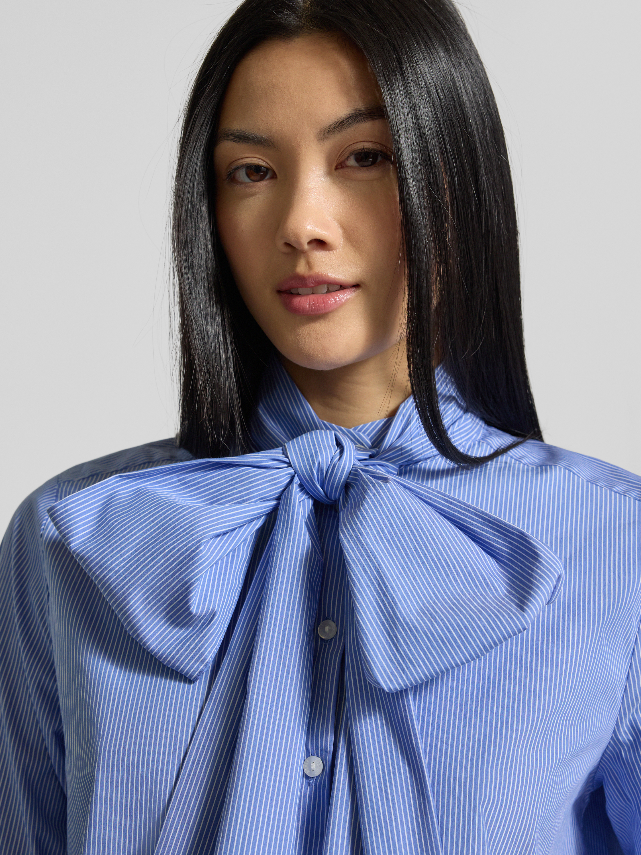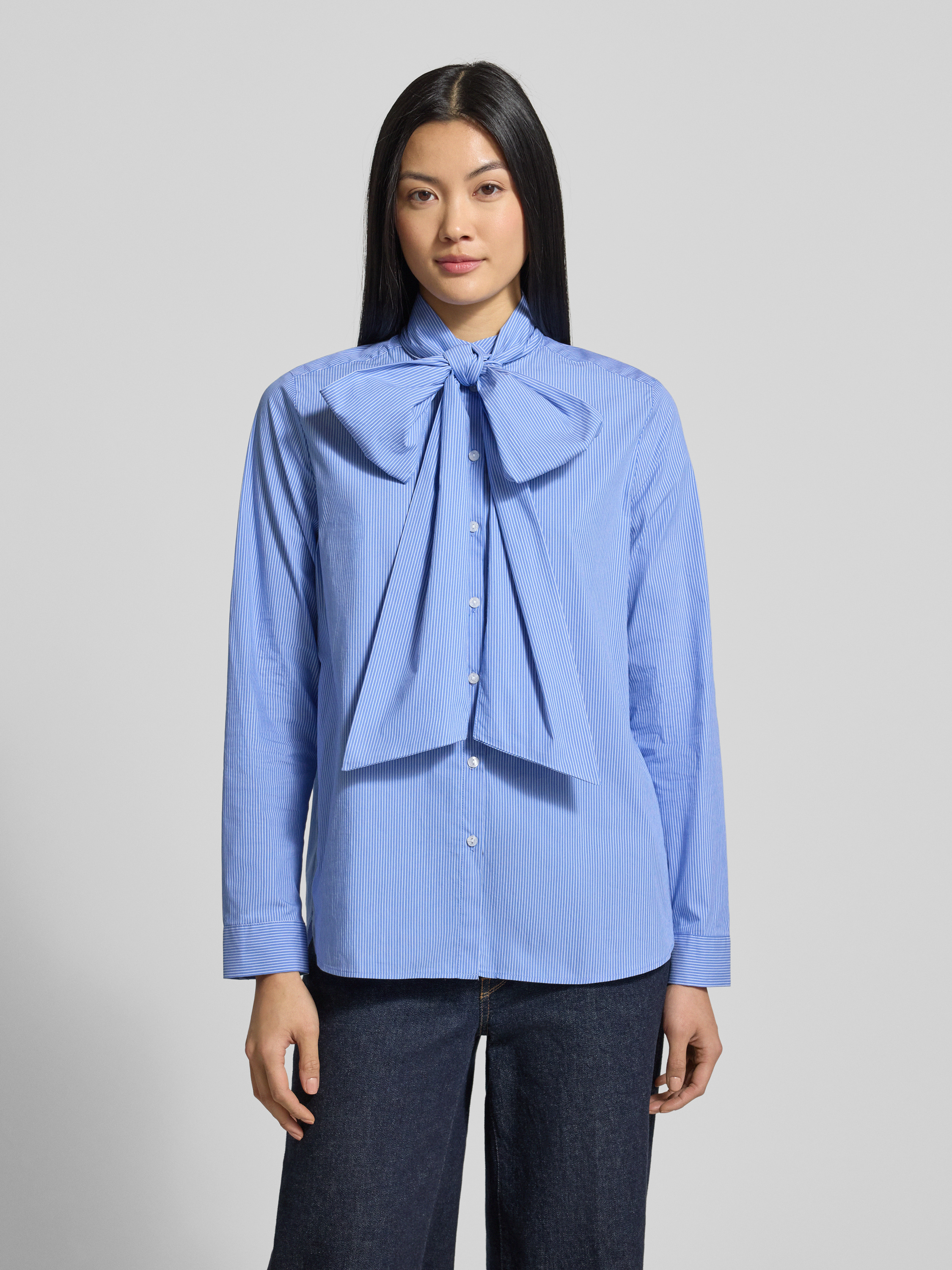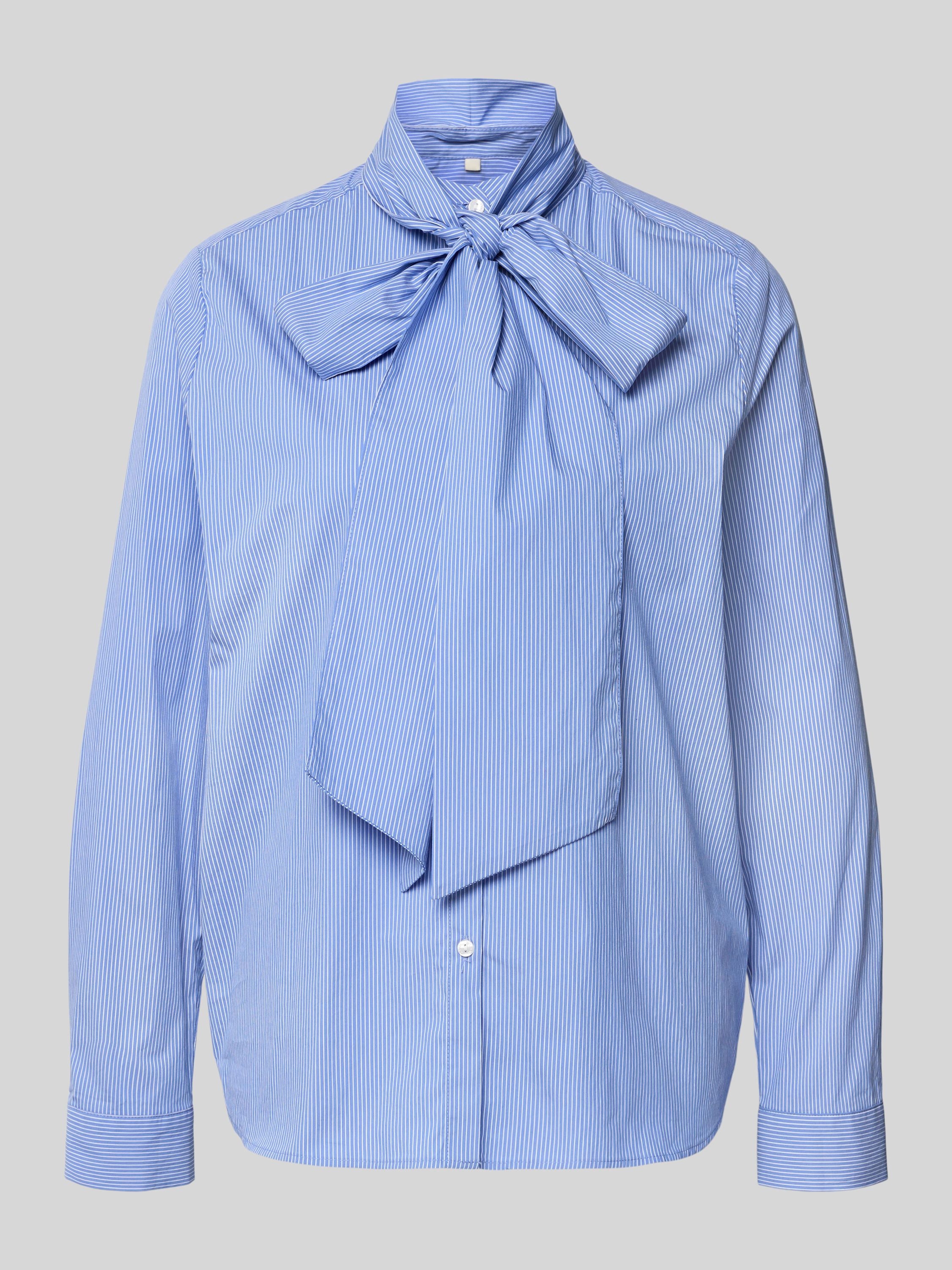 Bluzka o kroju regular fit wiązaniem pod szyją i listwą guzikową - błękitny