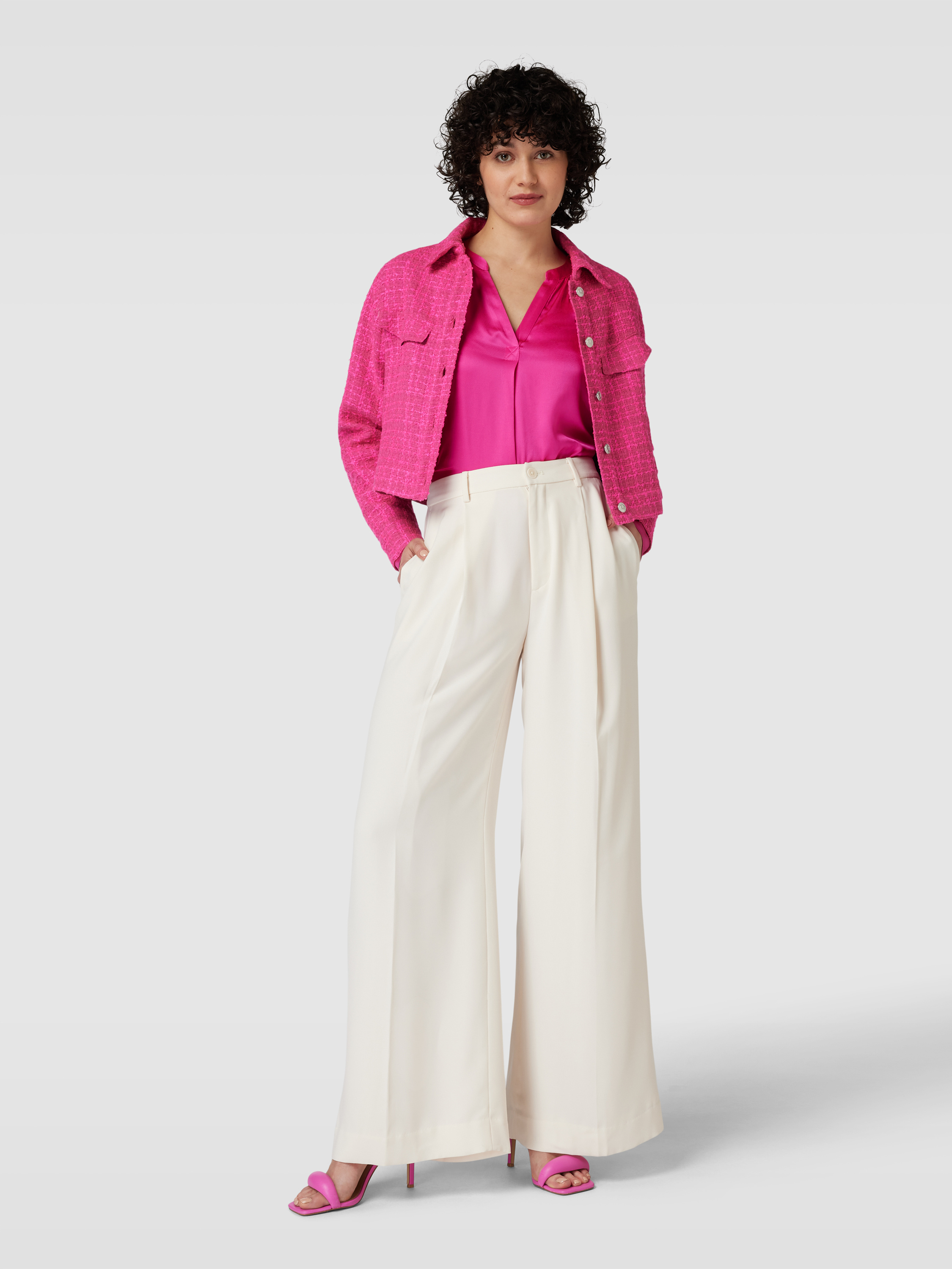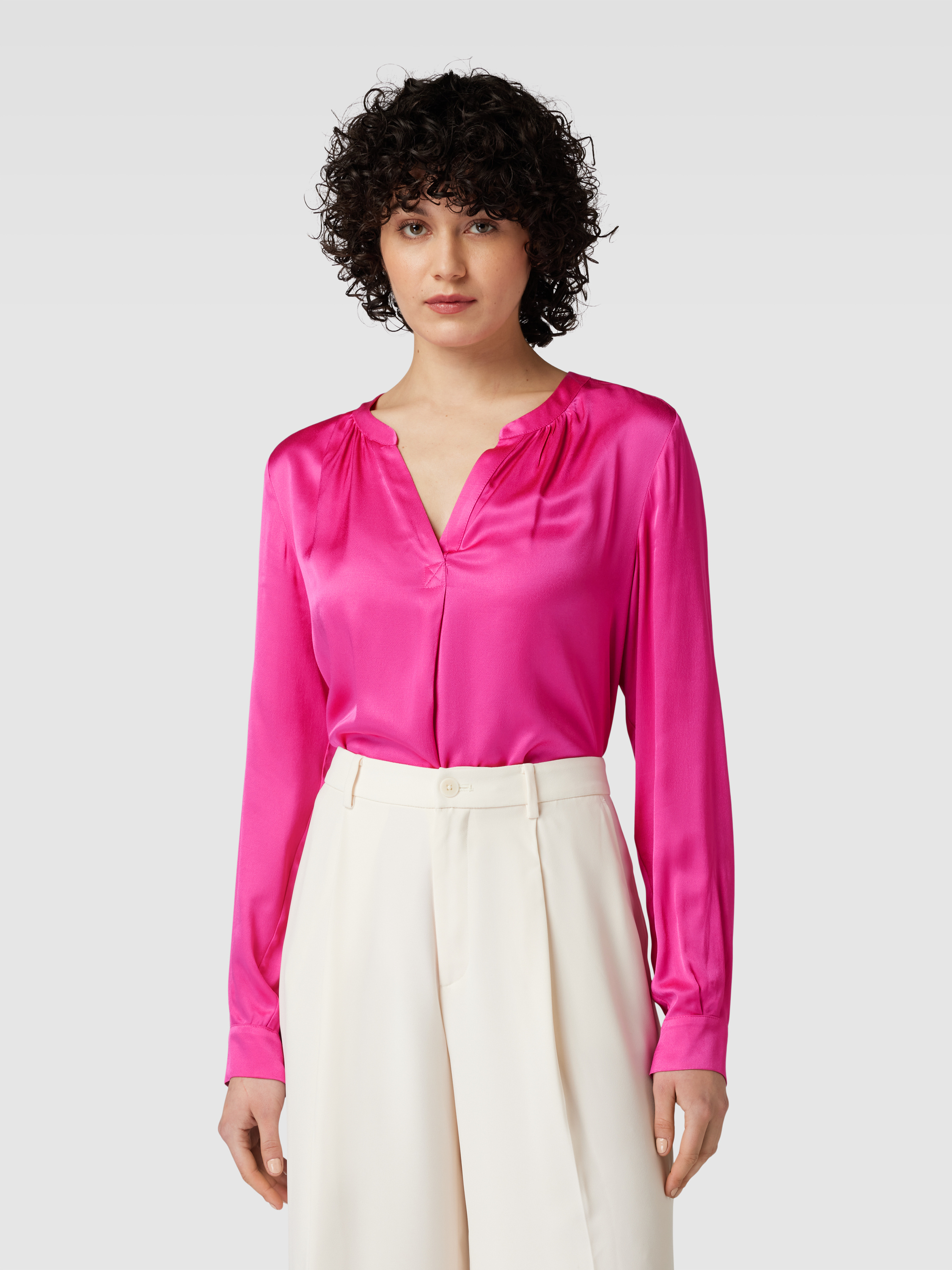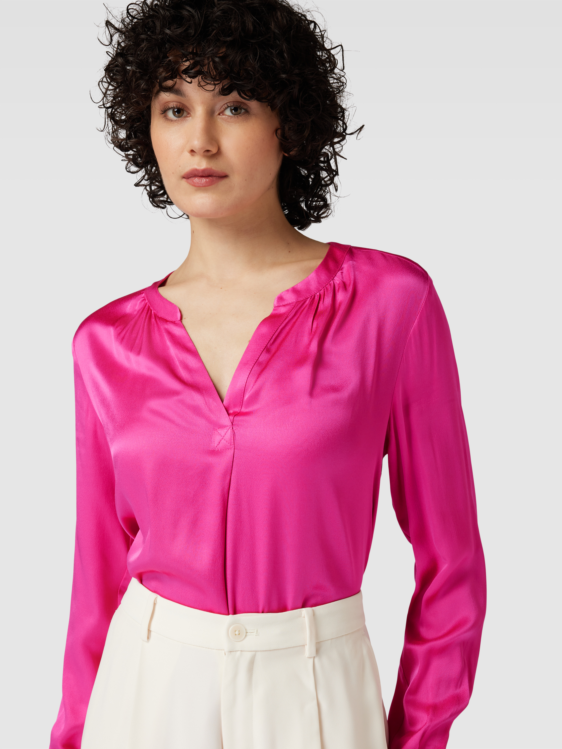 Bluzka z dekoltem w serek - mocnoróżowy