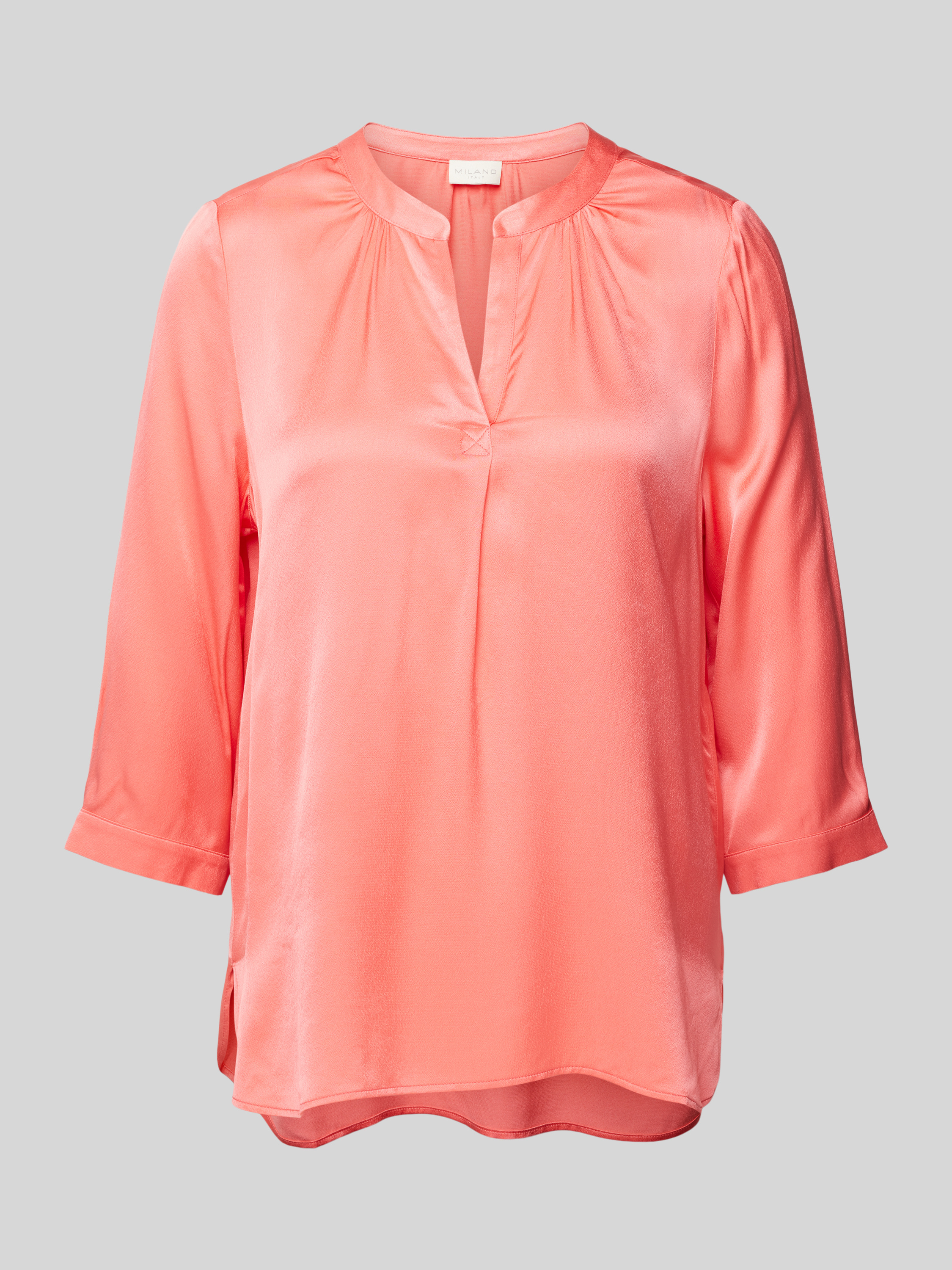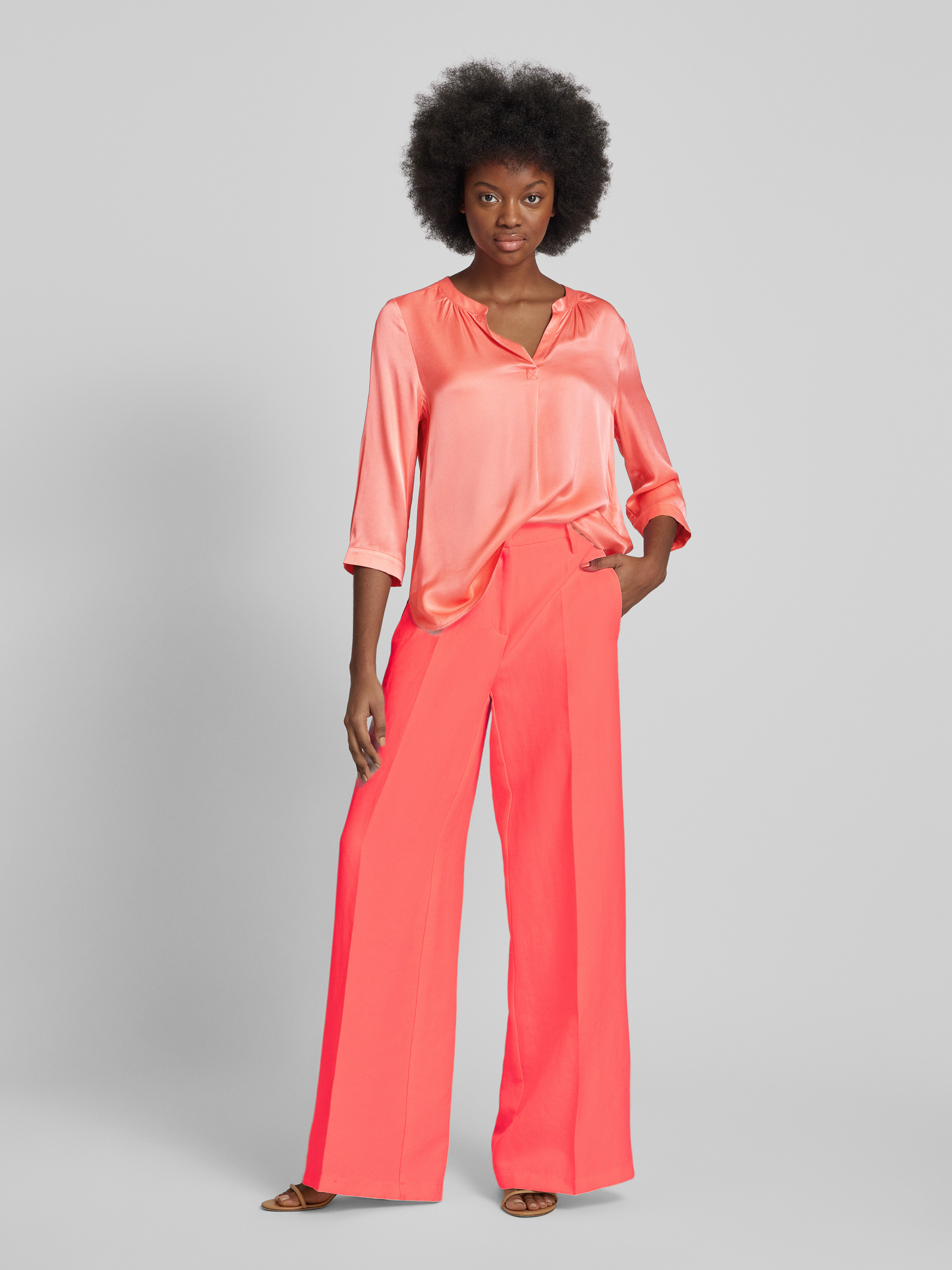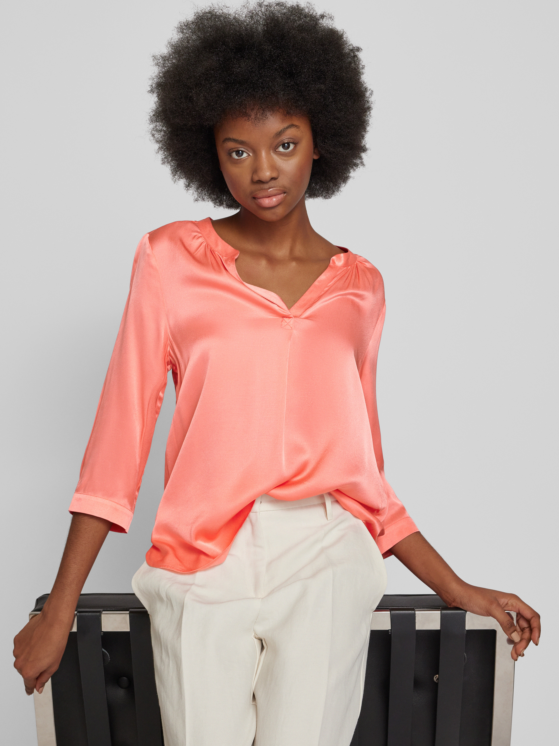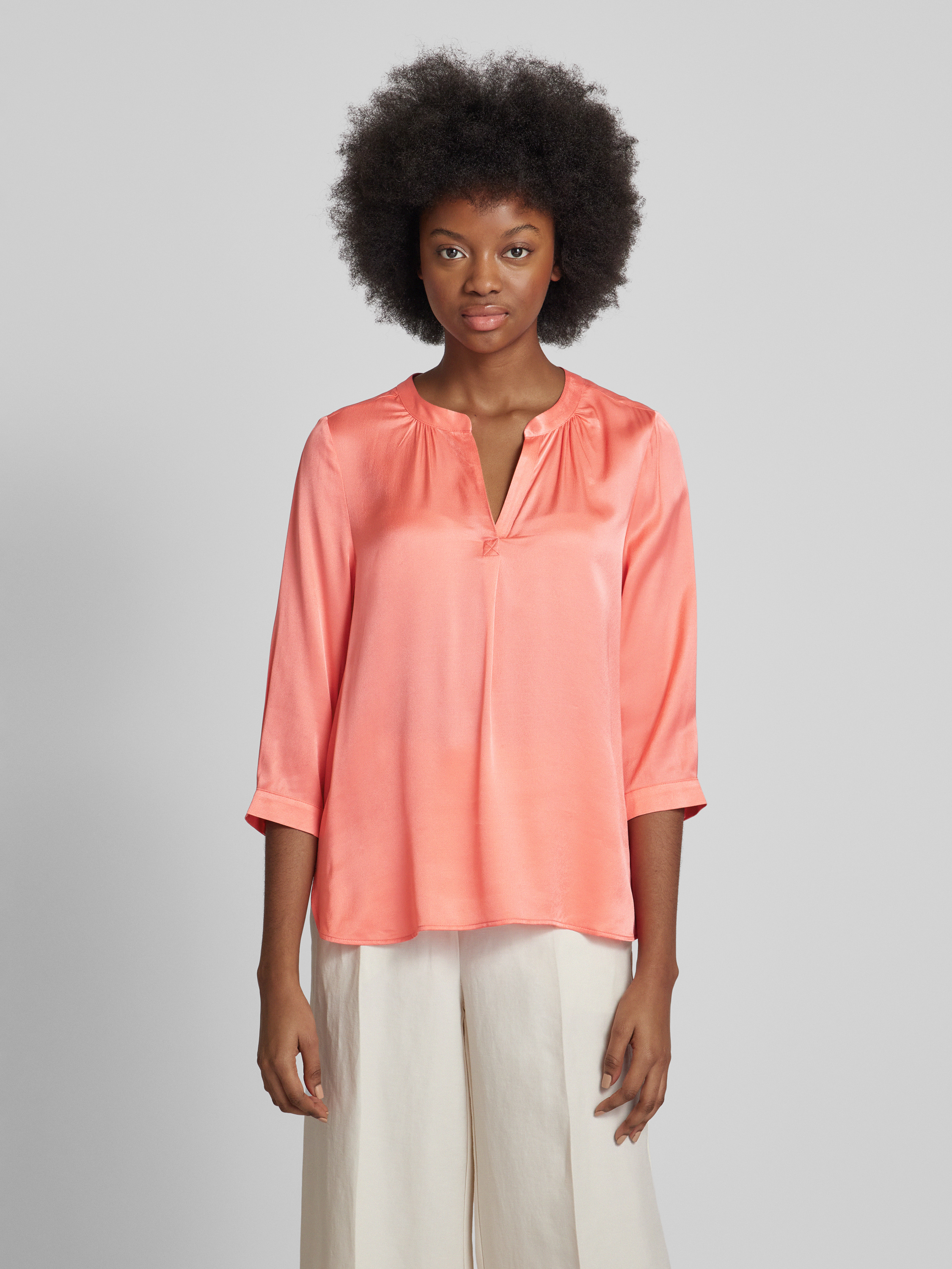 Bluzka z wiskozy z kołnierzem z lamówką - różowy
