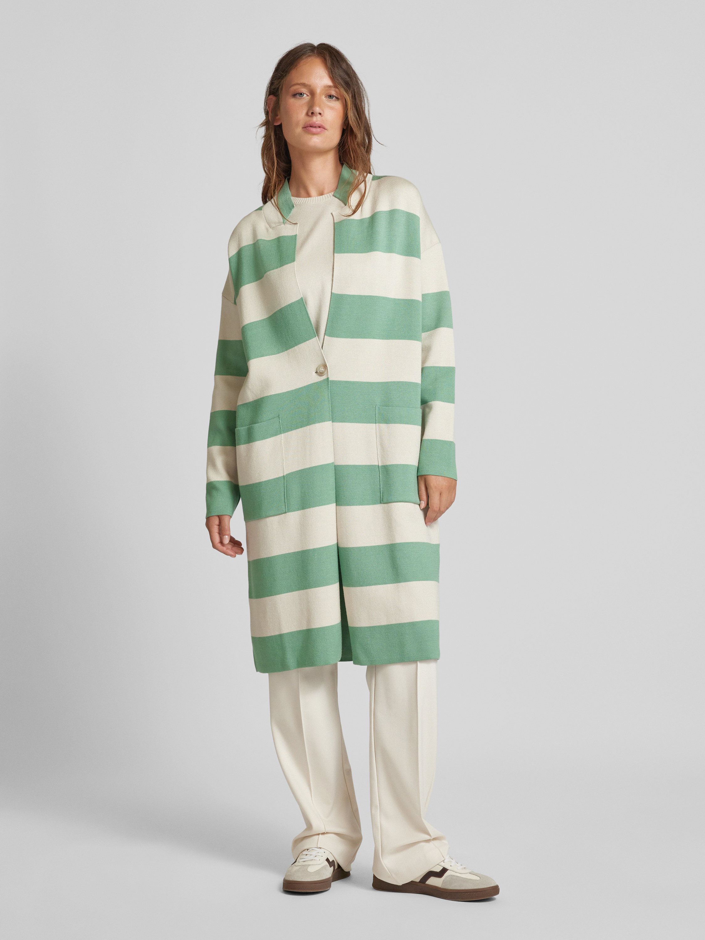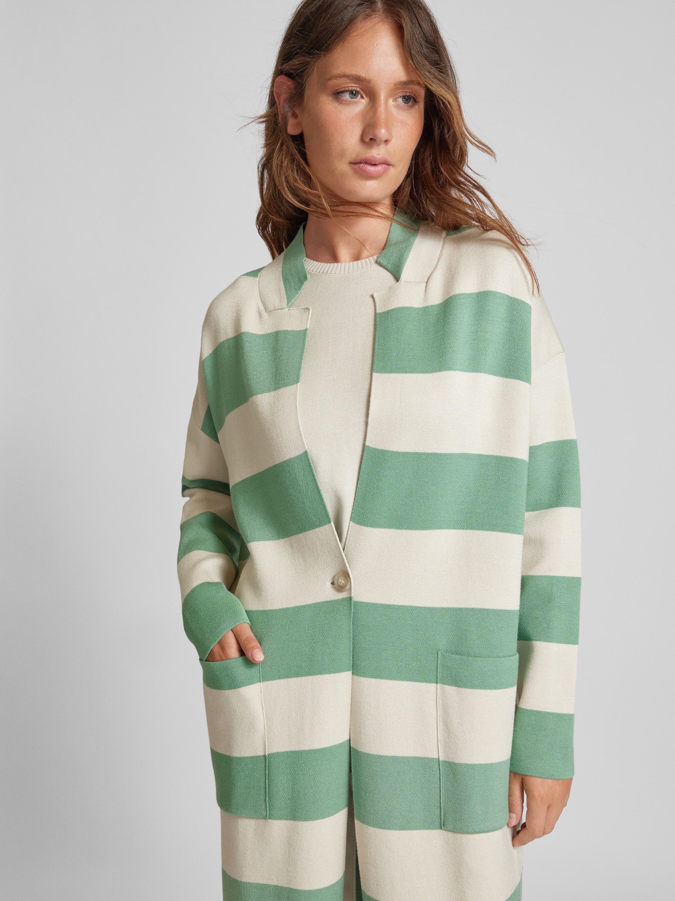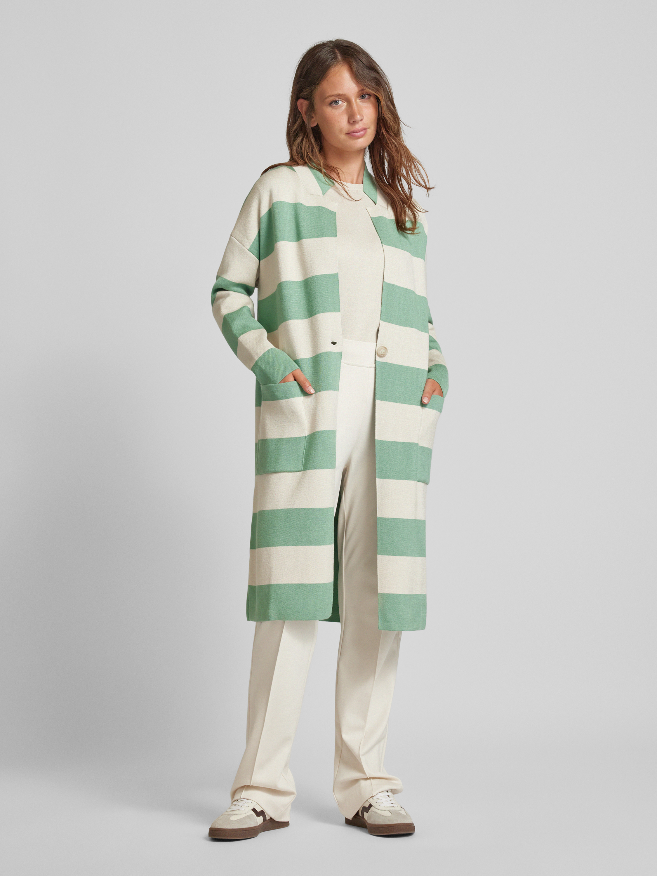 Długi kardigan z wpuszczanymi kieszeniami - miętowy