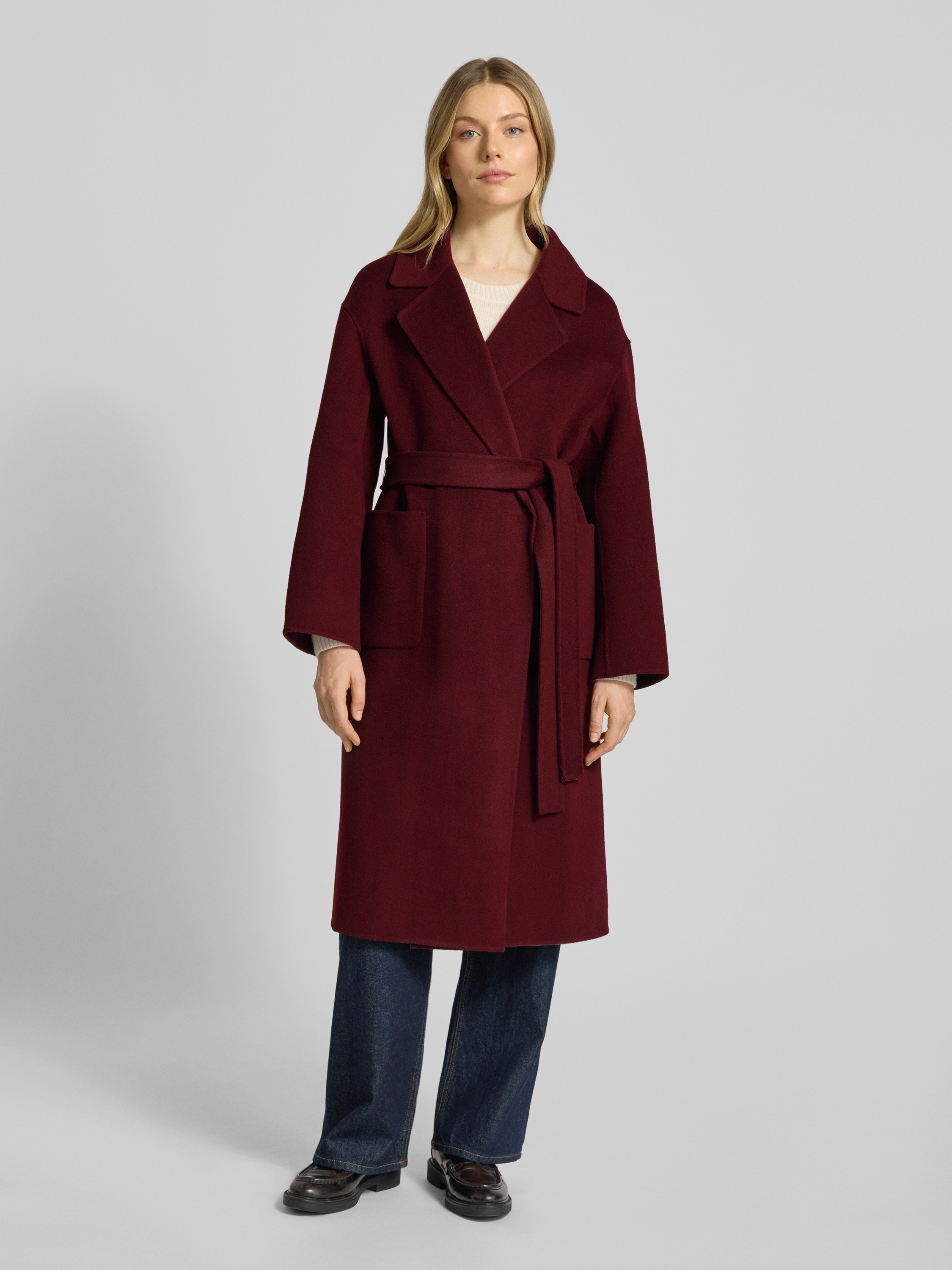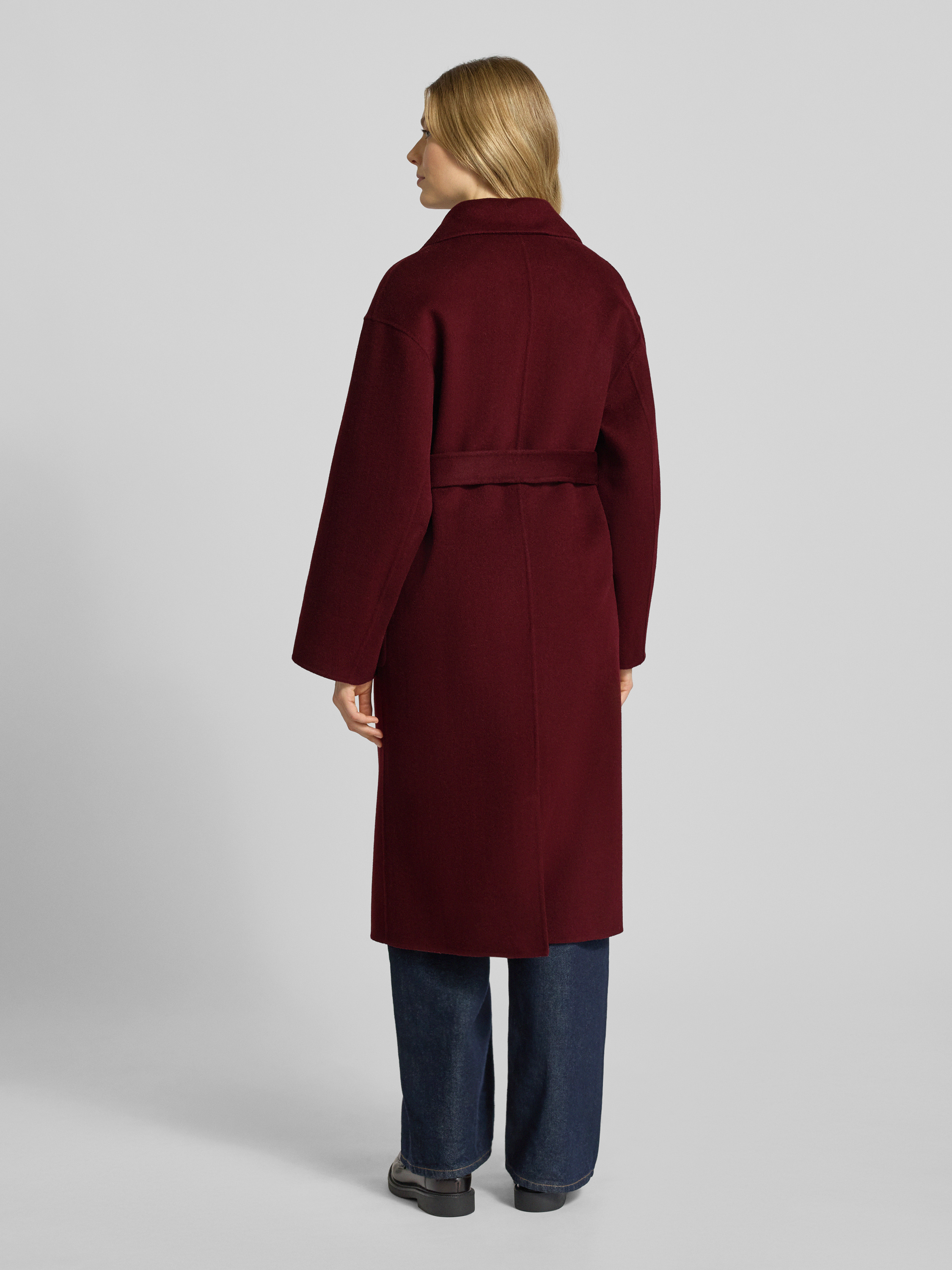 Płaszcz z wełny z kołnierzem z połami - bordowy
