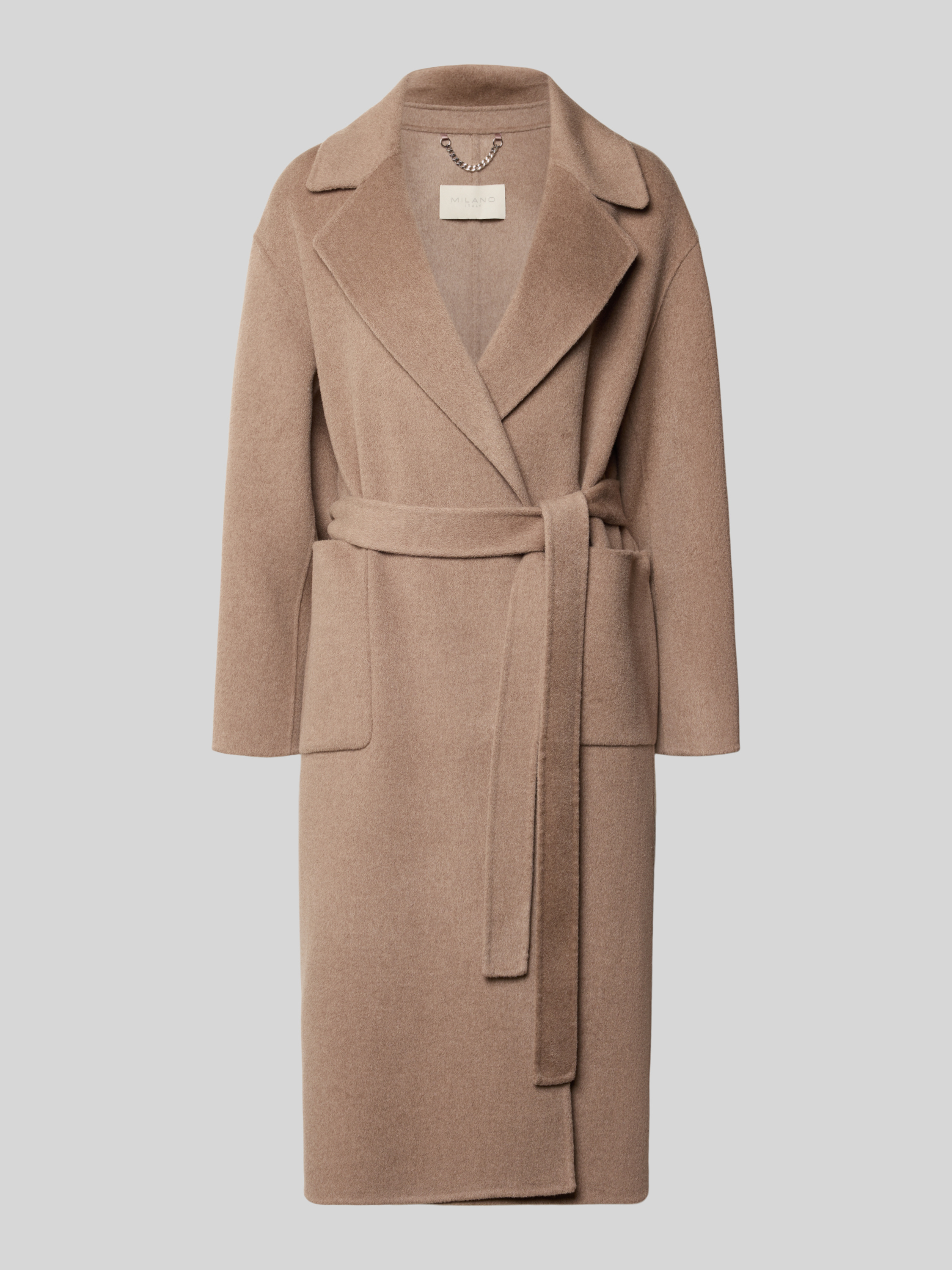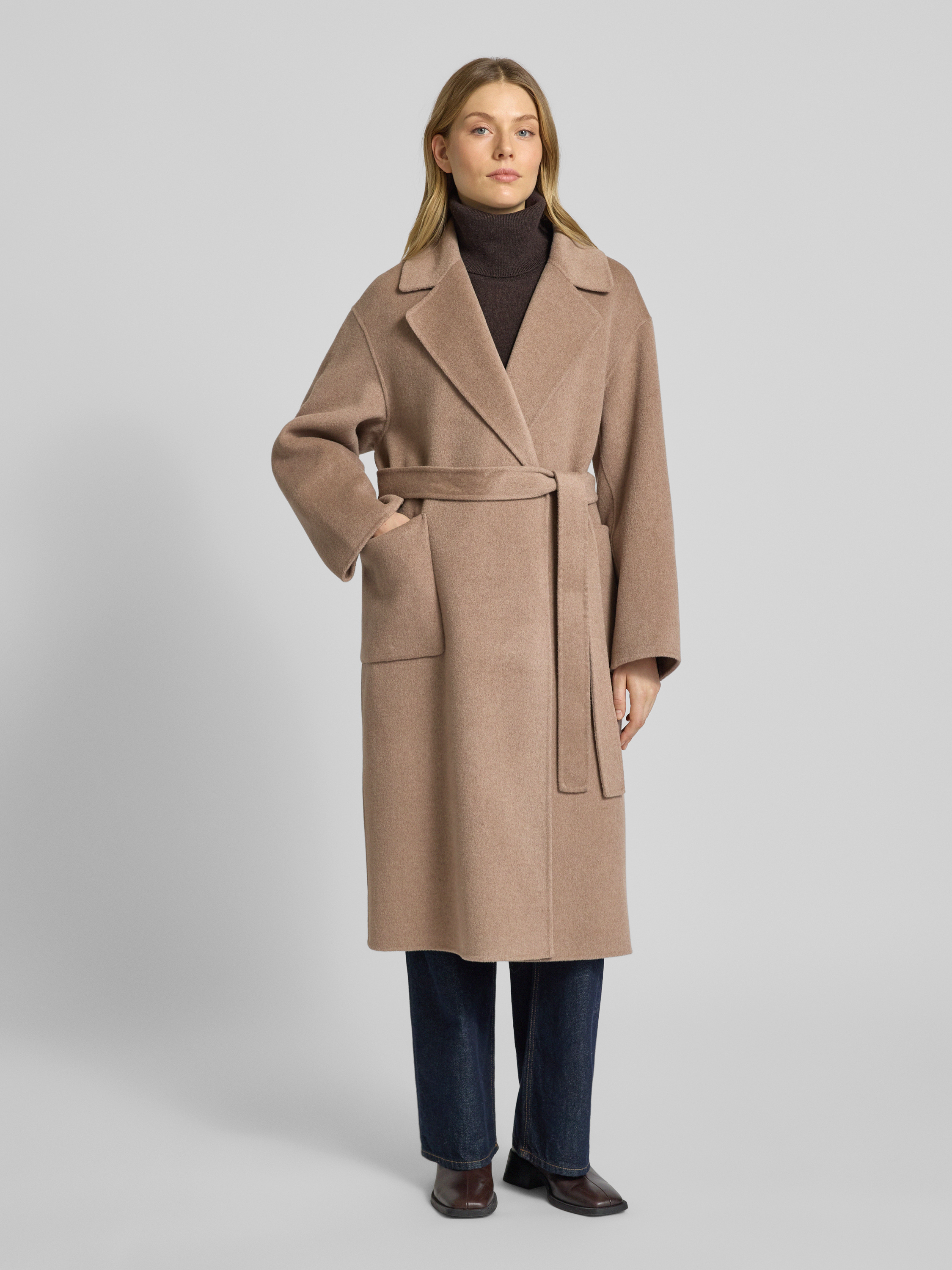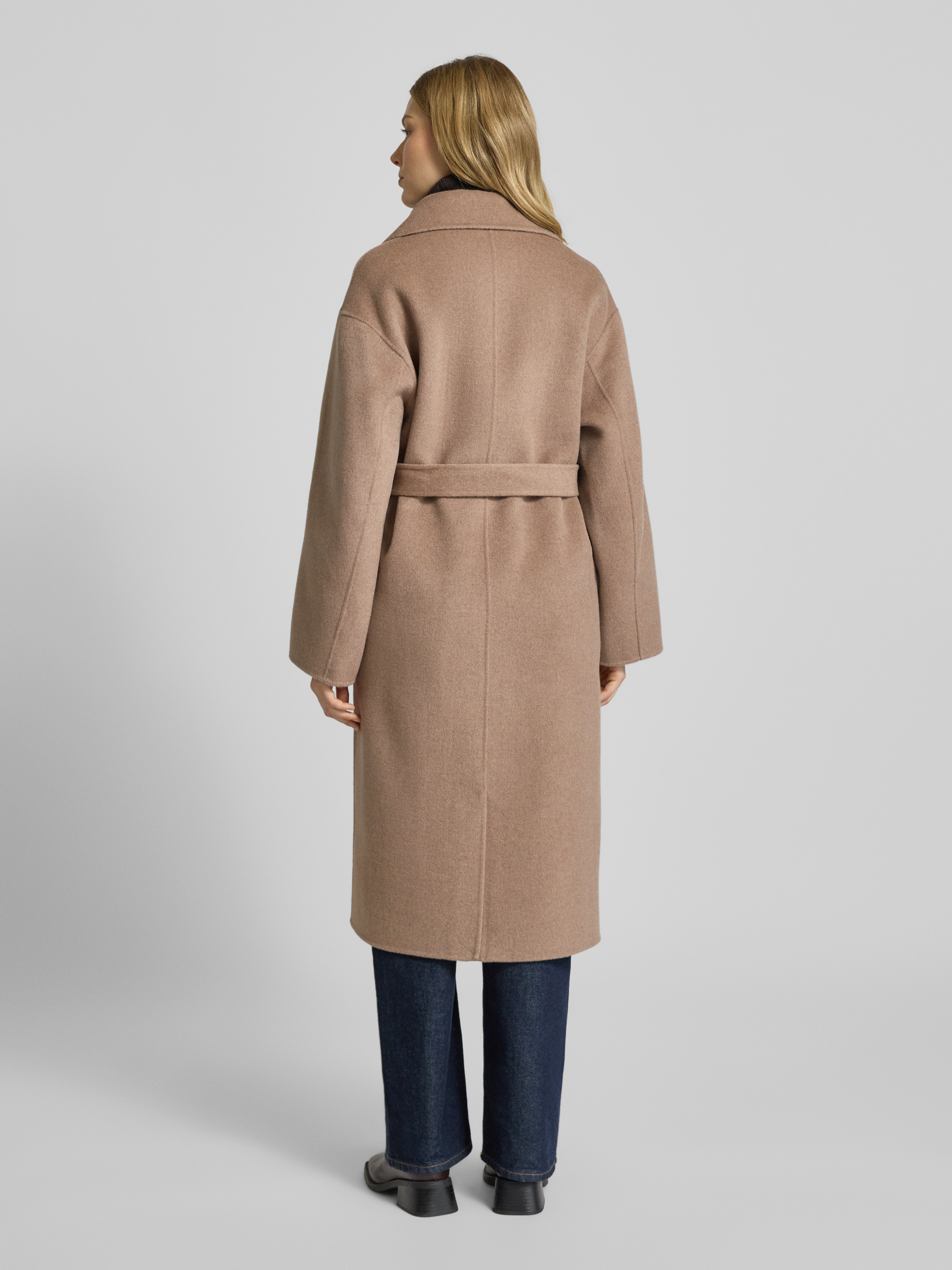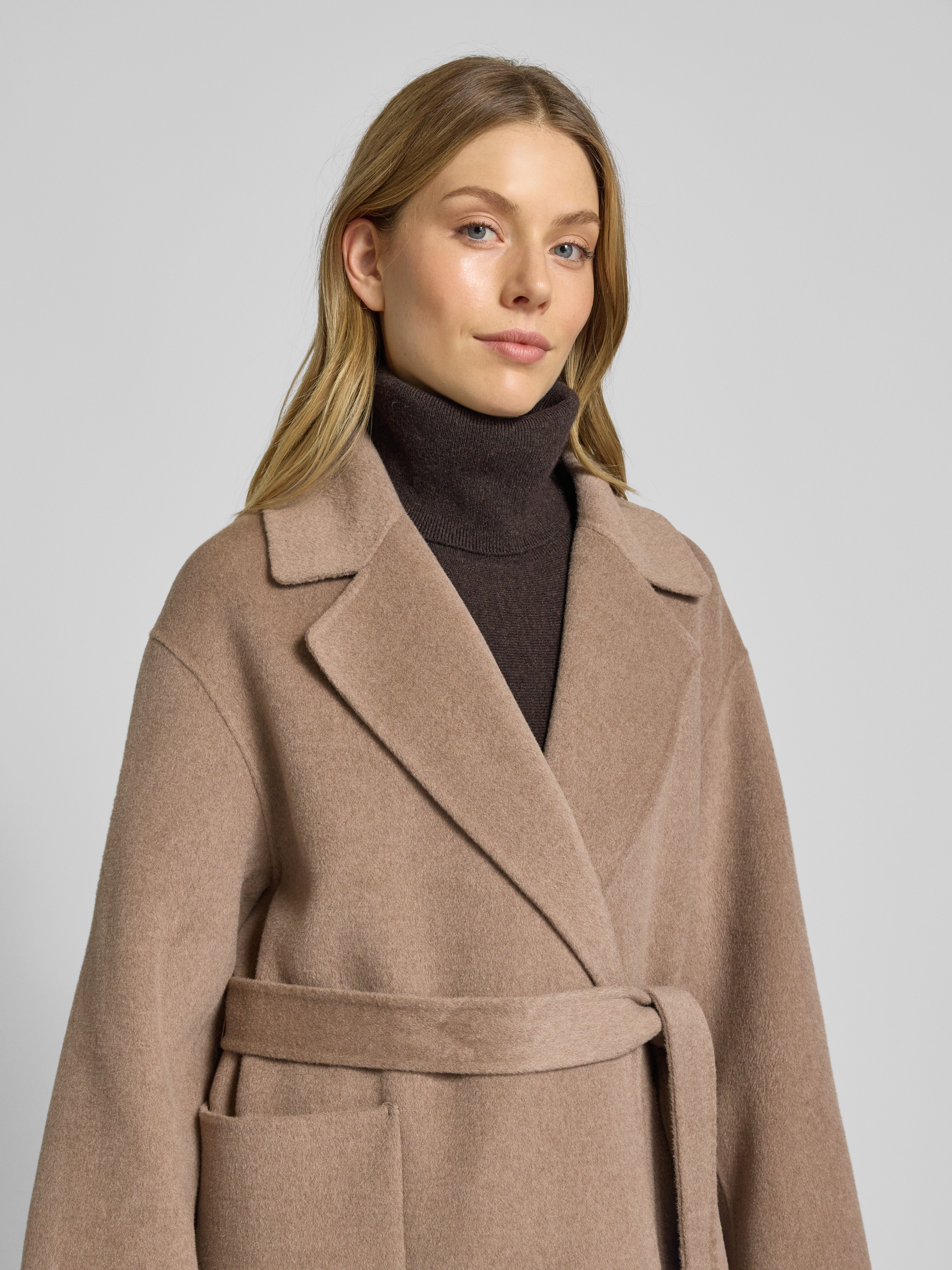 Płaszcz z wełny z kołnierzem z połami - piaskowy
