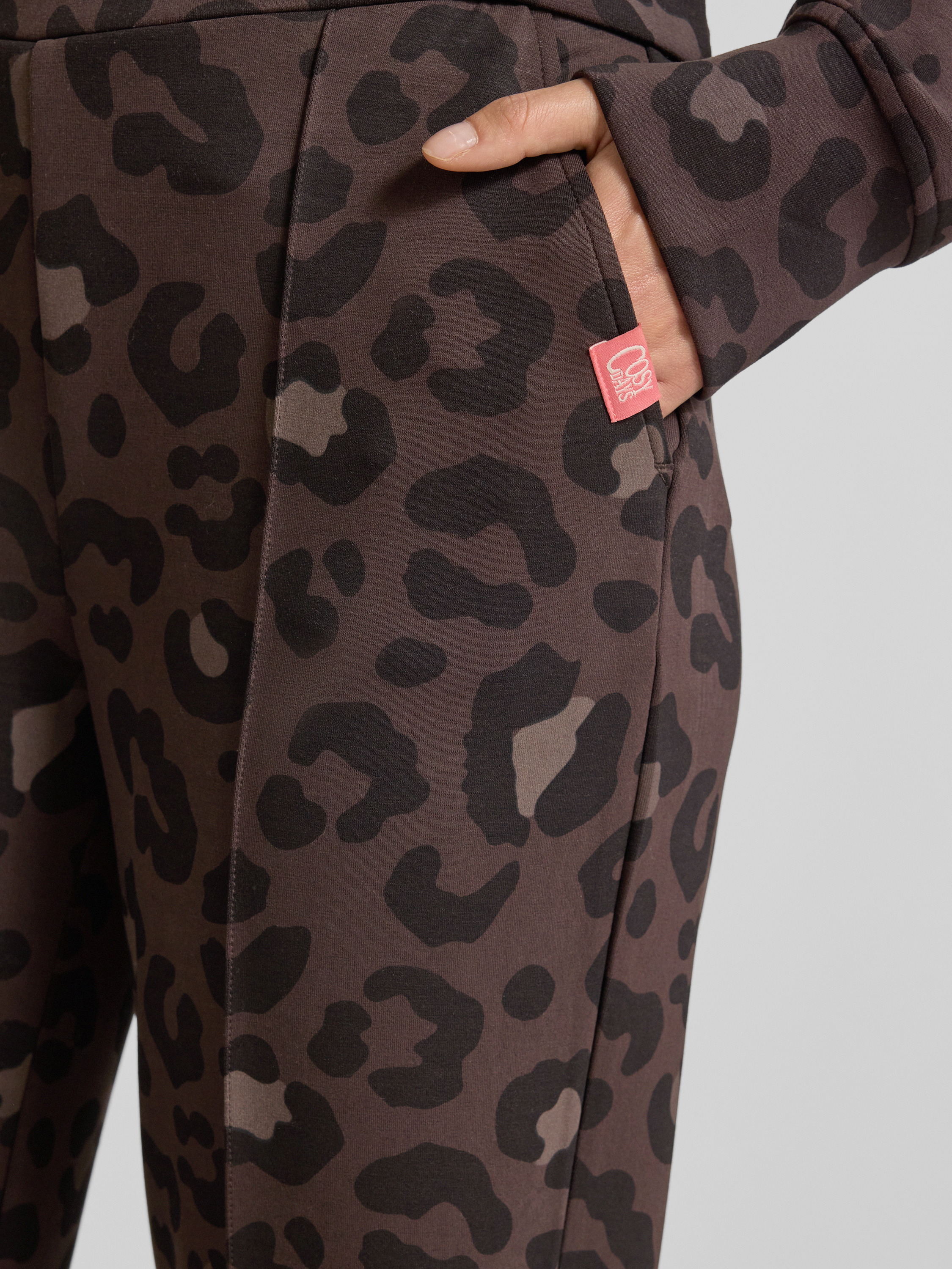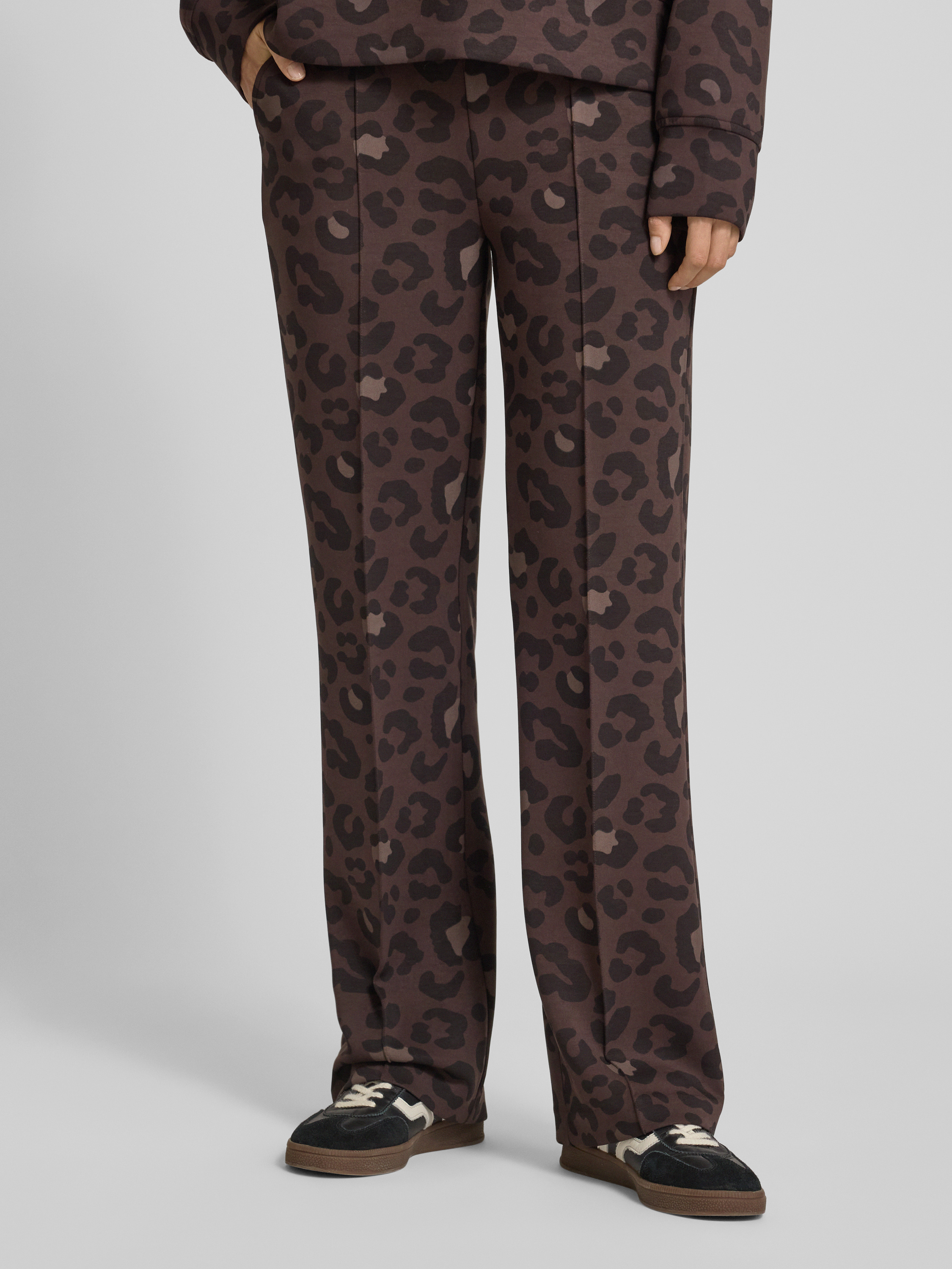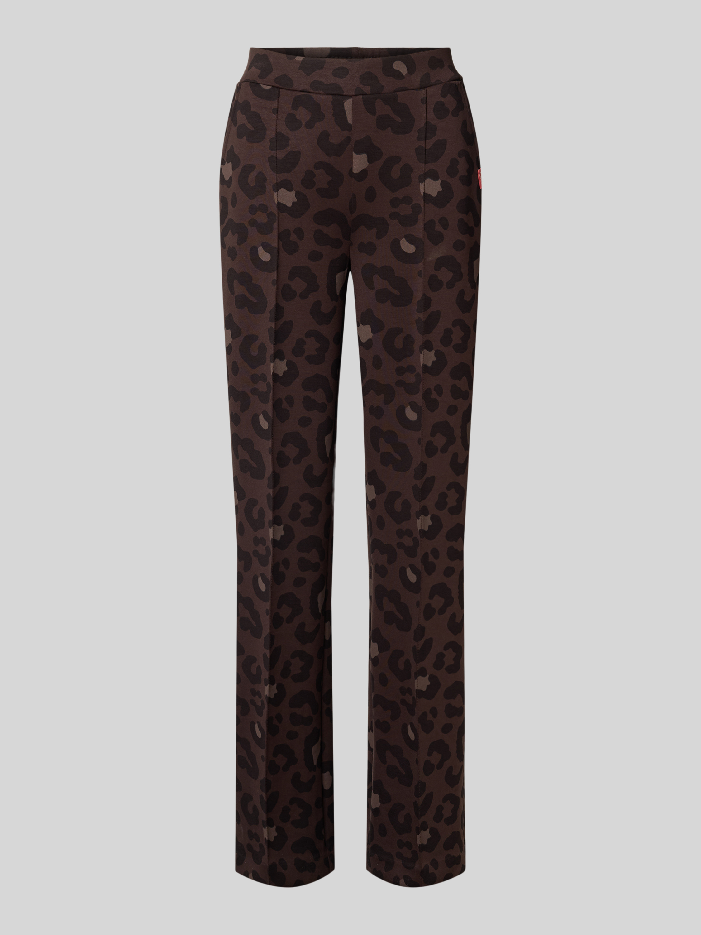 Spodnie sportowe ze wzorem na całej powierzchni i elastycznym pasem - czekoladowy