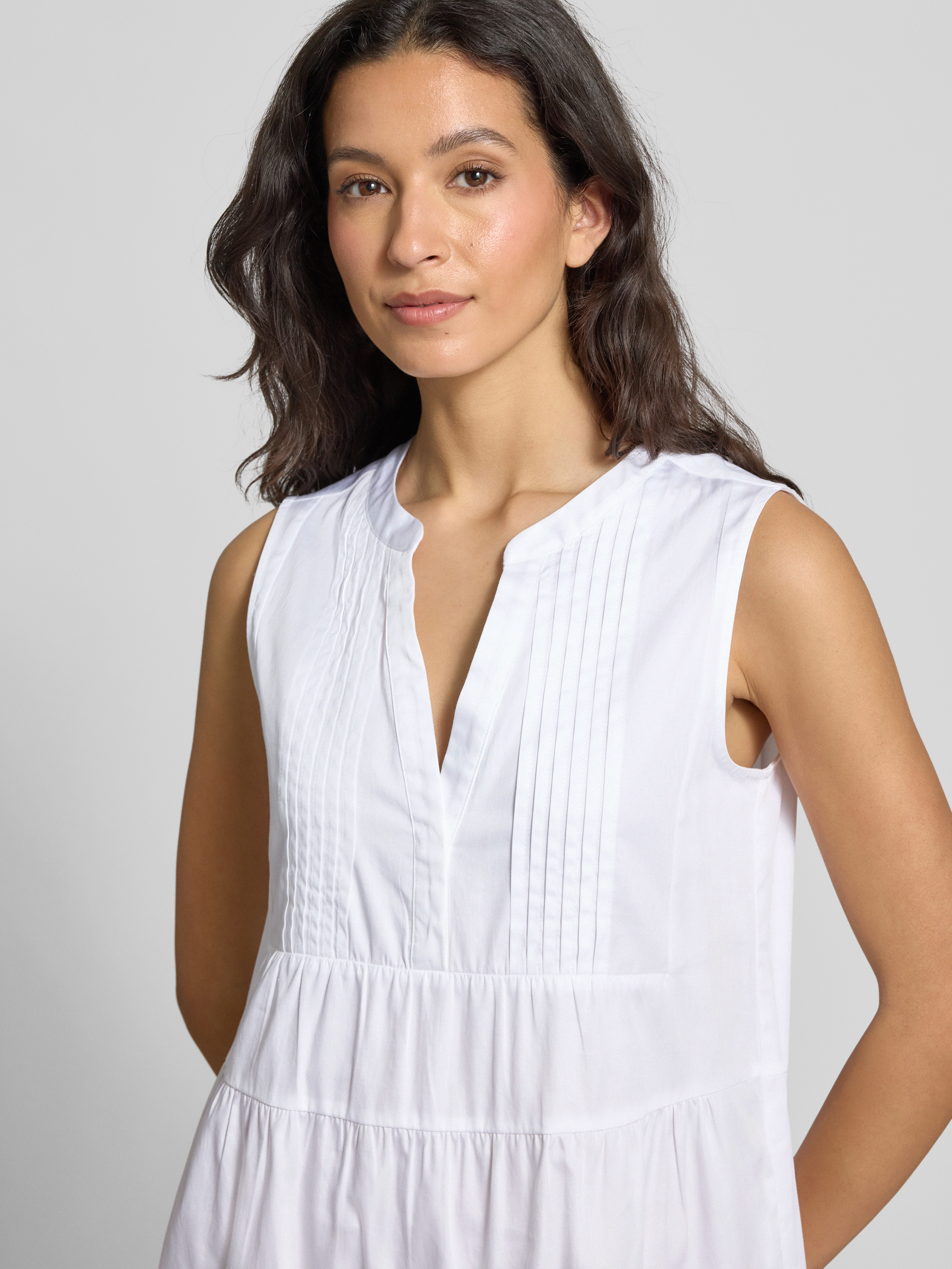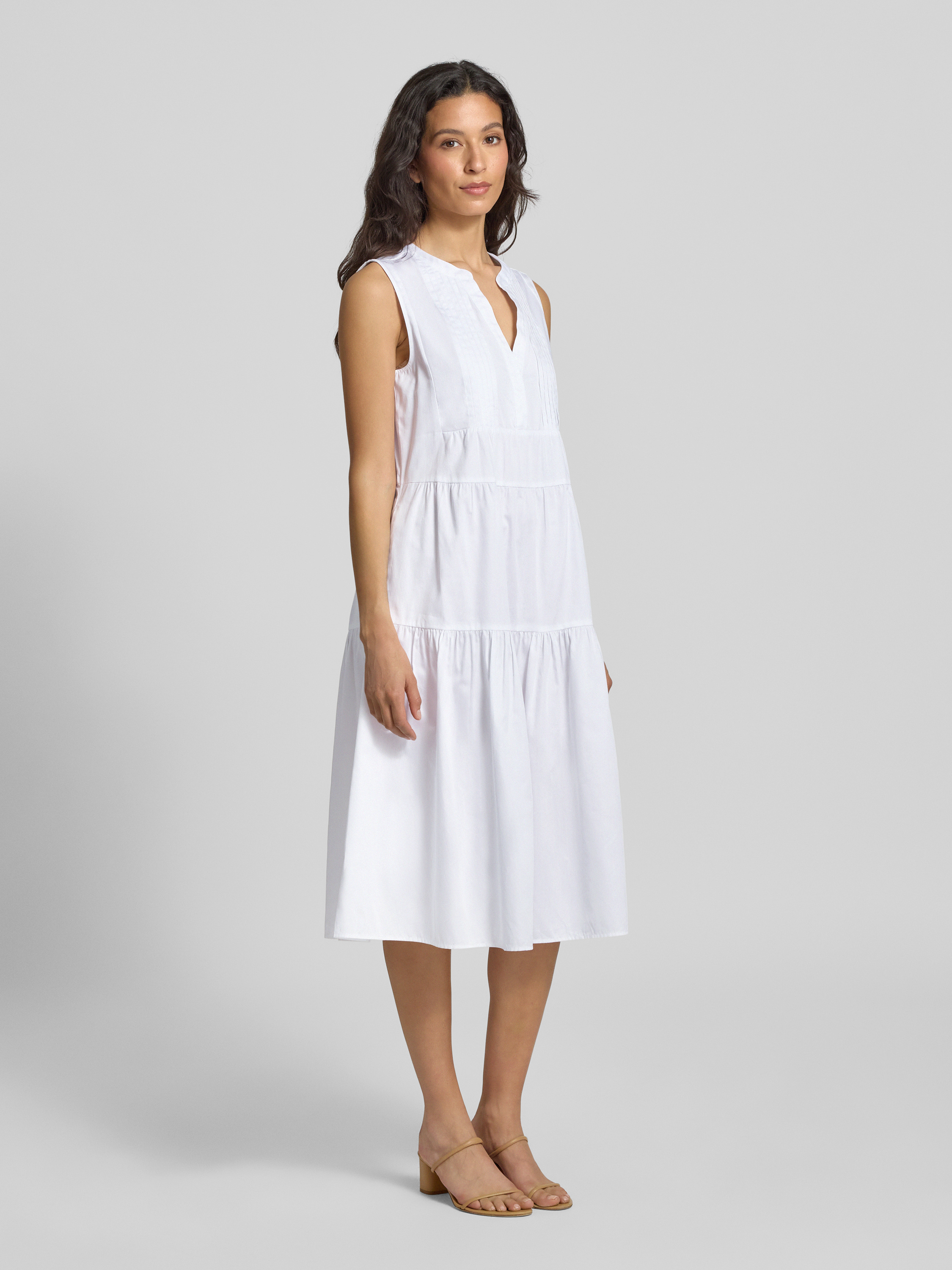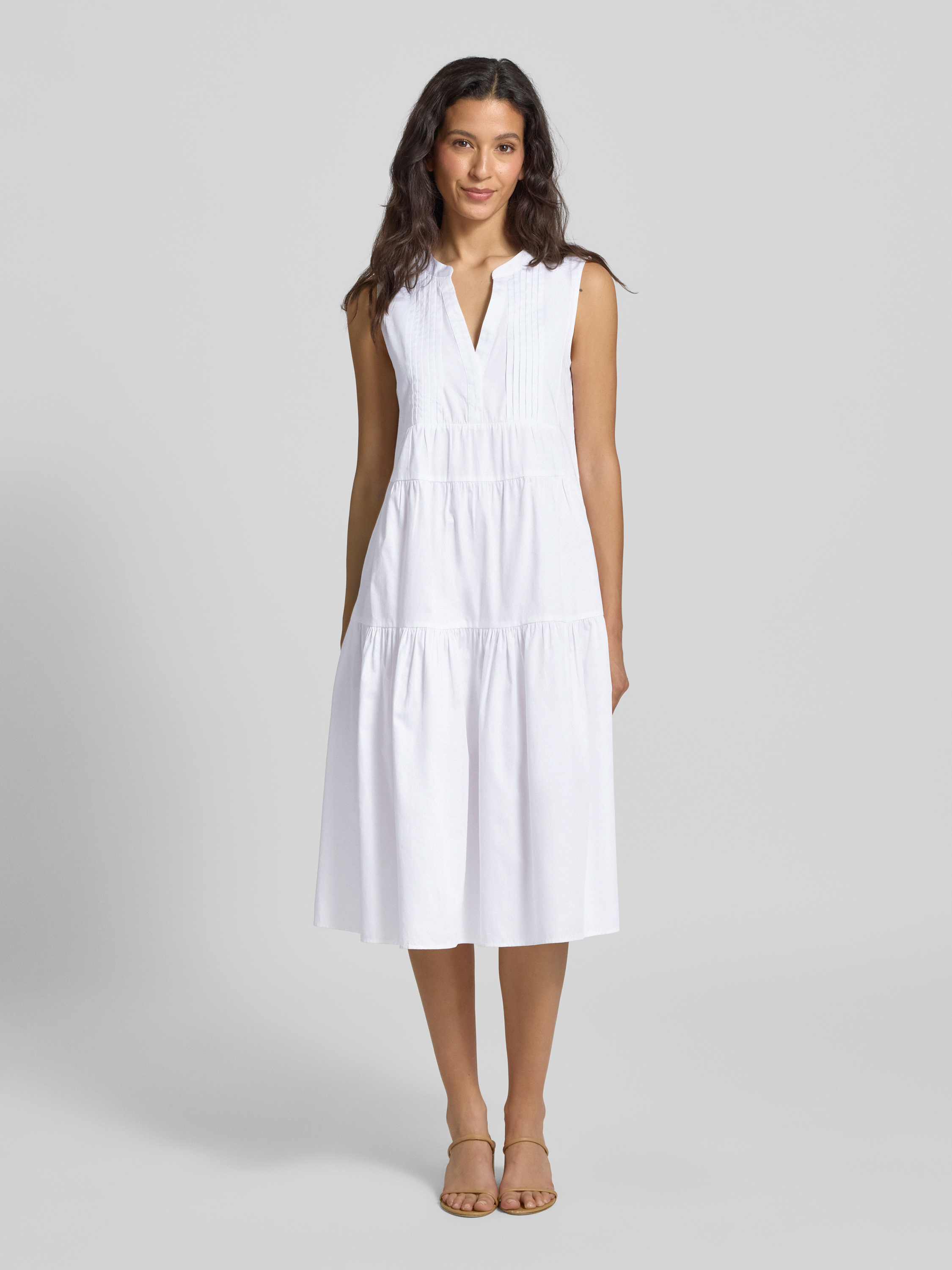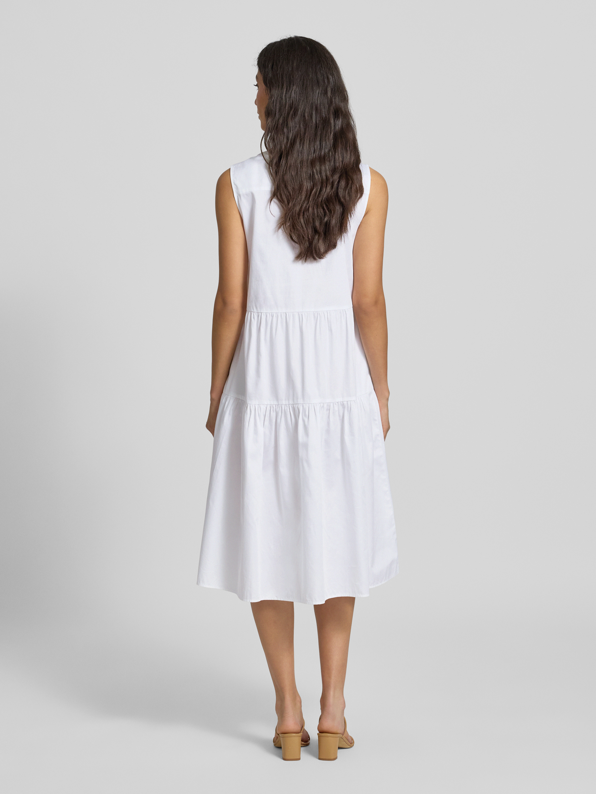 Sukienka midi z kołnierzem z lamówką - biały