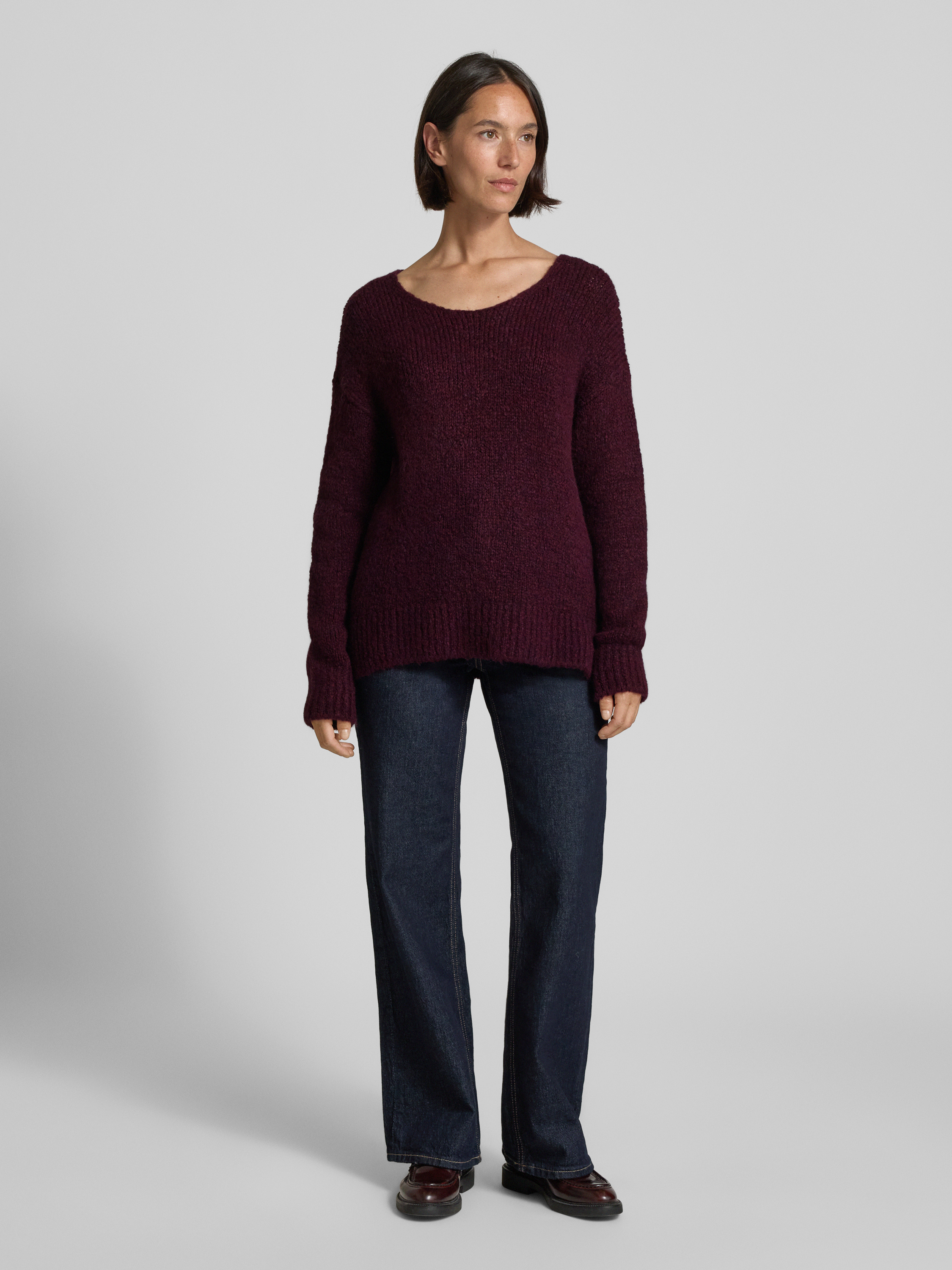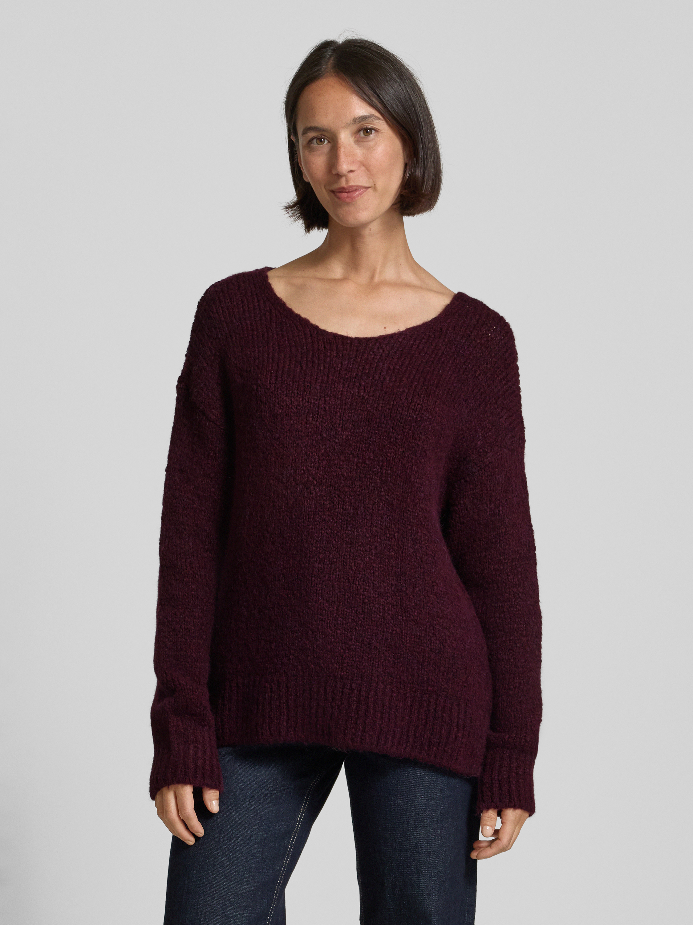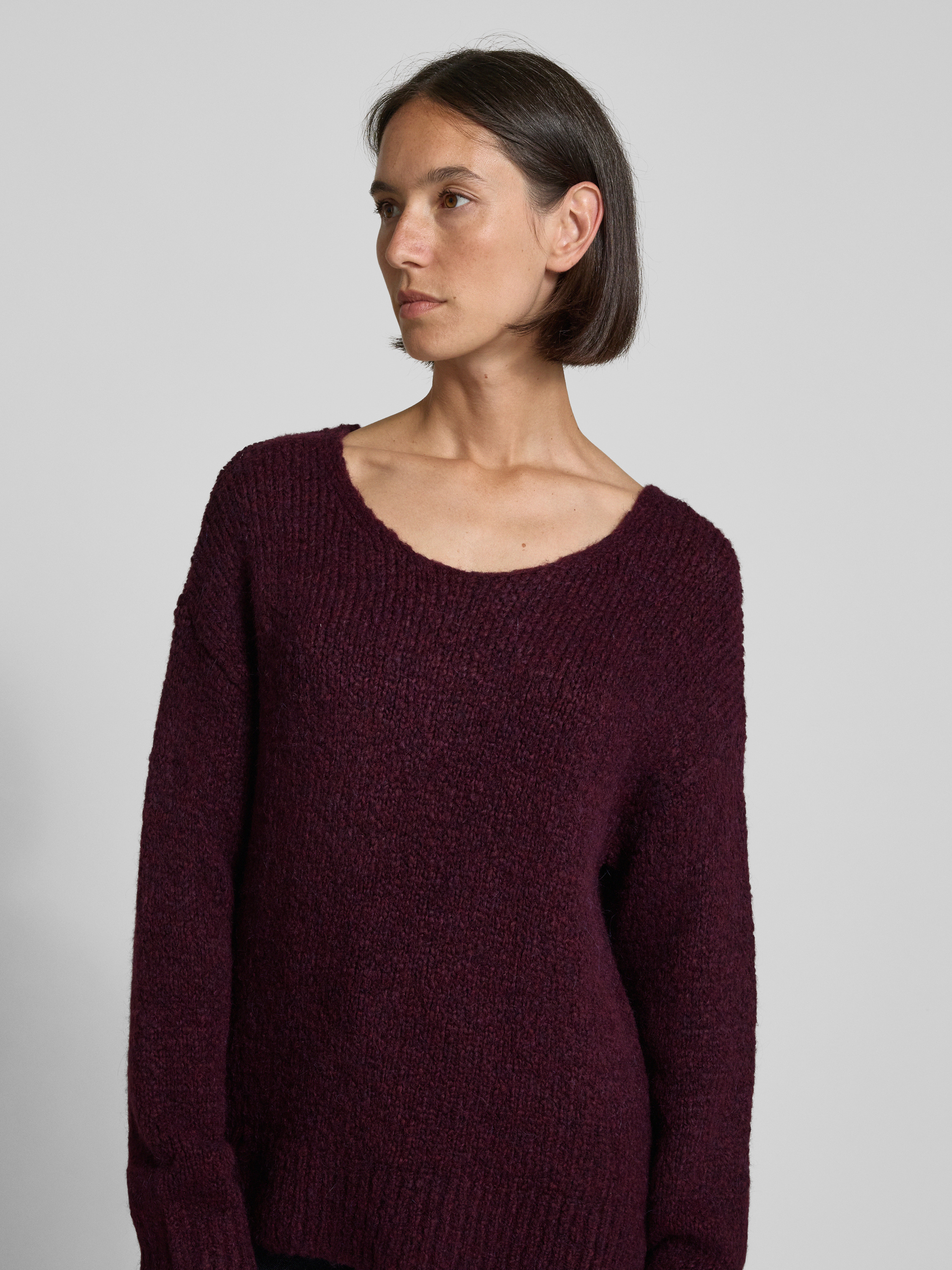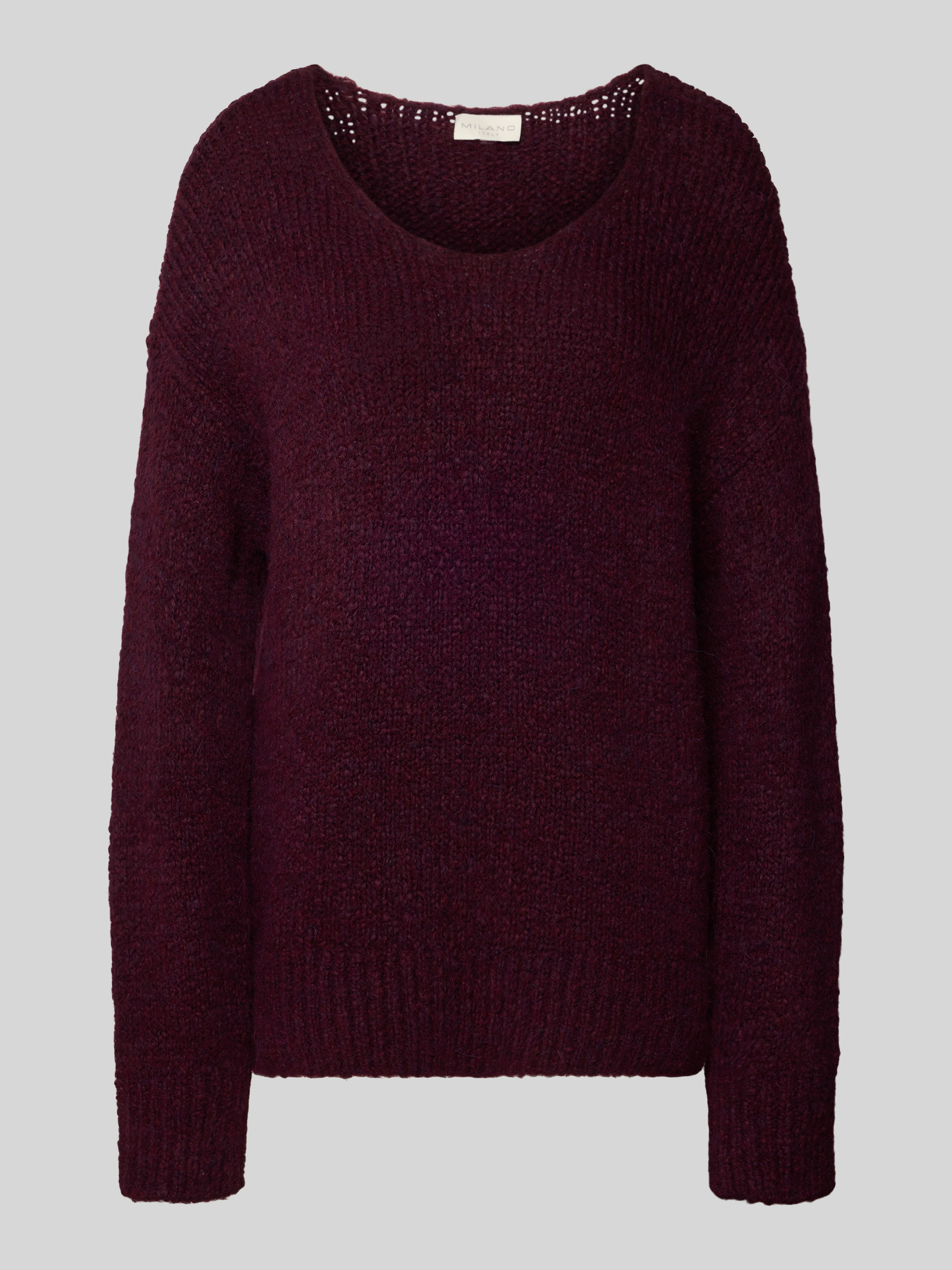 Sweter z dzianiny z okrągłym dekoltem - bordowy