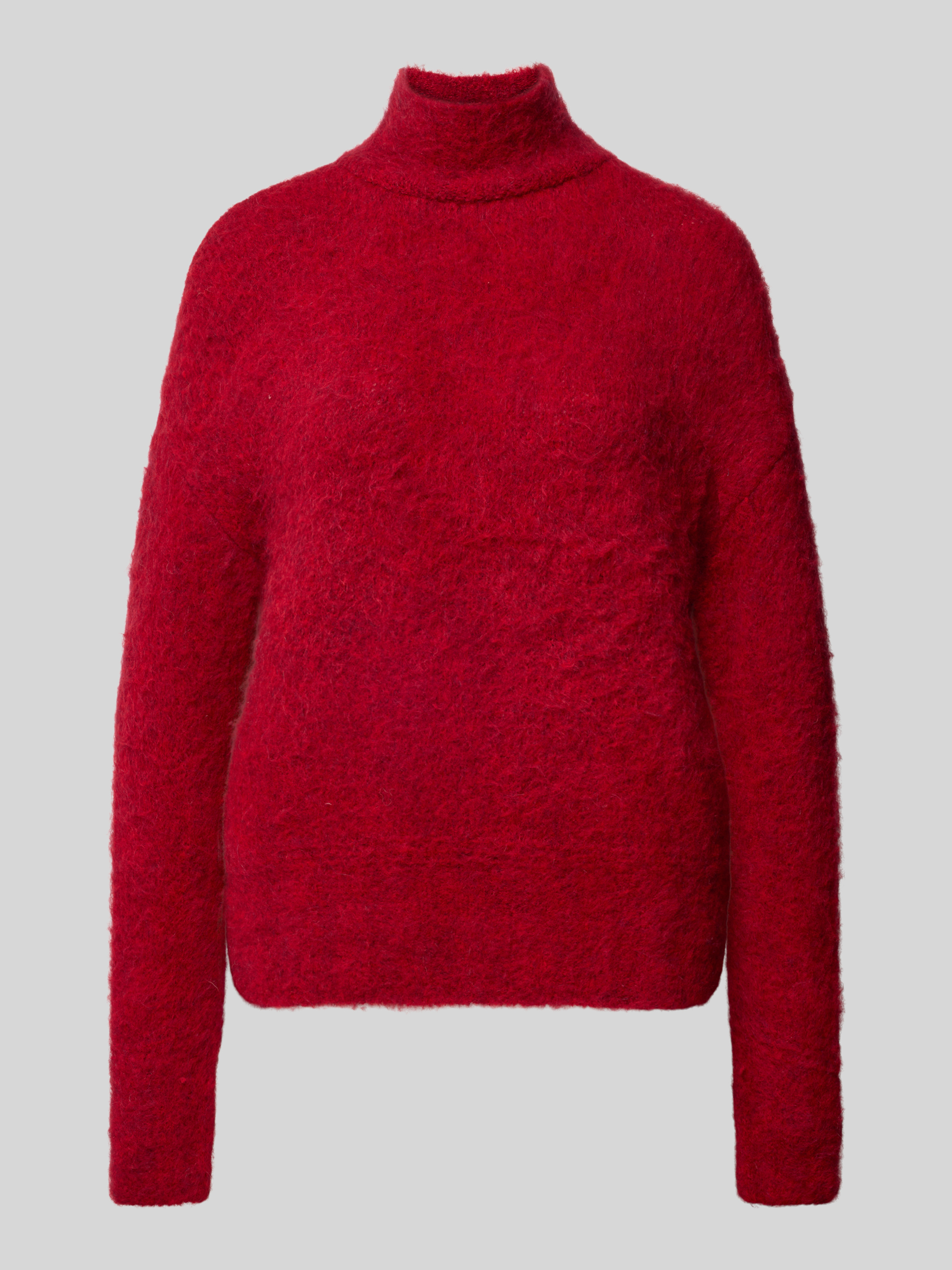 Sweter z dzianiny ze stójką i obniżonymi ramionami - czerwony