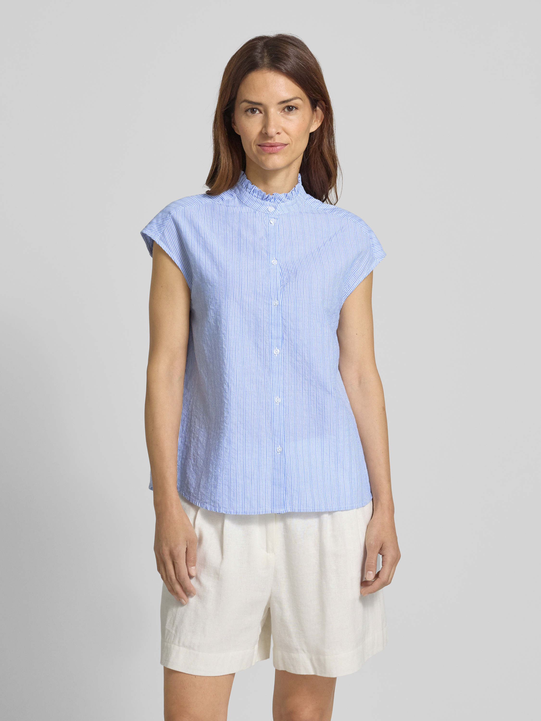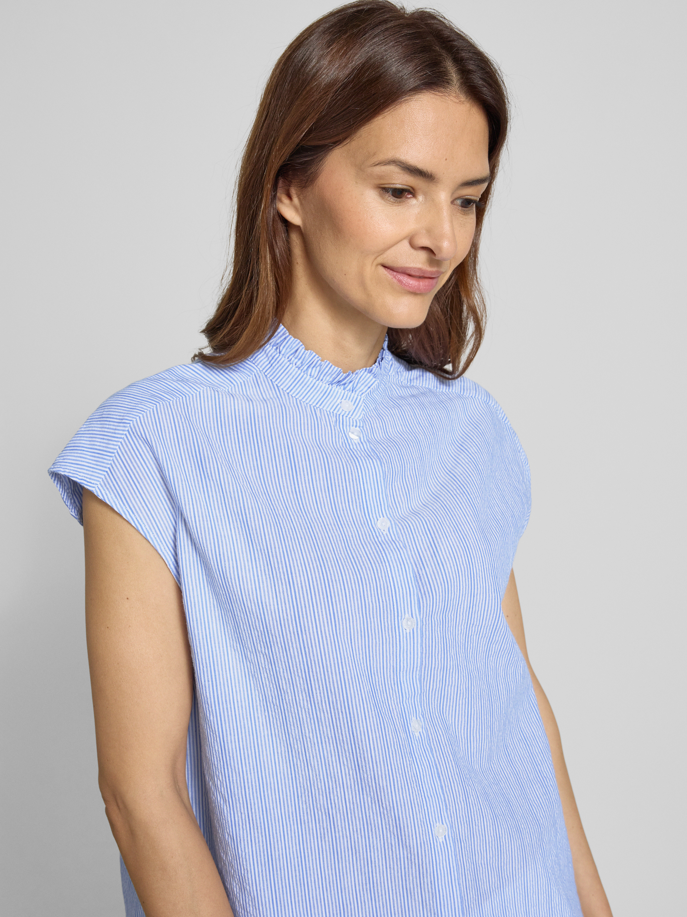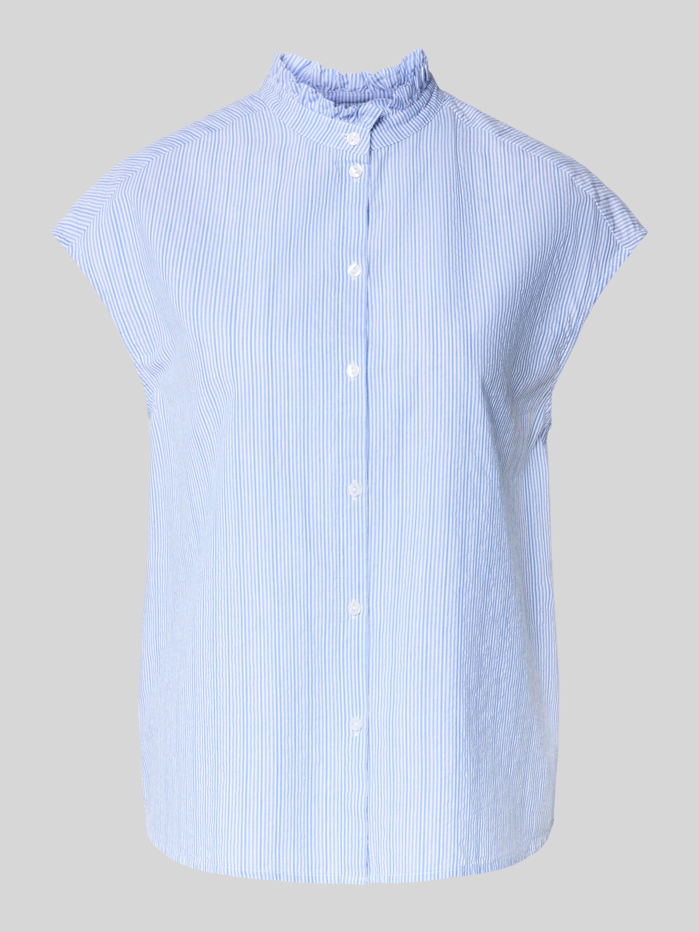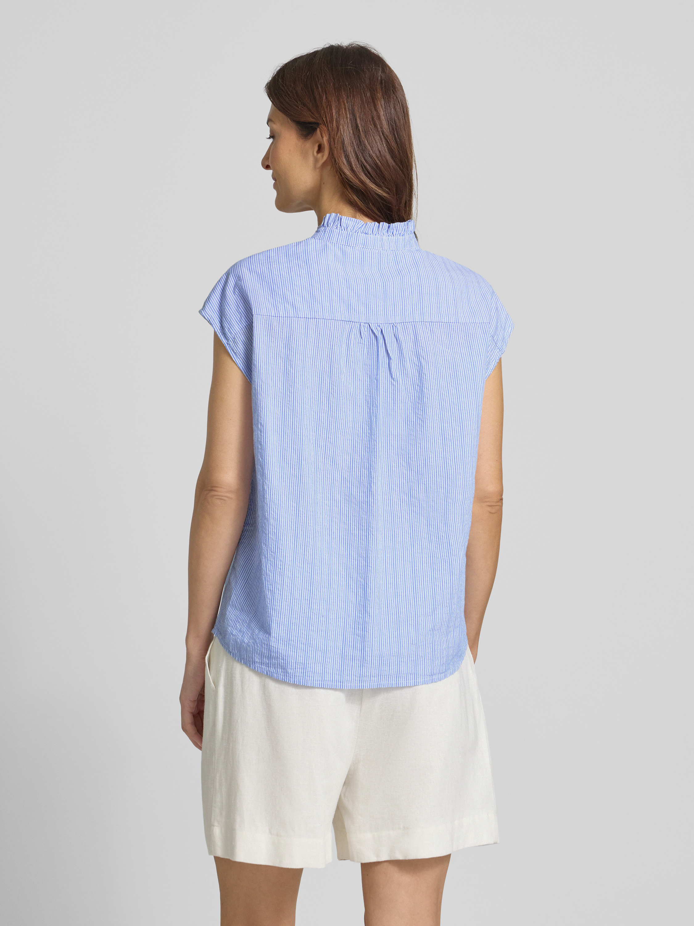 Top bluzkowy ze stójką i krótkim rękawem - niebieski