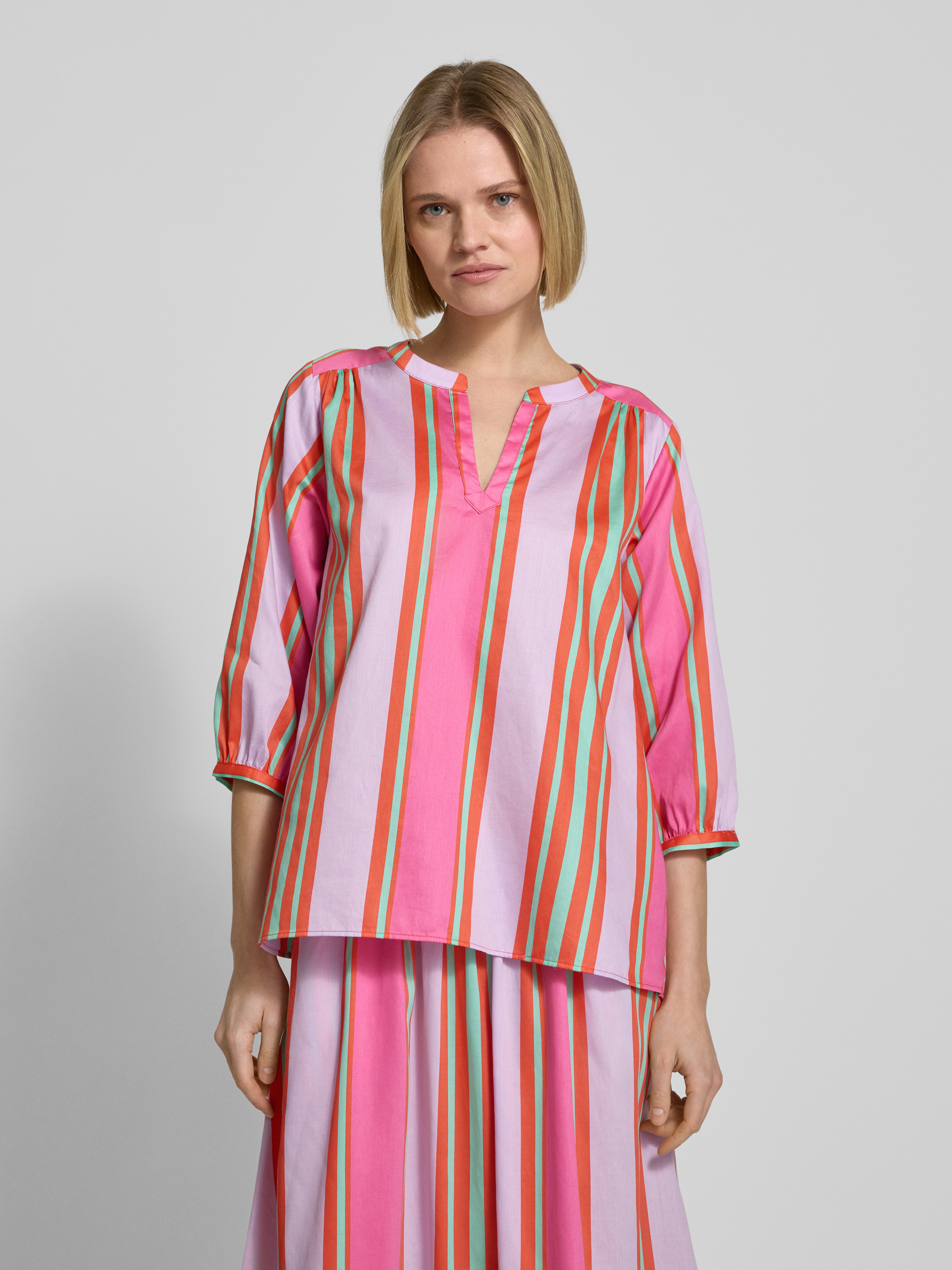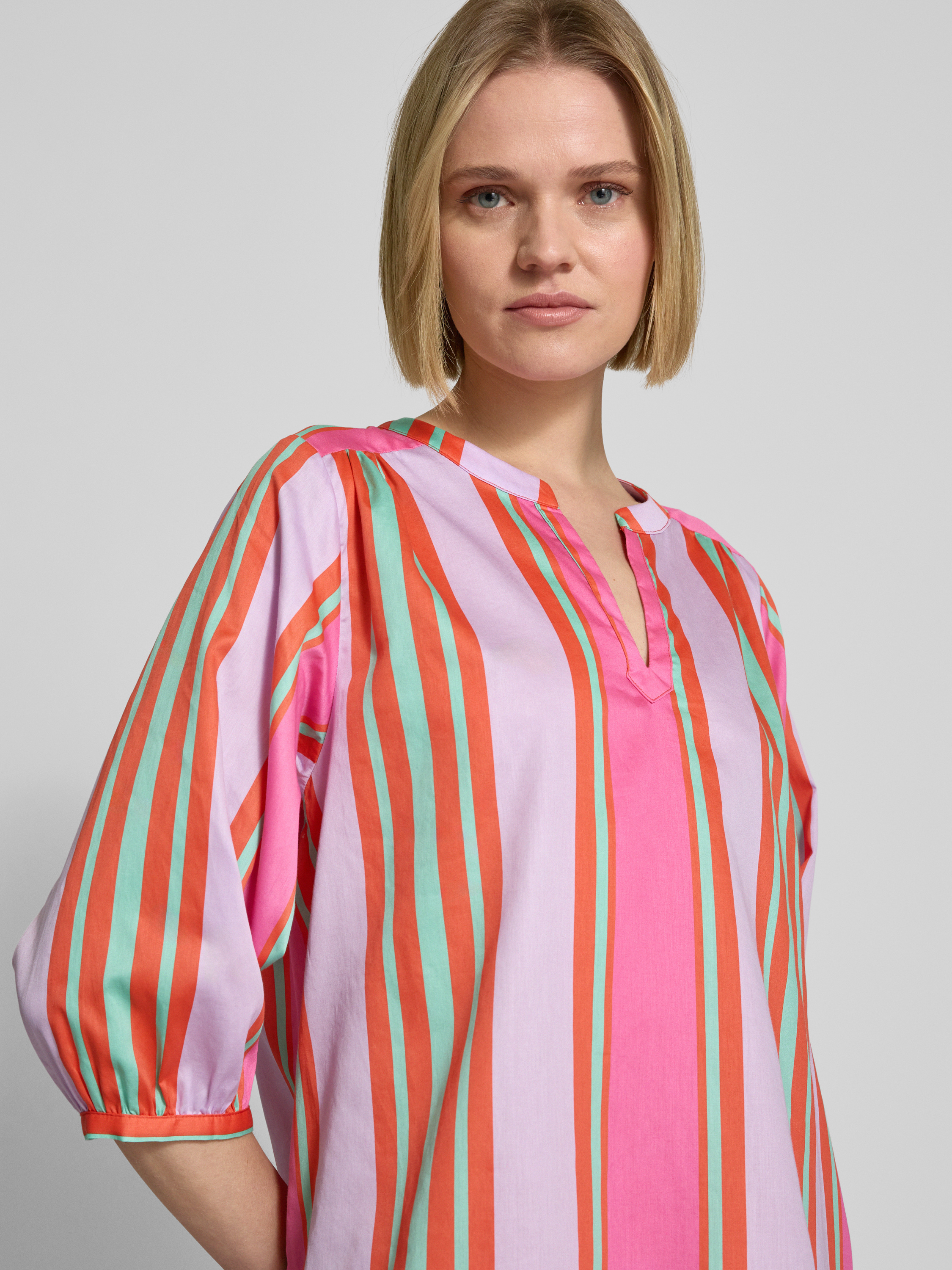 Tunika o kroju relaxed fit z rękawem o dł. 3/4 - mocnoróżowy