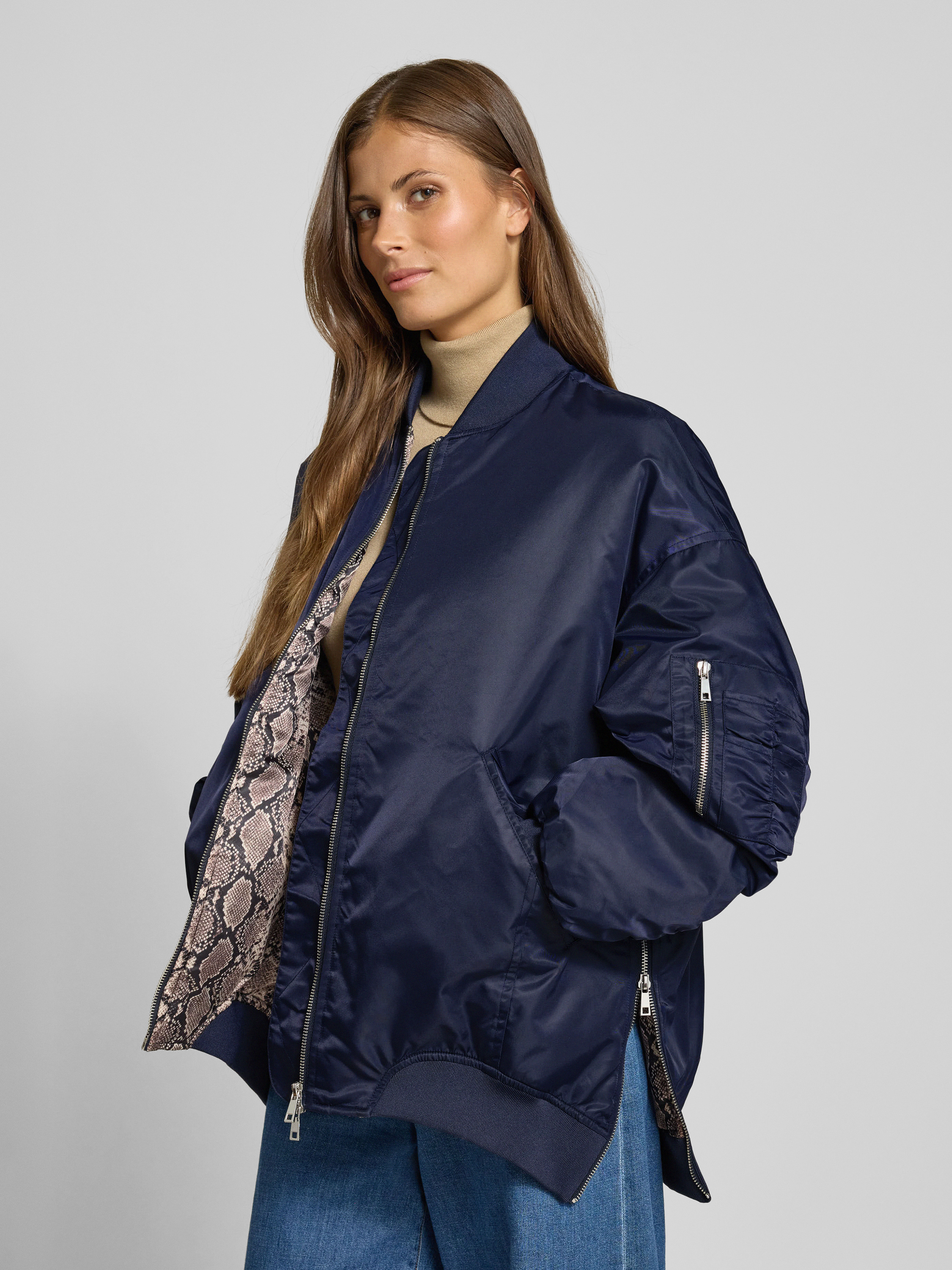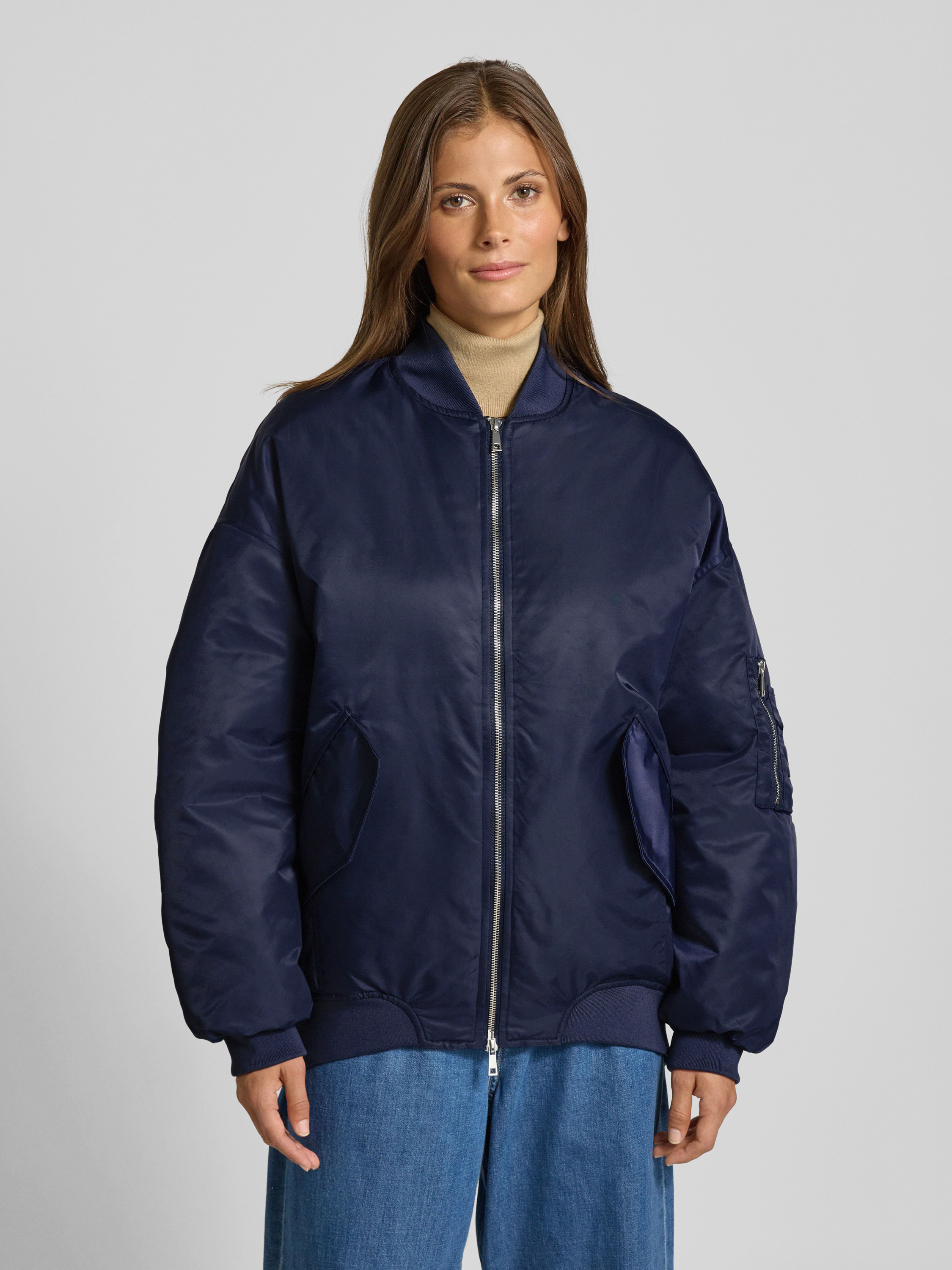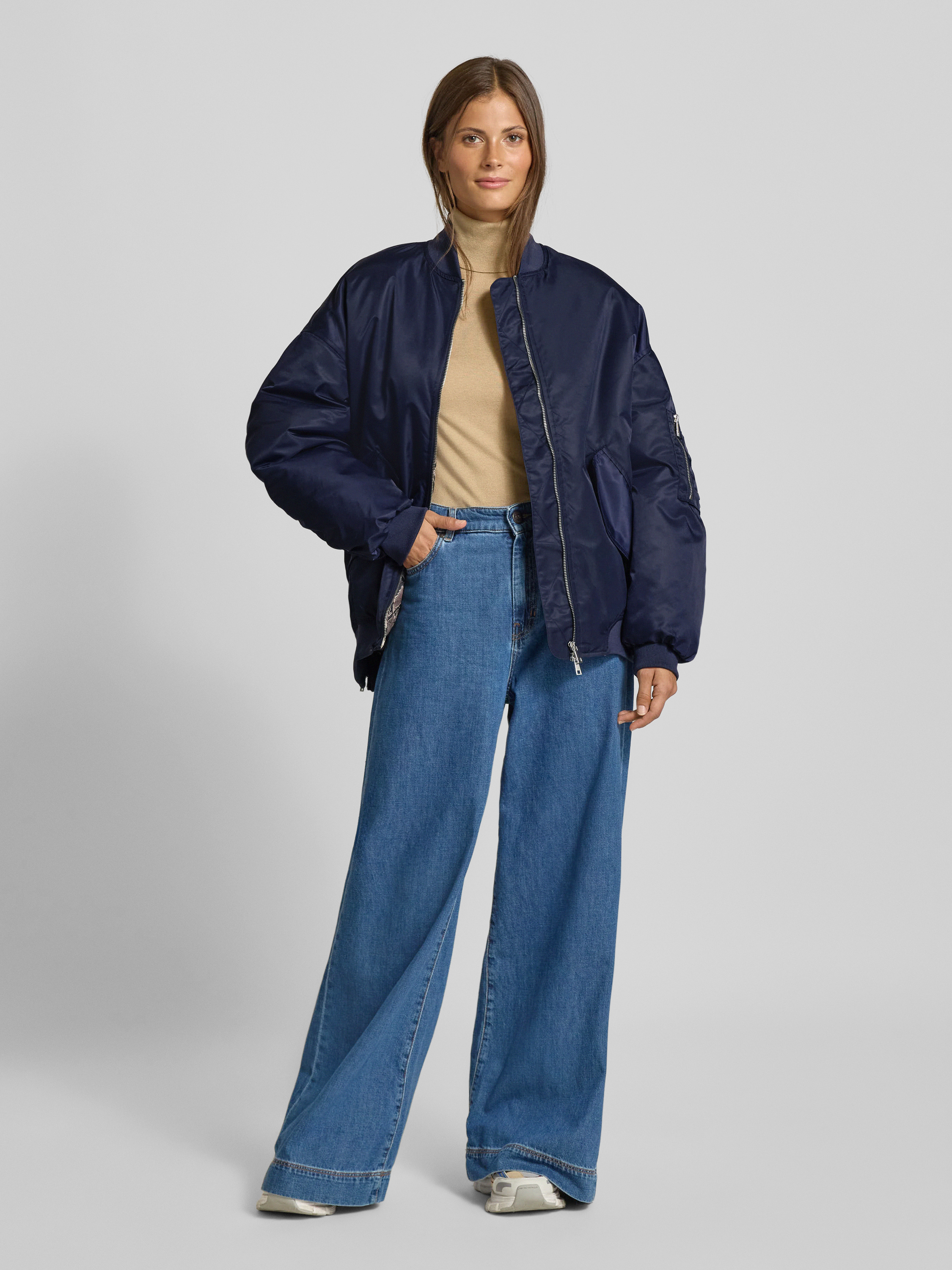 Bomberka o kroju relaxed fit z dwustronnym zamkiem błyskawicznym - granatowy