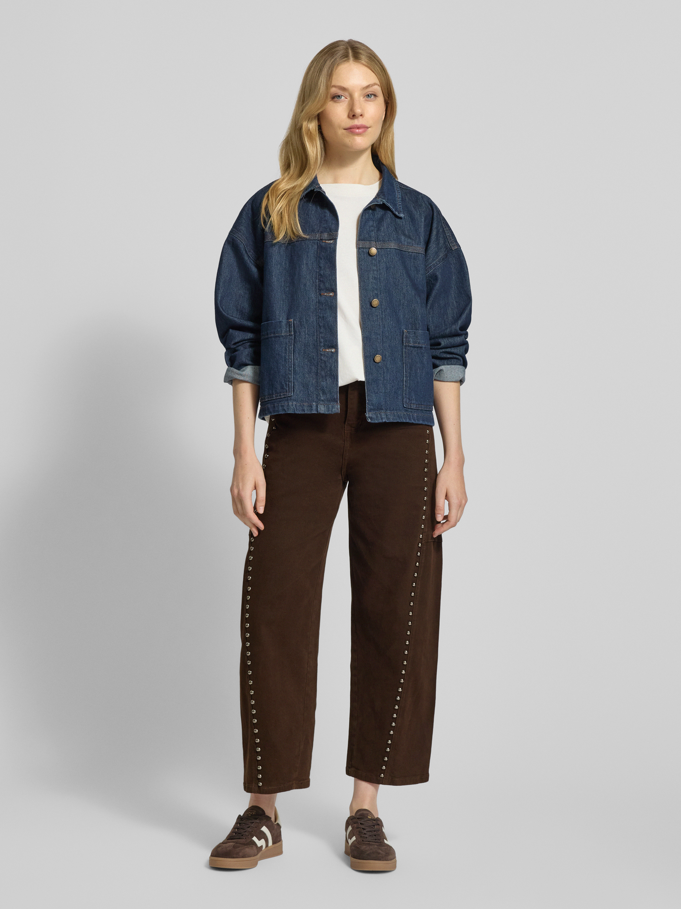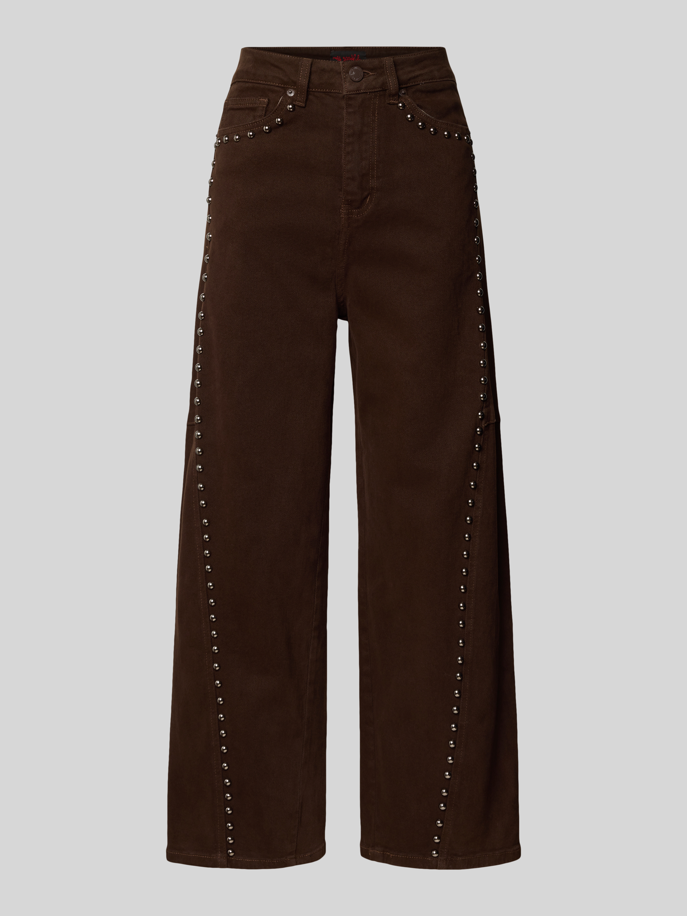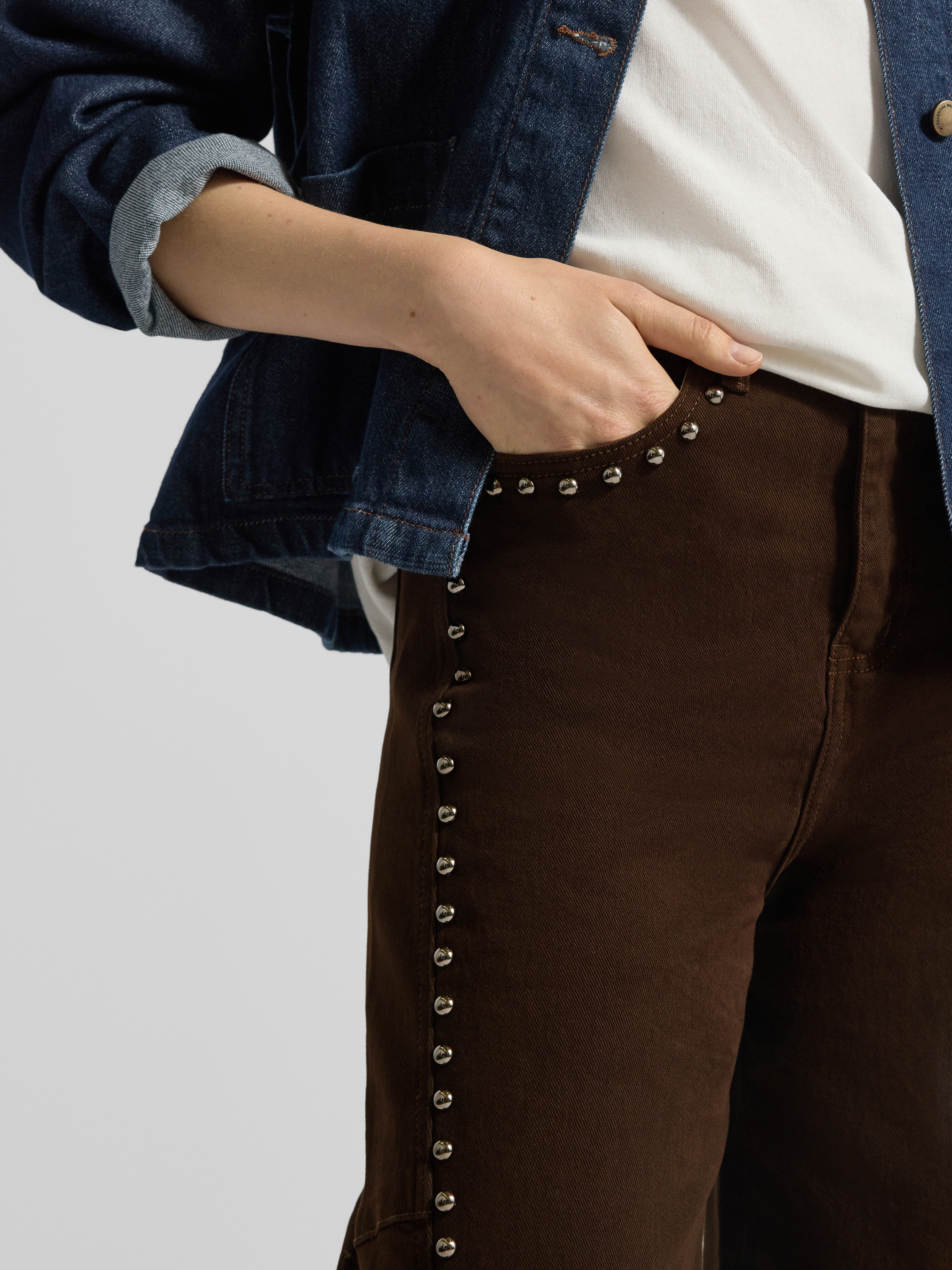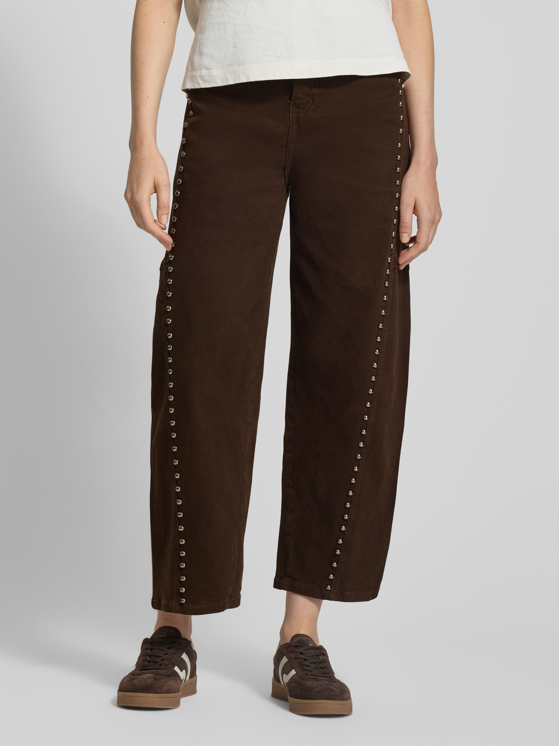Jeansy o kroju balloon z nitami - średniobrązowy
