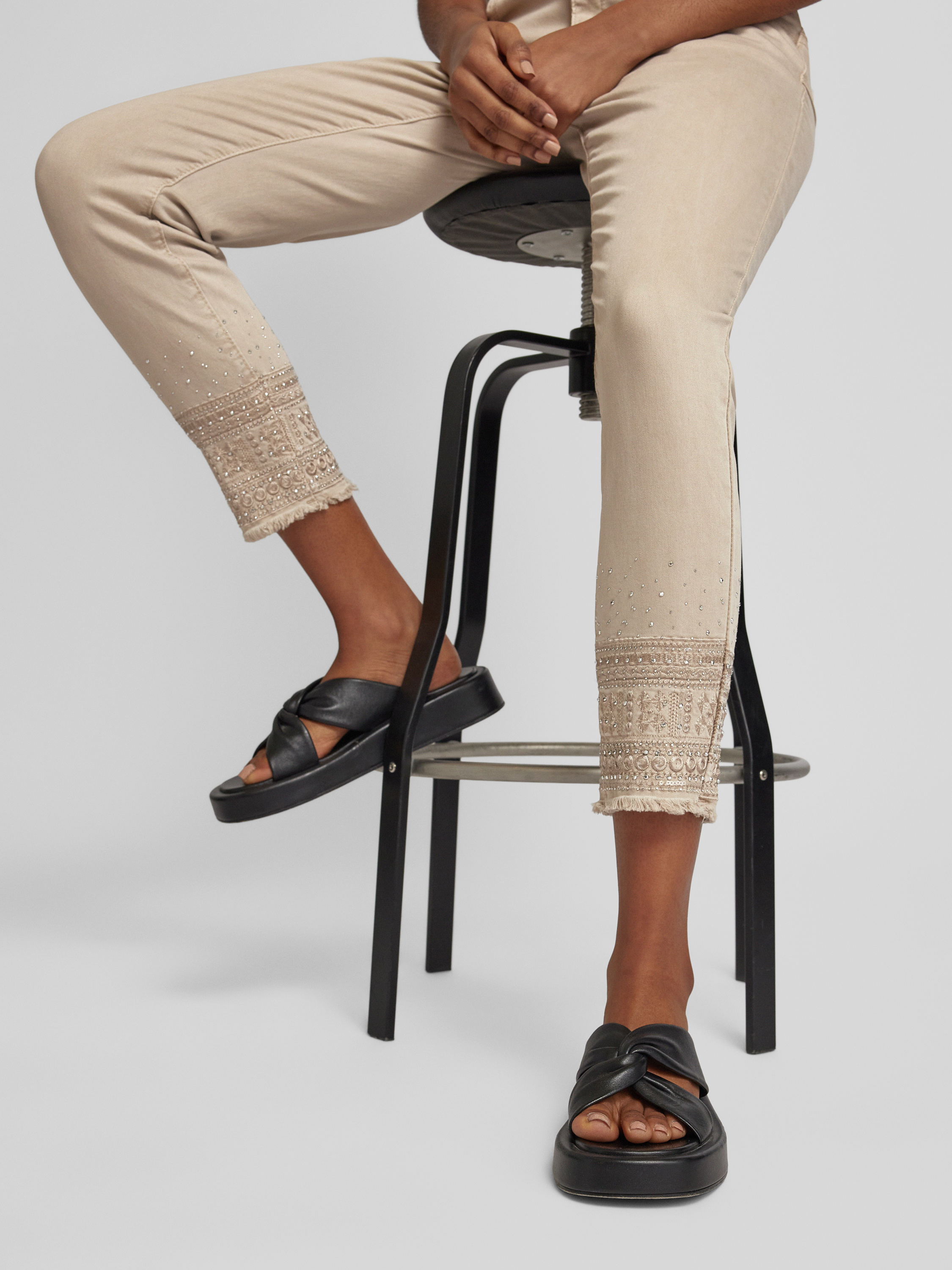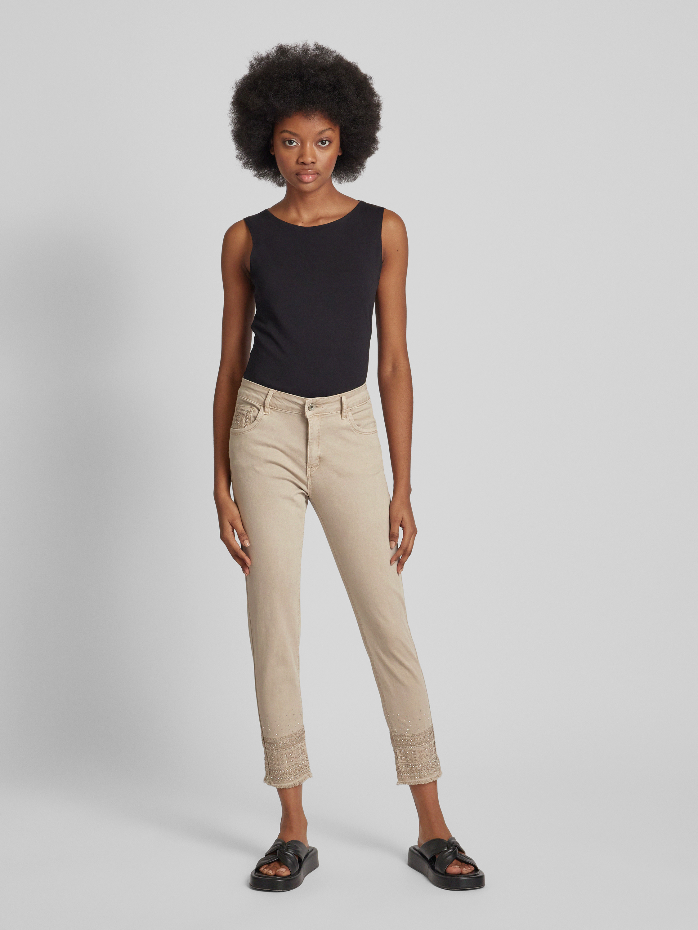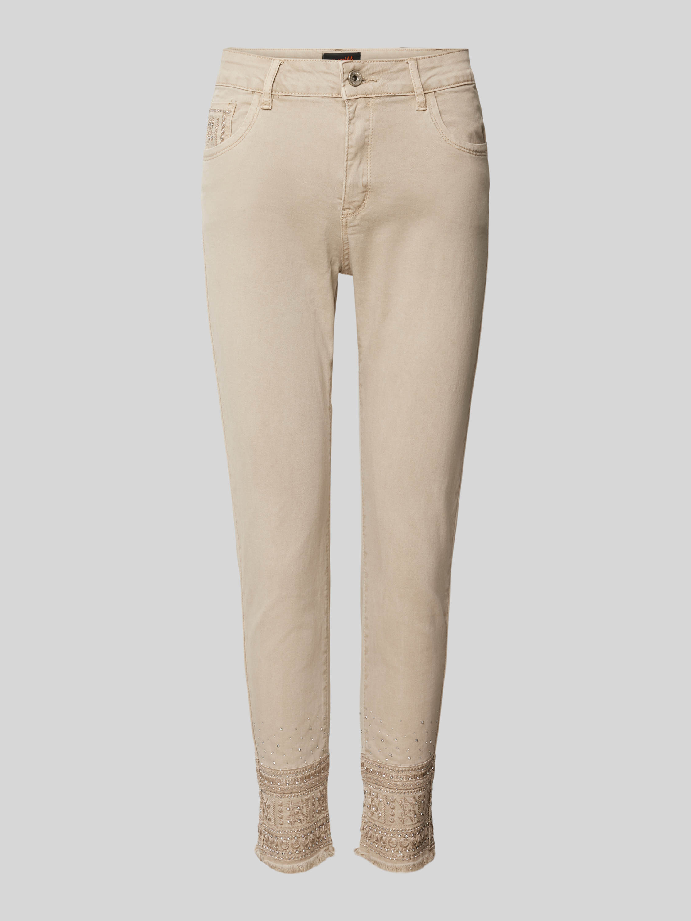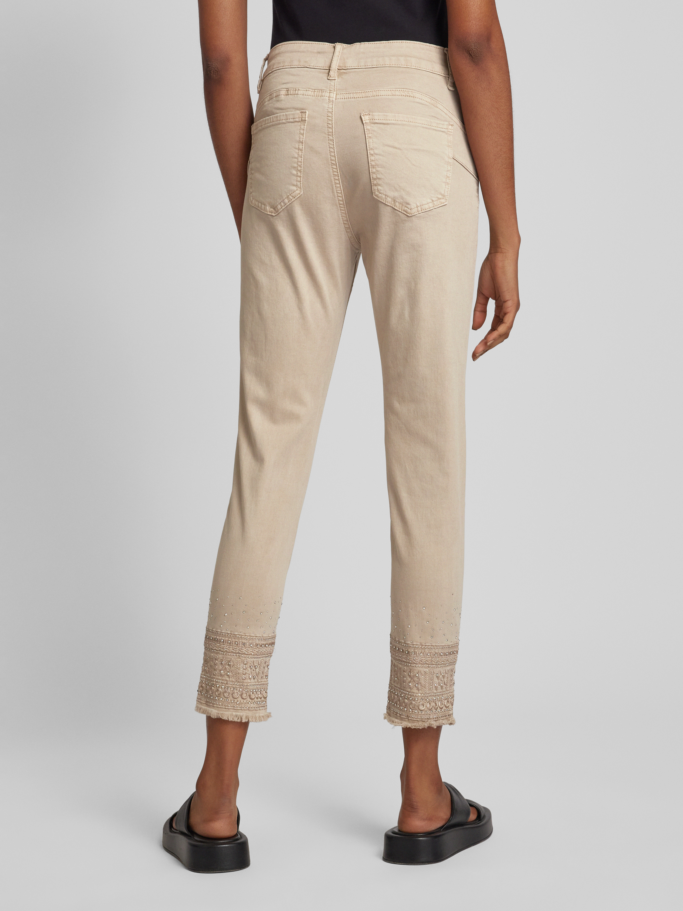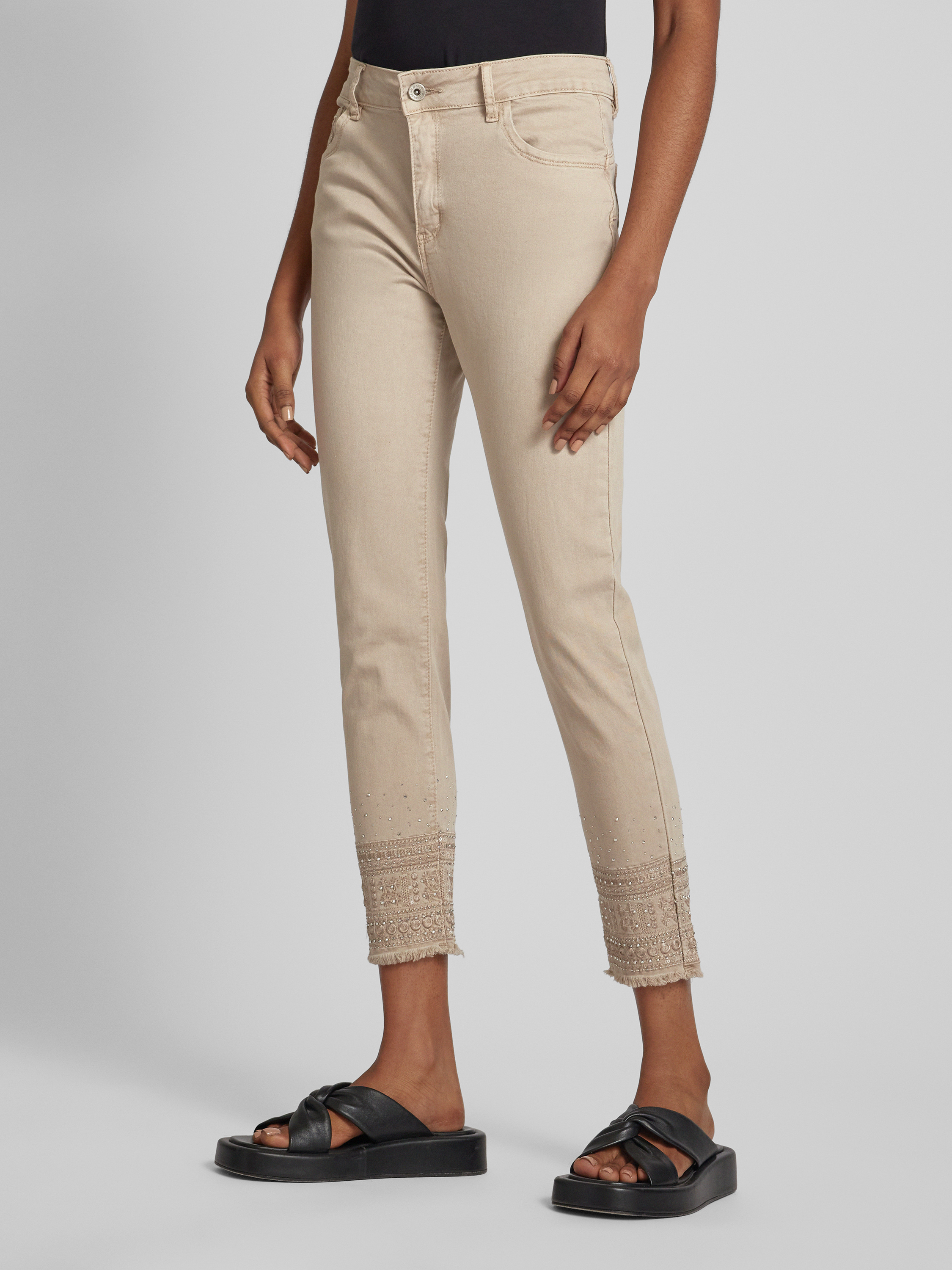 Jeansy o kroju Slim Fit z ozdobnych kamieni - beżowy