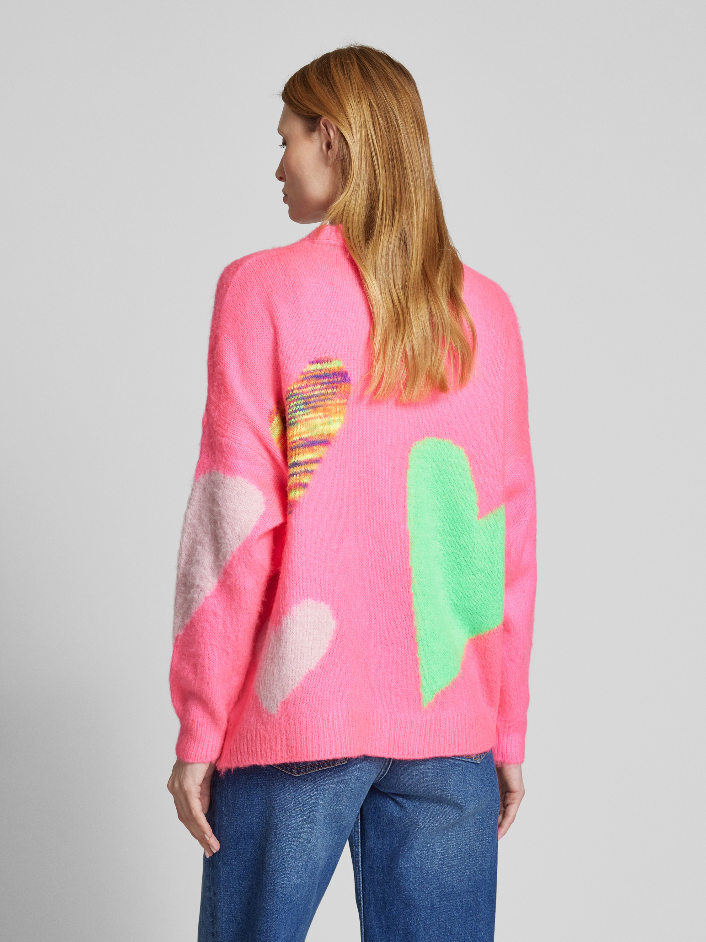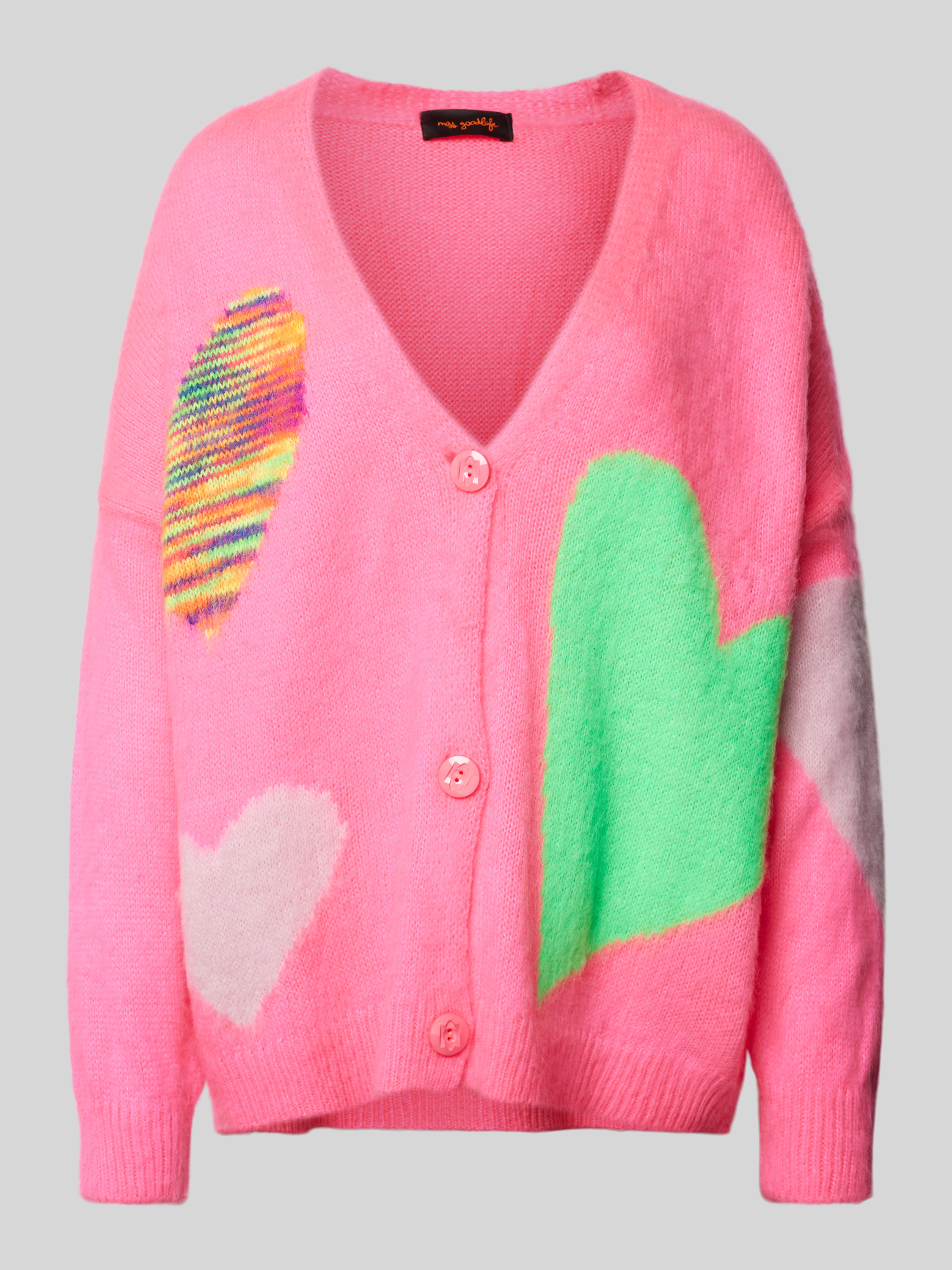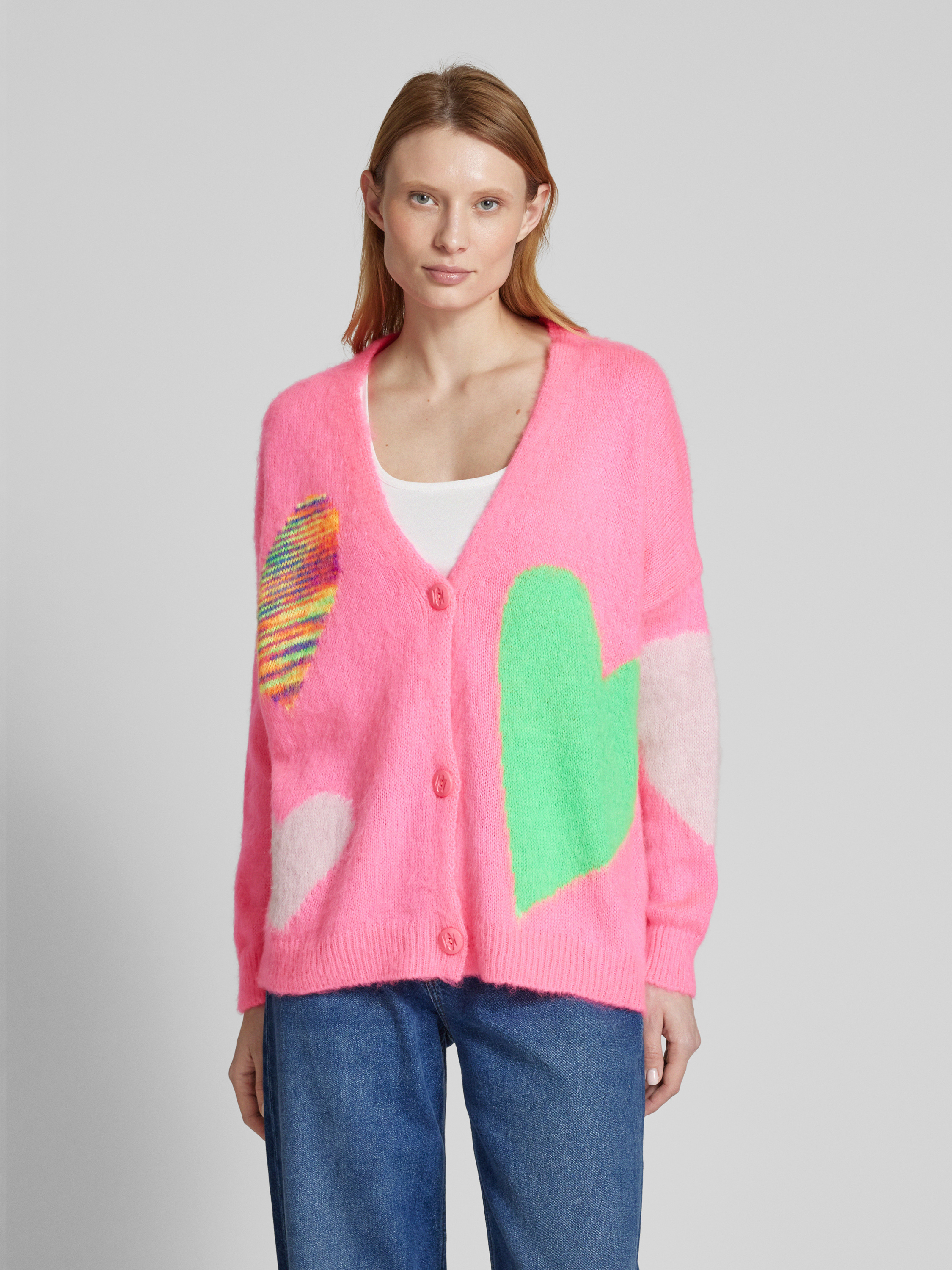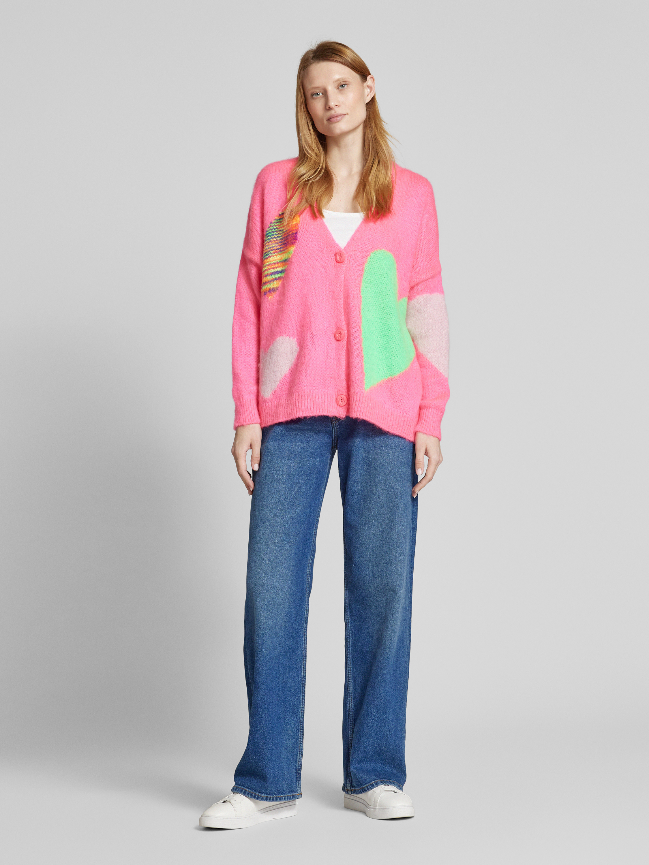 Kurtka z dzianiny o kroju oversized z mieszanki wełny i wełny z alpaki z listwą guzikową - mocnoróżowy