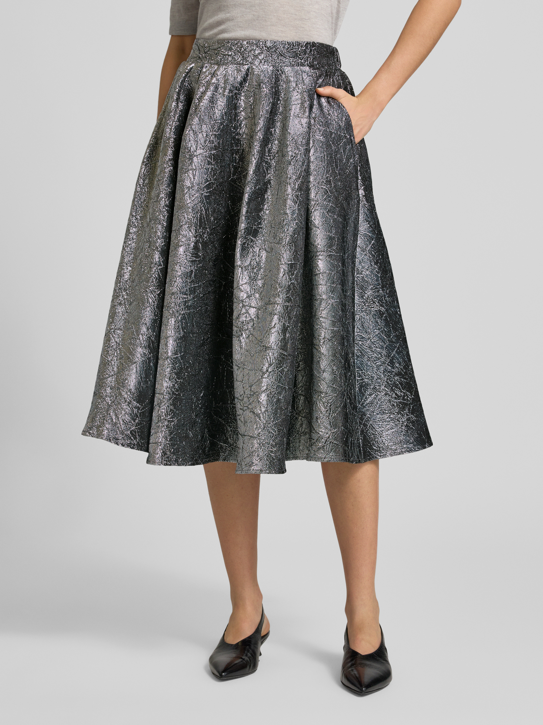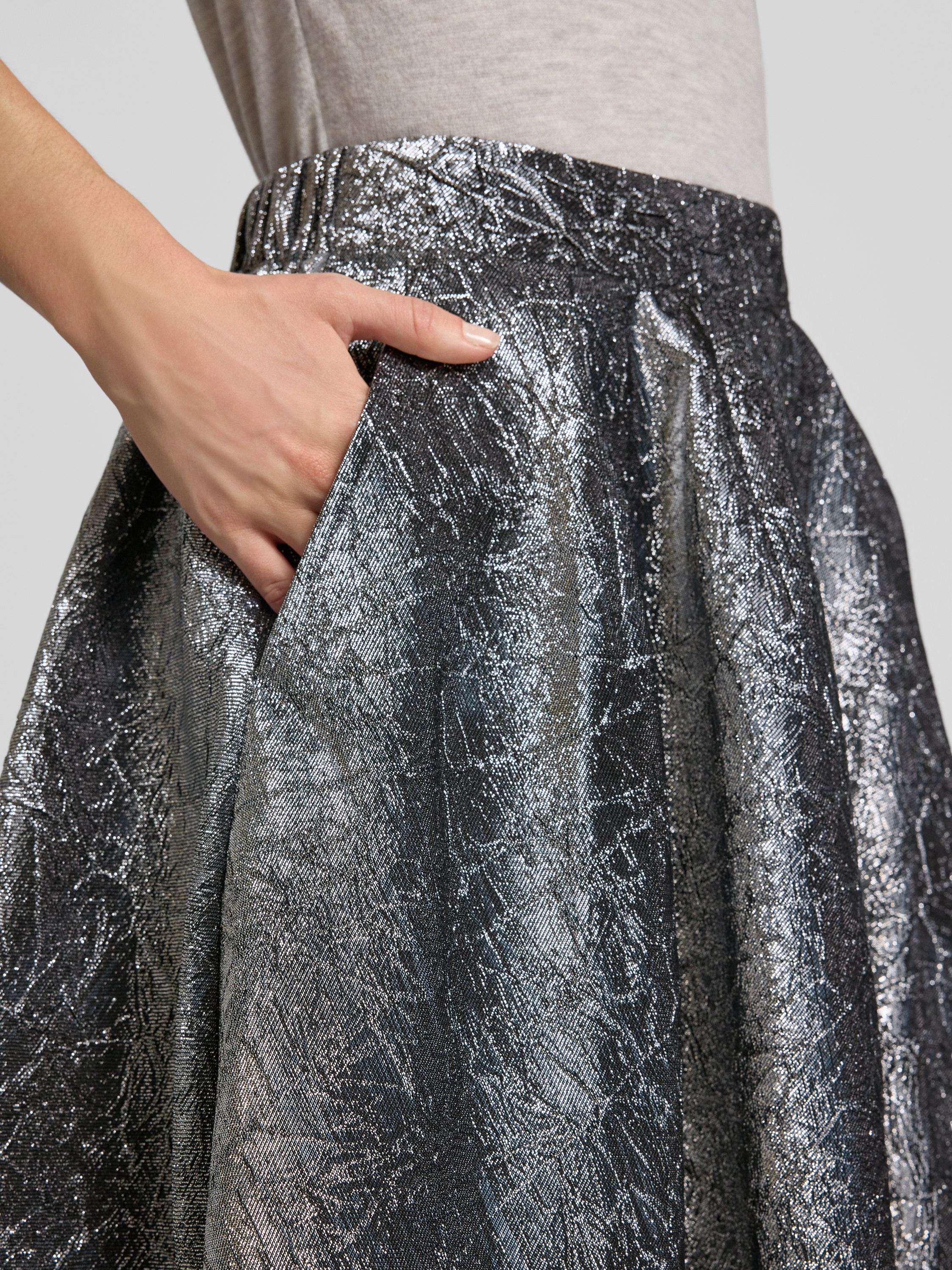 Spódnica midi z fakturowanym wzorem i elastycznym pasem - antracytowy